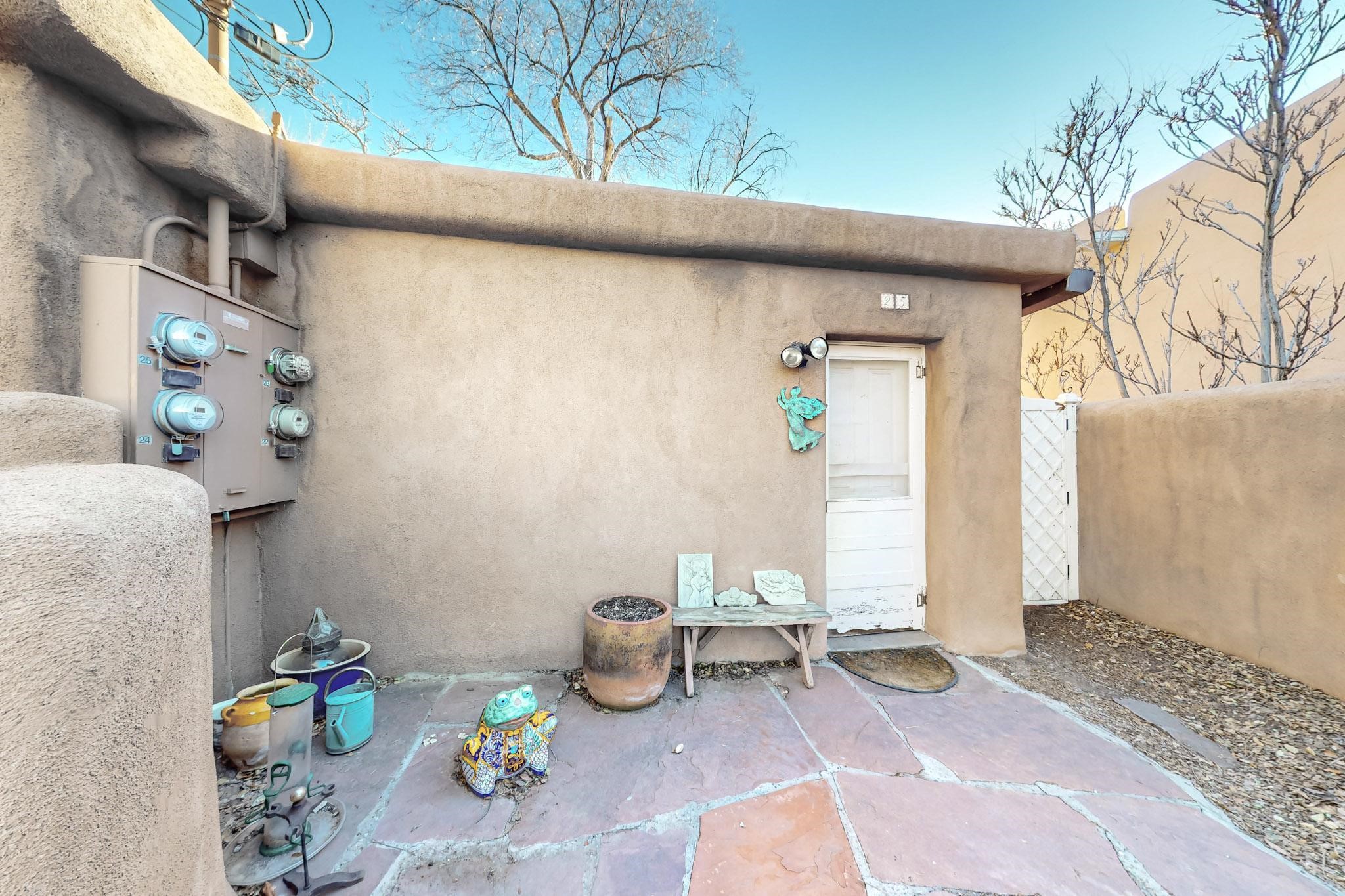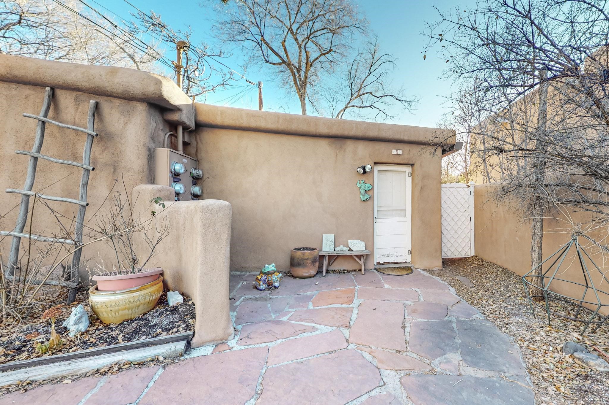 The Seller says "Sell this Condo!". I can hardly wait for you to see this! This is a part of Santa Fe History and is great as a residence, vacation rental, or artist's/writer's studio. Imagine owning this historic hideaway in the heart of old Santa Fe. Located in a writer/artist compound from which 54 books have been written and published including KON TIKI by Thor Heyerdahl. Part of the original Webster Compound founded by Ann Webster in the 1930's for artists and writers seeking a community for quiet and inspiration. It is a single level adobe condominium with its own lovely south facing courtyard. An enchanting property just blocks from Canyon Road and some of Santa Fe's finest restaurants and galleries. It is 1/2 block from Downtown Subscription and Acequia Madre. The photos tell the story. The HOA fees include gas, water, common area maintenance, liability insurance, roof maintenance, sewer & refuse, professional fees, insurance, and outside stucco. It also includes $100 towards the reserve. This is the largest unit in the compound and the price per square foot is priced below the recent "Sold" in the complex. Seller financing is available!