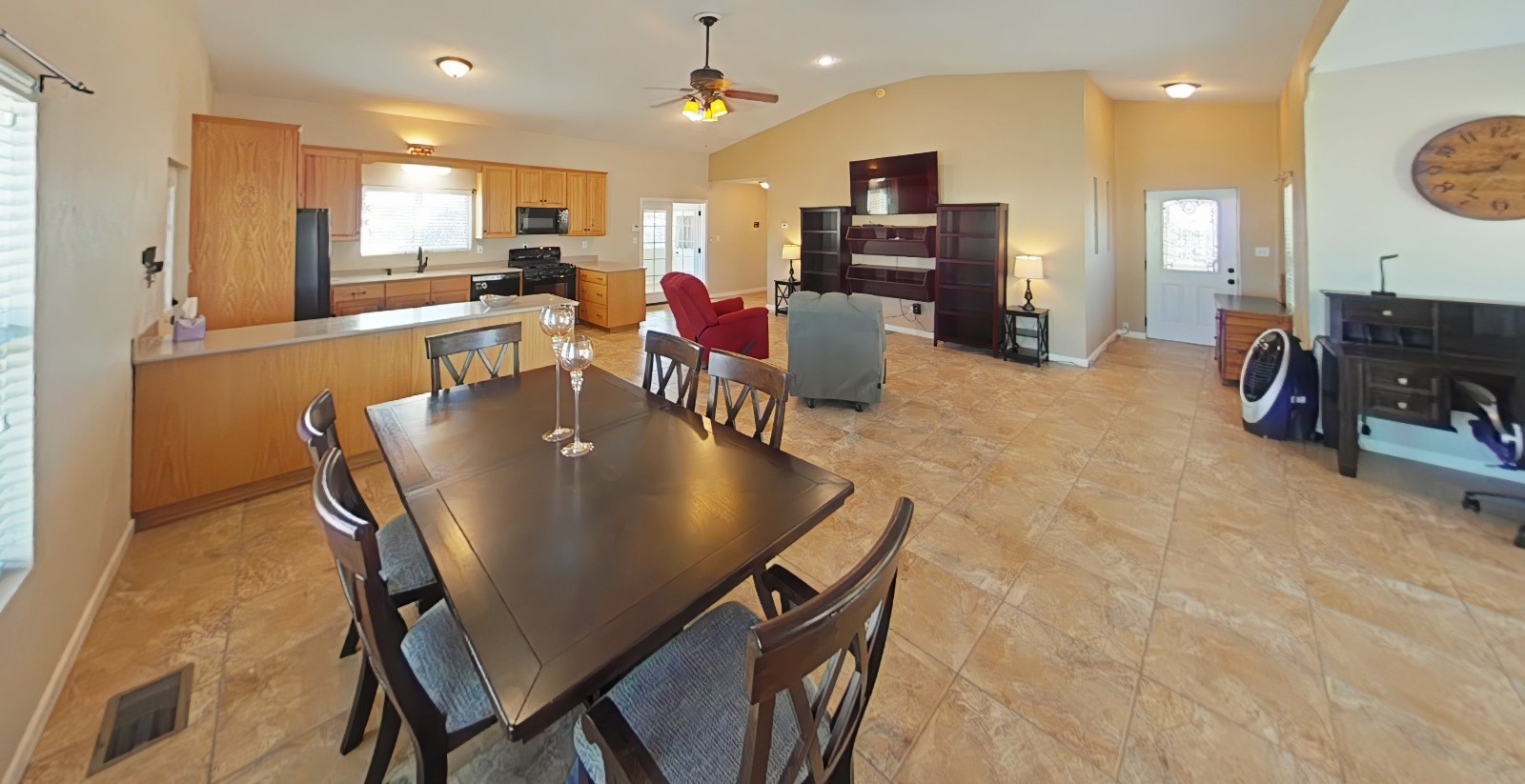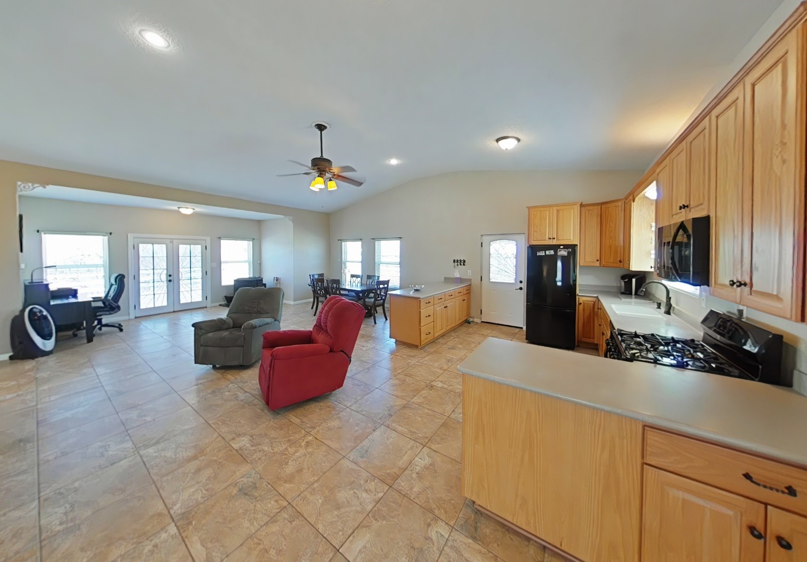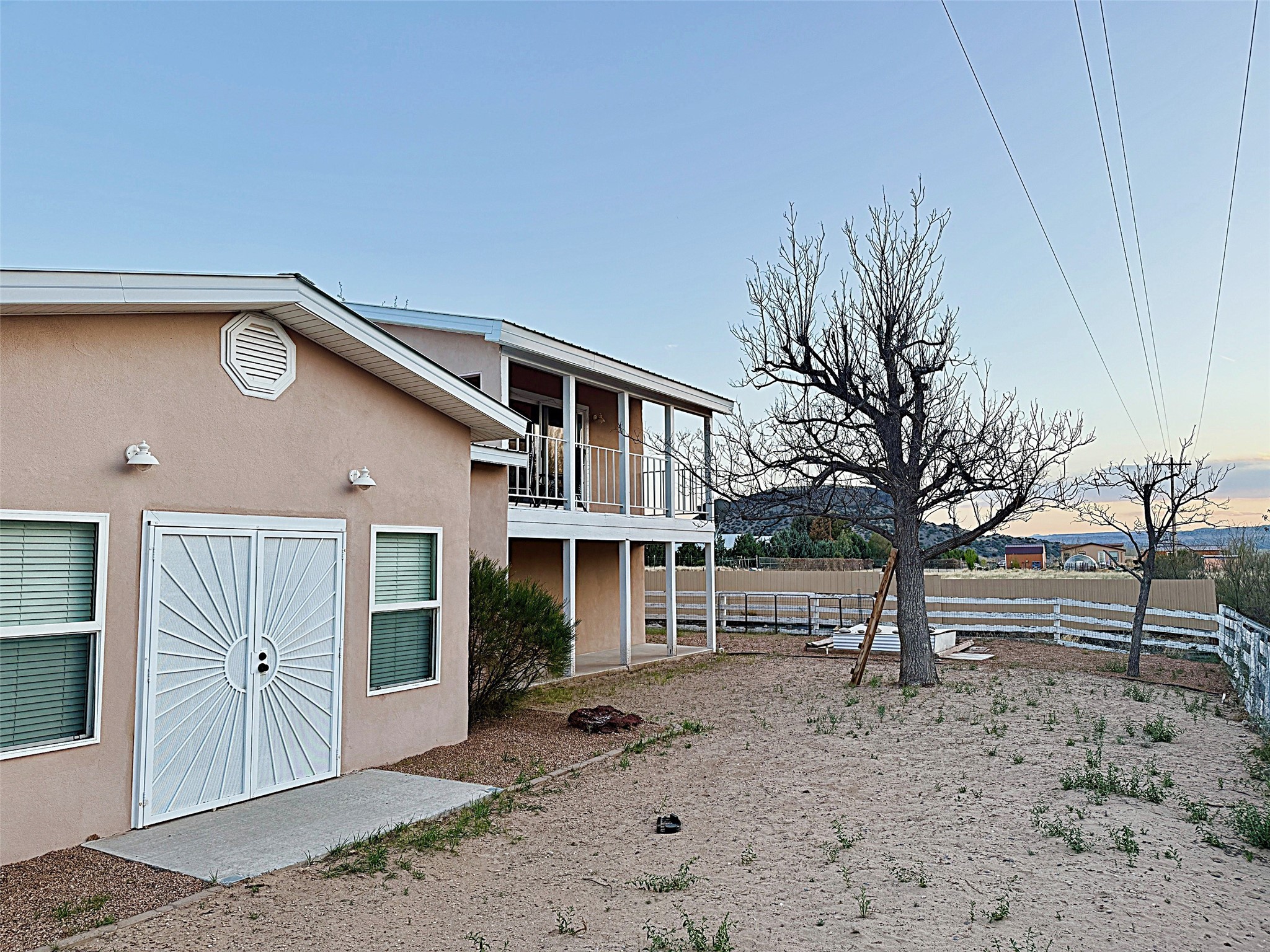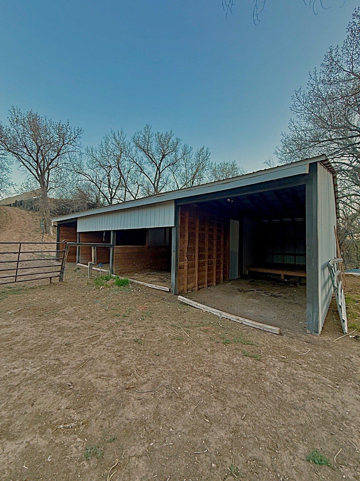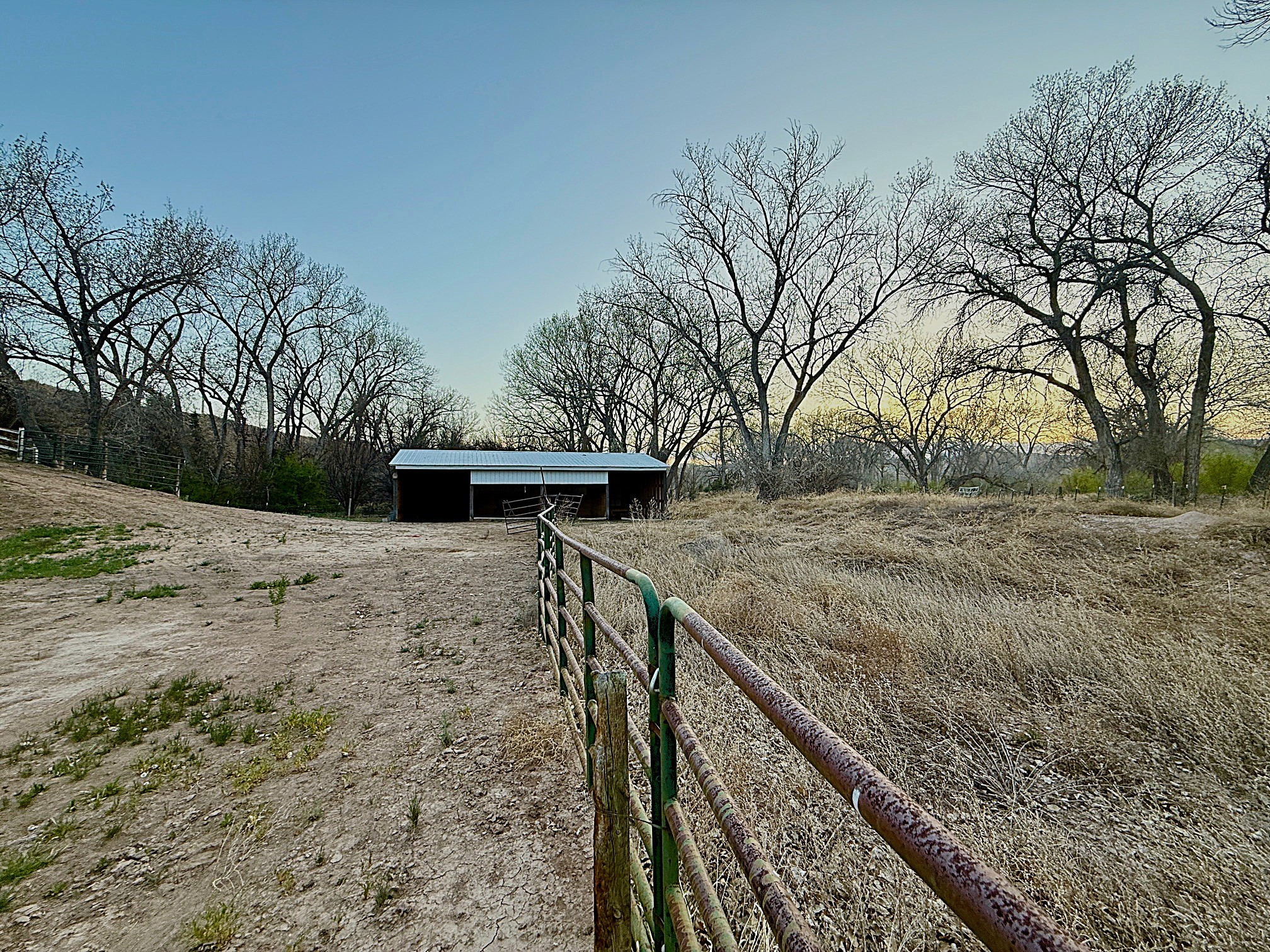 Motivated Seller! Tucked away at the peaceful southside of La Mesilla, this beautifully positioned property borders the tranquil Santa Clara tribes Bosque. The home features a spacious 3-bedroom, 2-bathroom design set on a full acre of land, complete with a barn with individual side access. The barn, situated at the edge of the bosque, features two horse stalls, divided pens, and three designated storage areas.The upstairs primary bedroom includes an ensuite bathroom and a private porch, perfectly placed to capture breathtaking views of Black Mesa and the surrounding bosque. The open living area is highlighted by a high-pitched ceiling, creating an inviting and airy space ideal for gatherings or quiet relaxation. For those seeking a private retreat in a serene setting bordered by mature trees, this property is a rare find you have been needing.
