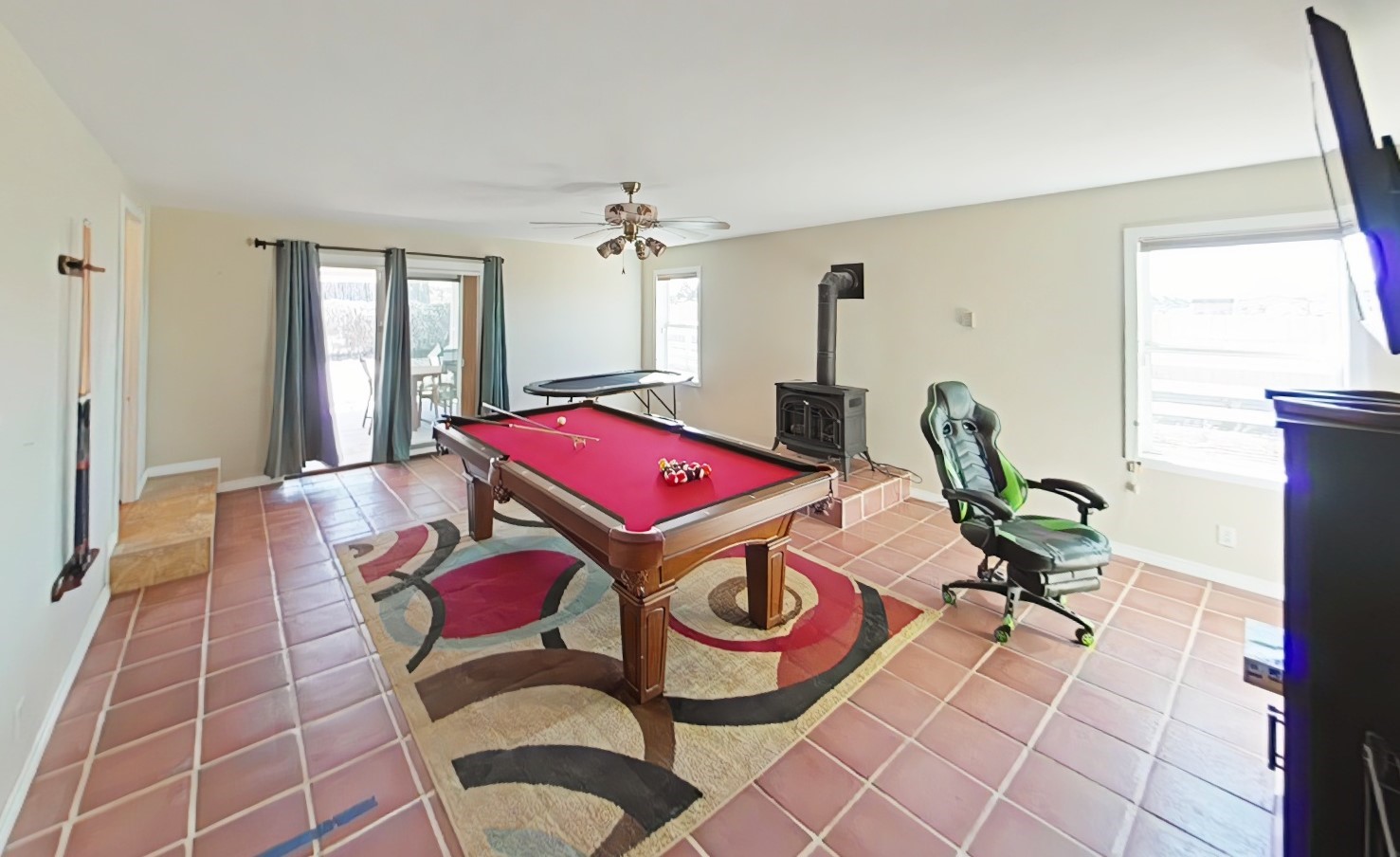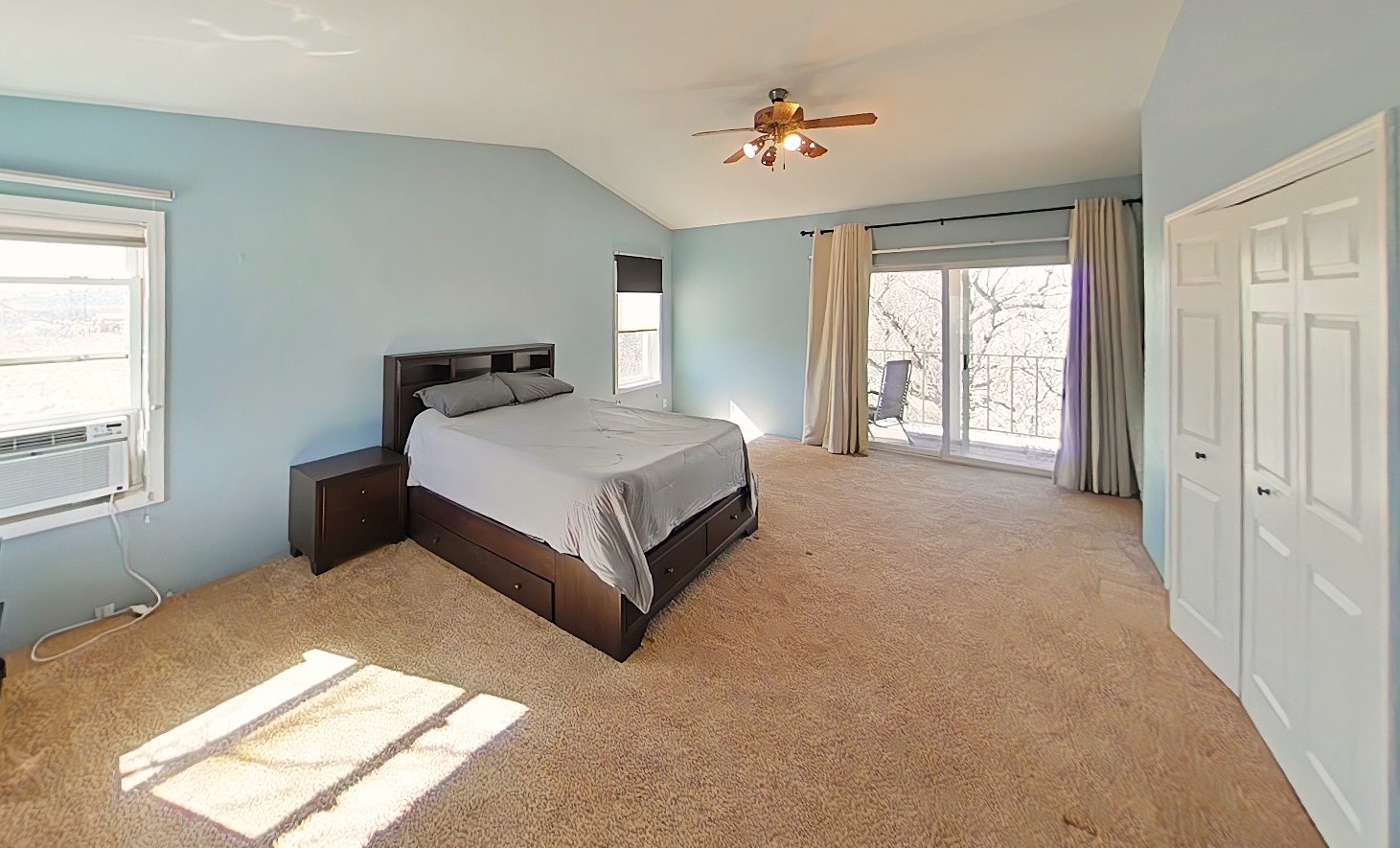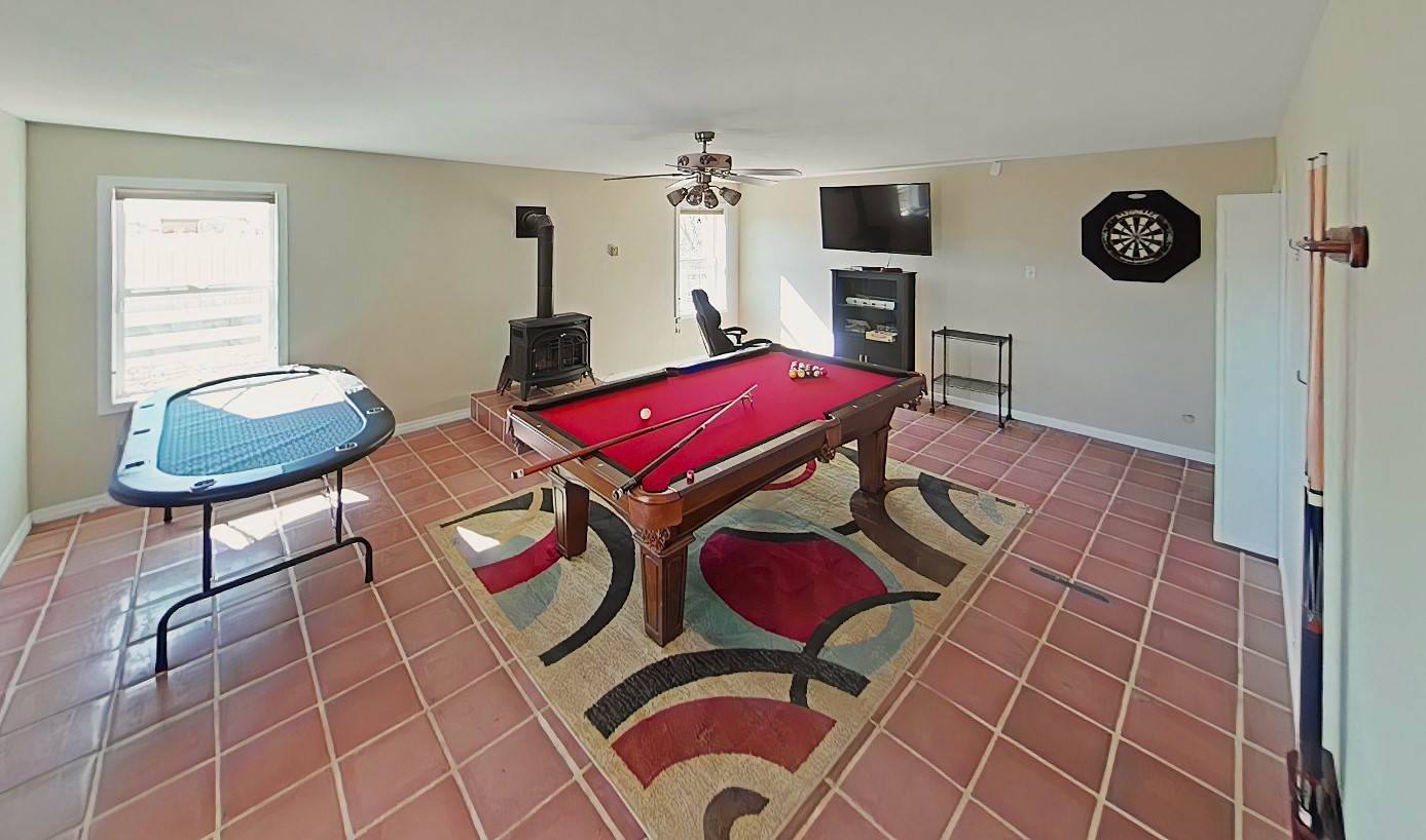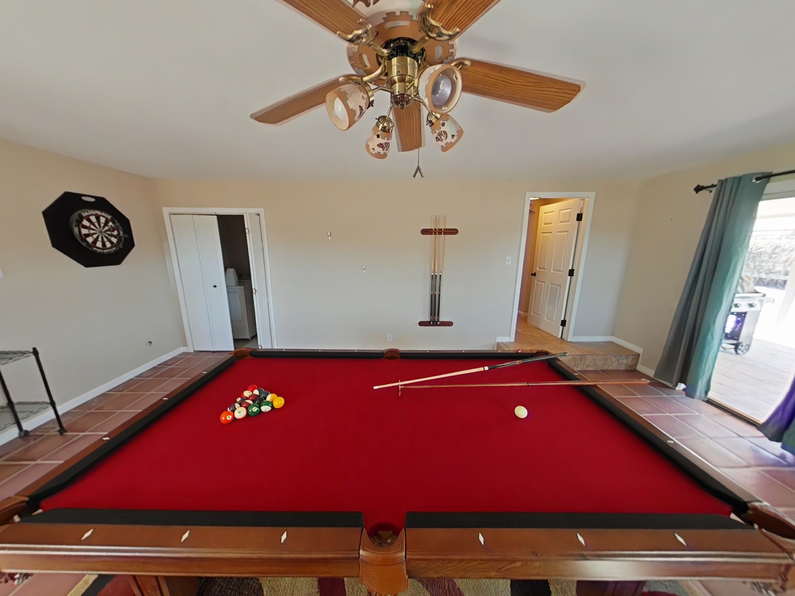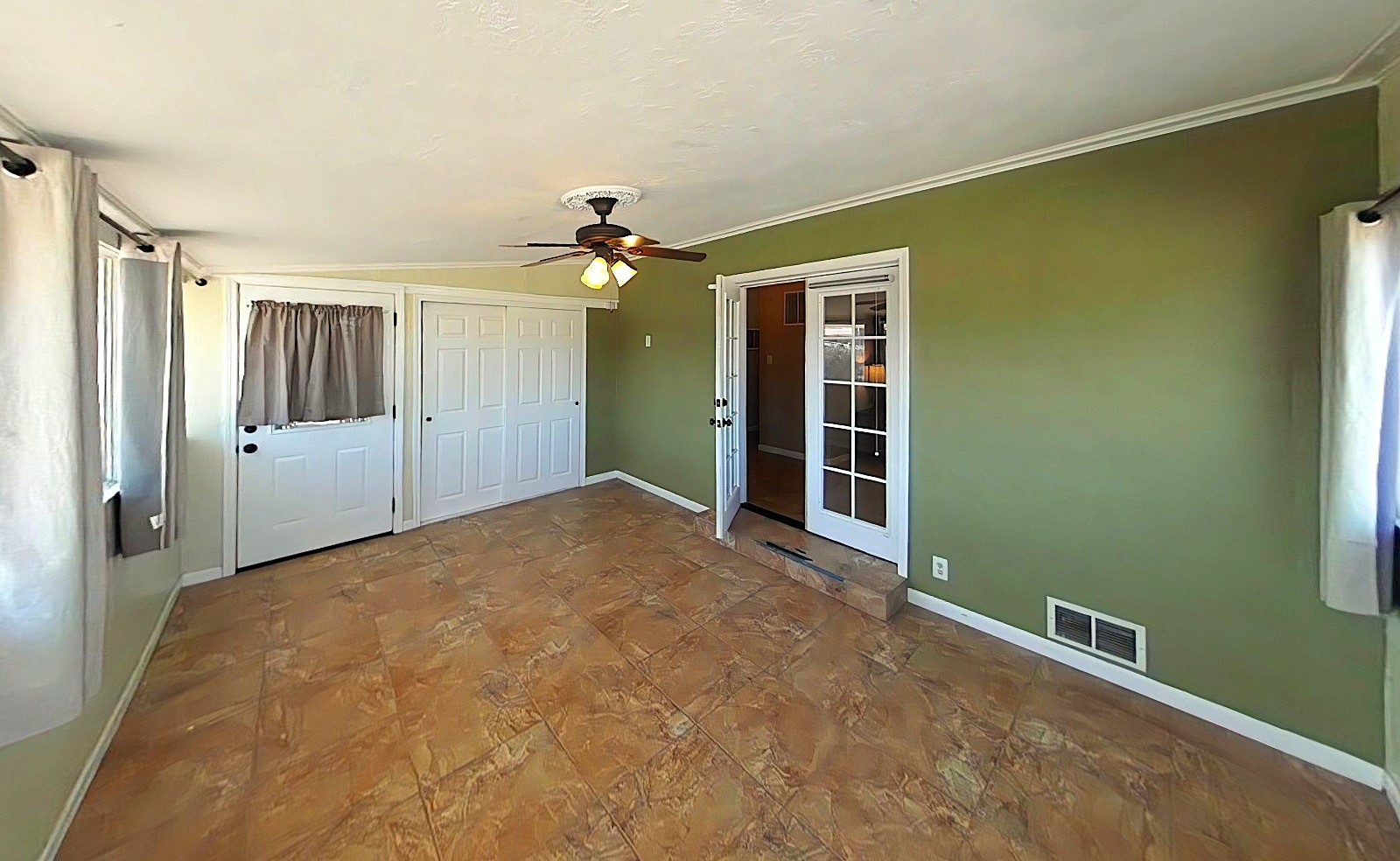 Motivated Seller! Tucked away at the peaceful southside of La Mesilla, this beautifully positioned property borders the tranquil Santa Clara tribes Bosque. The home features a spacious 3-bedroom, 2-bathroom design set on a full acre of land, complete with a barn with individual side access. The barn, situated at the edge of the bosque, features two horse stalls, divided pens, and three designated storage areas.The upstairs primary bedroom includes an ensuite bathroom and a private porch, perfectly placed to capture breathtaking views of Black Mesa and the surrounding bosque. The open living area is highlighted by a high-pitched ceiling, creating an inviting and airy space ideal for gatherings or quiet relaxation. For those seeking a private retreat in a serene setting bordered by mature trees, this property is a rare find you have been needing.