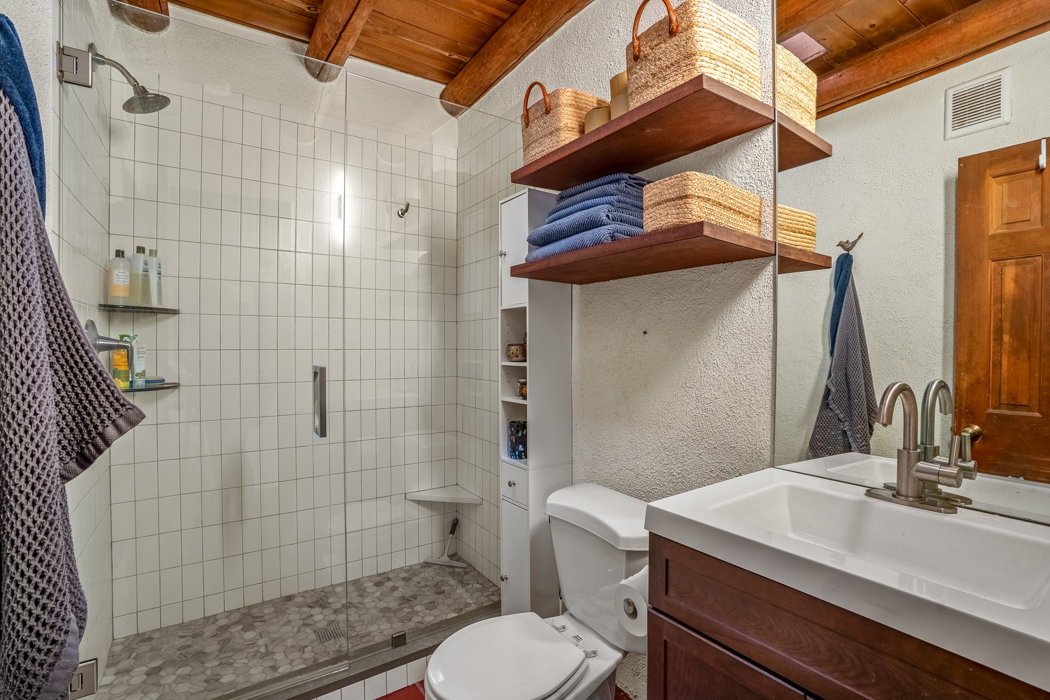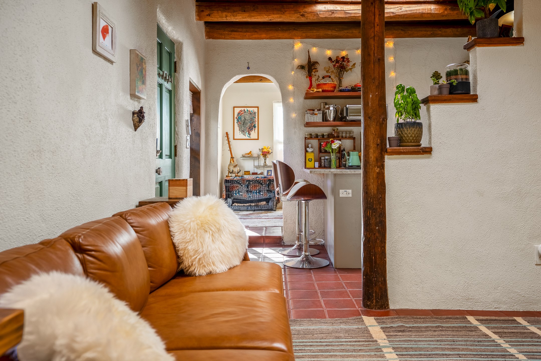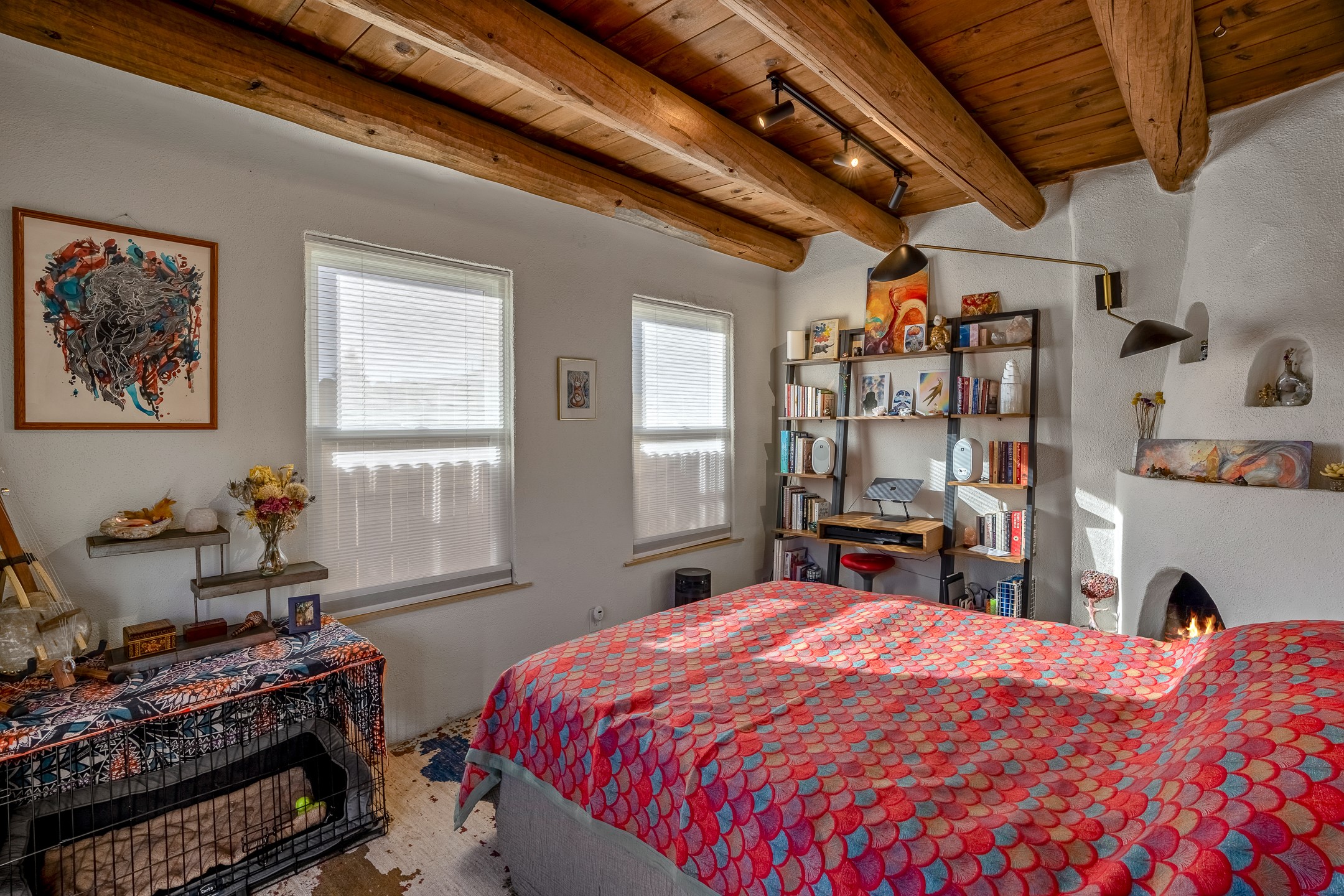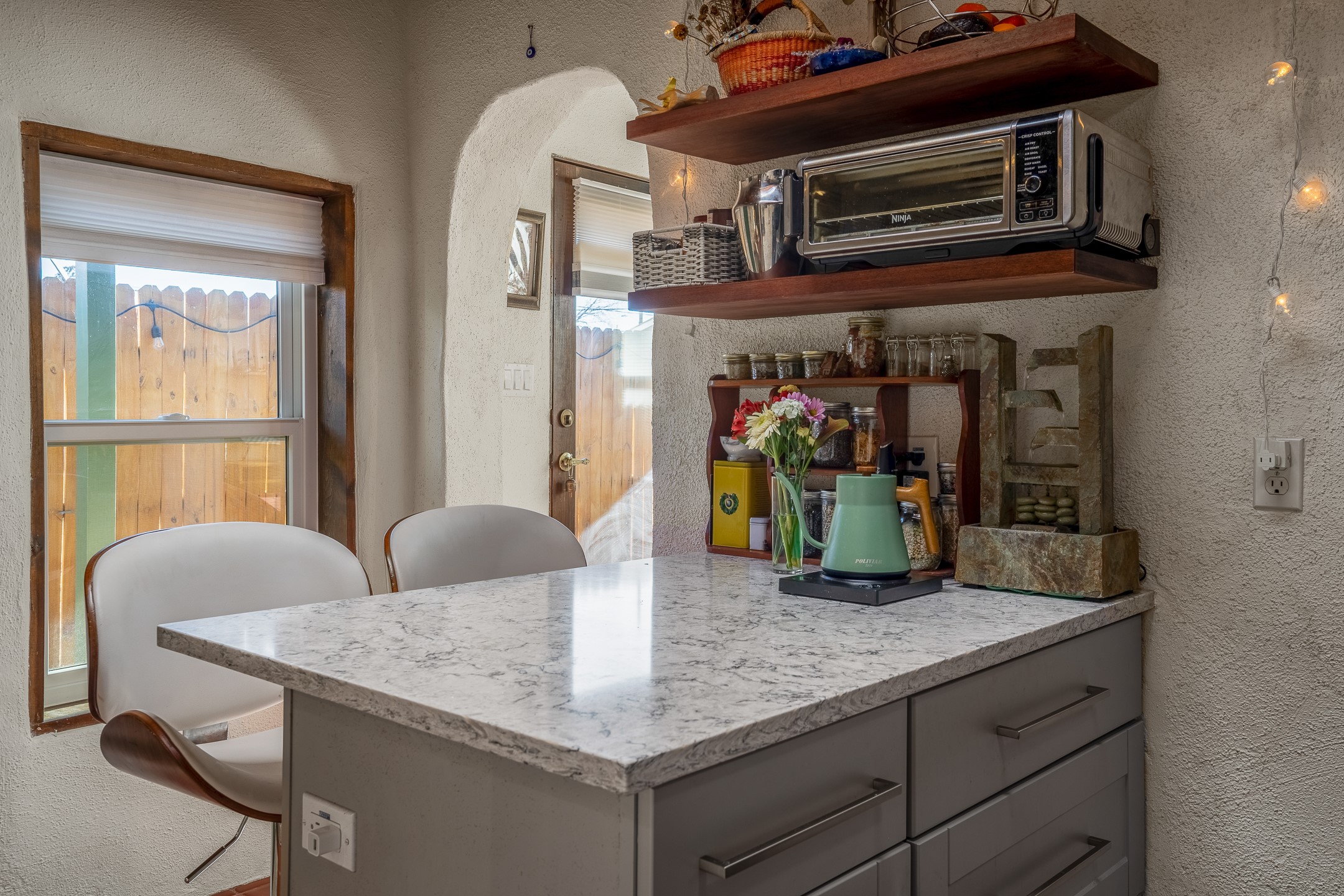 Nestled at the end of a private drive and just minutes from Santa Fe's vibrant Railyard District, this beautifully renovated 1920s casita offers a perfect blend of historic charm and modern sophistication. Whether you're dreaming of your own piece of Santa Fe to call home or seeking a savvy investment, this 1-bedroom, 1-bathroom treasure is brimming with possibilities.From the moment you step inside, you're embraced by Santa Fe's timeless character--exposed vigas, skylights, and an inviting kiva fireplace create a warm and welcoming atmosphere. The thoughtfully designed kitchen showcases a modern aesthetic, featuring designer tiles, stylish lighting, open wooden shelving, and sleek stainless steel appliances. Granite countertops with bar seating add functionality and flair, making this space ideal for casual meals or intimate gatherings.The cozy living room, bathed in natural light, seamlessly connects to the kitchen, ensuring effortless entertaining. The renovated bathroom is stylish in its simplicity with its high ceilings, vigas, and an elegant walk-in shower. Whether you're looking for an investment property or a serene sanctuary to call home, this delightful casita offers a fresh start in Santa Fe's enchanting real estate market. Don't miss the chance to experience the charm and opportunity this home embodies!
