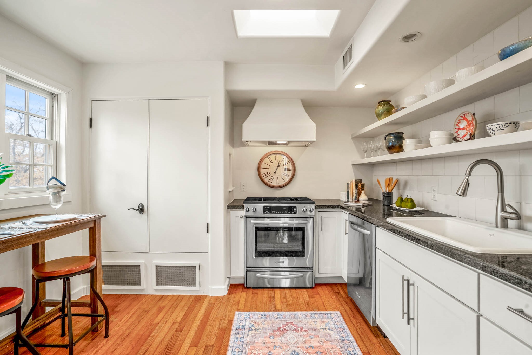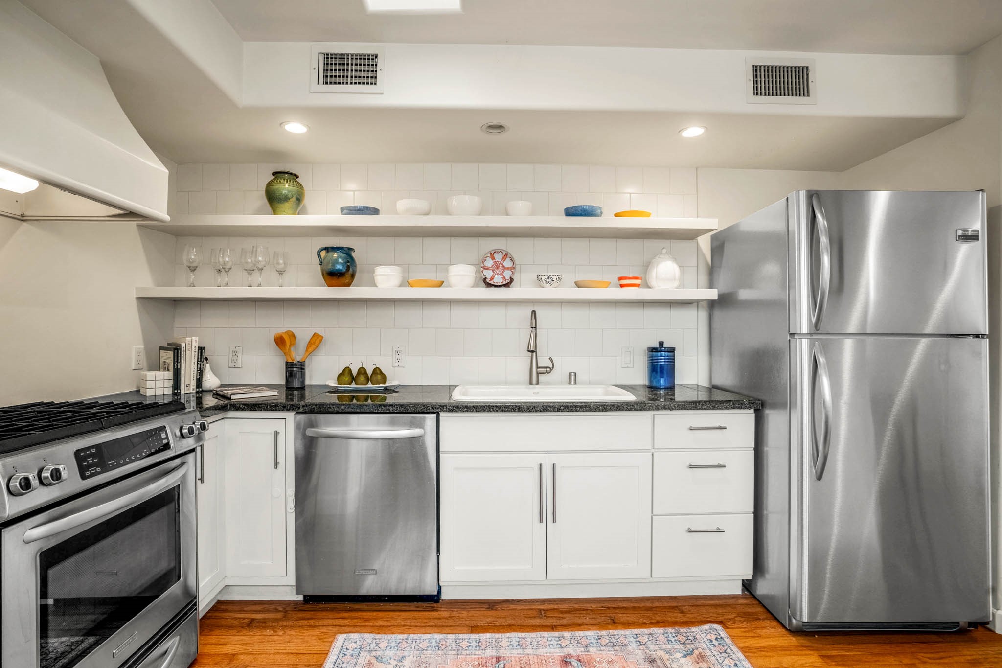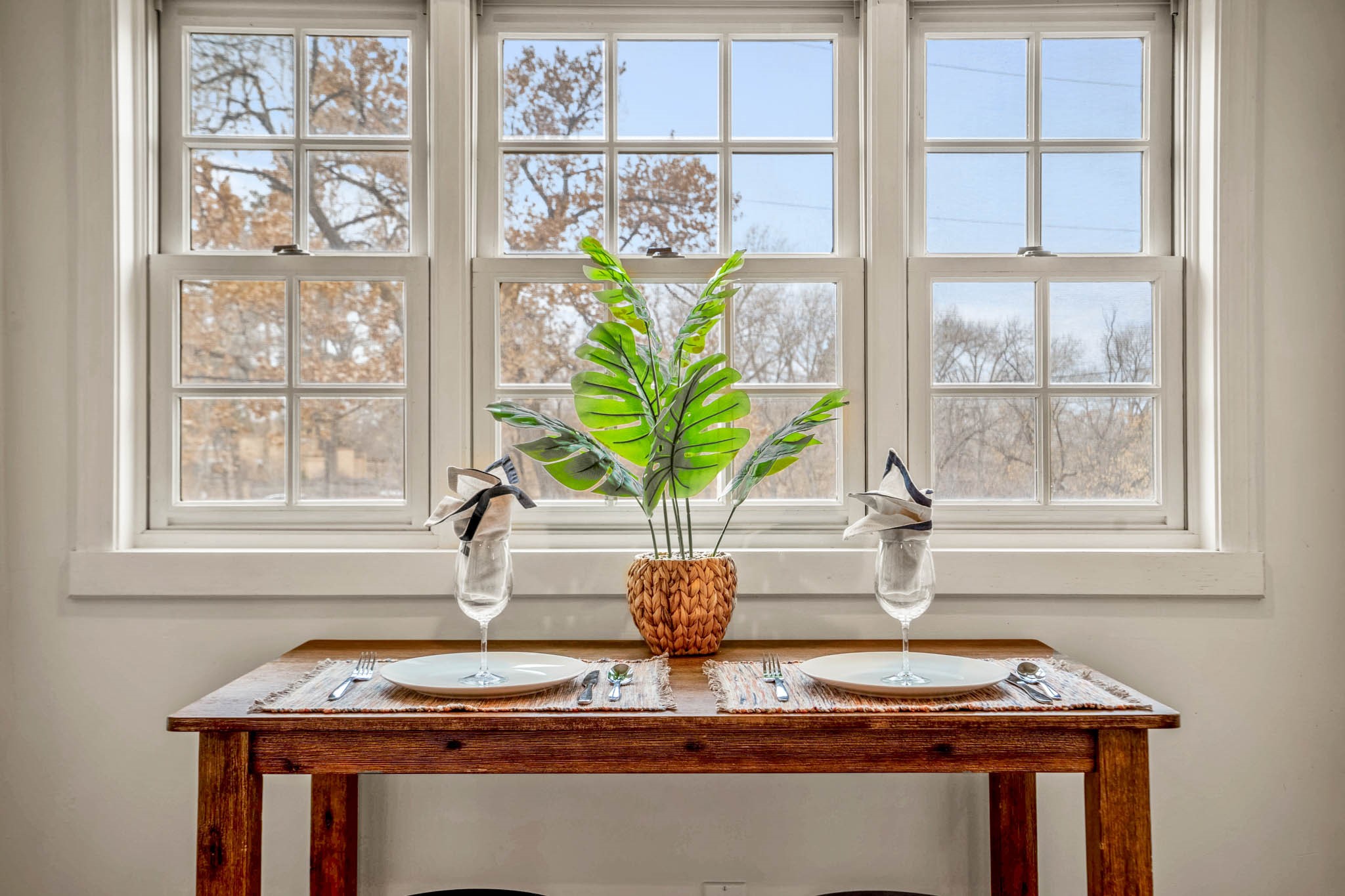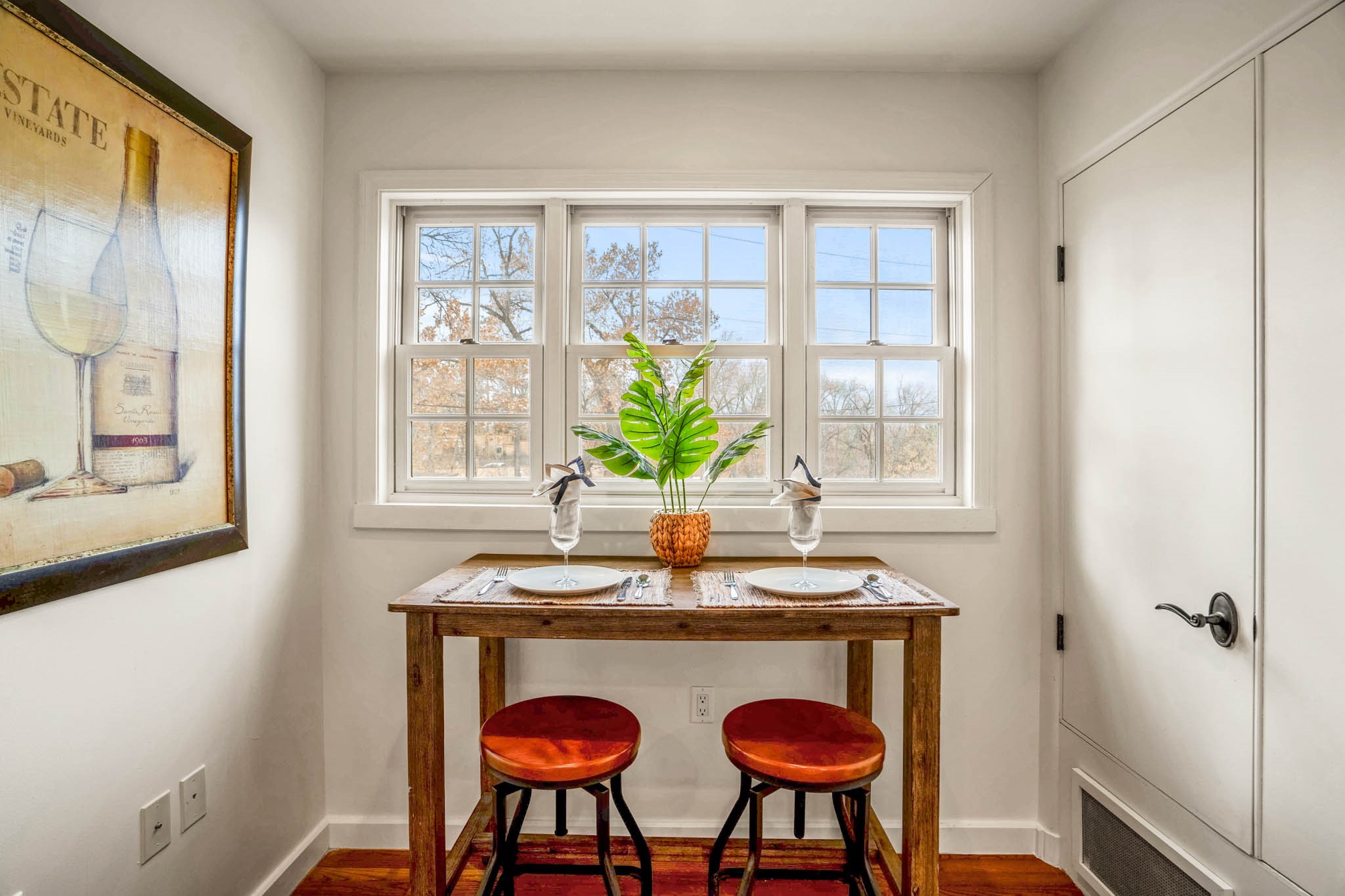 A treasure in Santa Fe's Historic Eastside, this beautiful 1 bedroom/1 bathroom condo, is located across from the Santa Fe River and offers a picturesque view of the river and its towering cottonwoods. Upon entering the home, one experiences a feeling of elegance with solid oak flooring throughout, divided light windows and a corner gas fireplace that enhances the ambiance. The kitchen has stainless steel Kitchen Aid appliances, open shelving and a sweet breakfast nook. In keeping with the level of this property's excellence, the bathroom was renovated in 2020 and has wood plank tile flooring and a deep soaking tub. The spacious bedroom is on the NorthEast side of the property, offering great privacy and serenity. More features: New roof in 2020, 1 designated parking space, forced air heating, refrigerated central air conditioning, an easy stroll to Canyon Rd. This wonderful home is your opportunity to experience living in Santa Fe's Historic Eastside.