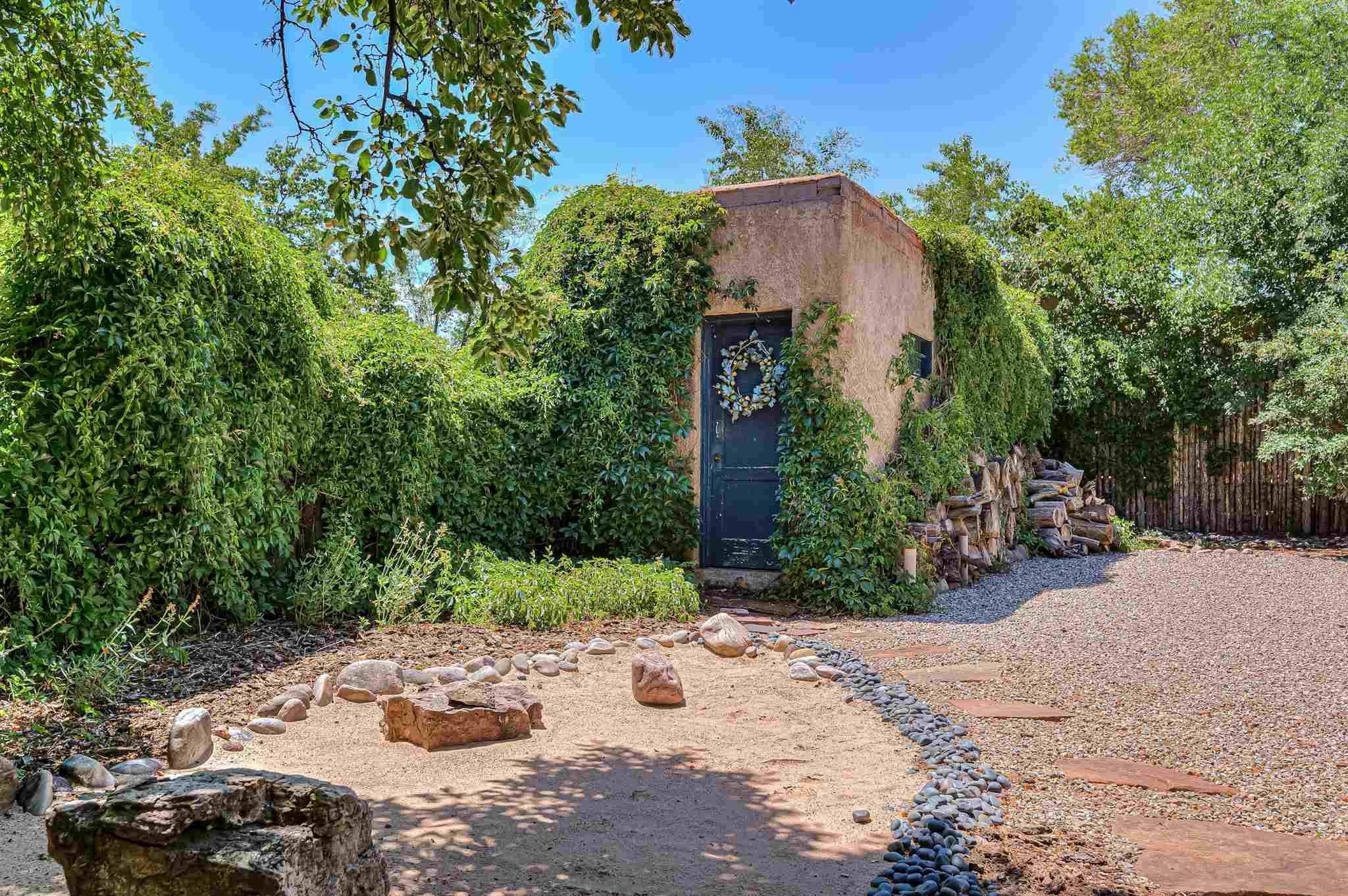 If you are looking for a luxurious home that is close to everything, consider 316 Buena Vista. The photos will give you an over view. Seeing it in person will make the difference. Located on a lush, landscaped acre, both serene and private. This two-level home has been maintained and updated over the years but retains it's original character and charm. The primary suite has large bath with a sauna, a huge closet, an office, work out area, and a sitting area, plus access to a lovely covered and private shaded porch. The second floor also offers another bedroom with a full bath. On the main level there is a wing with a private entrance, including 2 bedrooms full bath and a kitchenette. Perfect for guests. The home is on city water and has a private recently fully refurbished irrigation well and professional level greenhouse equipped with power, water, and heat. Many wonderfully landscaped areas include an in ground hot tub, outdoor dining area with fireplace, and secluded shady nooks for sitting- all on drip irrigation. The property is fully fenced and gated and contains a separate two-car garage and original stone 'shed' for extra storage. recent added 5 mini splits for cooling. Verifiable rental income $2000.00 a night