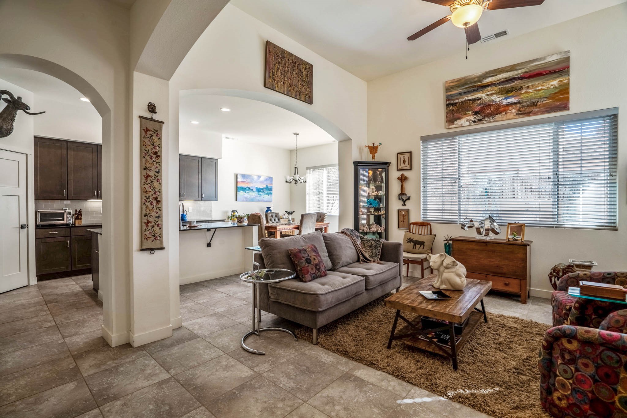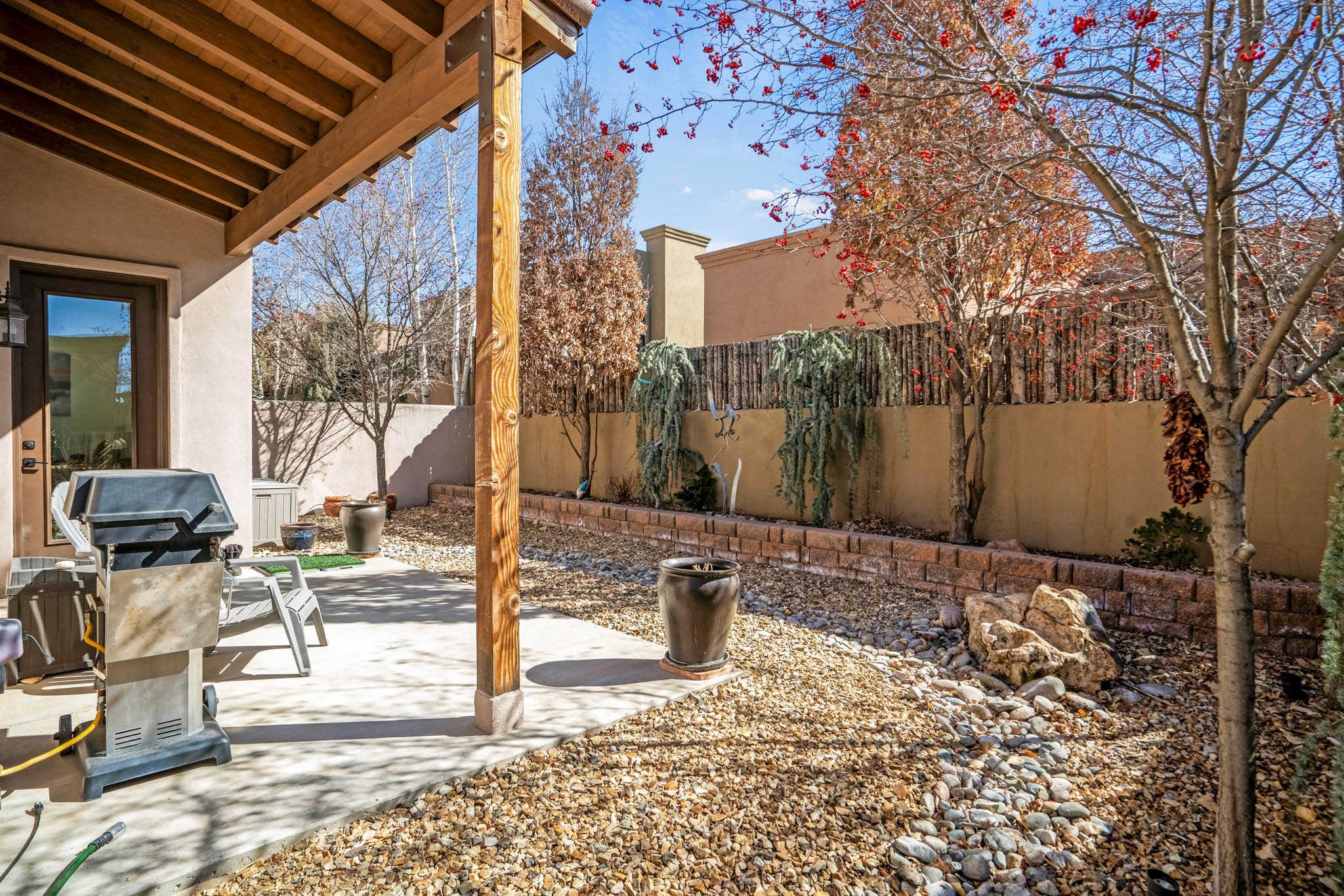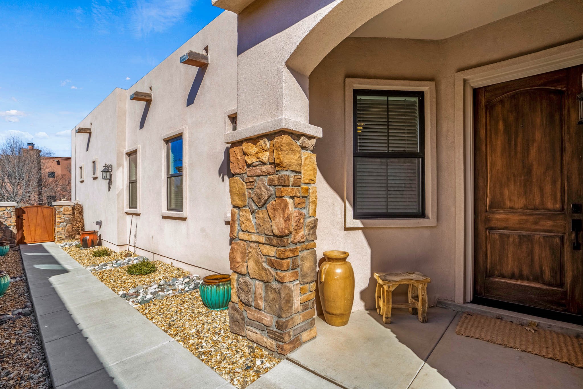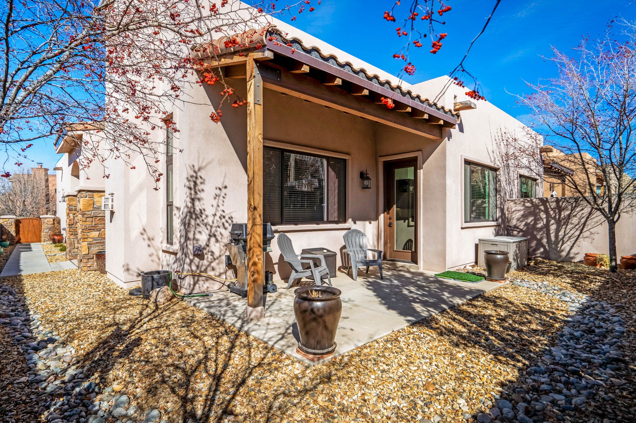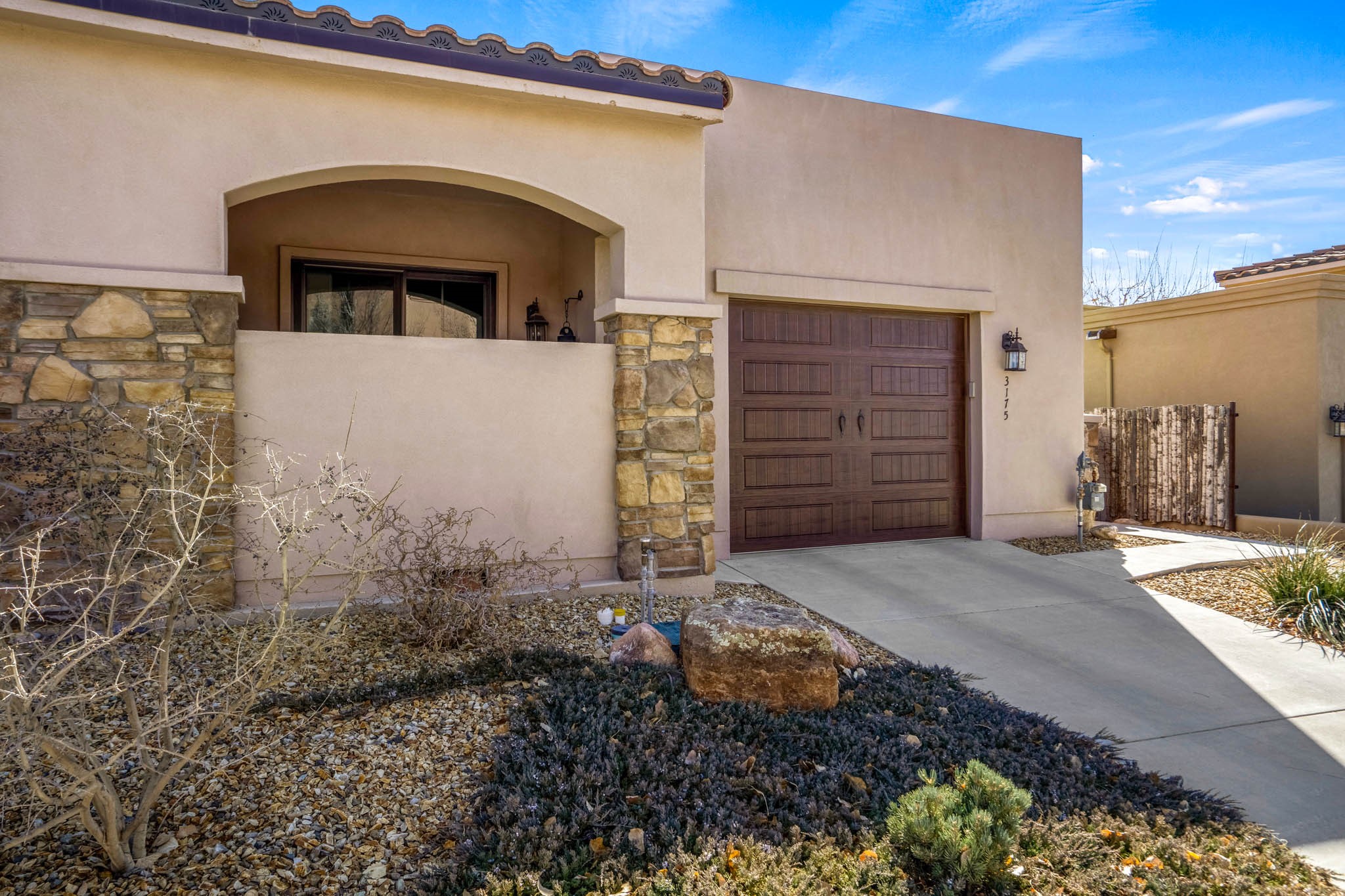 Experience the perfect blend of timeless architecture and modern convenience at 3175 Viale Cetona, a stunning 3-bedroom, 2-bath home in a gated community. From the moment you step inside, you'll be greeted by soaring high ceilings and premium finishes that create an atmosphere of refined elegance. The well-appointed kitchen is a chef's dream, featuring KitchenAid appliances, pull-out drawers in the cabinets, and ample space for cooking and entertaining. The primary suite offers a serene retreat with a walk-in shower, a spacious walk-in closet upgraded with an Easy Closet system, and thoughtful design touches throughout. Enjoy the beautifully landscaped courtyards, complete with a drip irrigation system, perfect for Santa Fe's sunny climate. Additional features include refrigerated air conditioning, a one-car garage with extra storage, and close proximity to shopping and easy travel access. This home combines luxurious comfort and practicality, making it an exceptional opportunity in a desirable Santa Fe community.