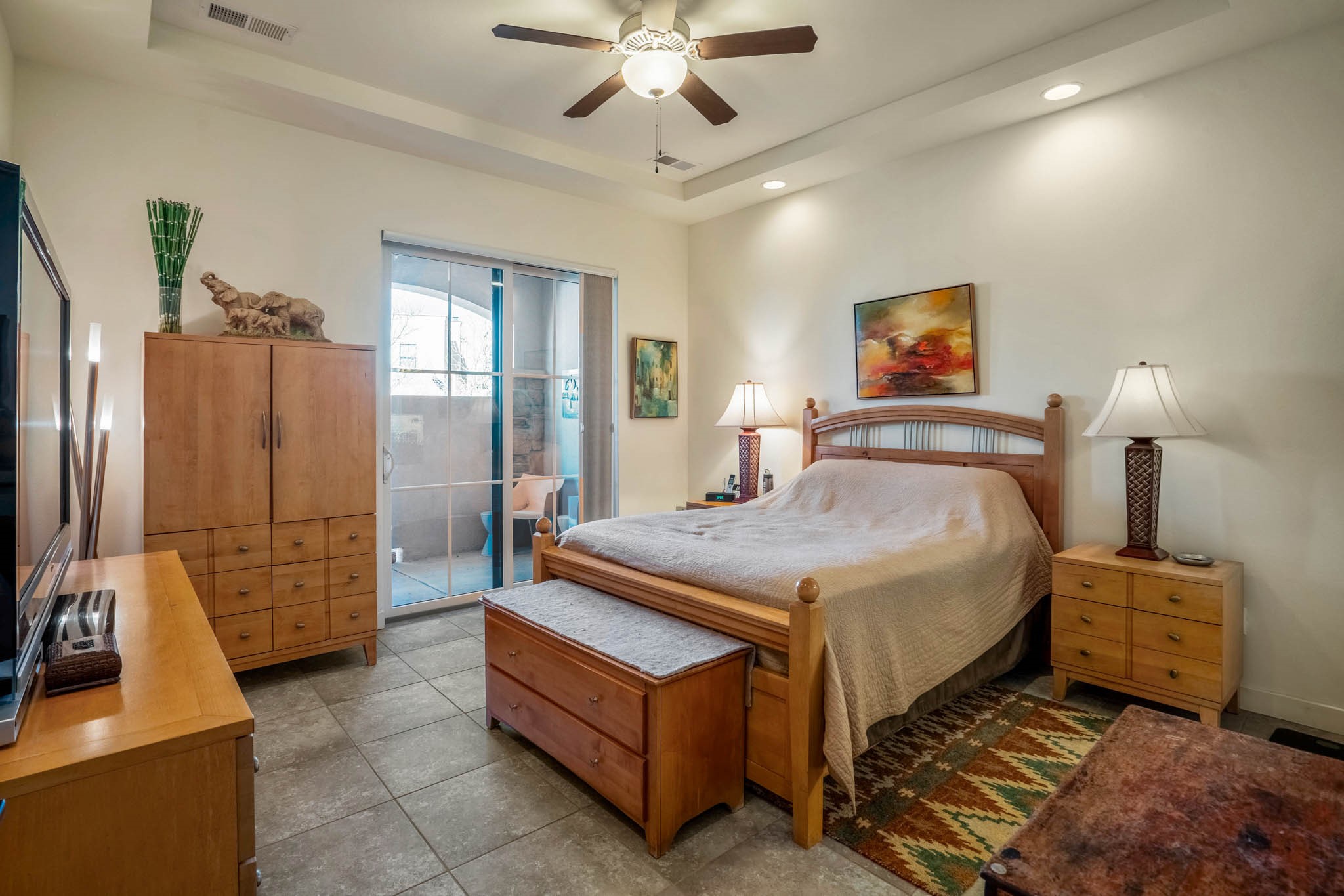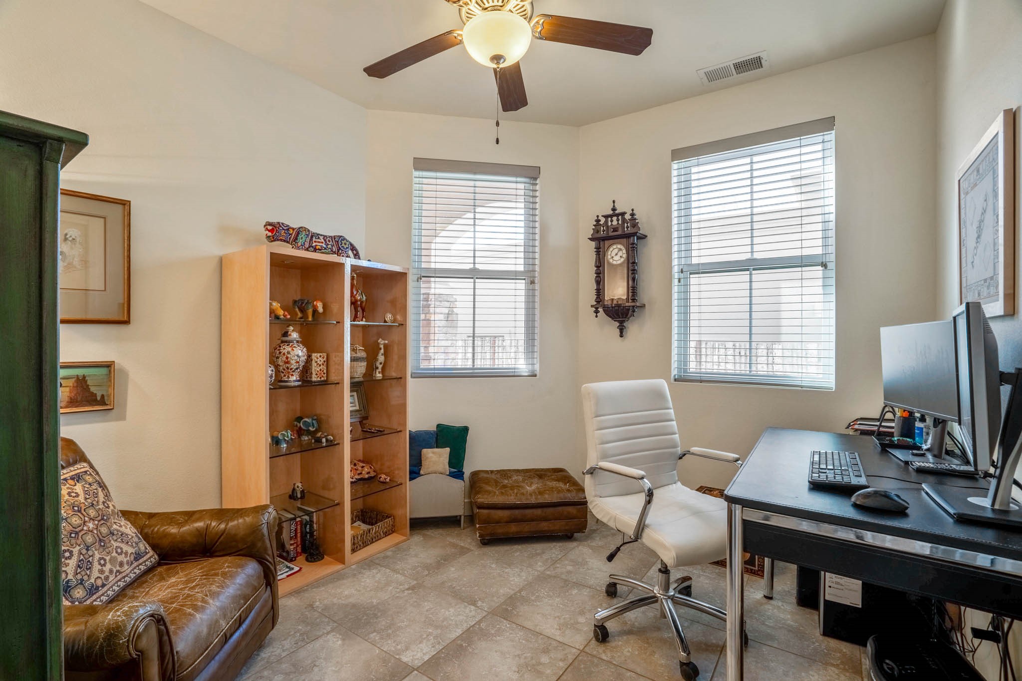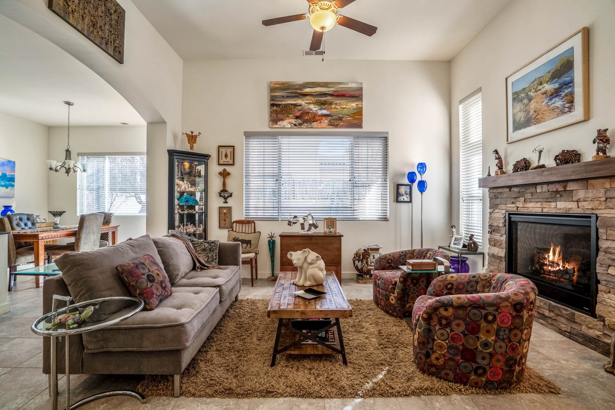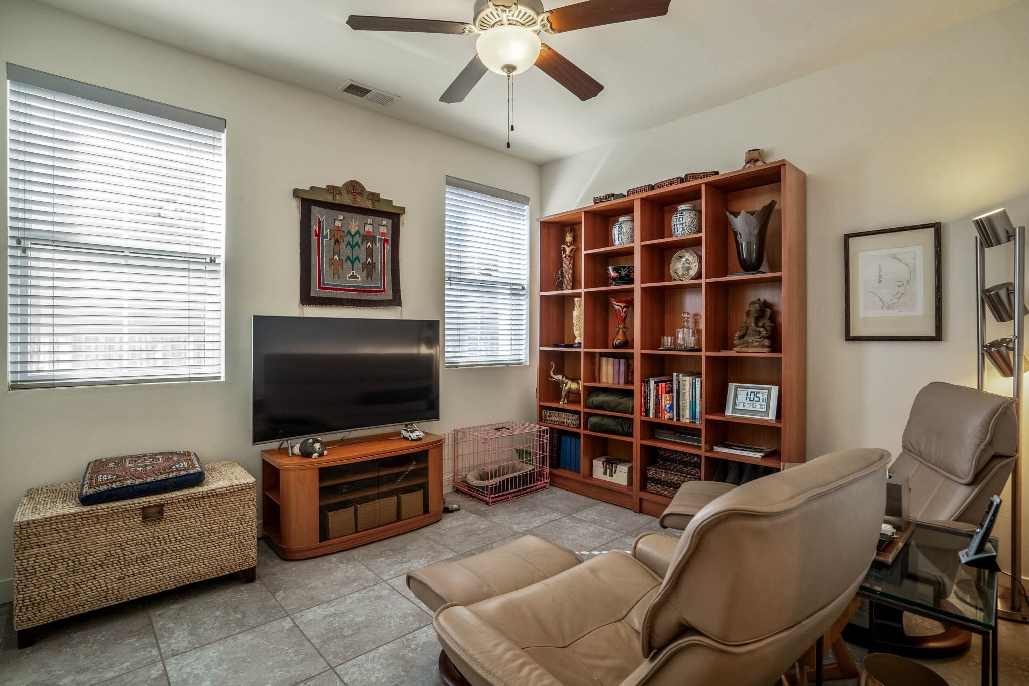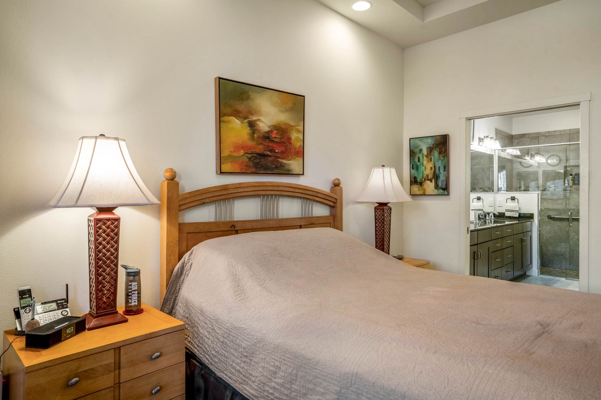 Experience the perfect blend of timeless architecture and modern convenience at 3175 Viale Cetona, a stunning 3-bedroom, 2-bath home in a gated community. From the moment you step inside, you'll be greeted by soaring high ceilings and premium finishes that create an atmosphere of refined elegance. The well-appointed kitchen is a chef's dream, featuring KitchenAid appliances, pull-out drawers in the cabinets, and ample space for cooking and entertaining. The primary suite offers a serene retreat with a walk-in shower, a spacious walk-in closet upgraded with an Easy Closet system, and thoughtful design touches throughout. Enjoy the beautifully landscaped courtyards, complete with a drip irrigation system, perfect for Santa Fe's sunny climate. Additional features include refrigerated air conditioning, a one-car garage with extra storage, and close proximity to shopping and easy travel access. This home combines luxurious comfort and practicality, making it an exceptional opportunity in a desirable Santa Fe community.