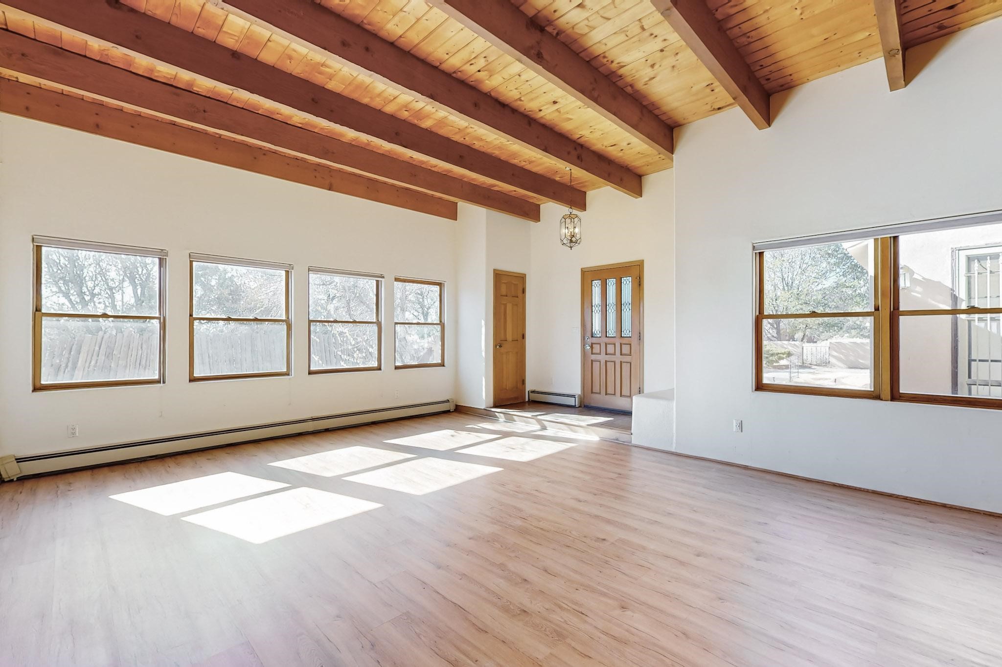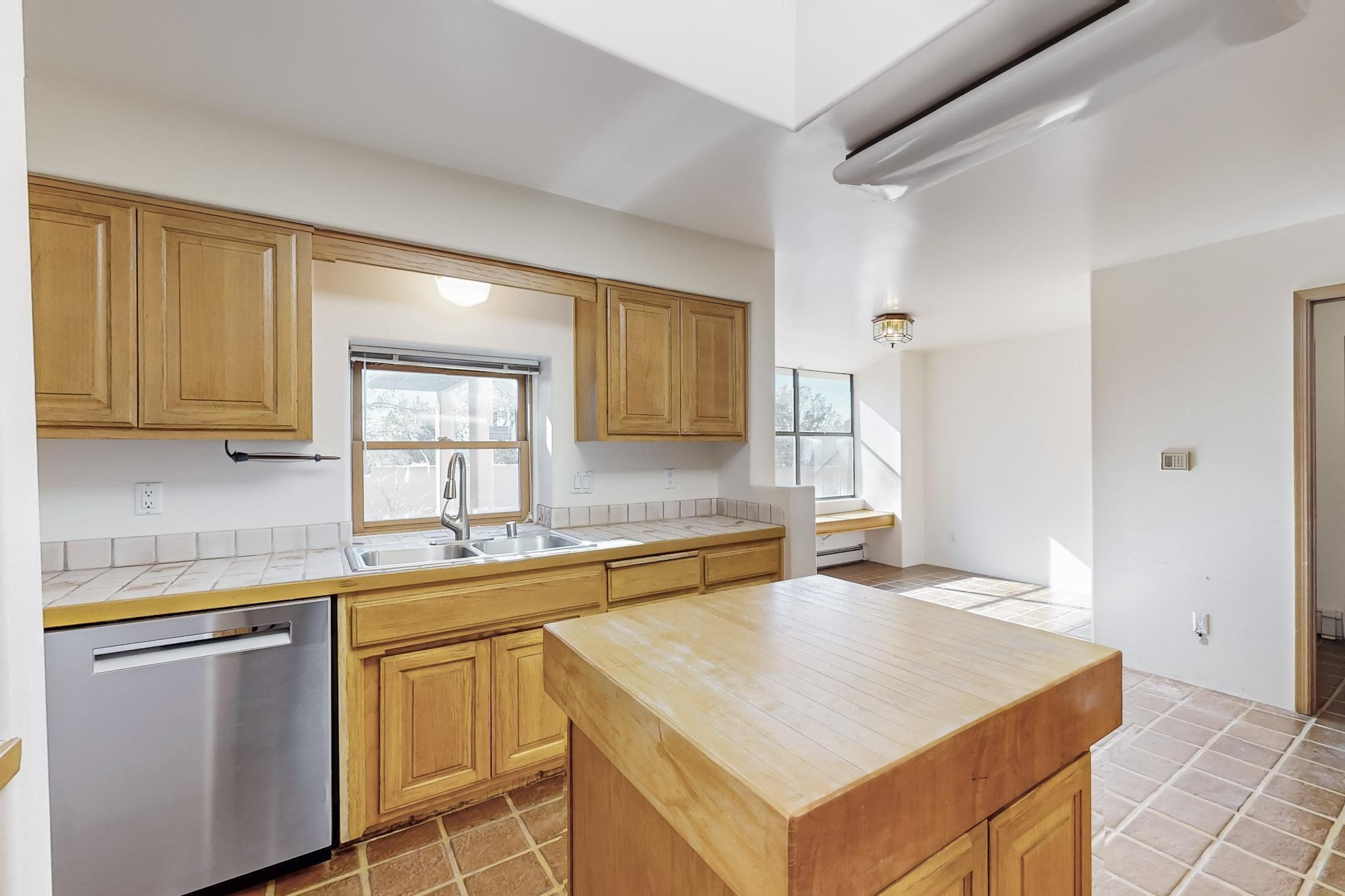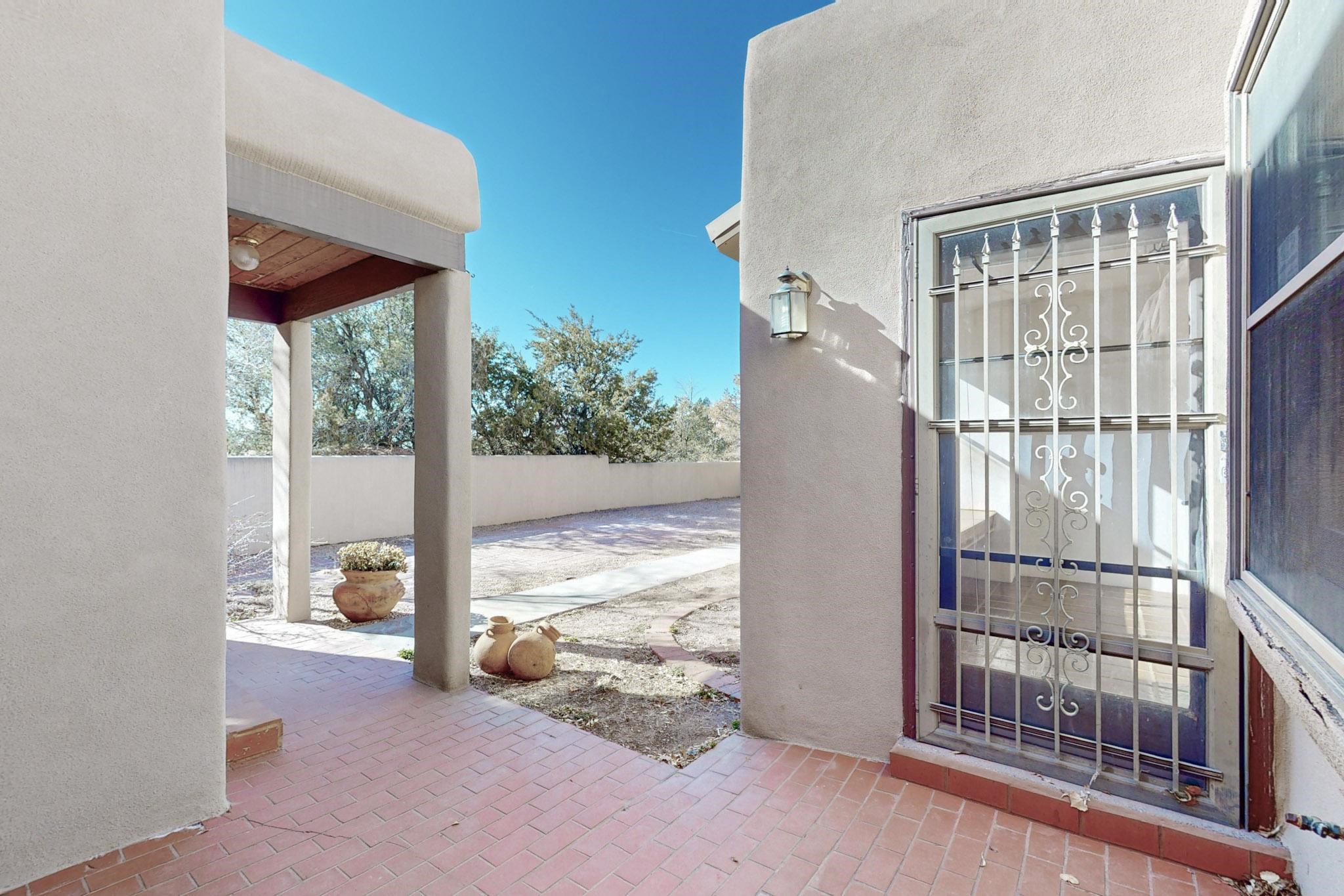 Opportunity knocks for those looking for a spacious one level townhouse is sought after community of Valle del Sol, less than a block to Ft. Marcy Park where you can enjoy a city recreation center, pickle ball courts and dog park. This is an excellent proximity to downtown Santa Fe! Two bedrooms, two full baths. Primary suite has a tub and shower, plus walk-in closet. This property has tremendous investment potential for the buyer who wants to modernize it. Upgraded kitchen appliances in place. The brand new TPO Roof comes with a 10-year labor warranty and 20 year manufacturer warranty transferrable at no cost to the new owner. Home is pre-inspected including a radon test.