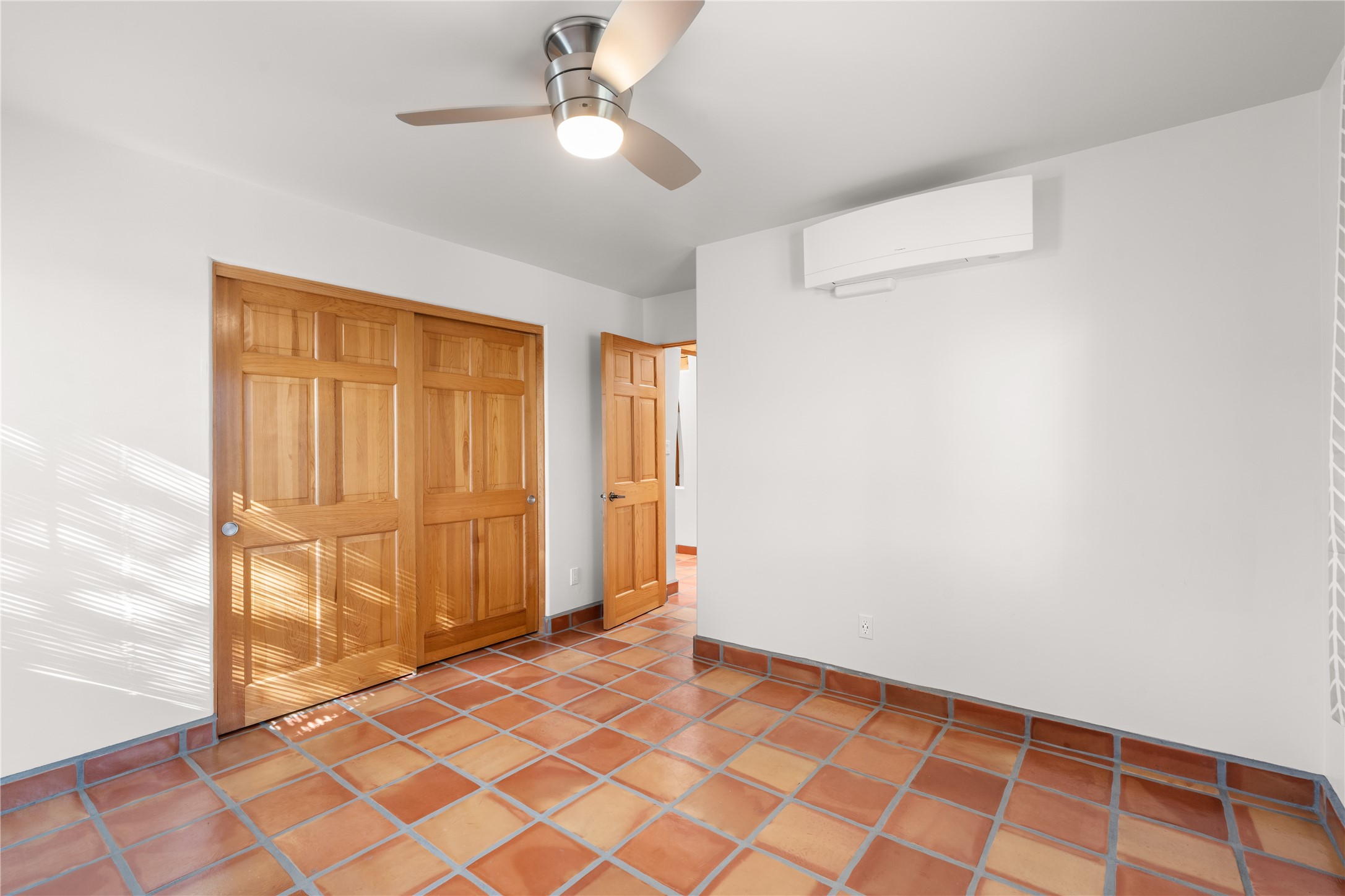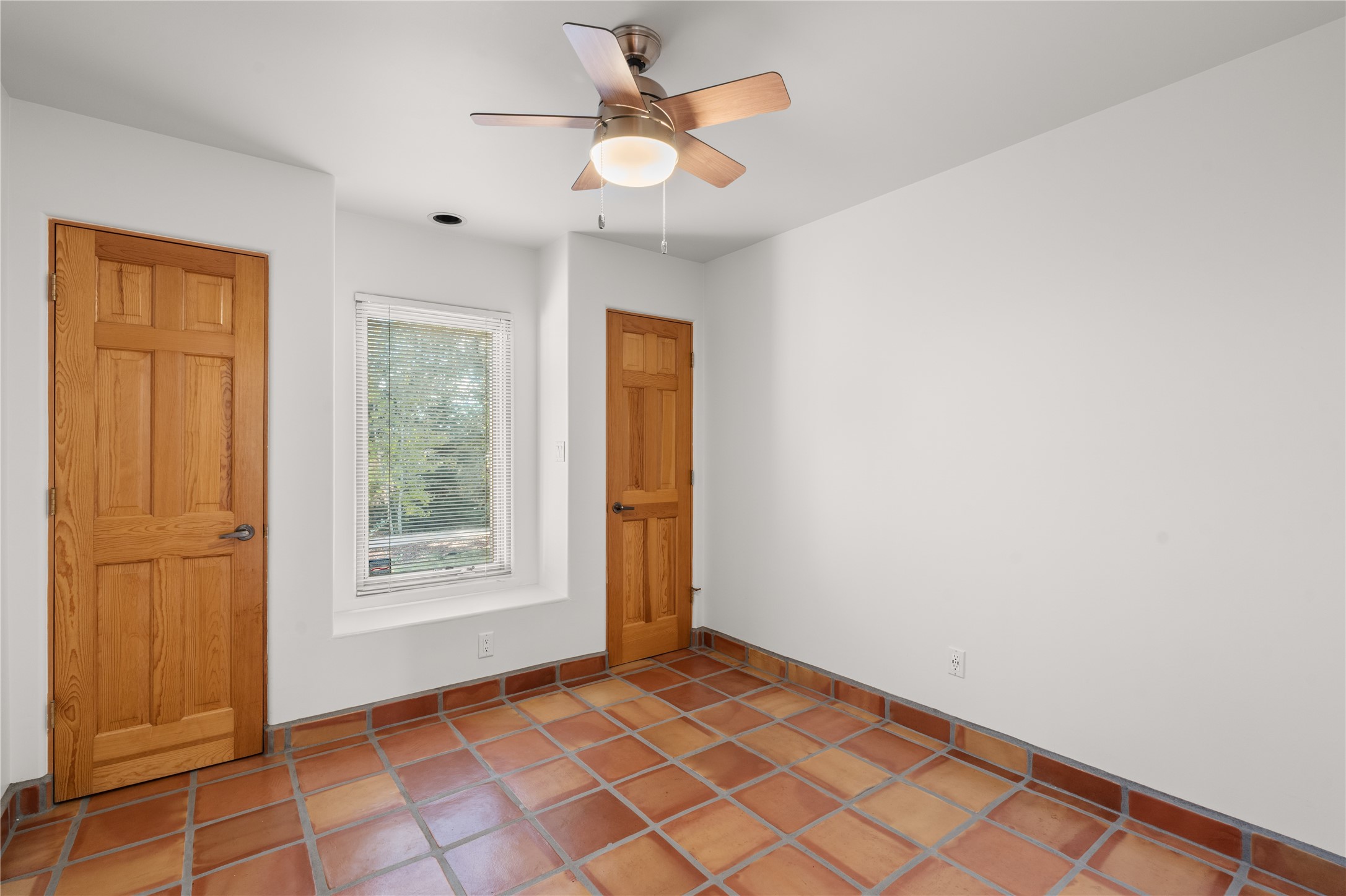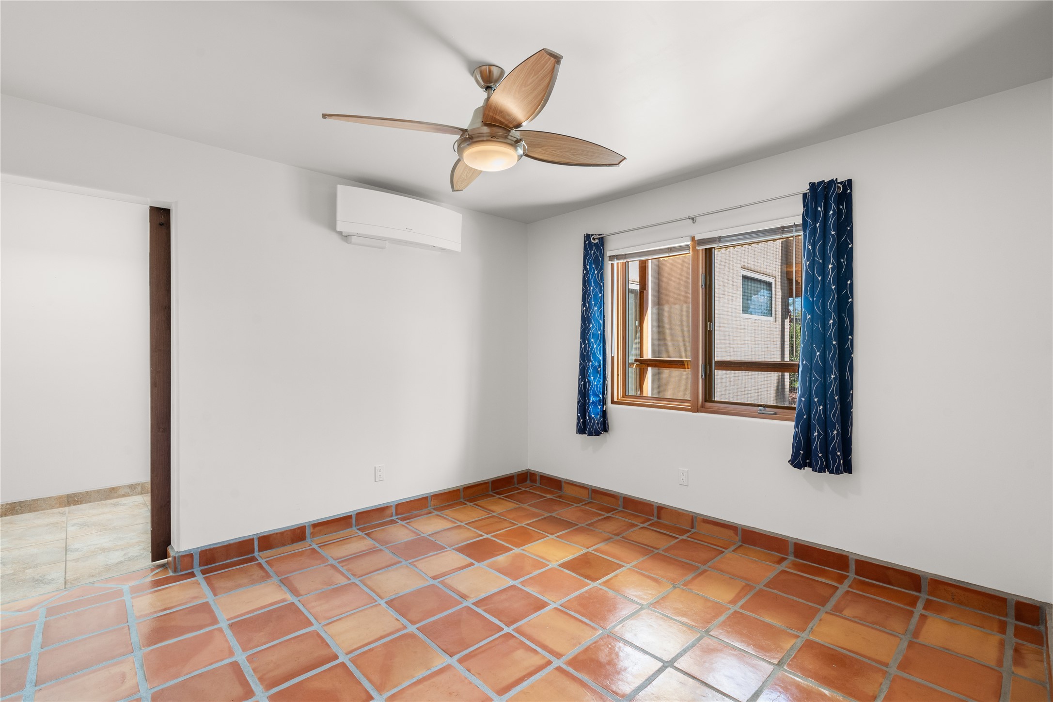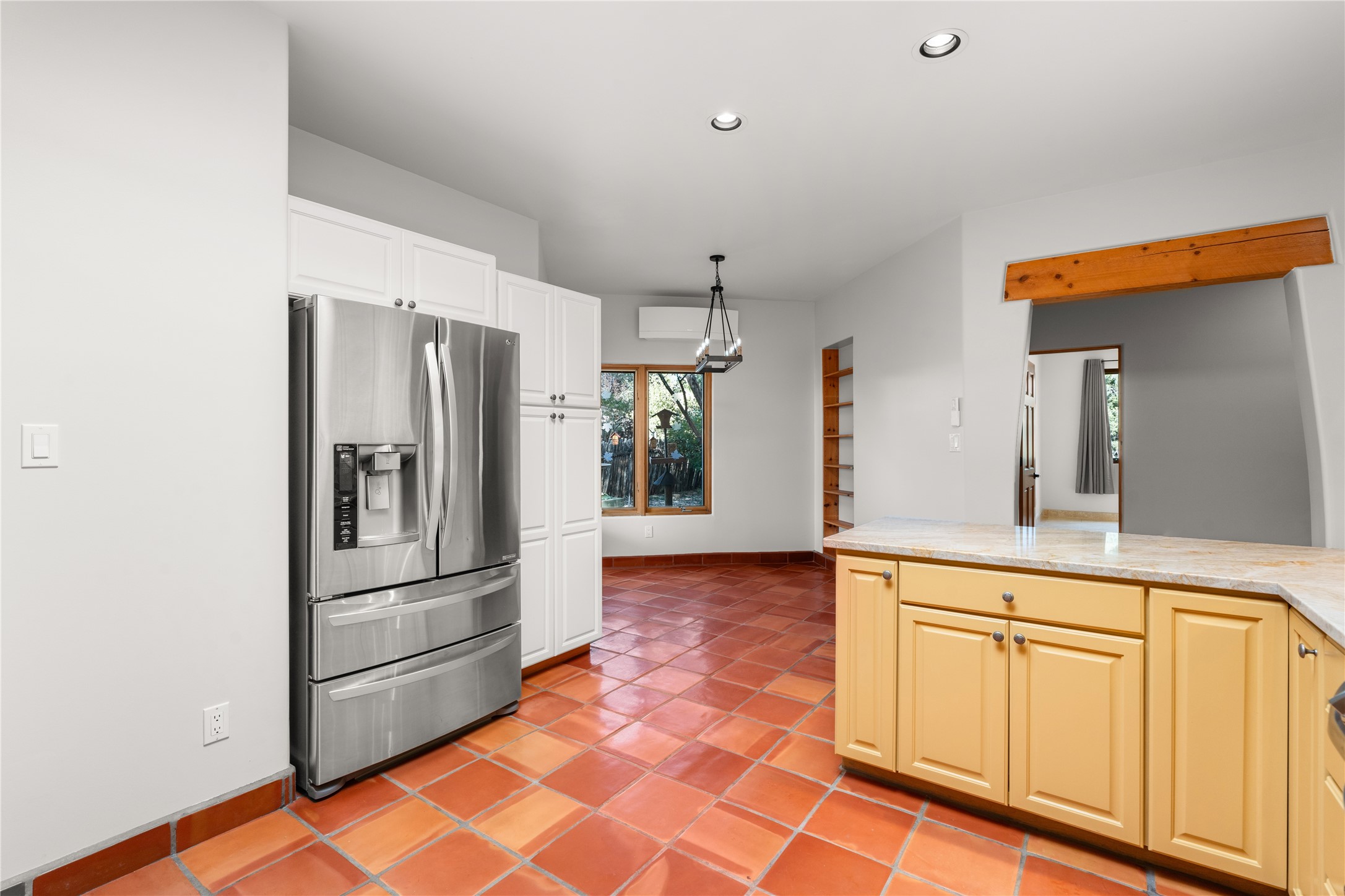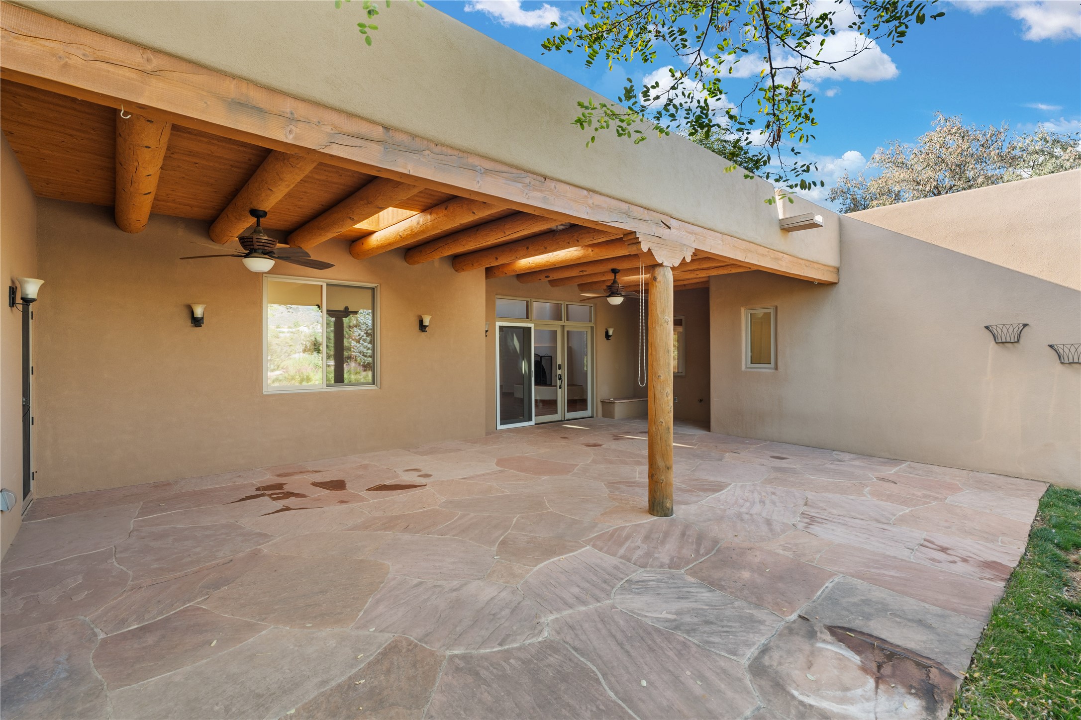 Tucked away off a serene cul-de-sac, this entirely single level, meticulous Santa Fe style home must be seen! Located on the city's lower east side near the medical district and St. Michael's High School, everything you need is a short drive away. The home is situated on a huge, beautifully landscaped lot with a peak of mountain views. For the enjoyment of your private sanctuary, there is a 455 sq. ft. portal with vigas and wood decking above and flagstone flooring below that is a true extension of your living space with Santa Fe's delightful climate many months of the year. The home is immaculate and offers incredible flexibility with a spacious studio or office addition. With a private entrance, this light and airy room with a multitude of windows could also function as a mother-in-law suite with a beautiful bathroom nearby featuring a walk-in shower. The living room boasts soaring ceilings with vigas and wood ceiling and an amazing kiva fireplace that commands attention. The primary bedroom is private and spacious and the remodeled bath with a gorgeous shower and huge walk-in closet will not disappoint. The home also features three other bedrooms with beautifully renovated guest bath. The kitchen is lovely with quartz counter tops and high end stainless steel appliances and more than sufficient storage for all your culinary needs. For your dining requirements, the home offers a charming breakfast nook replete with windows bringing the lovely outdoors in as well as a more formal dining space. There is a fabulous laundry room with cabinets, built in sink, and a window to the backyard. The home also features 7 nearly new mini-splits which offer both heating and cooling for year round comfort and a two car attached garage. This home is truly a gem! If you are seeking a home full of Santa Fe charm, character, and thoughtful upgrades- all in a prime location that allows for privacy and convenience, this property is not to be missed!