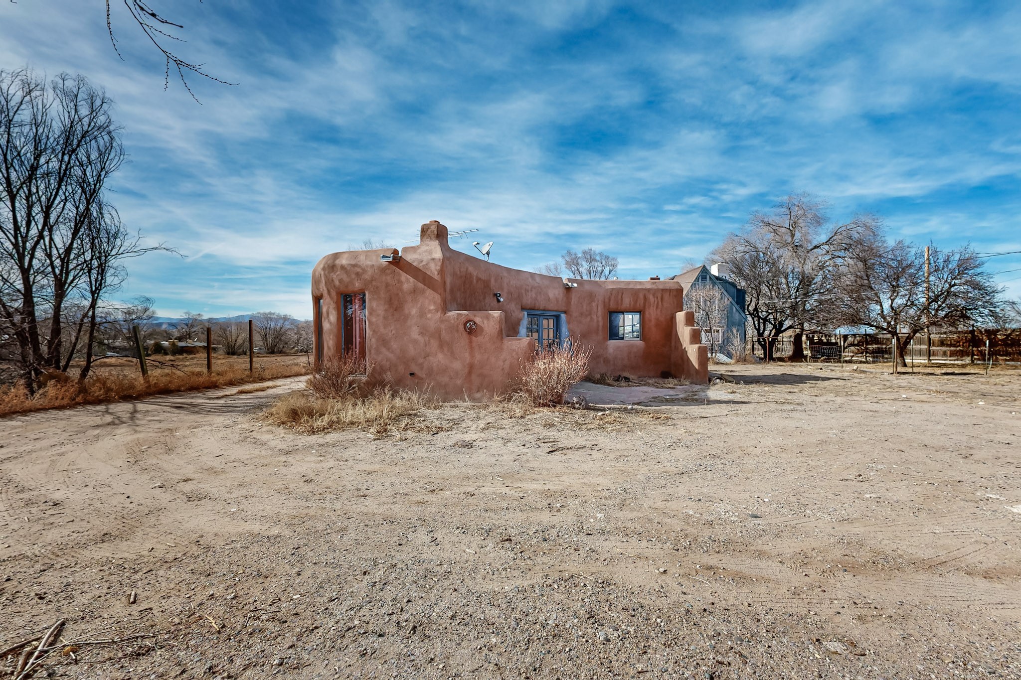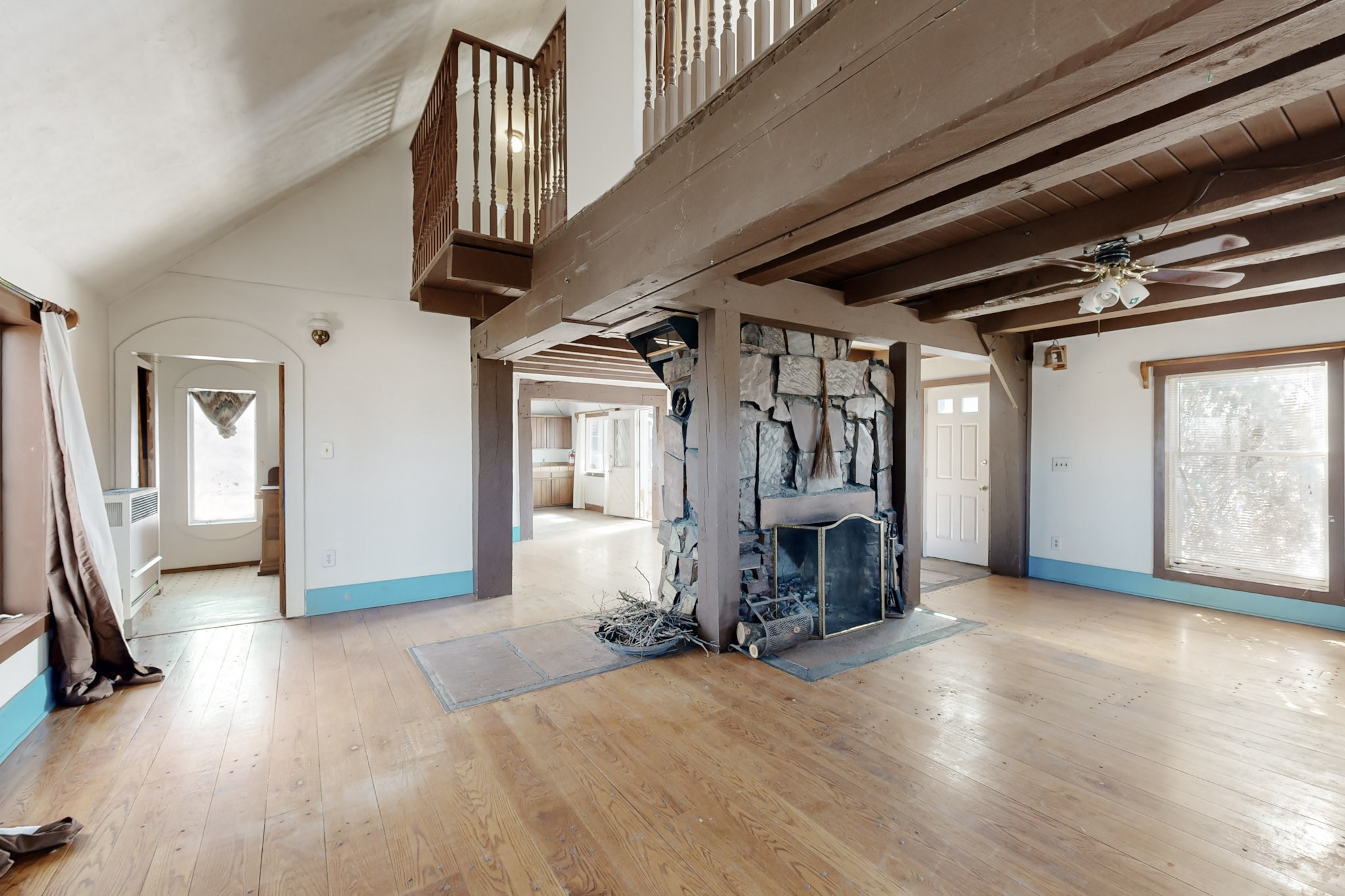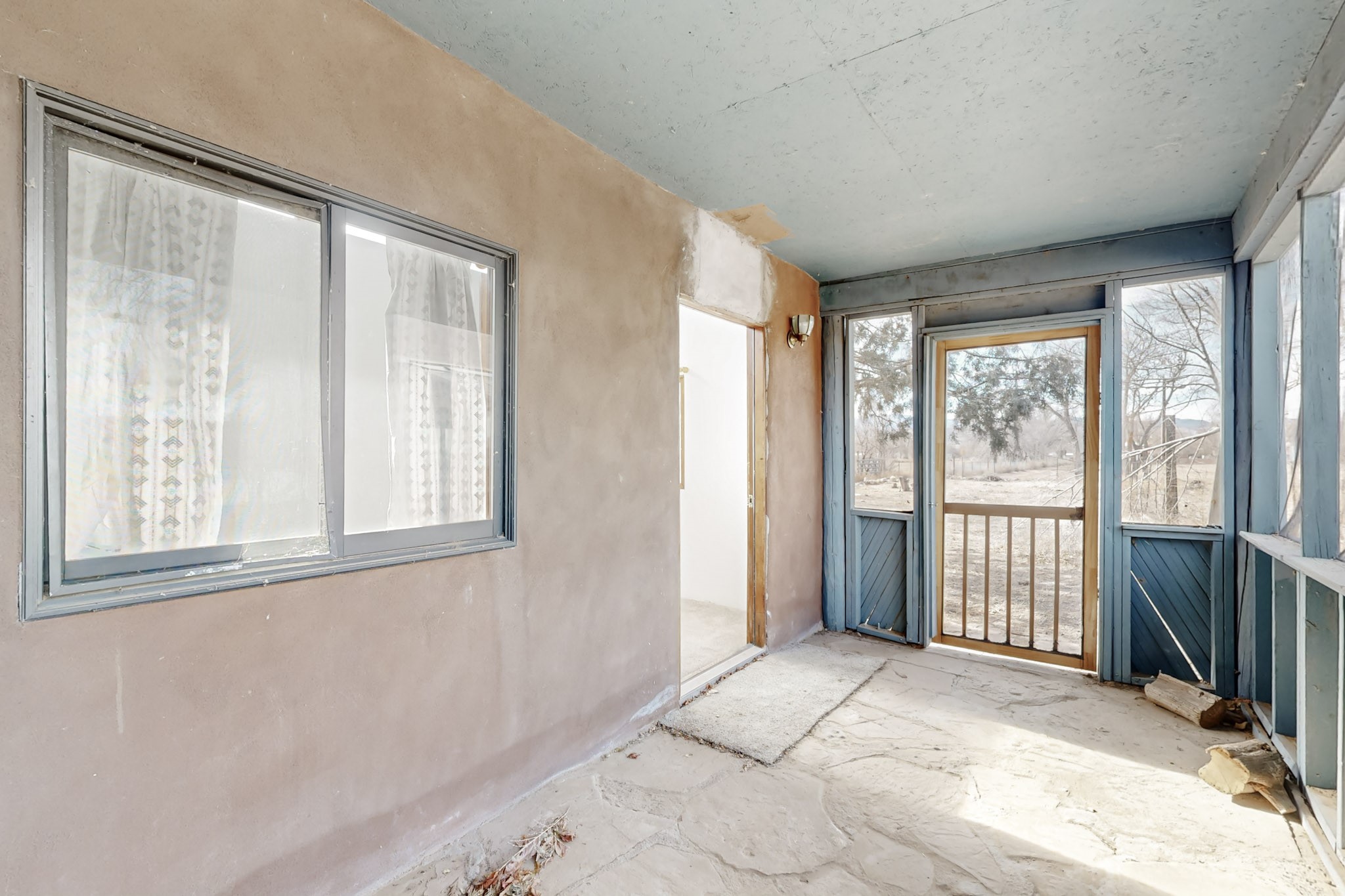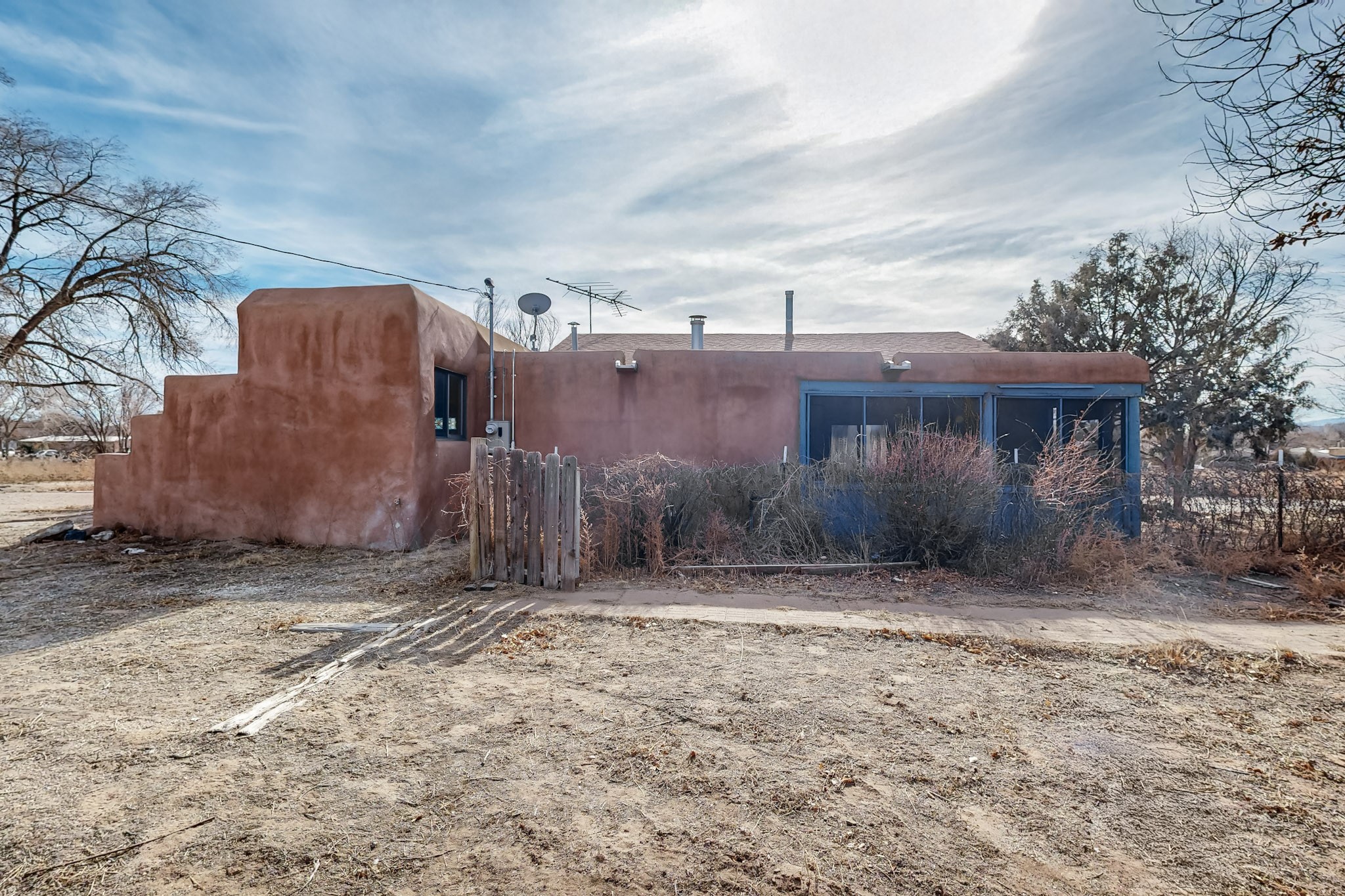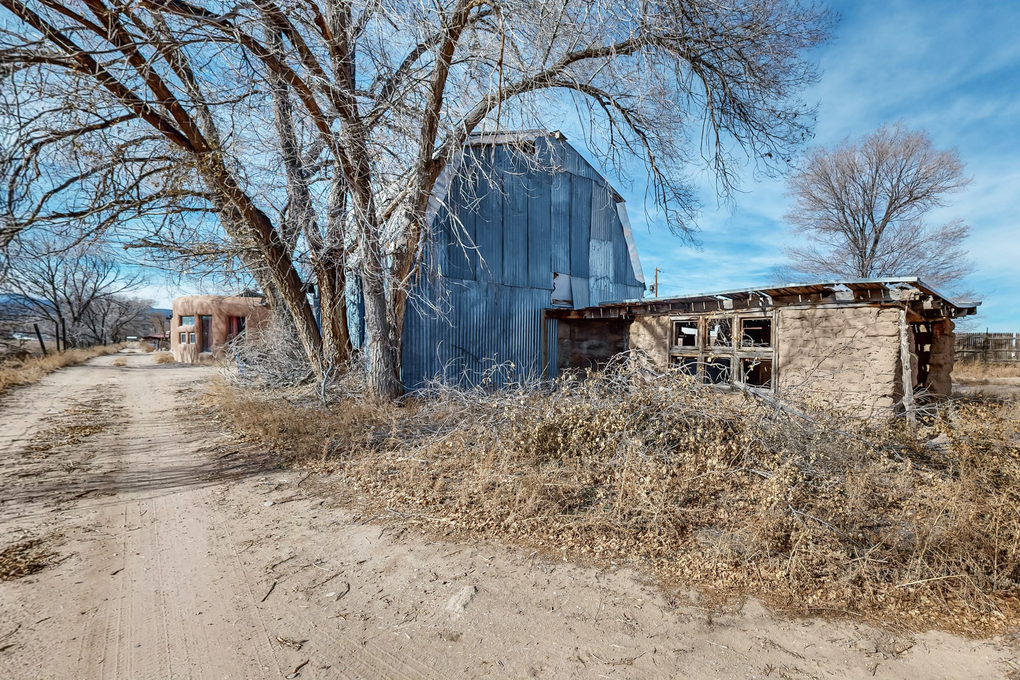 Located midway, down a private drive, in Upper San Pedro, sets a two home compound. Although each house is completely different from the other, they both can be lived in as they are remodeled. Both homes have their own individual electric meters and natural gas meters. The small guest house is mostly adobe. It has one bedroom, with a kiva fireplace, exposed adobe, and an incredible door that separates the bedroom from the bonus room and the living room. There is a small kitchen, dining room, and full bathroom. There are some stained glass windows. The main house has three bedrooms and two baths, one 3/4 bath and one full bath. It is a very spacious home, with unique wood flooring, in the living room/ dining room area, of the main floor. The fireplace that is in the center of the dining room and living room, had a wood stove hook up that piped up through the fireplace chimney. At this level there is also a bathroom and kitchen. The winding staircase is very nice leading up to the upper level, with the three bedrooms and one full bath. Outside this house is a root cellar. Both homes need work, most of which can be done as one lives in them. The two dwellings are set on 1.38 Acres of land. There is a private well shared by the two homes that could also be used for a new landscaping venture or domestic gardening, it does have irrigation water rights. There is a barn that also sets on the property, it is large and could be used to store vehicles or feed, for the chickens, that can live in the old adobe structure that may be renovated, into a chicken coop. This is a unique opportunity, with endless possibilities. Minutes away from Santa Fe, Los Alamos, Taos, and Abiquiu. SELLER WILL NOT CONDUCT ANY REPAIRS ON THE PROPERTY.