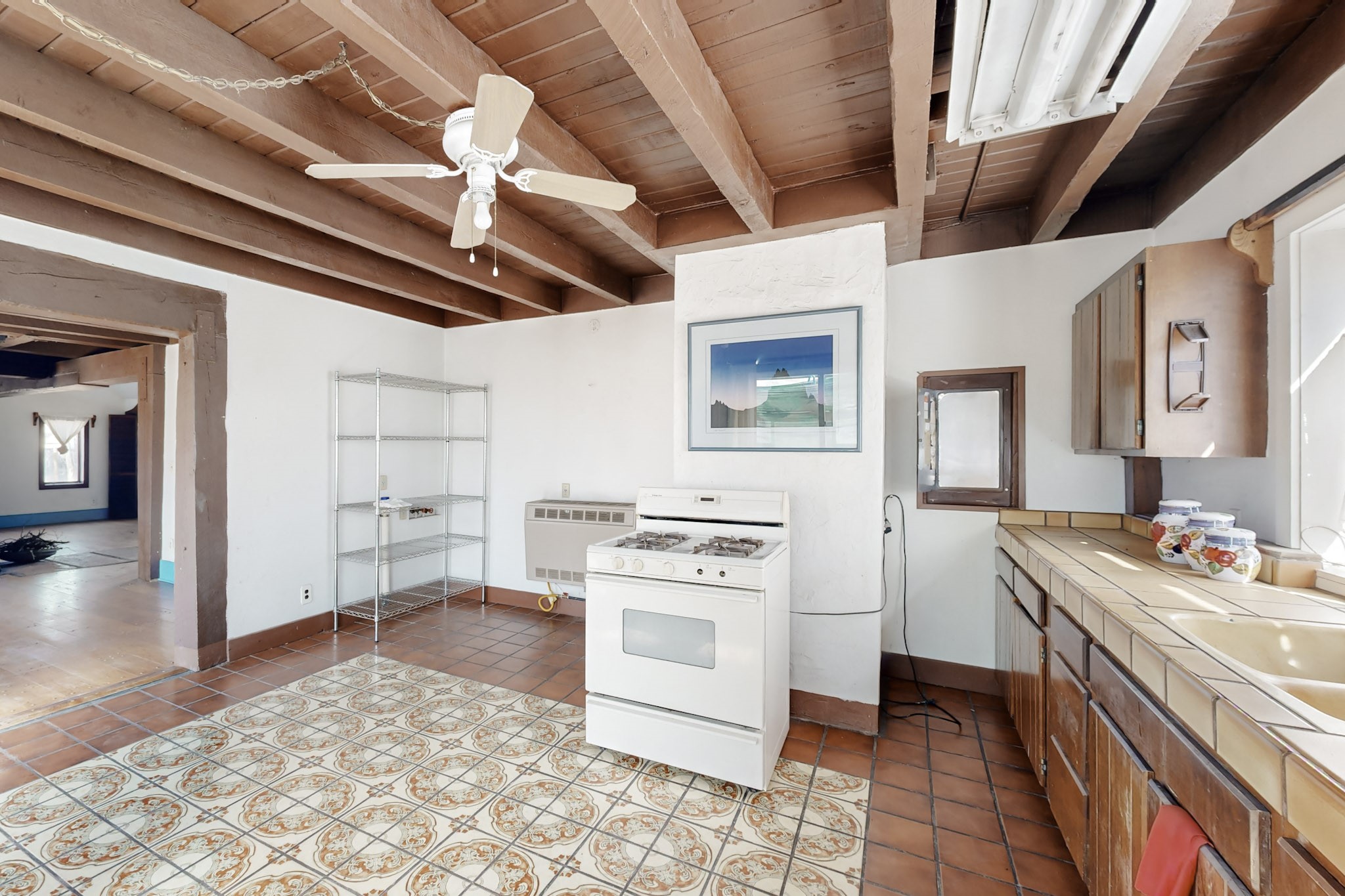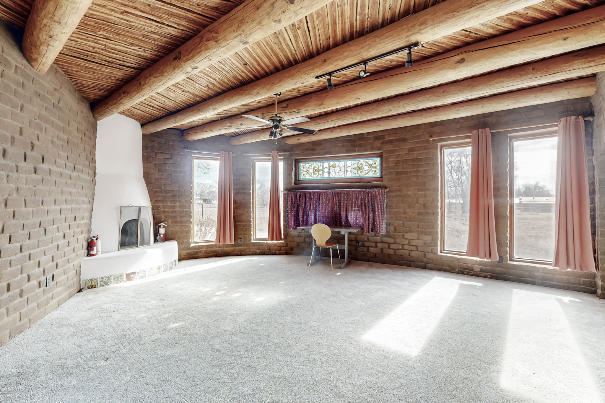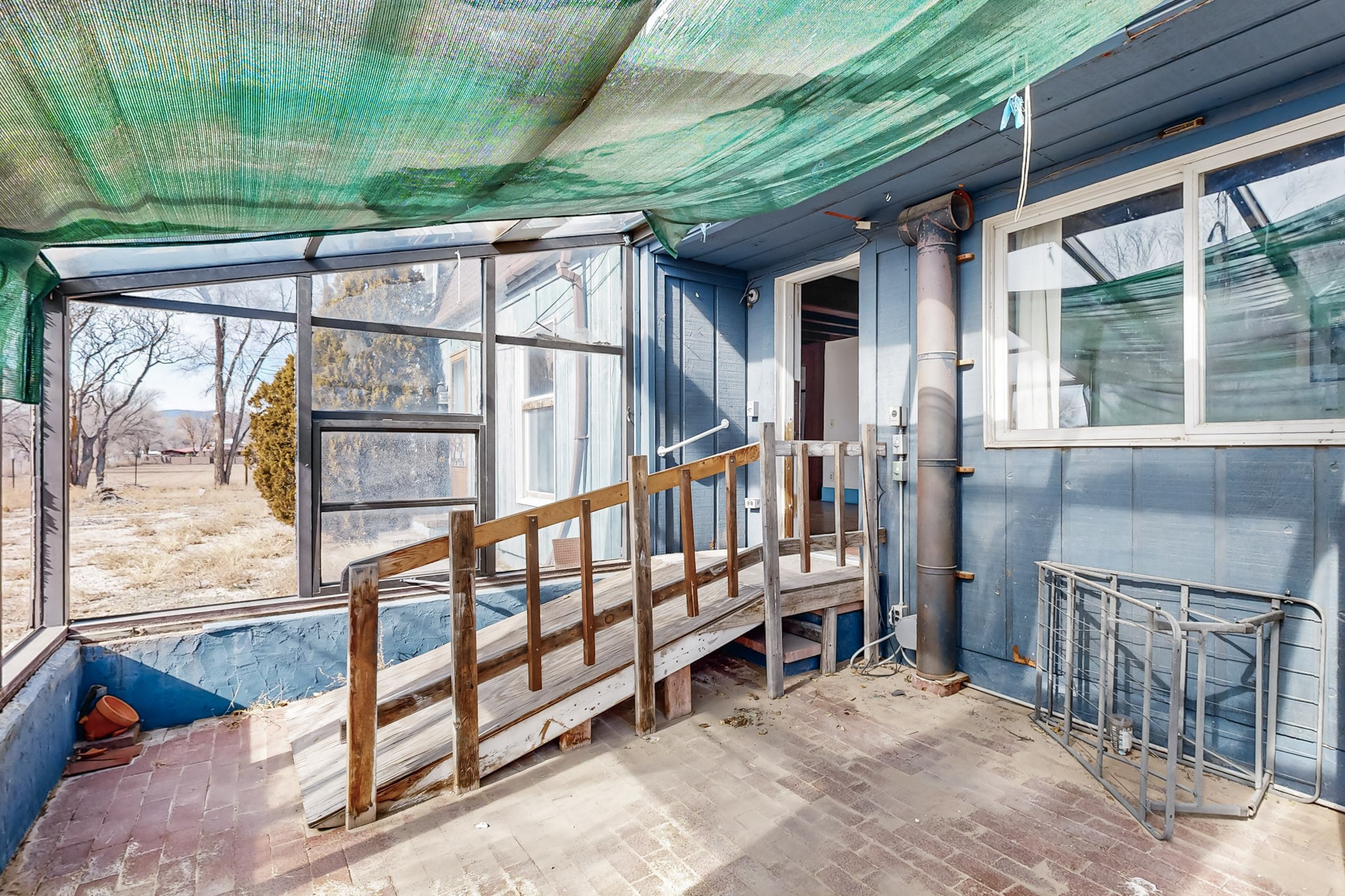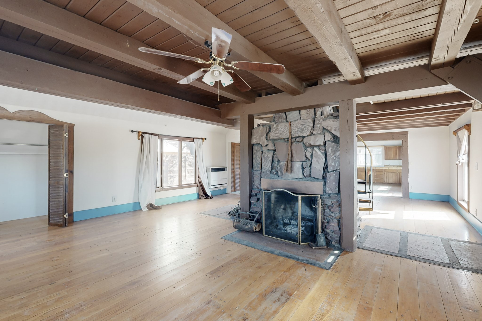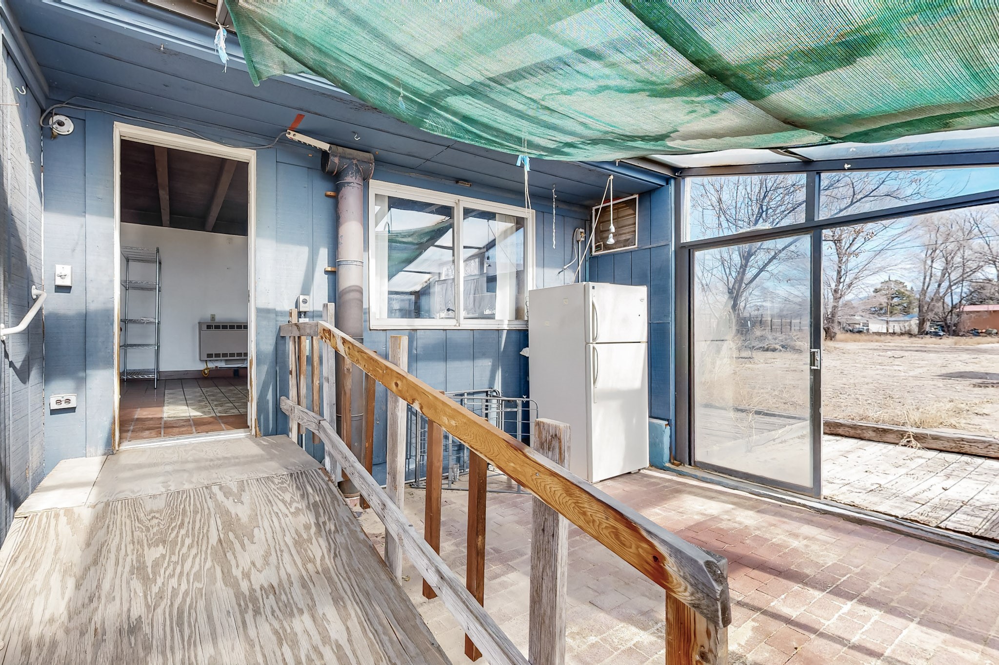 Located midway, down a private drive, in Upper San Pedro, sets a two home compound. Although each house is completely different from the other, they both can be lived in as they are remodeled. Both homes have their own individual electric meters and natural gas meters. The small guest house is mostly adobe. It has one bedroom, with a kiva fireplace, exposed adobe, and an incredible door that separates the bedroom from the bonus room and the living room. There is a small kitchen, dining room, and full bathroom. There are some stained glass windows. The main house has three bedrooms and two baths, one 3/4 bath and one full bath. It is a very spacious home, with unique wood flooring, in the living room/ dining room area, of the main floor. The fireplace that is in the center of the dining room and living room, had a wood stove hook up that piped up through the fireplace chimney. At this level there is also a bathroom and kitchen. The winding staircase is very nice leading up to the upper level, with the three bedrooms and one full bath. Outside this house is a root cellar. Both homes need work, most of which can be done as one lives in them. The two dwellings are set on 1.38 Acres of land. There is a private well shared by the two homes that could also be used for a new landscaping venture or domestic gardening, it does have irrigation water rights. There is a barn that also sets on the property, it is large and could be used to store vehicles or feed, for the chickens, that can live in the old adobe structure that may be renovated, into a chicken coop. This is a unique opportunity, with endless possibilities. Minutes away from Santa Fe, Los Alamos, Taos, and Abiquiu. SELLER WILL NOT CONDUCT ANY REPAIRS ON THE PROPERTY.