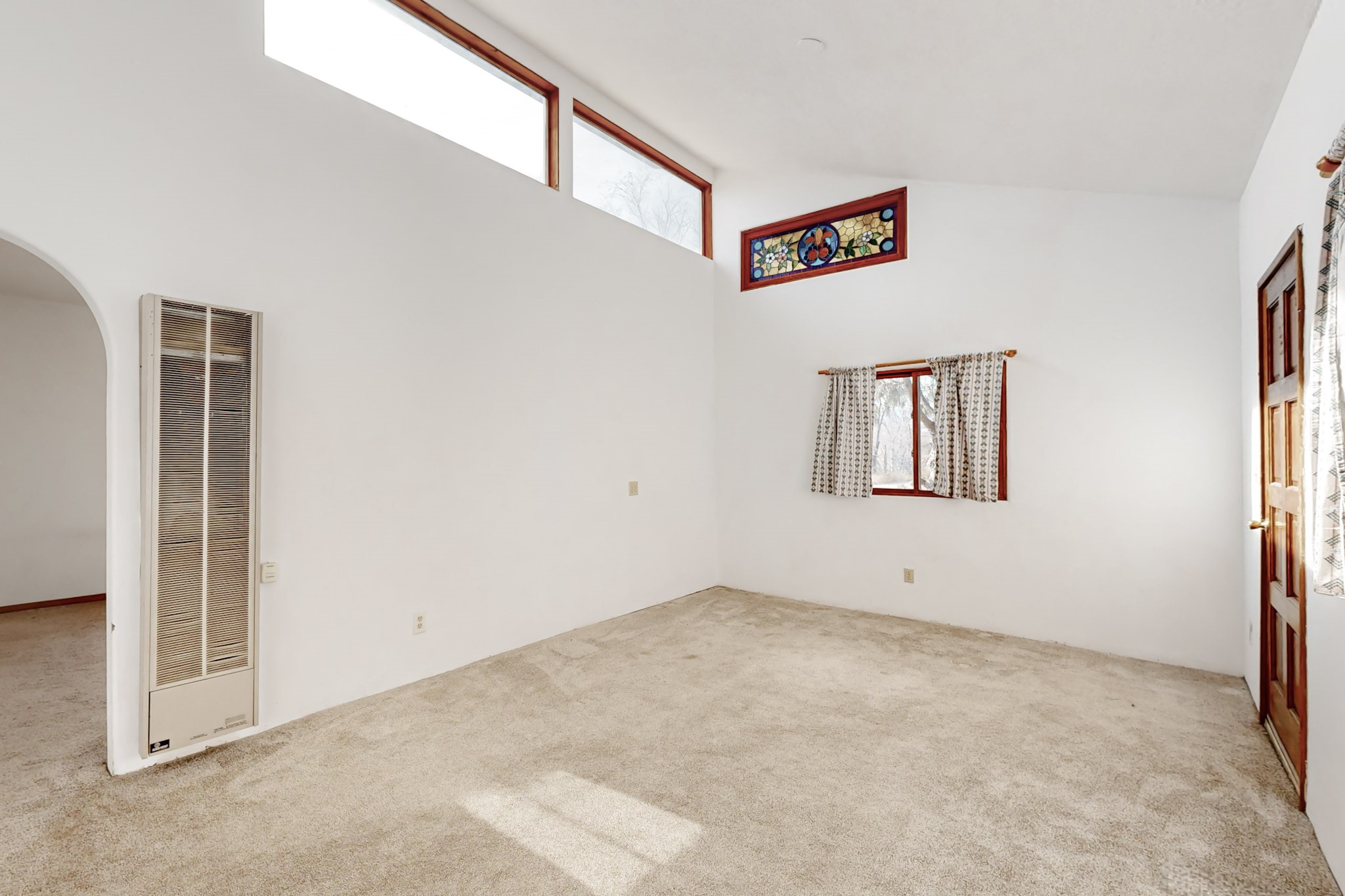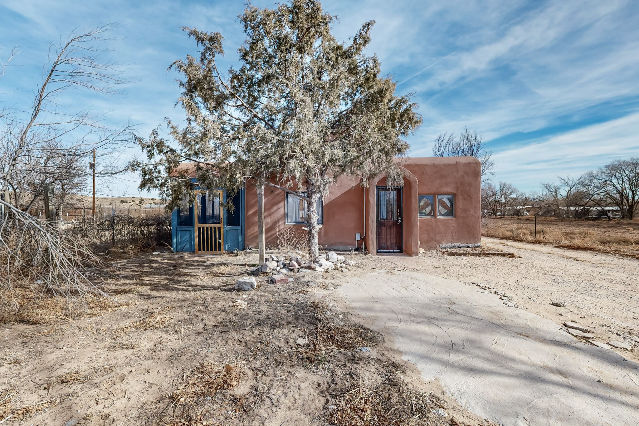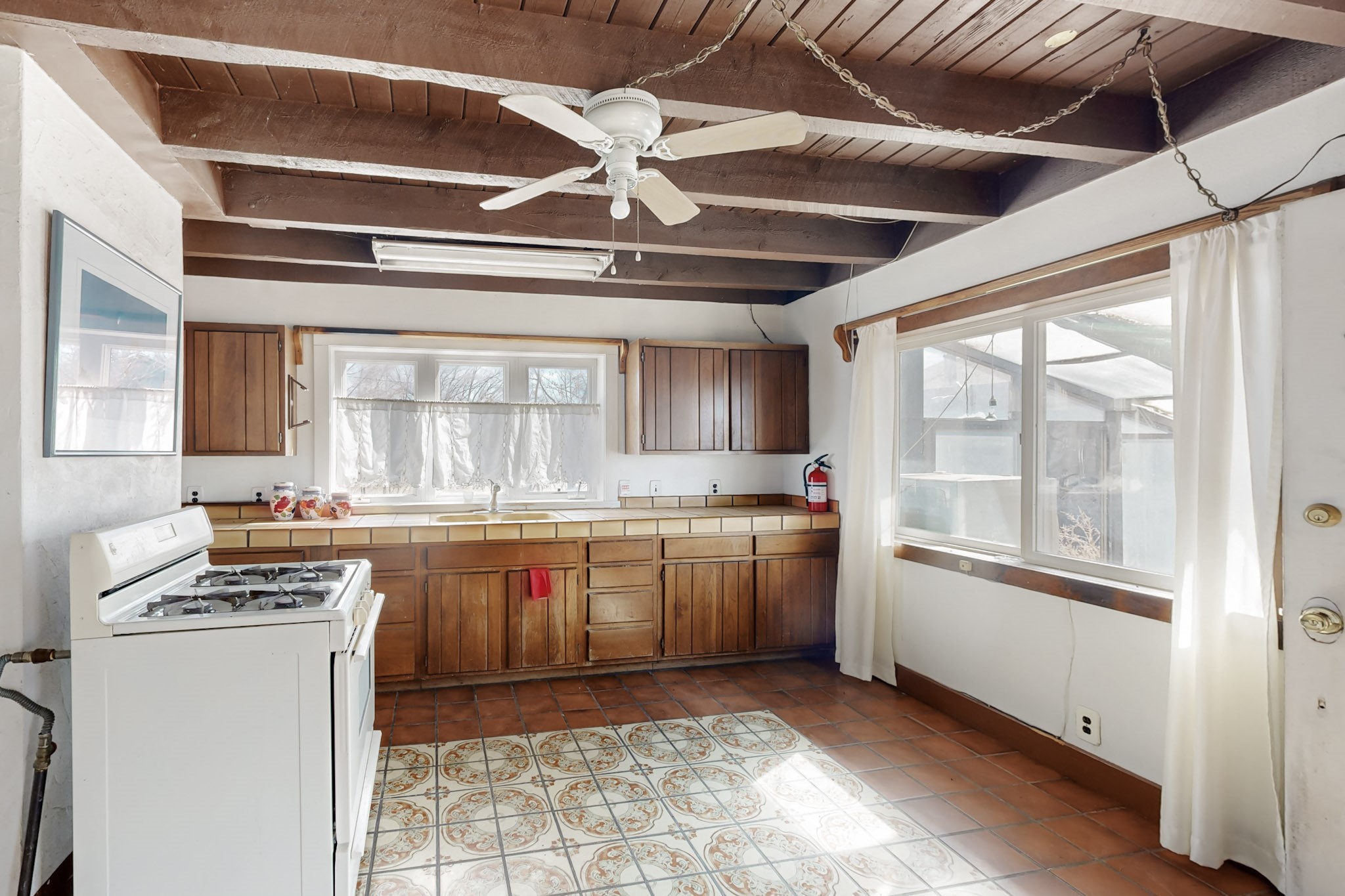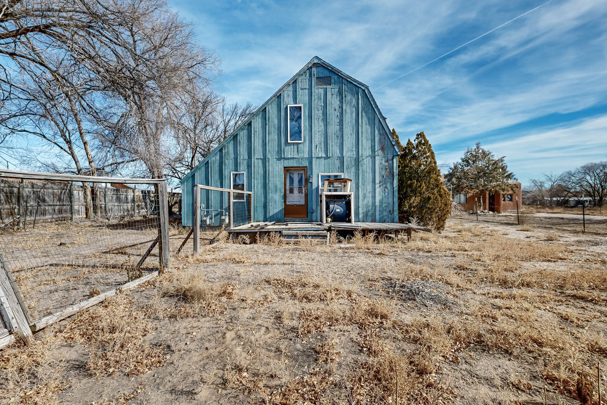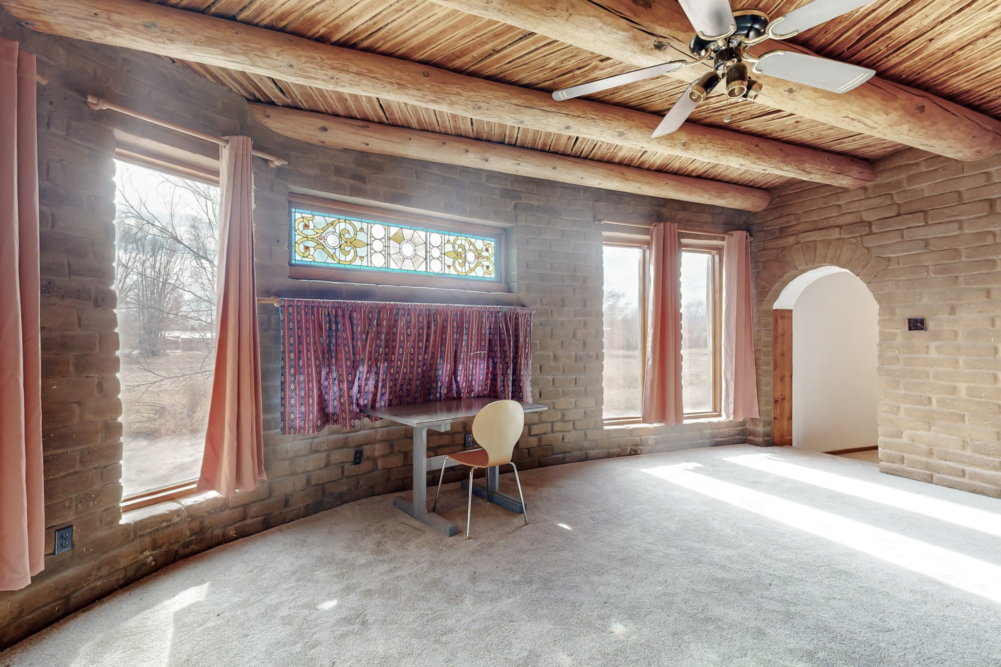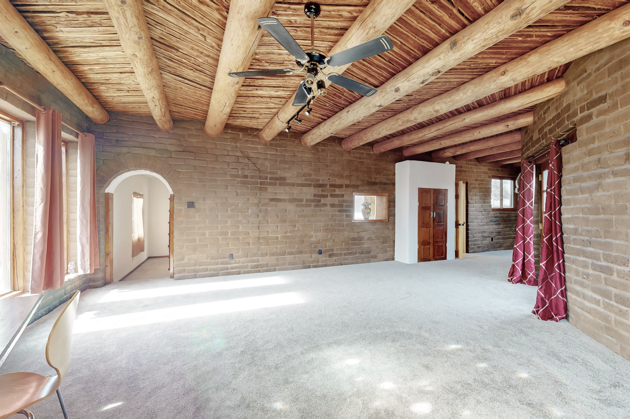 Located midway, down a private drive, in Upper San Pedro, sets a two home compound. Although each house is completely different from the other, they both can be lived in as they are remodeled. Both homes have their own individual electric meters and natural gas meters. The small guest house is mostly adobe. It has one bedroom, with a kiva fireplace, exposed adobe, and an incredible door that separates the bedroom from the bonus room and the living room. There is a small kitchen, dining room, and full bathroom. There are some stained glass windows. The main house has three bedrooms and two baths, one 3/4 bath and one full bath. It is a very spacious home, with unique wood flooring, in the living room/ dining room area, of the main floor. The fireplace that is in the center of the dining room and living room, had a wood stove hook up that piped up through the fireplace chimney. At this level there is also a bathroom and kitchen. The winding staircase is very nice leading up to the upper level, with the three bedrooms and one full bath. Outside this house is a root cellar. Both homes need work, most of which can be done as one lives in them. The two dwellings are set on 1.38 Acres of land. There is a private well shared by the two homes that could also be used for a new landscaping venture or domestic gardening, it does have irrigation water rights. There is a barn that also sets on the property, it is large and could be used to store vehicles or feed, for the chickens, that can live in the old adobe structure that may be renovated, into a chicken coop. This is a unique opportunity, with endless possibilities. Minutes away from Santa Fe, Los Alamos, Taos, and Abiquiu. SELLER WILL NOT CONDUCT ANY REPAIRS ON THE PROPERTY.