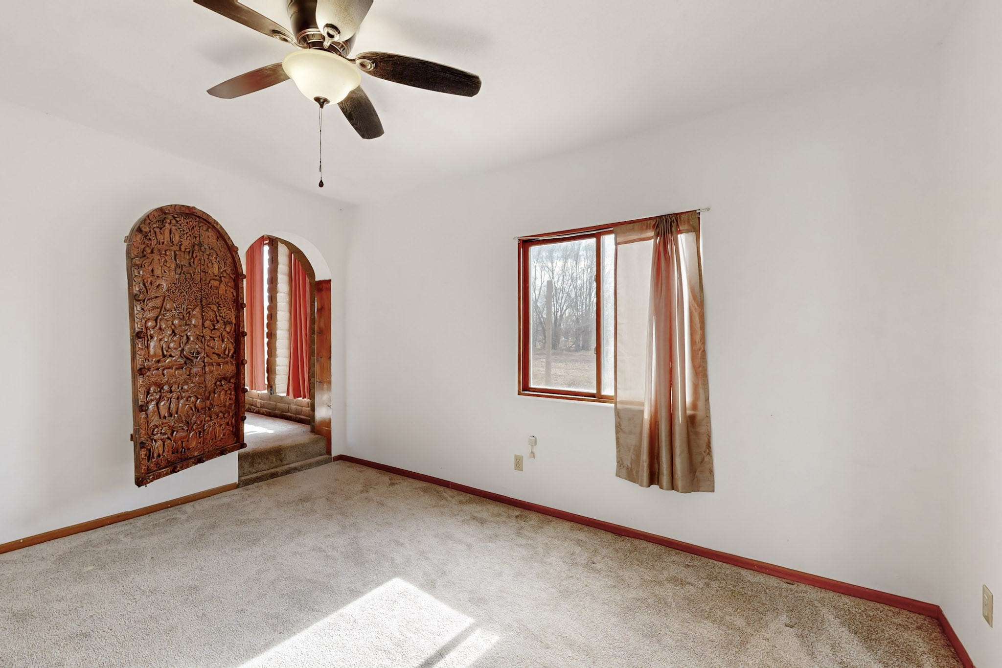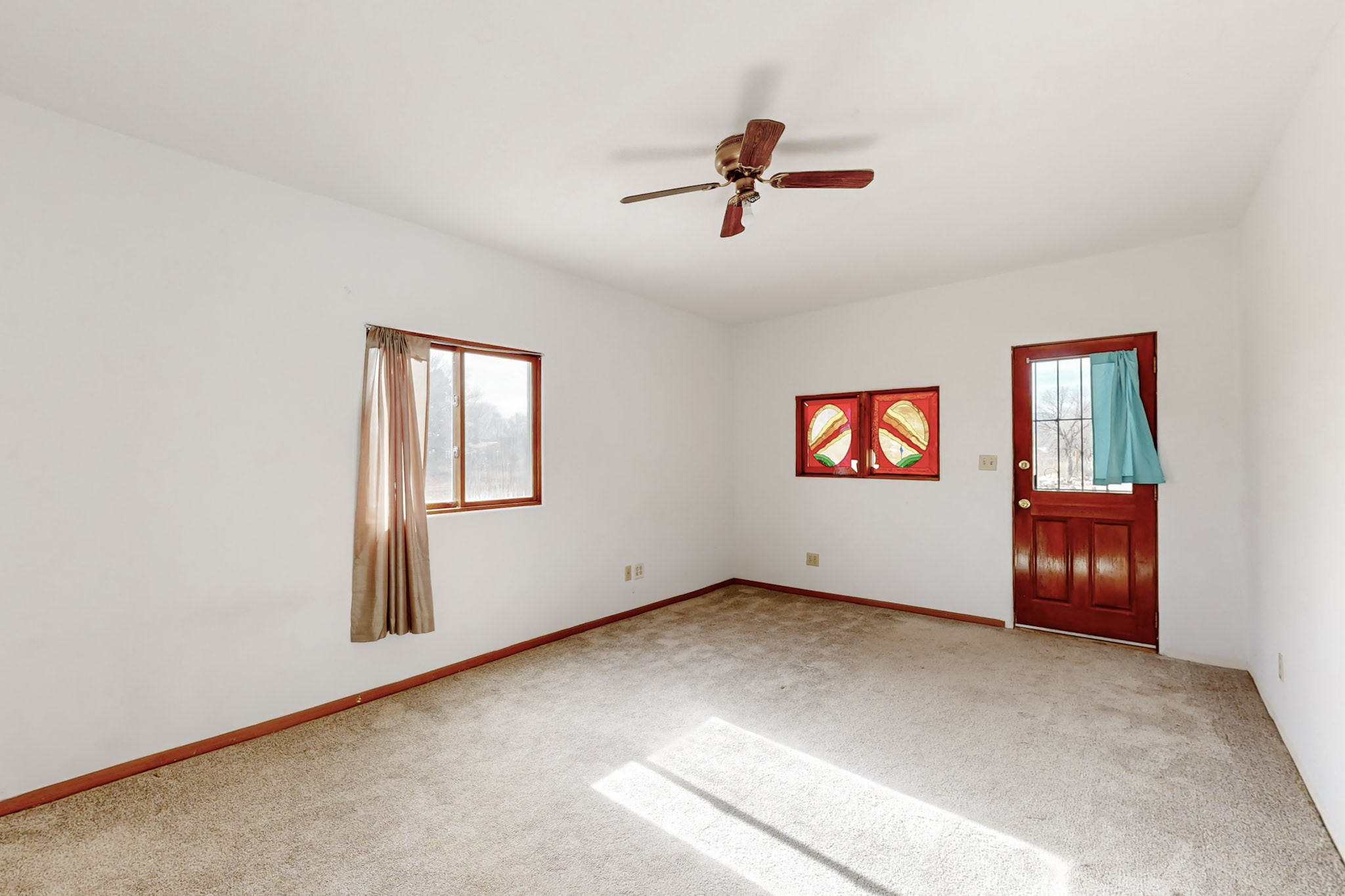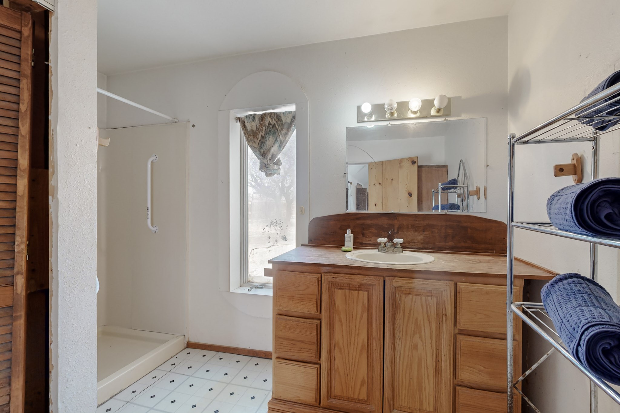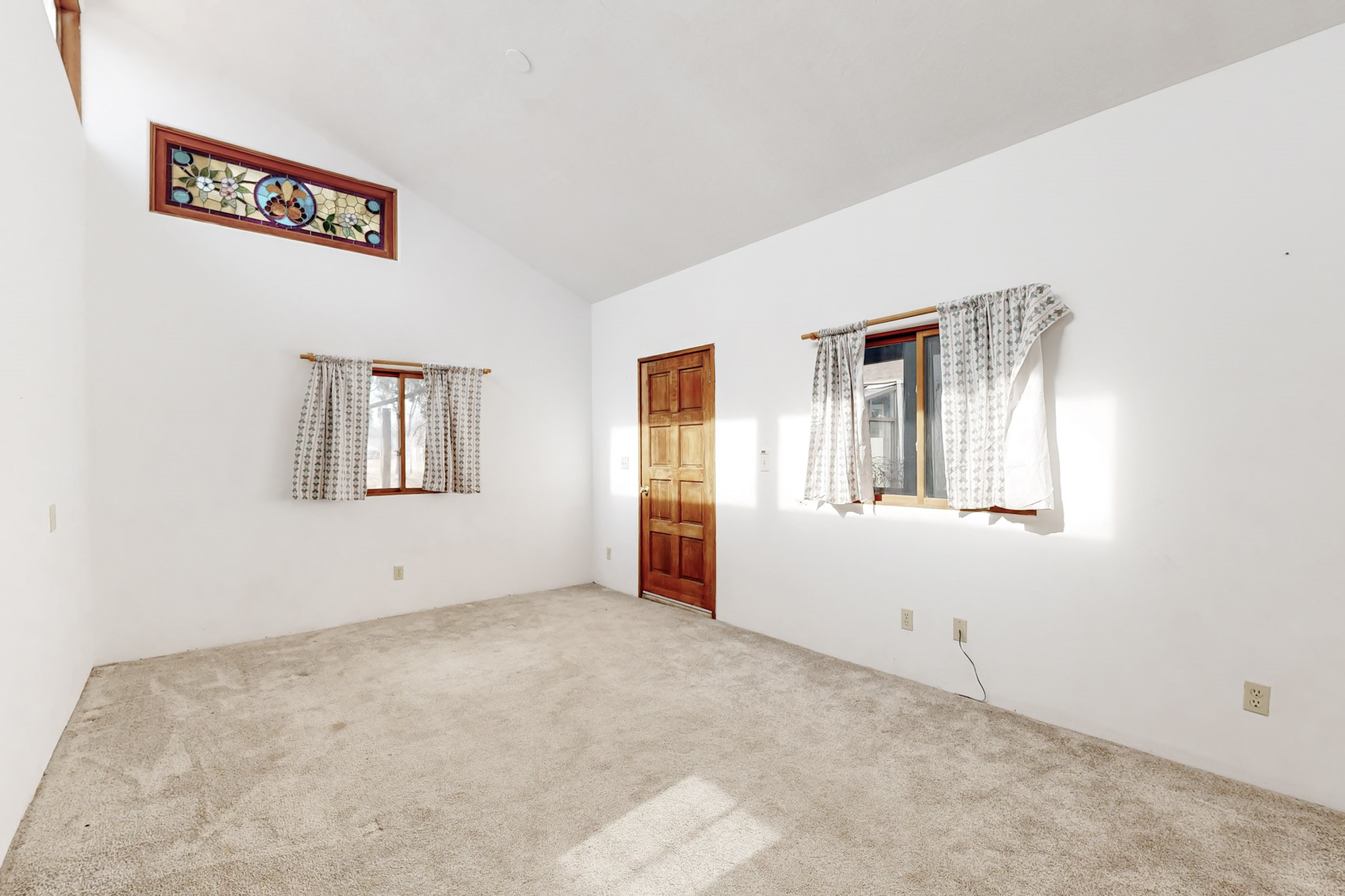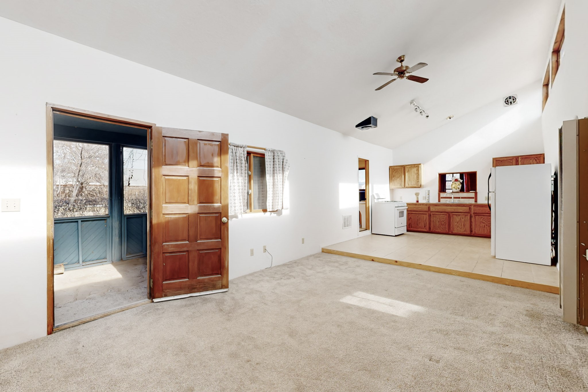 Located midway, down a private drive, in Upper San Pedro, sets a two home compound. Although each house is completely different from the other, they both can be lived in as they are remodeled. Both homes have their own individual electric meters and natural gas meters. The small guest house is mostly adobe. It has one bedroom, with a kiva fireplace, exposed adobe, and an incredible door that separates the bedroom from the bonus room and the living room. There is a small kitchen, dining room, and full bathroom. There are some stained glass windows. The main house has three bedrooms and two baths, one 3/4 bath and one full bath. It is a very spacious home, with unique wood flooring, in the living room/ dining room area, of the main floor. The fireplace that is in the center of the dining room and living room, had a wood stove hook up that piped up through the fireplace chimney. At this level there is also a bathroom and kitchen. The winding staircase is very nice leading up to the upper level, with the three bedrooms and one full bath. Outside this house is a root cellar. Both homes need work, most of which can be done as one lives in them. The two dwellings are set on 1.38 Acres of land. There is a private well shared by the two homes that could also be used for a new landscaping venture or domestic gardening, it does have irrigation water rights. There is a barn that also sets on the property, it is large and could be used to store vehicles or feed, for the chickens, that can live in the old adobe structure that may be renovated, into a chicken coop. This is a unique opportunity, with endless possibilities. Minutes away from Santa Fe, Los Alamos, Taos, and Abiquiu. SELLER WILL NOT CONDUCT ANY REPAIRS ON THE PROPERTY.