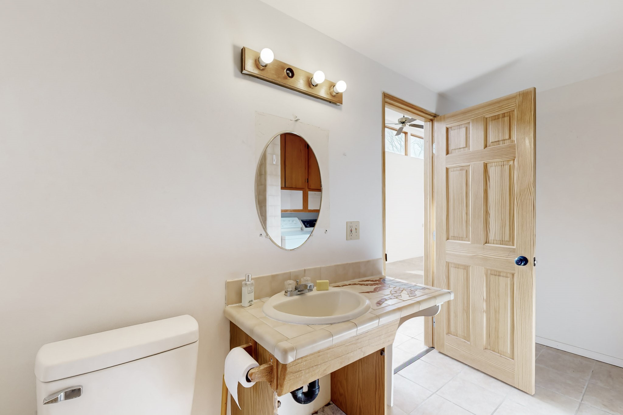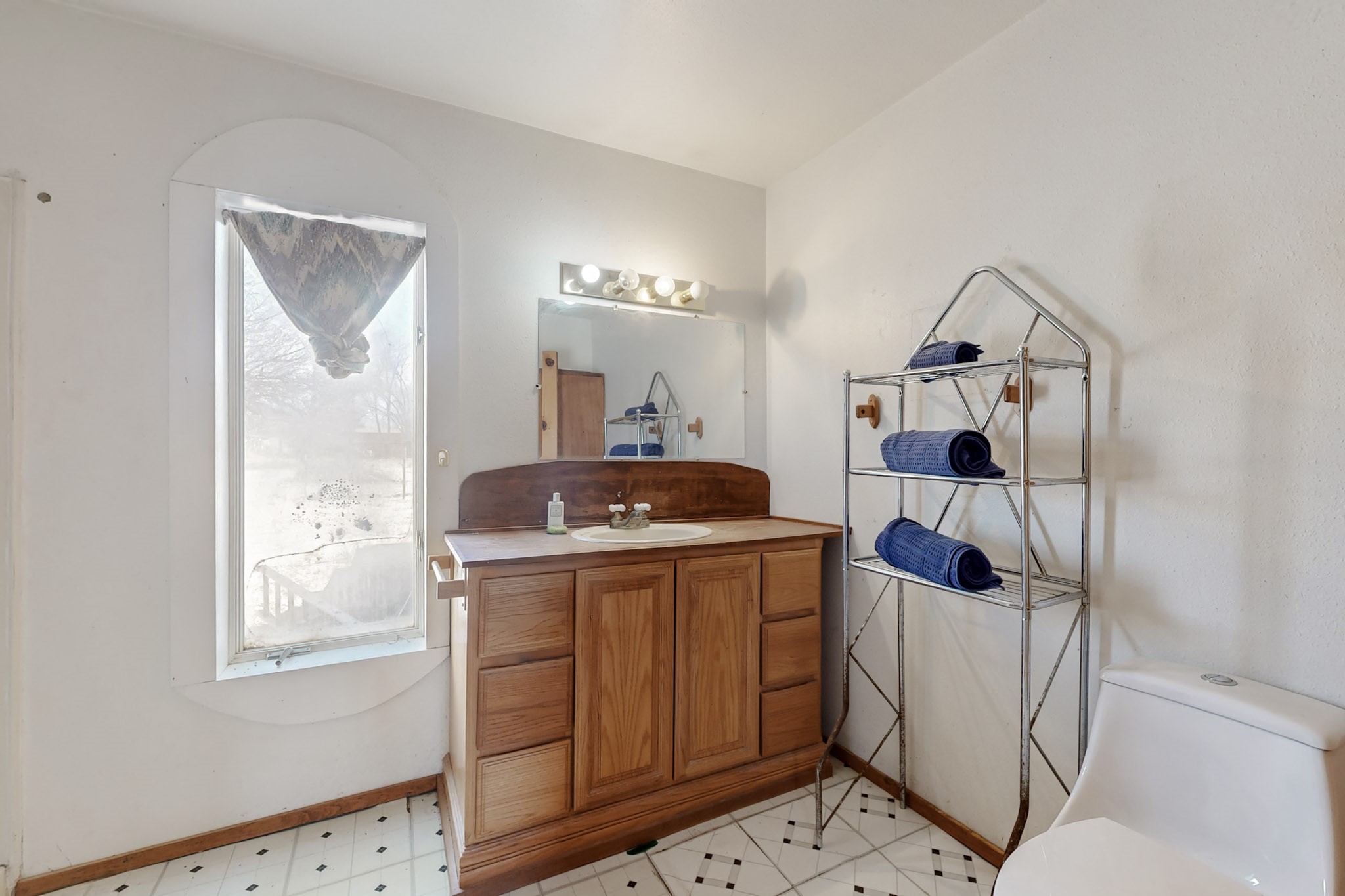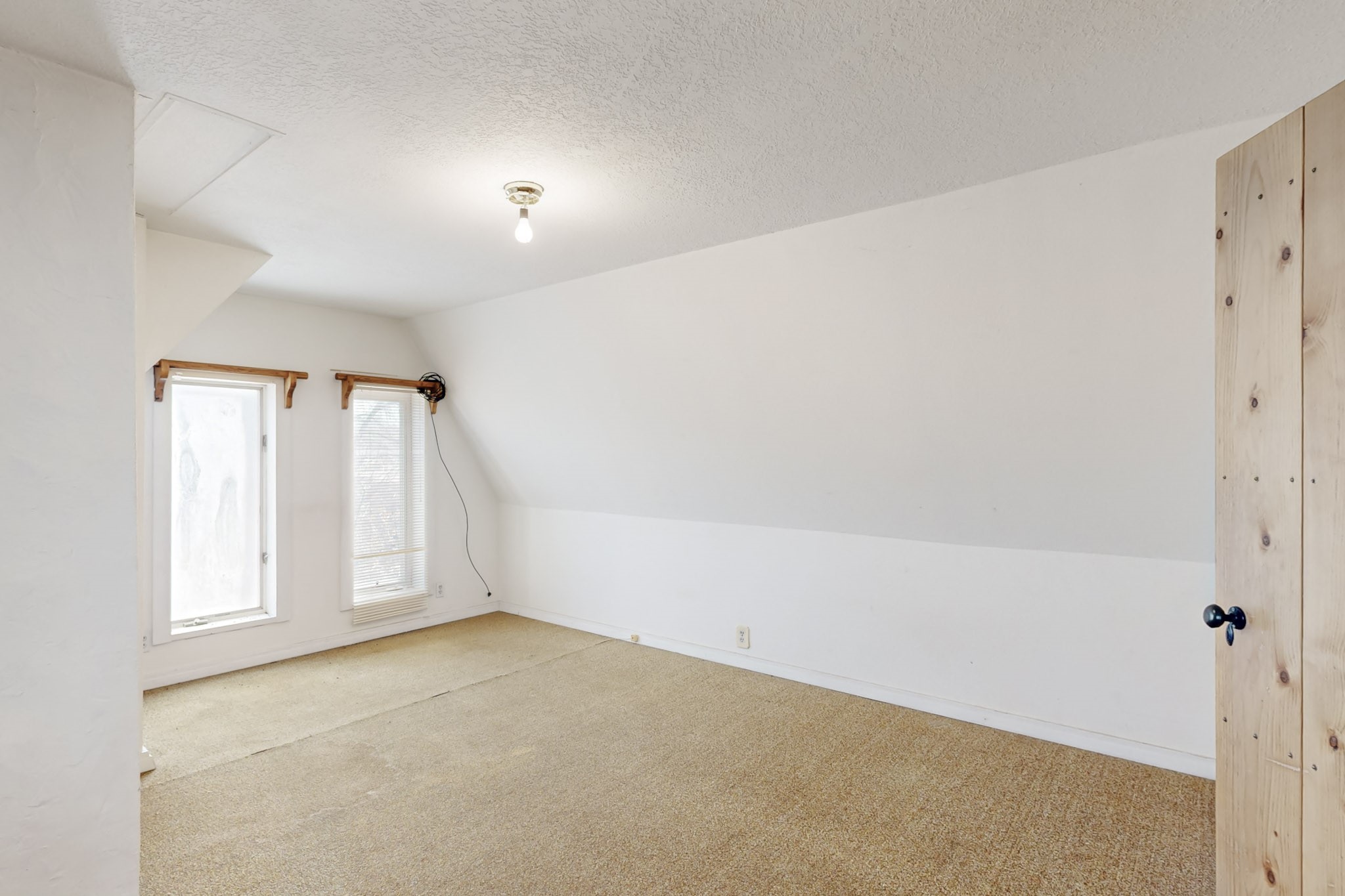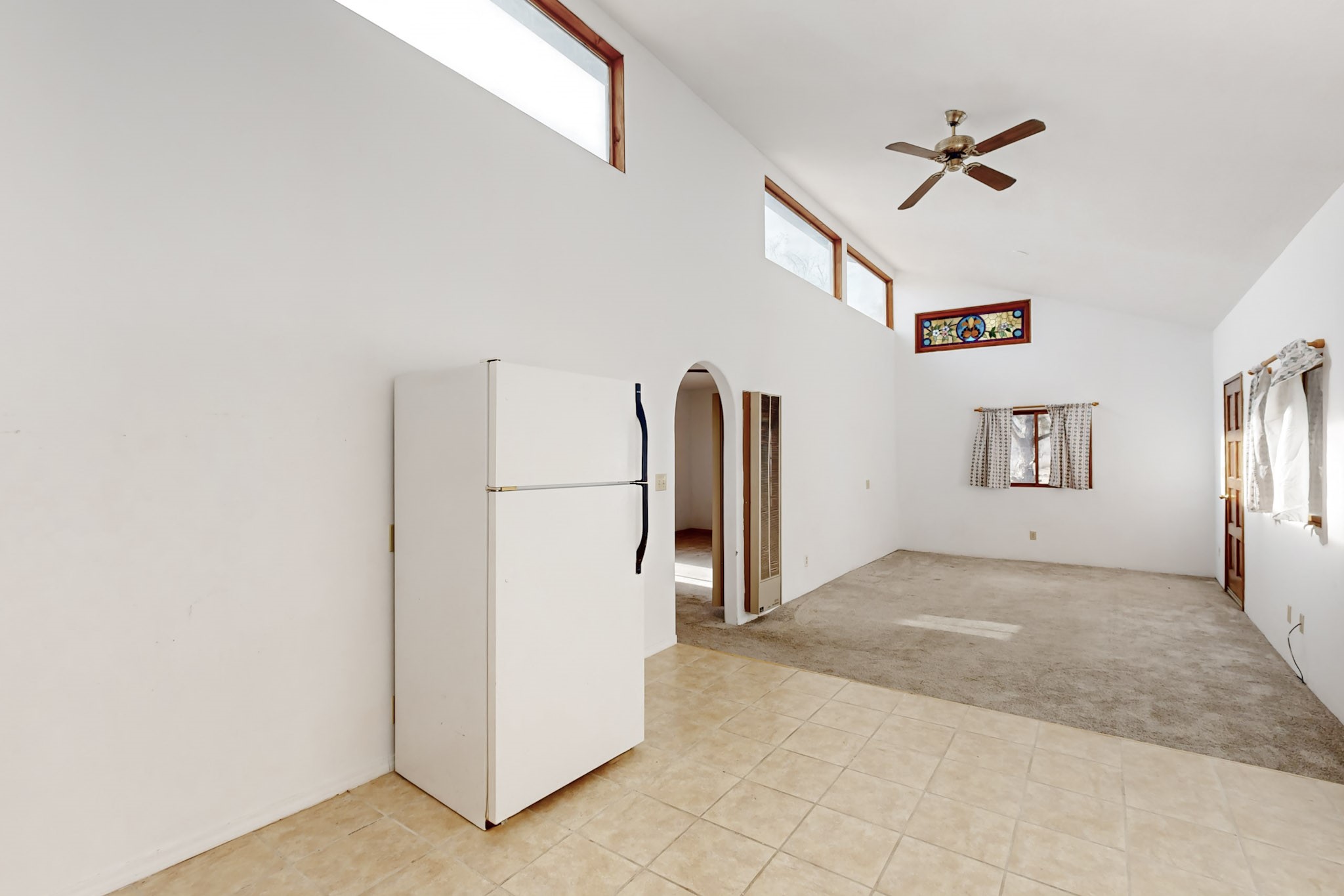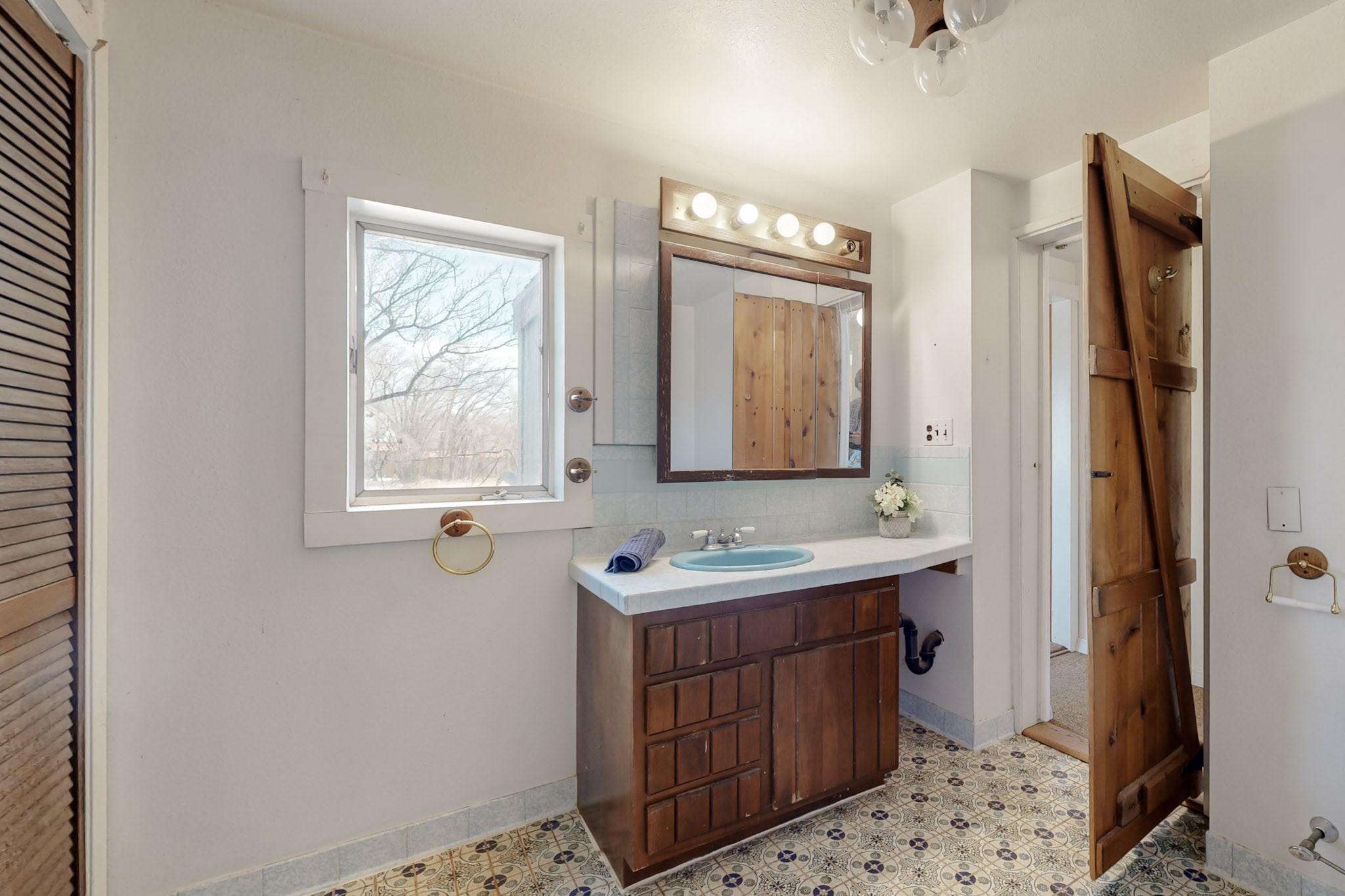 Located midway, down a private drive, in Upper San Pedro, sets a two home compound. Although each house is completely different from the other, they both can be lived in as they are remodeled. Both homes have their own individual electric meters and natural gas meters. The small guest house is mostly adobe. It has one bedroom, with a kiva fireplace, exposed adobe, and an incredible door that separates the bedroom from the bonus room and the living room. There is a small kitchen, dining room, and full bathroom. There are some stained glass windows. The main house has three bedrooms and two baths, one 3/4 bath and one full bath. It is a very spacious home, with unique wood flooring, in the living room/ dining room area, of the main floor. The fireplace that is in the center of the dining room and living room, had a wood stove hook up that piped up through the fireplace chimney. At this level there is also a bathroom and kitchen. The winding staircase is very nice leading up to the upper level, with the three bedrooms and one full bath. Outside this house is a root cellar. Both homes need work, most of which can be done as one lives in them. The two dwellings are set on 1.38 Acres of land. There is a private well shared by the two homes that could also be used for a new landscaping venture or domestic gardening, it does have irrigation water rights. There is a barn that also sets on the property, it is large and could be used to store vehicles or feed, for the chickens, that can live in the old adobe structure that may be renovated, into a chicken coop. This is a unique opportunity, with endless possibilities. Minutes away from Santa Fe, Los Alamos, Taos, and Abiquiu. SELLER WILL NOT CONDUCT ANY REPAIRS ON THE PROPERTY.