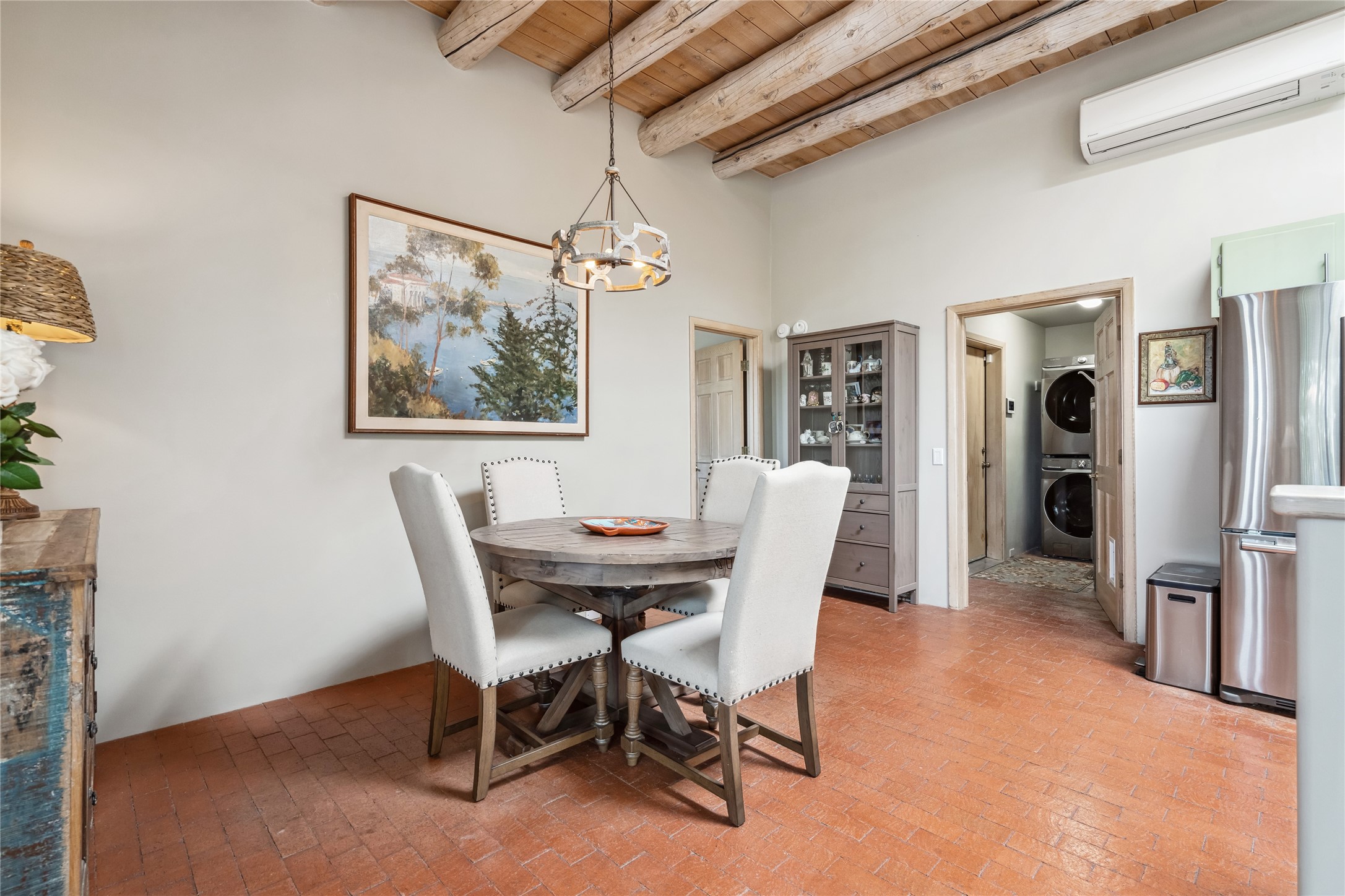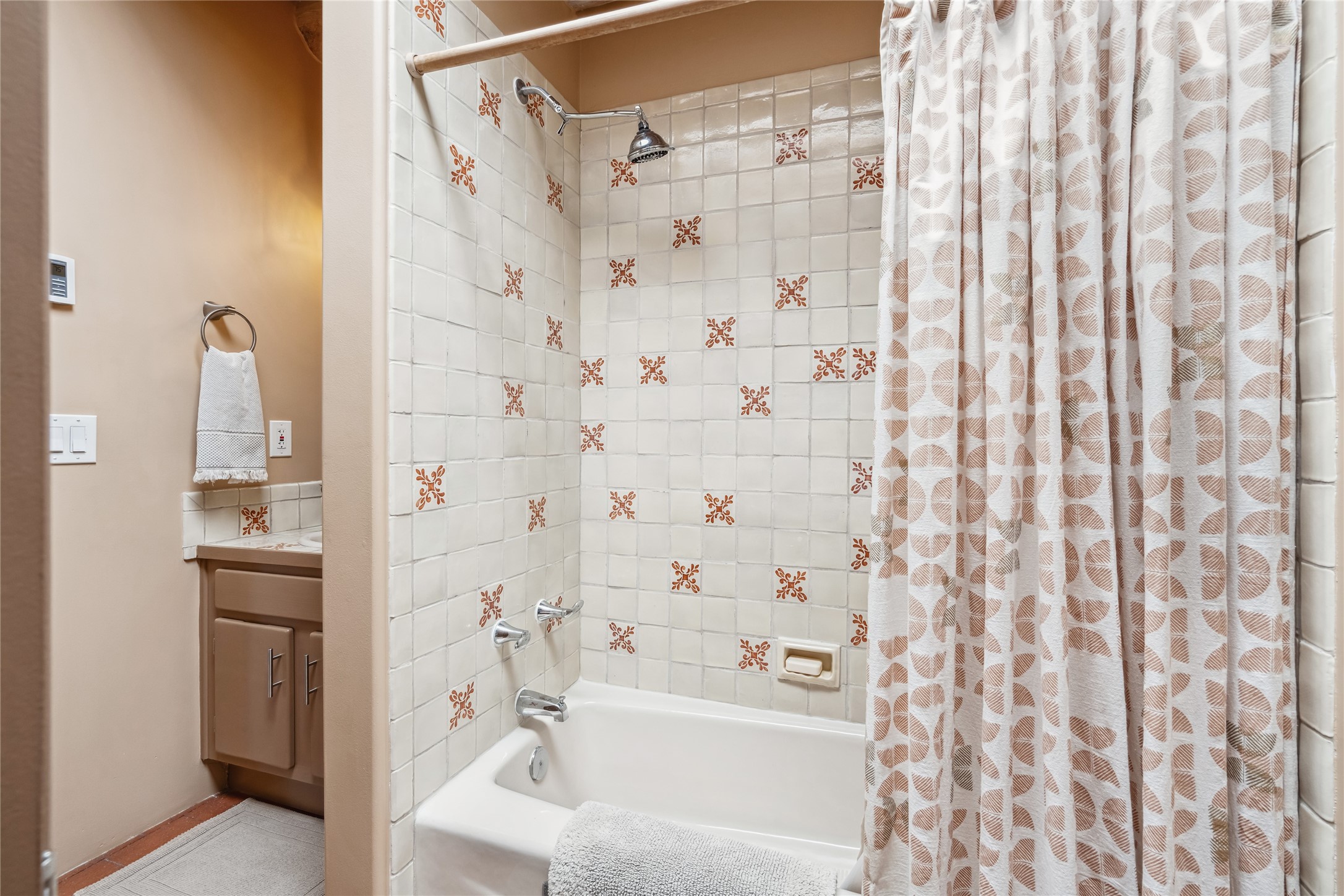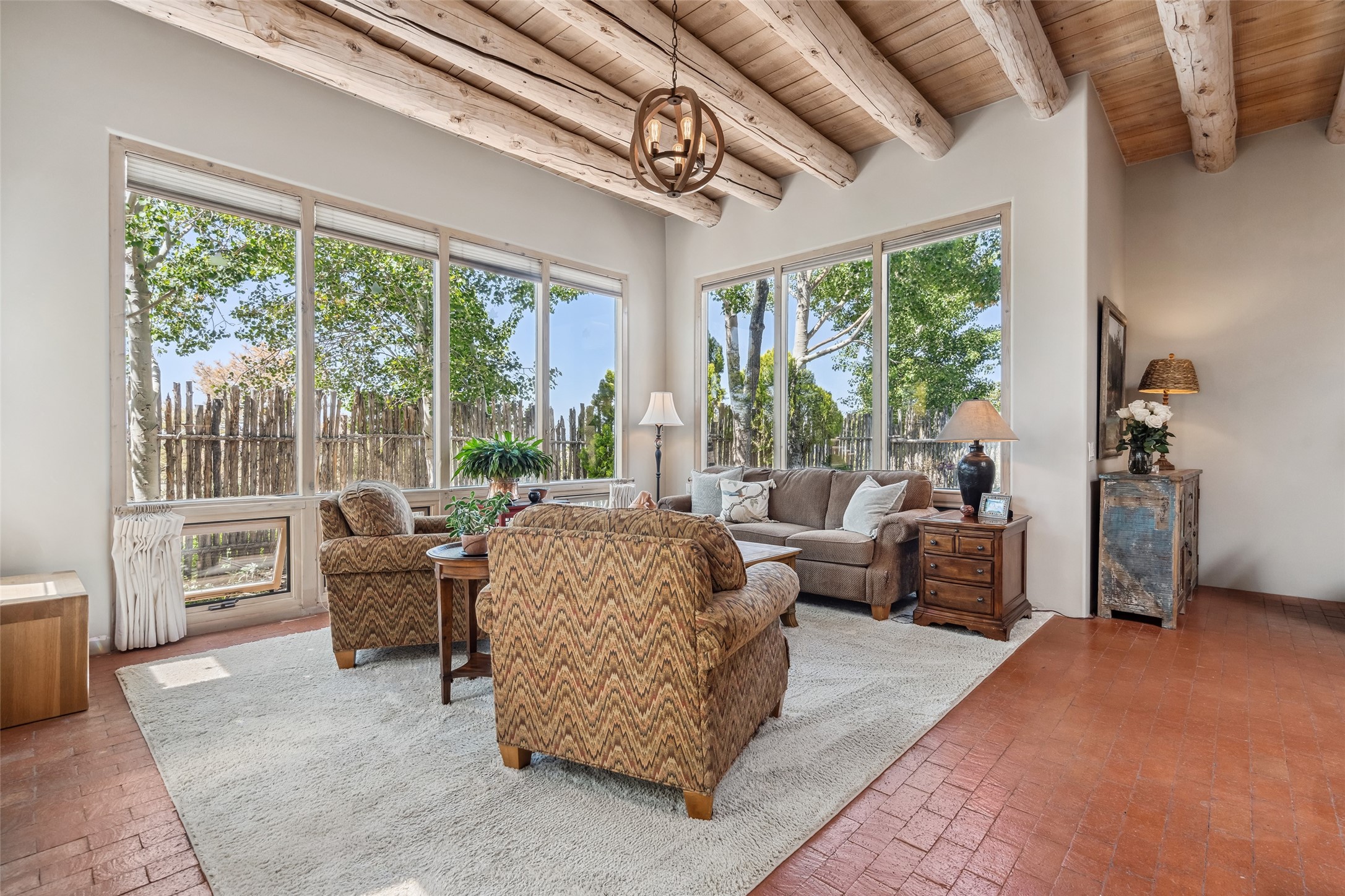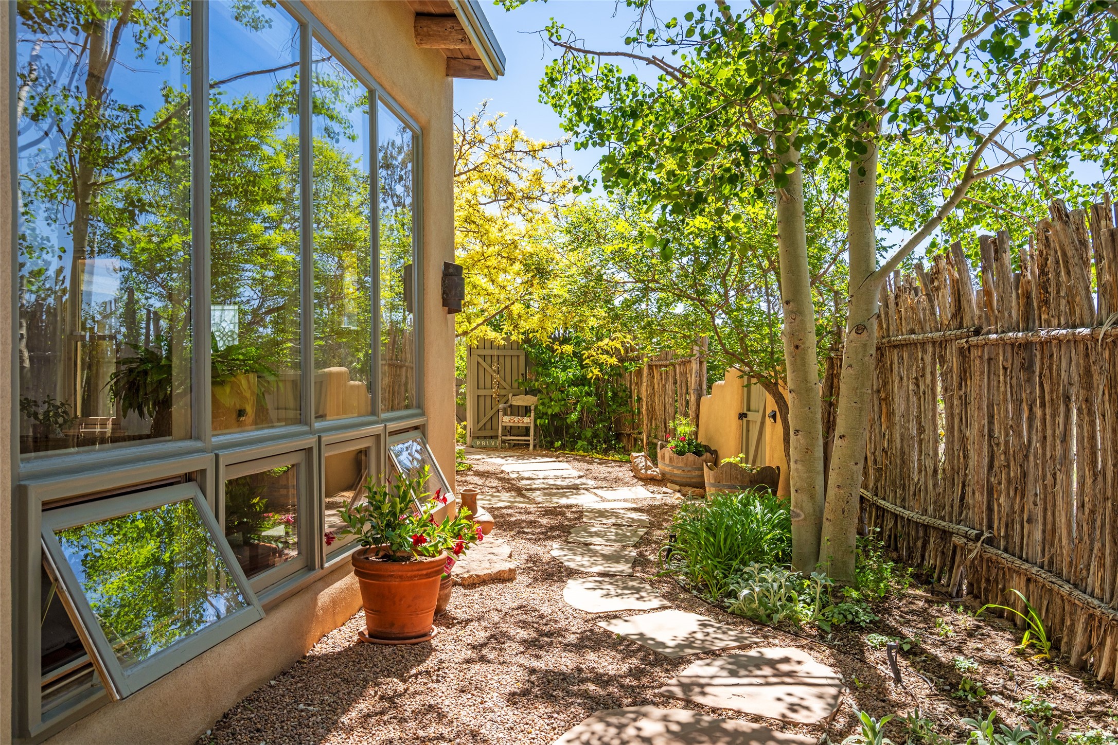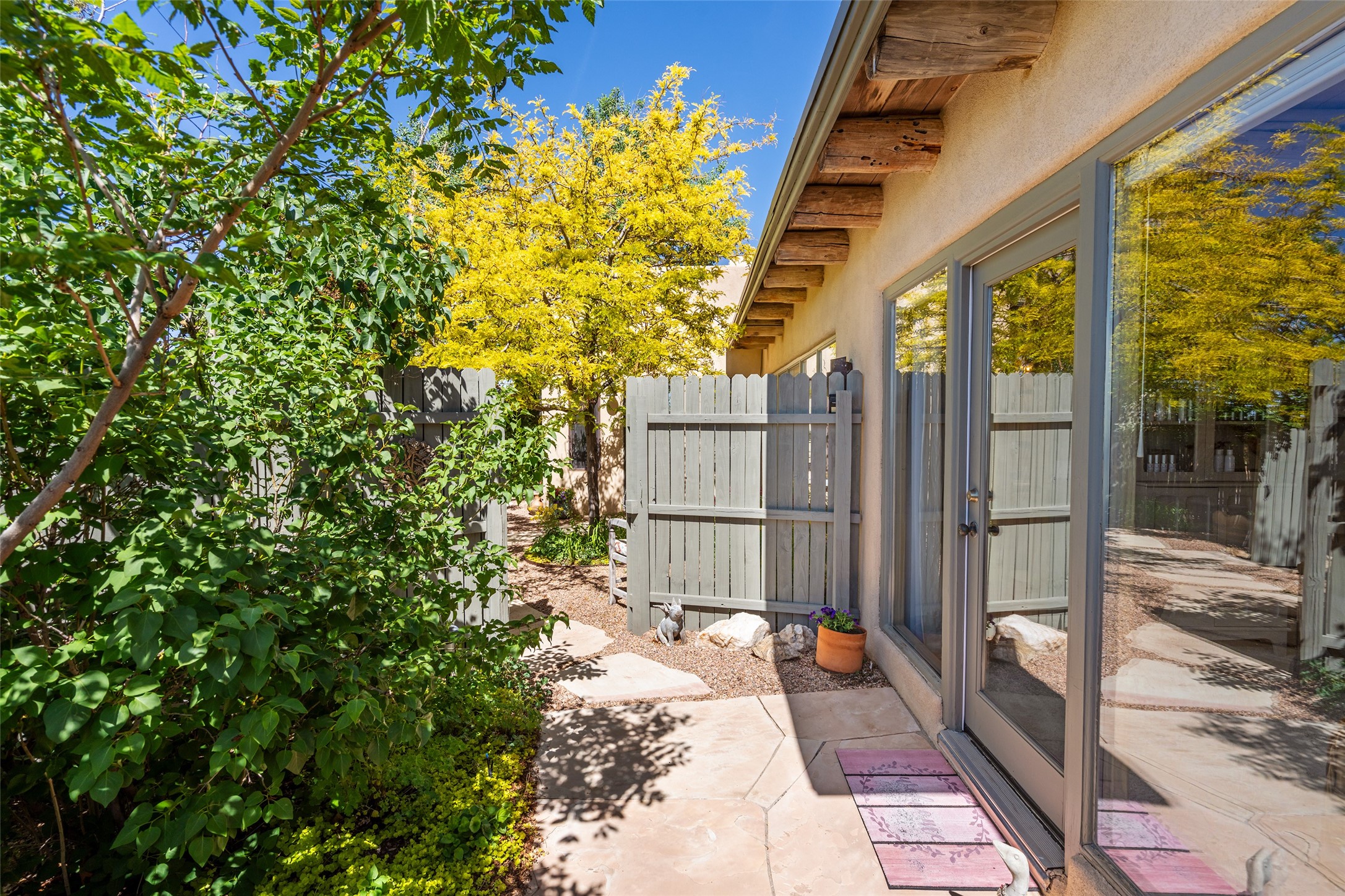 Discover the beauty and serenity of this stunningly landscaped Santa Fe retreat at 22 Esquila Rd. Boasting 3 bedrooms and 2 bathrooms, this thoughtfully designed and updated home offers a perfect blend of Southwestern charm and modern comfort.The primary suite is a true sanctuary, featuring a cozy corner kiva fireplace, a spacious walk-in closet, and bathroom with jetted tub--ideal for relaxation after a busy day. The open kitchen with stainless steel appliances is directly connected to the living area which is airy and inviting; soaring ceilings and vibrant Vigas add authentic southwestern character. Large windows flood the space with natural light and frame breathtaking views of the gorgeously landscaped patio courtyard, creating an idyllic setting for outdoor entertaining or quiet retreat. The lovely guest room is a second primary with adjoining bathroom which opens into the courtyard.Step outside to your private oasis where meticulously curated gardens on a timed sprinkler system create a peaceful haven with vibrant coloring plants. The landscaping was designed for maximum color and minimum maintenance. Walk out onto inviting patios with plentiful shade provided by mature Aspens in the warm Summer months. Whether enjoying a morning coffee or hosting friends beneath the starry sky, this property seamlessly combines indoor comfort with outdoor paradise.Don't miss the opportunity to make this beautifully landscaped Santa Fe home your own!