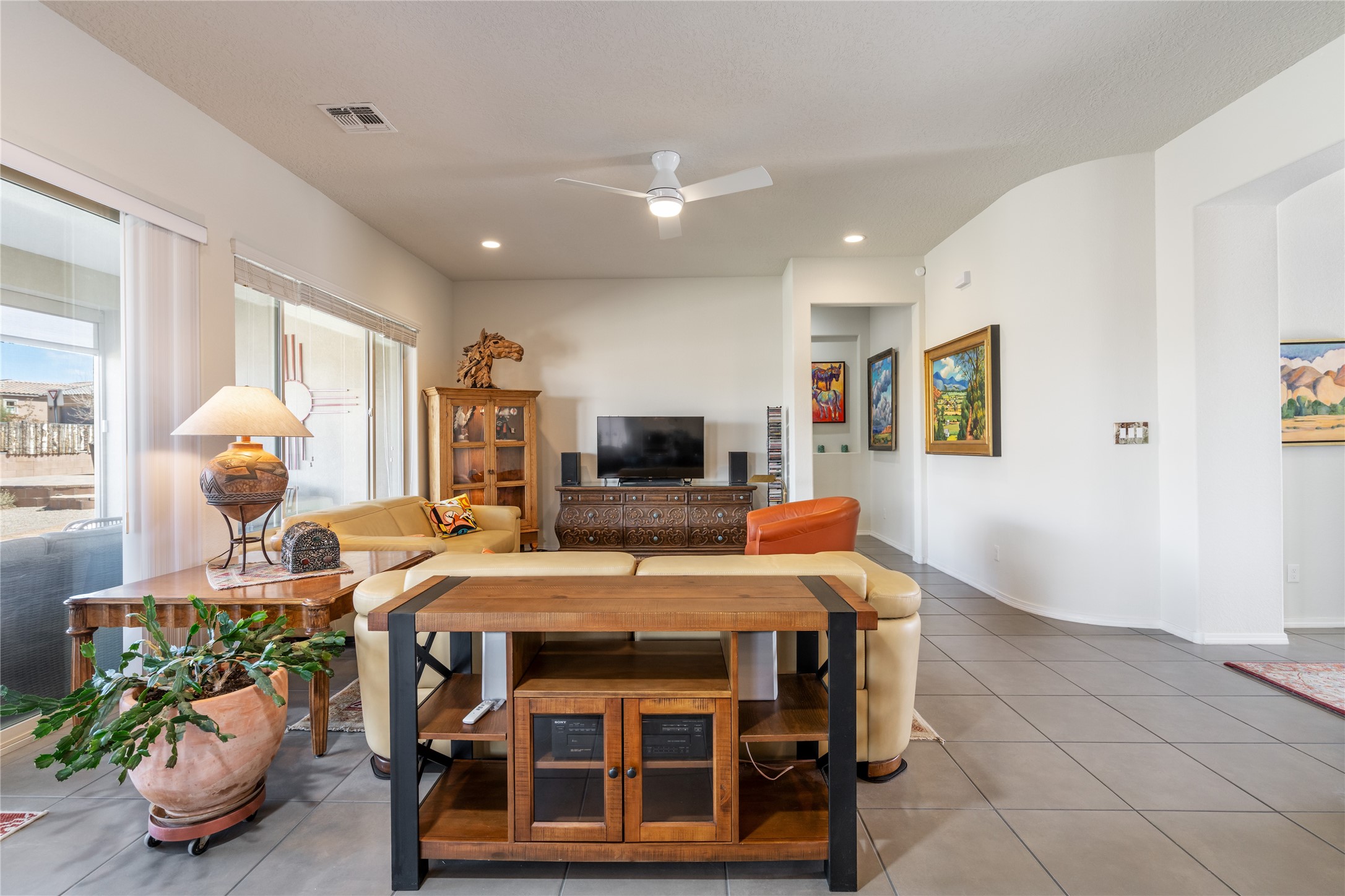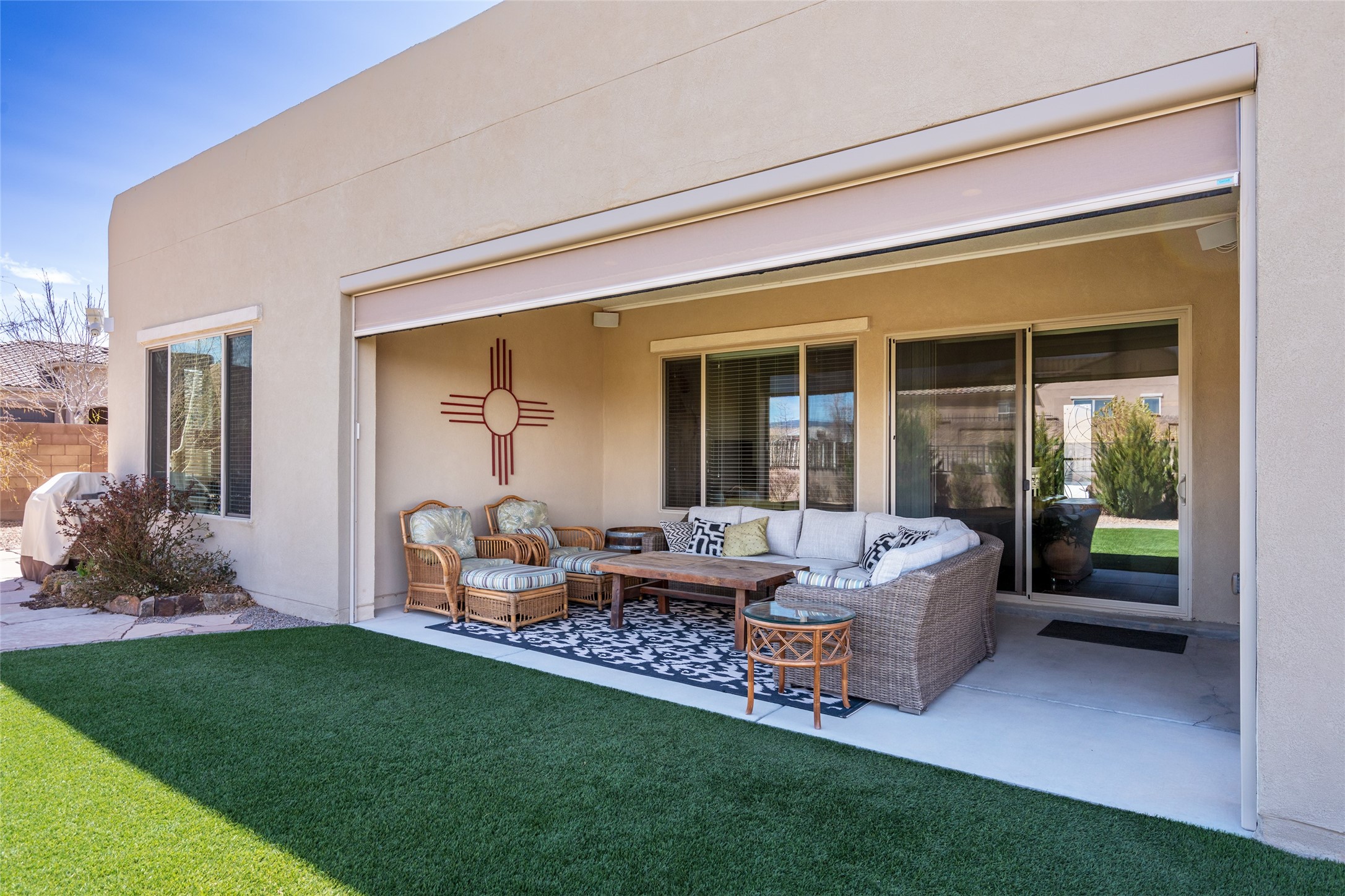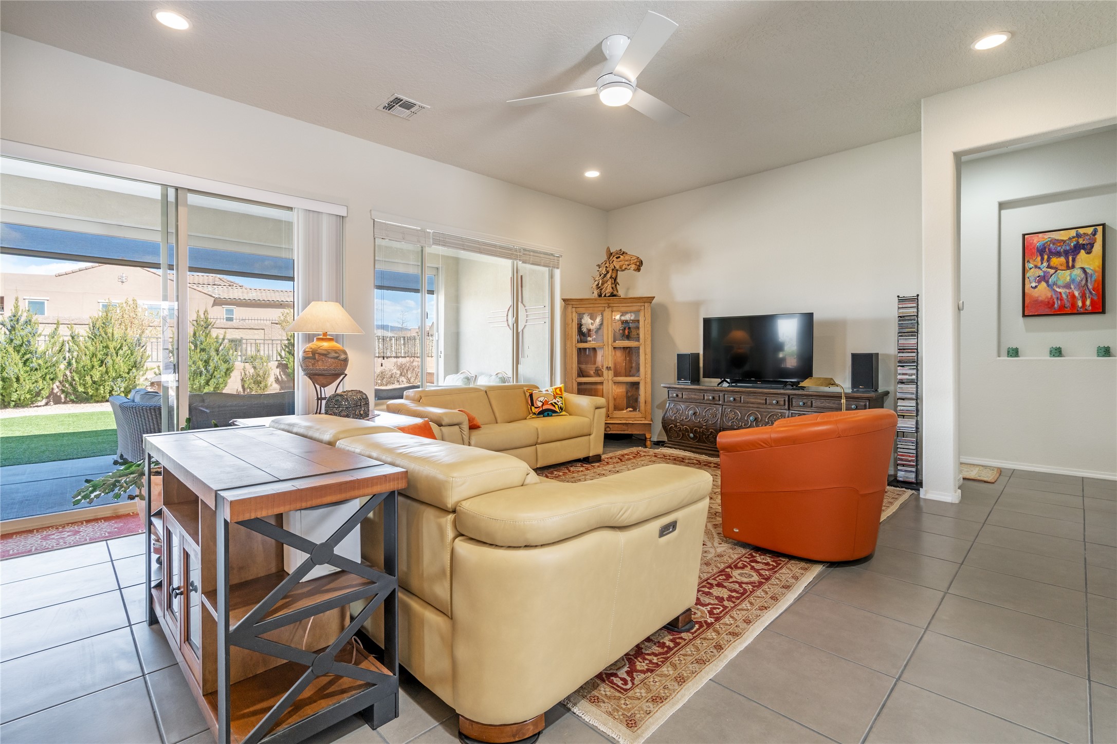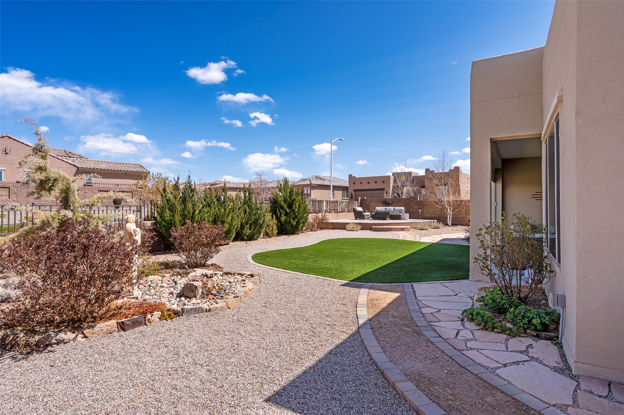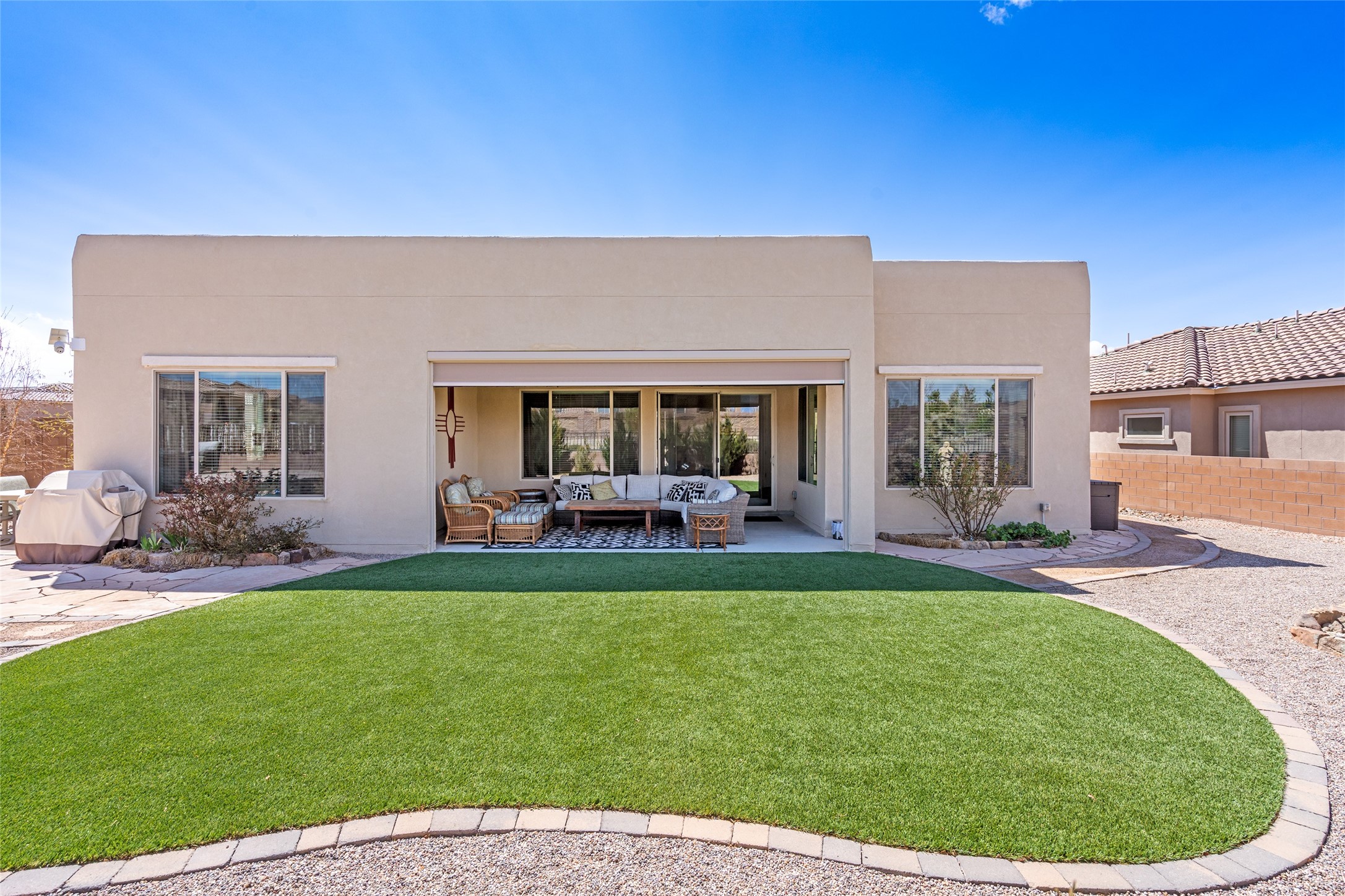 A beautifully maintained home built in 2018 that blends modern comfort with timeless style. This home is in a prime location on a corner lot, and a spacious 3-bedroom, 2-bathroom residence features an open floor plan with tile flooring throughout, providing both durability and elegance. The gourmet kitchen boasts stainless steel appliances, granite countertops, and ample cabinetry, making it a perfect space for cooking and entertaining. The adjacent living area is warm and inviting, offering plenty of natural light and room for relaxation. The primary bedroom is a peaceful retreat, complete with a generous walk-in closet and an en-suite bathroom. Two additional well-sized bedrooms provide flexibility for family, guests, or home office needs. Step outside to enjoy the large, beautifully landscaped backyard with a covered patio--ideal for outdoor dining, relaxing, or gardening. The separate laundry room adds convenience, while the overall layout ensures both privacy and functionality. This stunning home is a true gem, combining modern amenities with a serene setting. Don't miss this opportunity!
