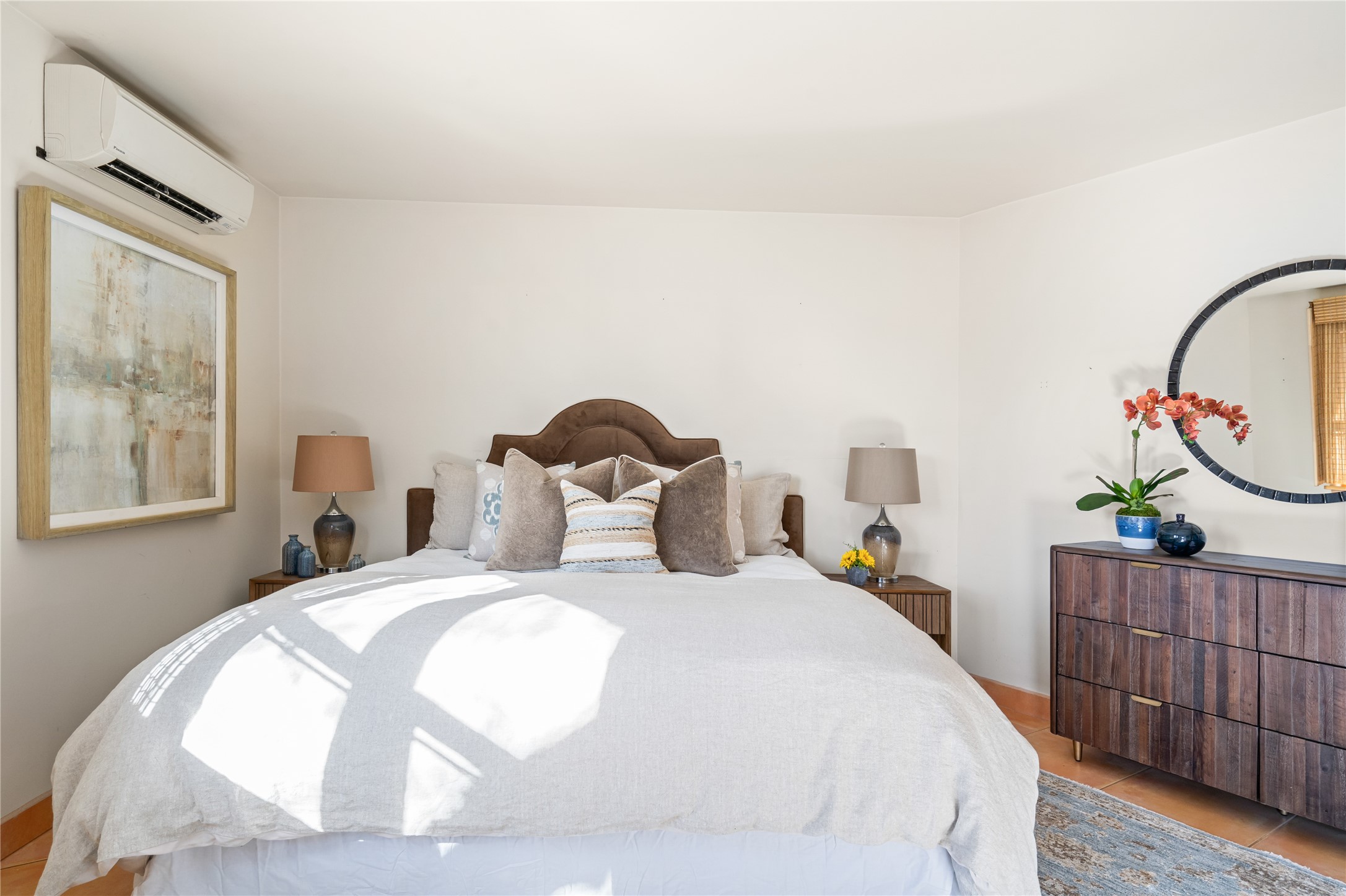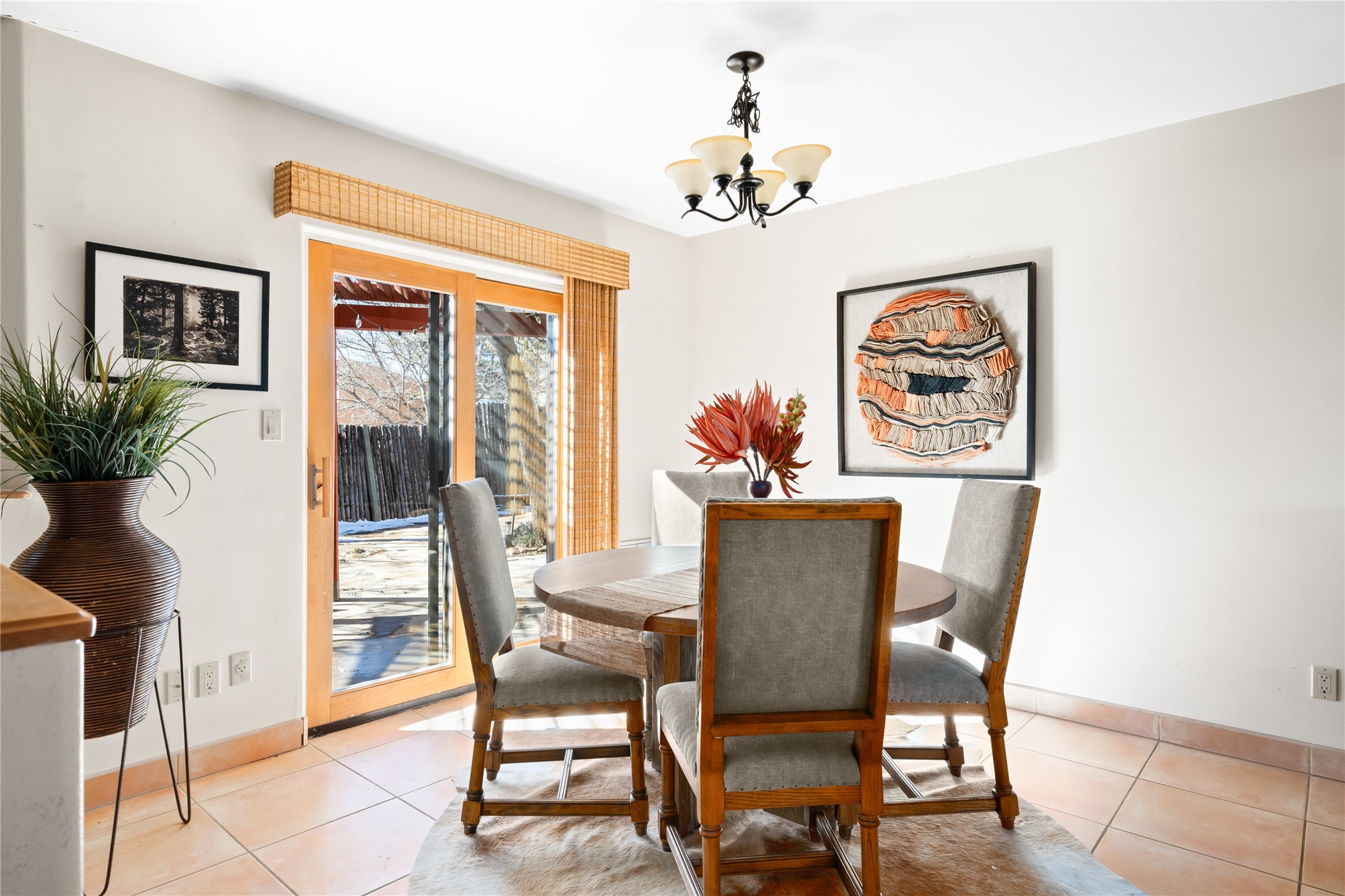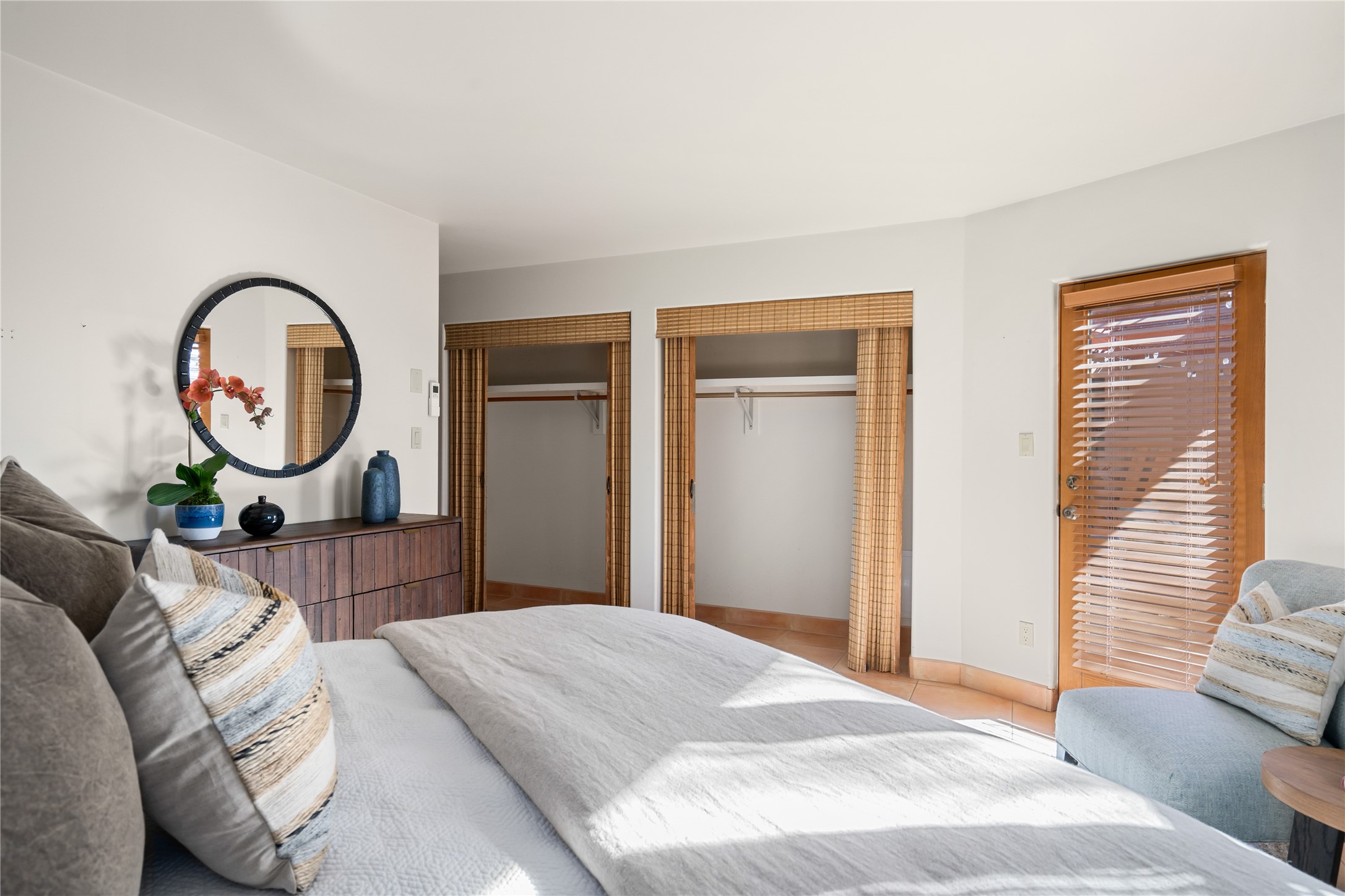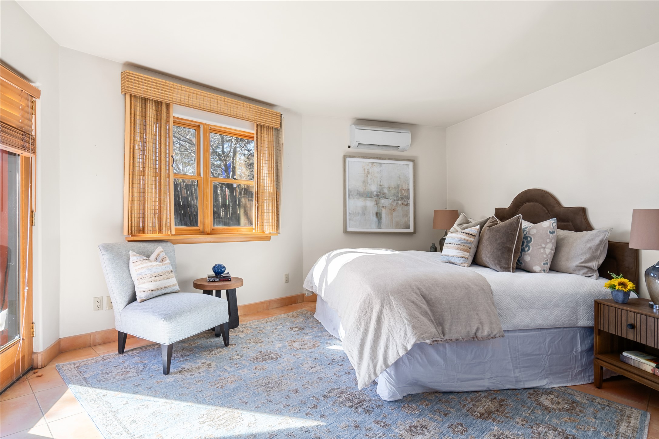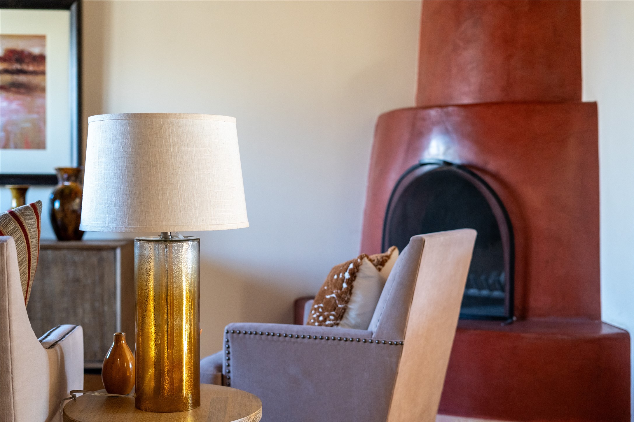 Tucked away in a peaceful enclave off West Alameda, 112 Del Rio is a 2-bedroom, 2-bathroom attached home offering a charming blend of Santa Fe style and modern convenience. Just 12 minutes from the historic Plaza, this attached townhome is a rare find--quiet, private, and with no HOA fees or restrictions. Step inside to find classic Santa Fe details, including vigas and a striking red plaster kiva fireplace, the perfect place to spend a cozy winter evening. The bright and airy living space is complemented by large windows, inviting in natural light and views of the serene surroundings and the Sangre de Cristo mountains. Recently installed mini splits create year-round comfort. The home is move-in ready with a well-appointed kitchen and a fenced backyard with a patio, mature trees, and drip irrigation. The primary bedroom has an en-suite private bath as well as back patio direct access. The Santa Fe River Trail is just moments away, with endless opportunities for walking and biking downtown (it's only a 17-minute bike ride to the Plaza). With an attached one-car garage and easy access to the Plaza and the Railyard/Farmer's Market as well as the Alameda neighborhood shops and parks, this Santa Fe gem is sure to inspire you.