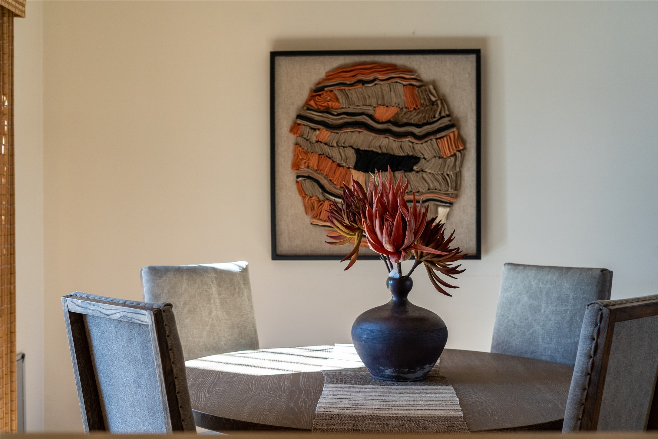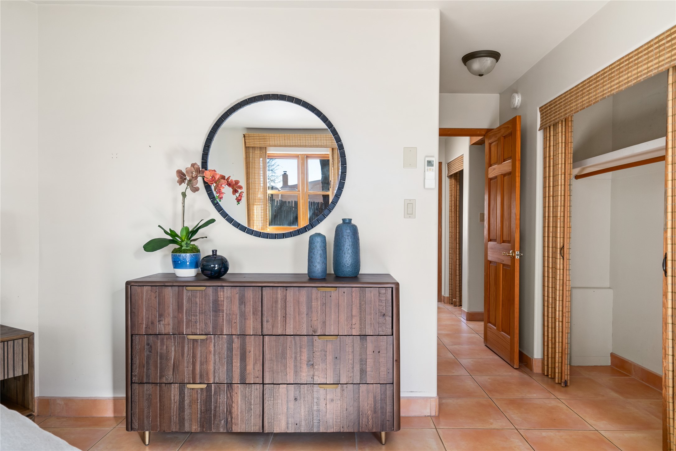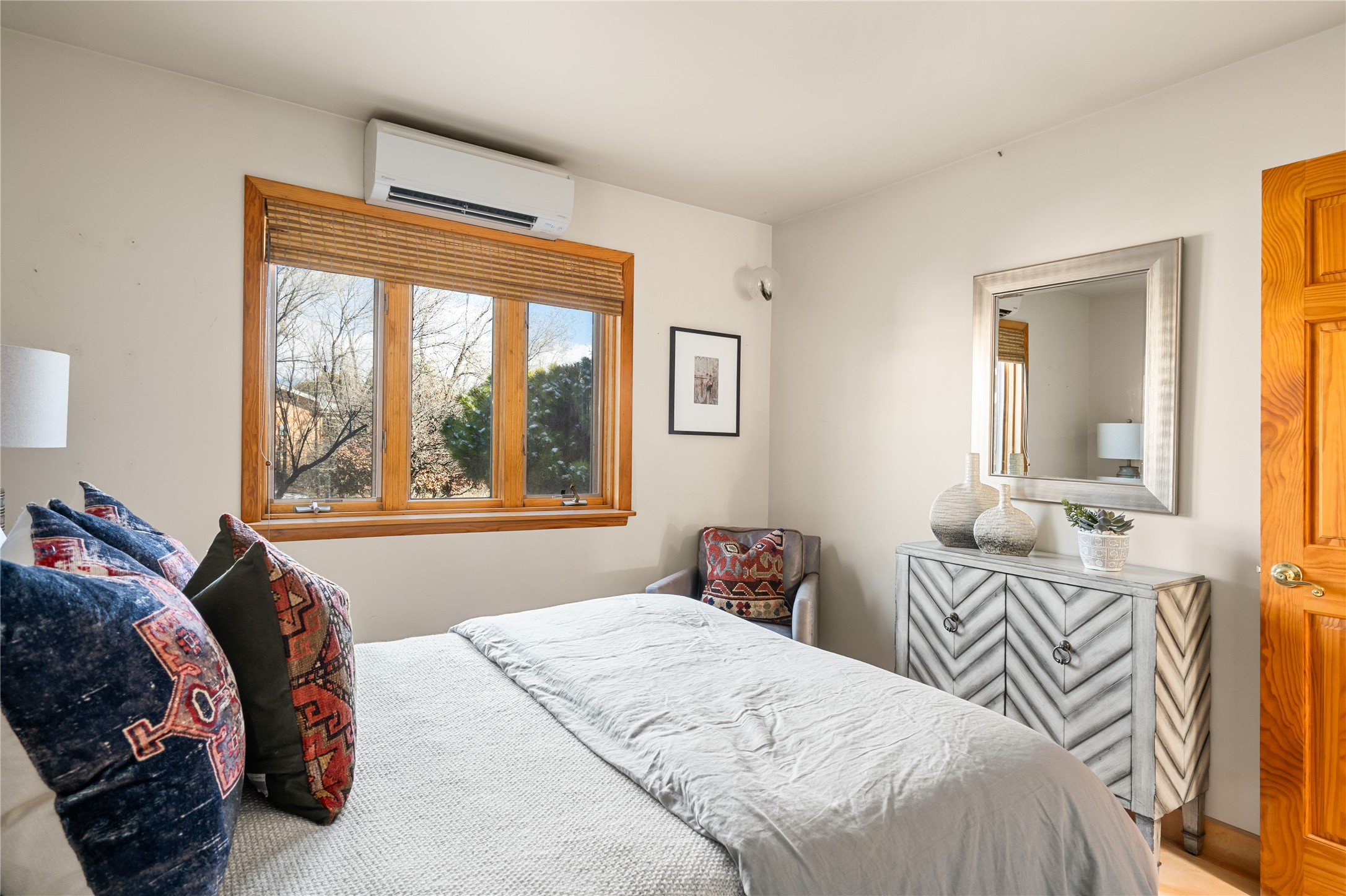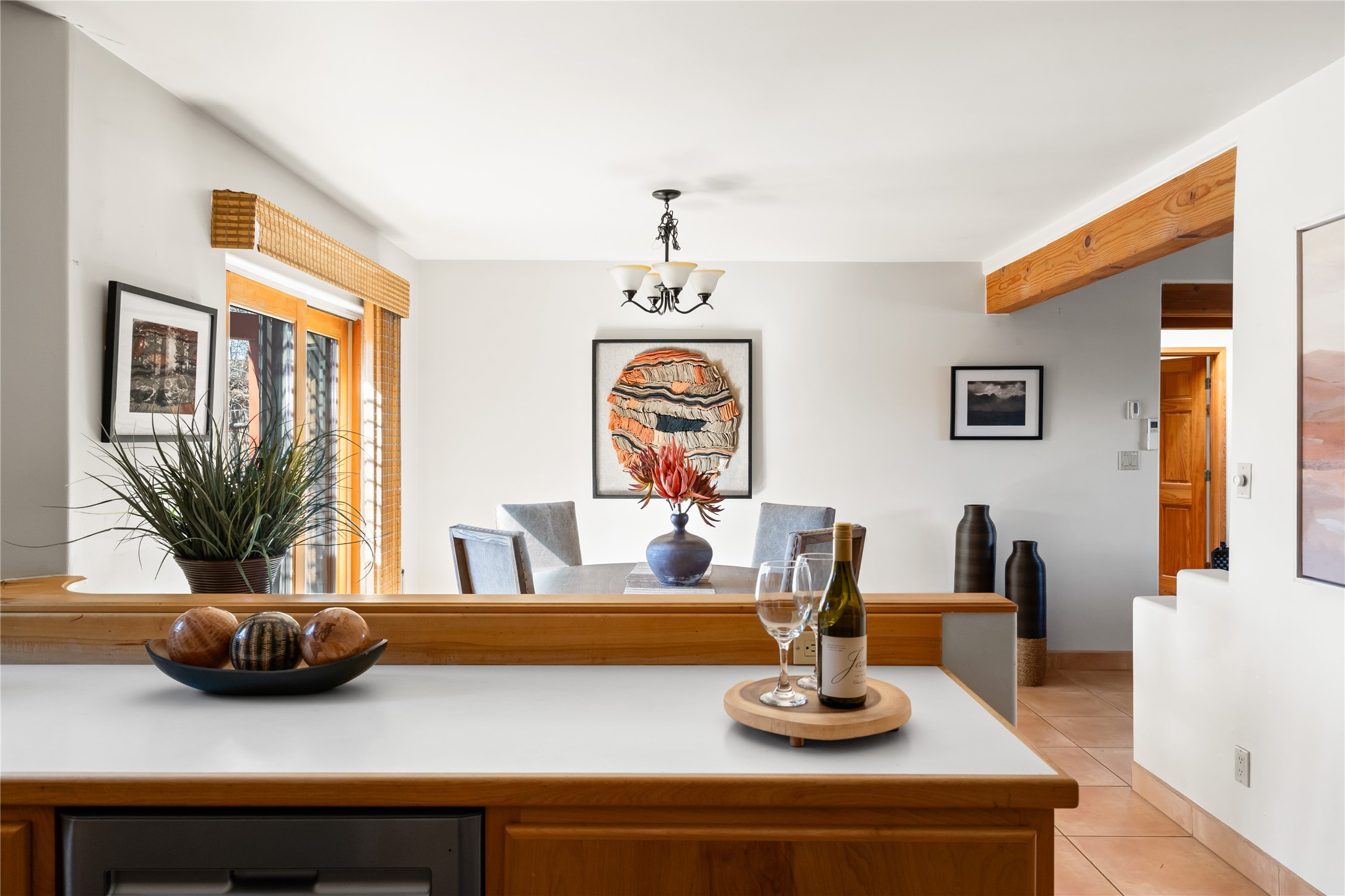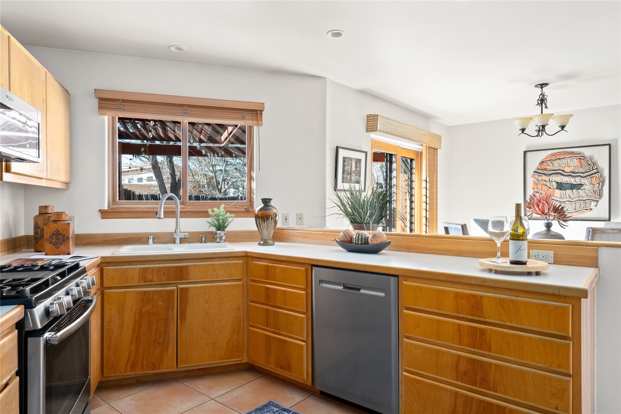Tucked away in a peaceful enclave off West Alameda, 112 Del Rio is a 2-bedroom, 2-bathroom attached home offering a charming blend of Santa Fe style and modern convenience. Just 12 minutes from the historic Plaza, this attached townhome is a rare find--quiet, private, and with no HOA fees or restrictions. Step inside to find classic Santa Fe details, including vigas and a striking red plaster kiva fireplace, the perfect place to spend a cozy winter evening. The bright and airy living space is complemented by large windows, inviting in natural light and views of the serene surroundings and the Sangre de Cristo mountains. Recently installed mini splits create year-round comfort. The home is move-in ready with a well-appointed kitchen and a fenced backyard with a patio, mature trees, and drip irrigation. The primary bedroom has an en-suite private bath as well as back patio direct access. The Santa Fe River Trail is just moments away, with endless opportunities for walking and biking downtown (it's only a 17-minute bike ride to the Plaza). With an attached one-car garage and easy access to the Plaza and the Railyard/Farmer's Market as well as the Alameda neighborhood shops and parks, this Santa Fe gem is sure to inspire you.