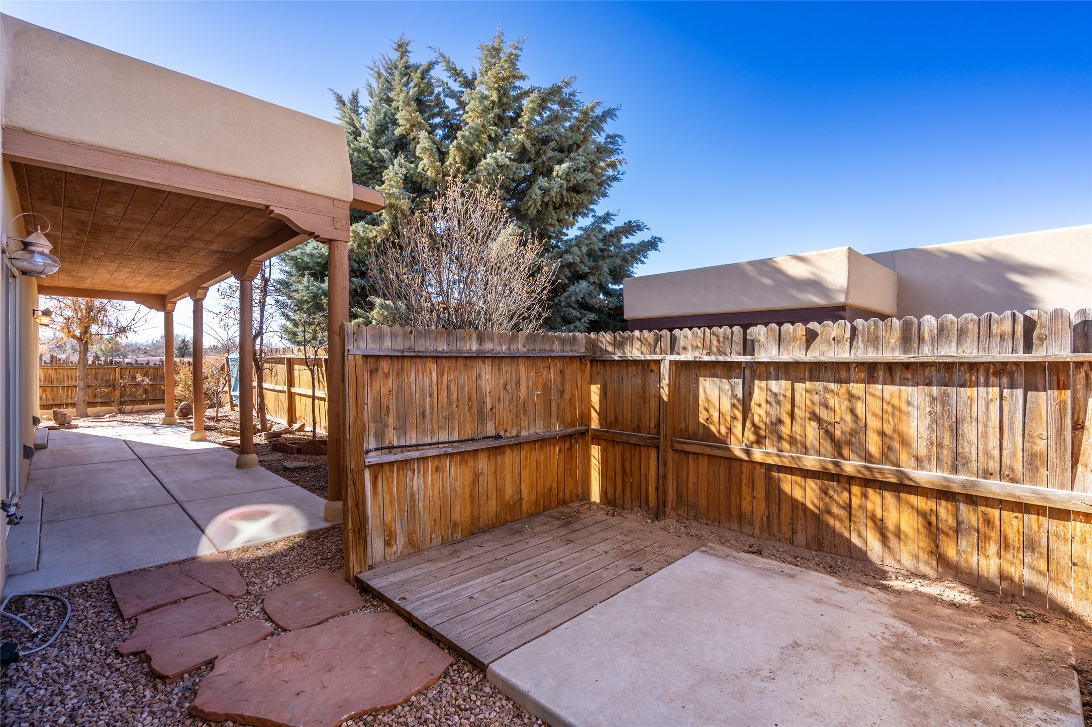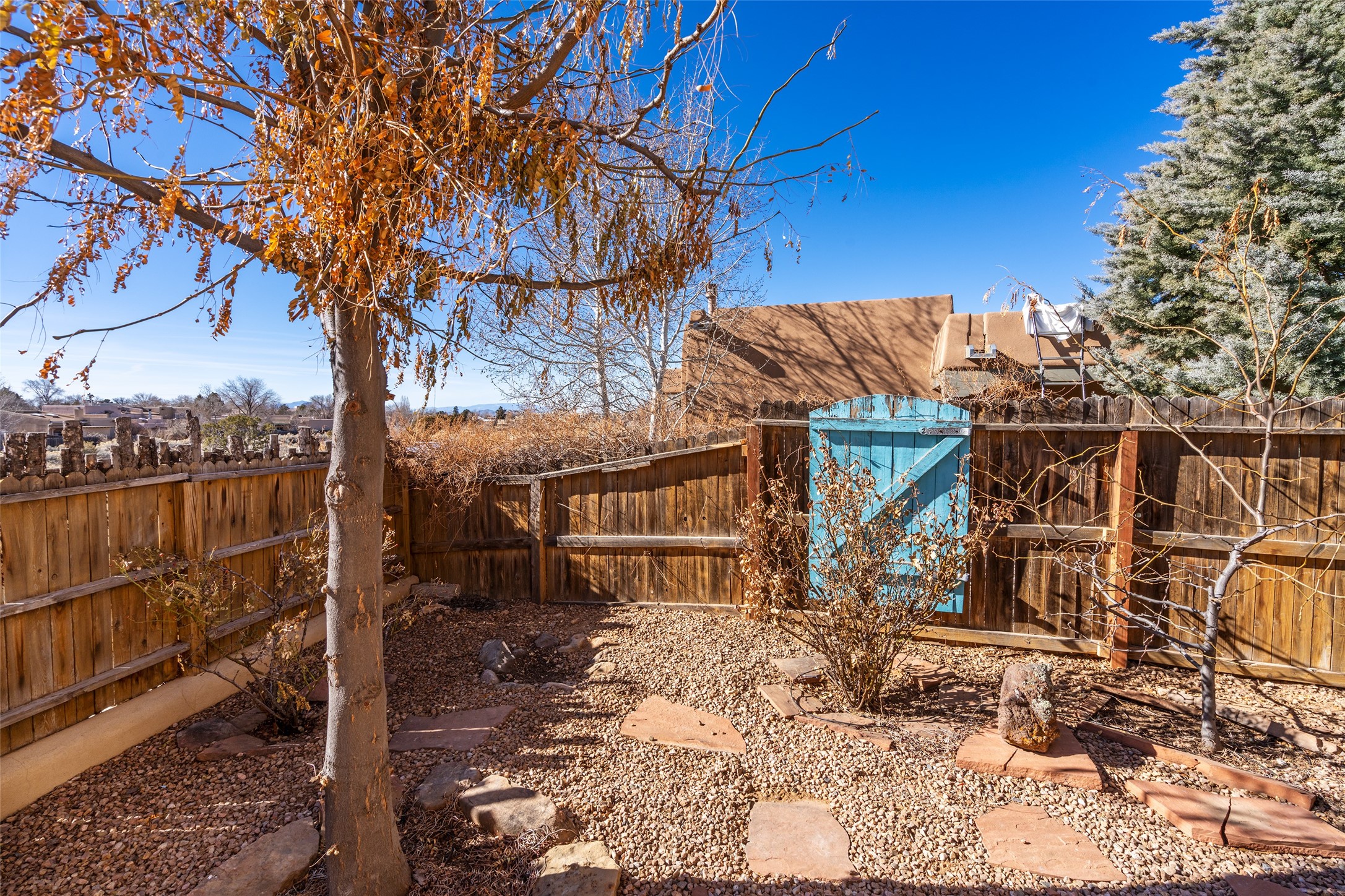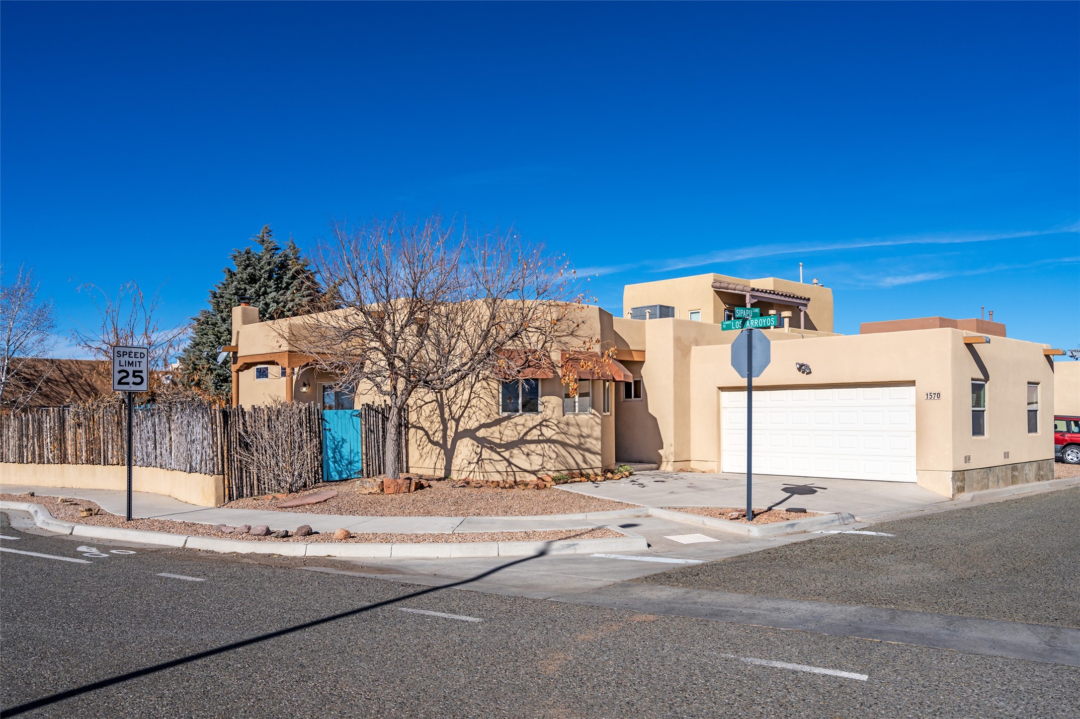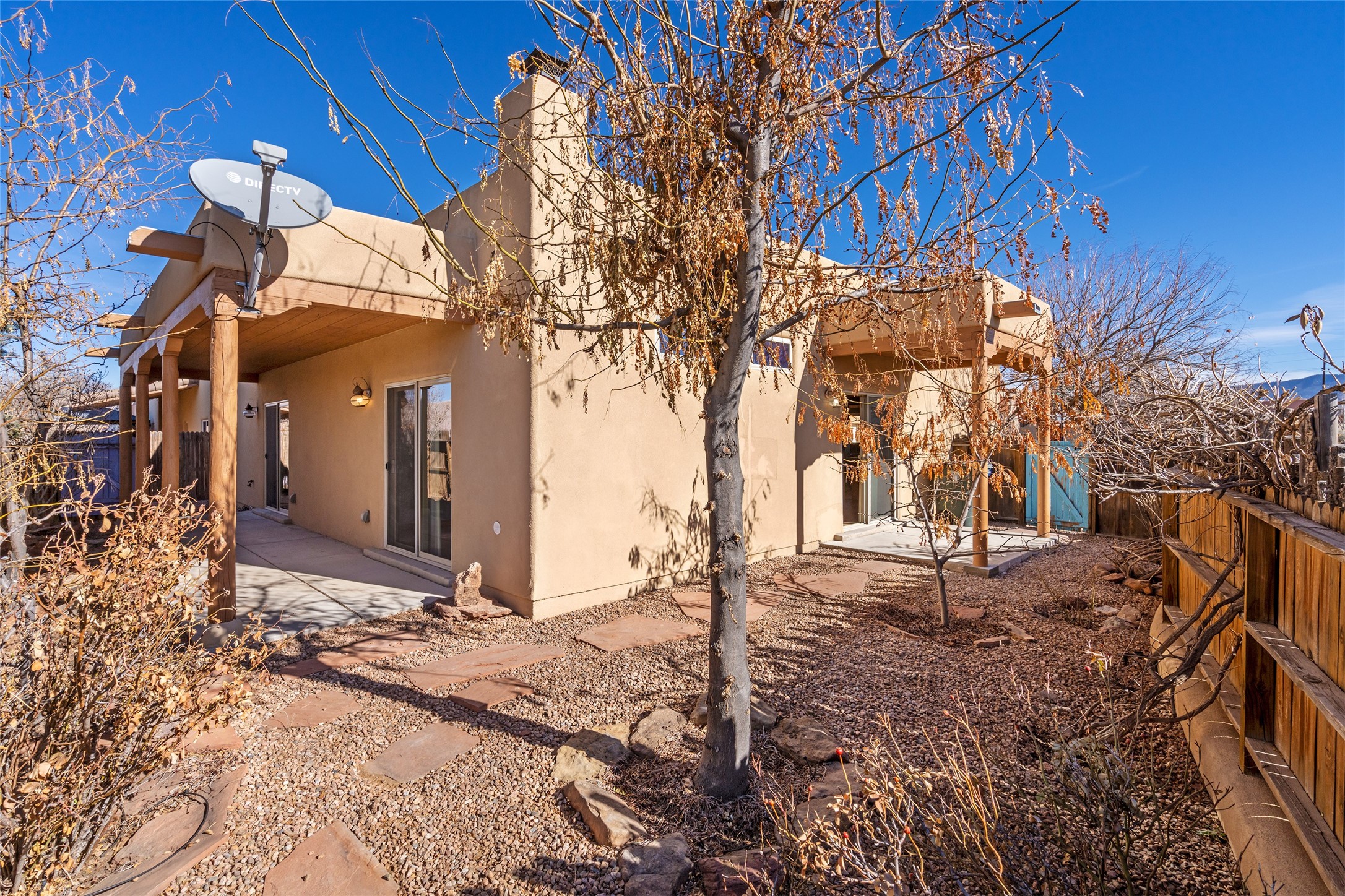 Conveniently located, desirable end unit in the Kachina Ridge neighborhood, this charming 3 bed, 2 bath single level and single family home with office/flex-space is adjacent to an arroyo and the Arroyo de Los Chamisos Urban Trail, offering the best of all worlds: a tucked away neighborhood feel with outdoor open space and convenient access to major arteries and shopping hubs.Traditional Southwest details include a kiva fireplace, nichos, a corbel beam, and viga and beam ceilings in the living area, complemented by contemporary features including laminate wood flooring in the living room and primary bedroom, radiant floor heating and refrigerated central air. Enjoy abundant natural light from clerestory windows and two sets of sliding doors in the living area, a large skylight in the dining area, and multiple windows in the welcoming kitchen with granite countertops and stainless steel appliances.An interior office or flex space as well as a 1-car garage with a 160 sq ft unfinished flex space is ideal for artists, hobbyists, remote workers, or additional storage. Hosts will love the landscaped sideyard with two portals and additional patio space, perfect for dining al fresco and soaking up our gorgeous skies.This lovely home is move-in ready and waiting for its next owner. Schedule a showing today!