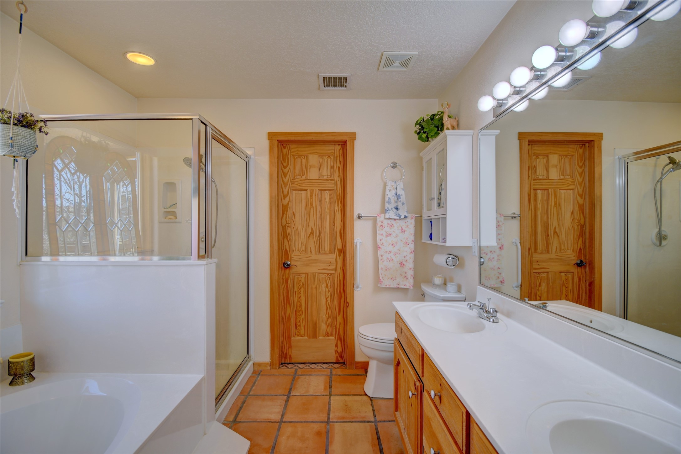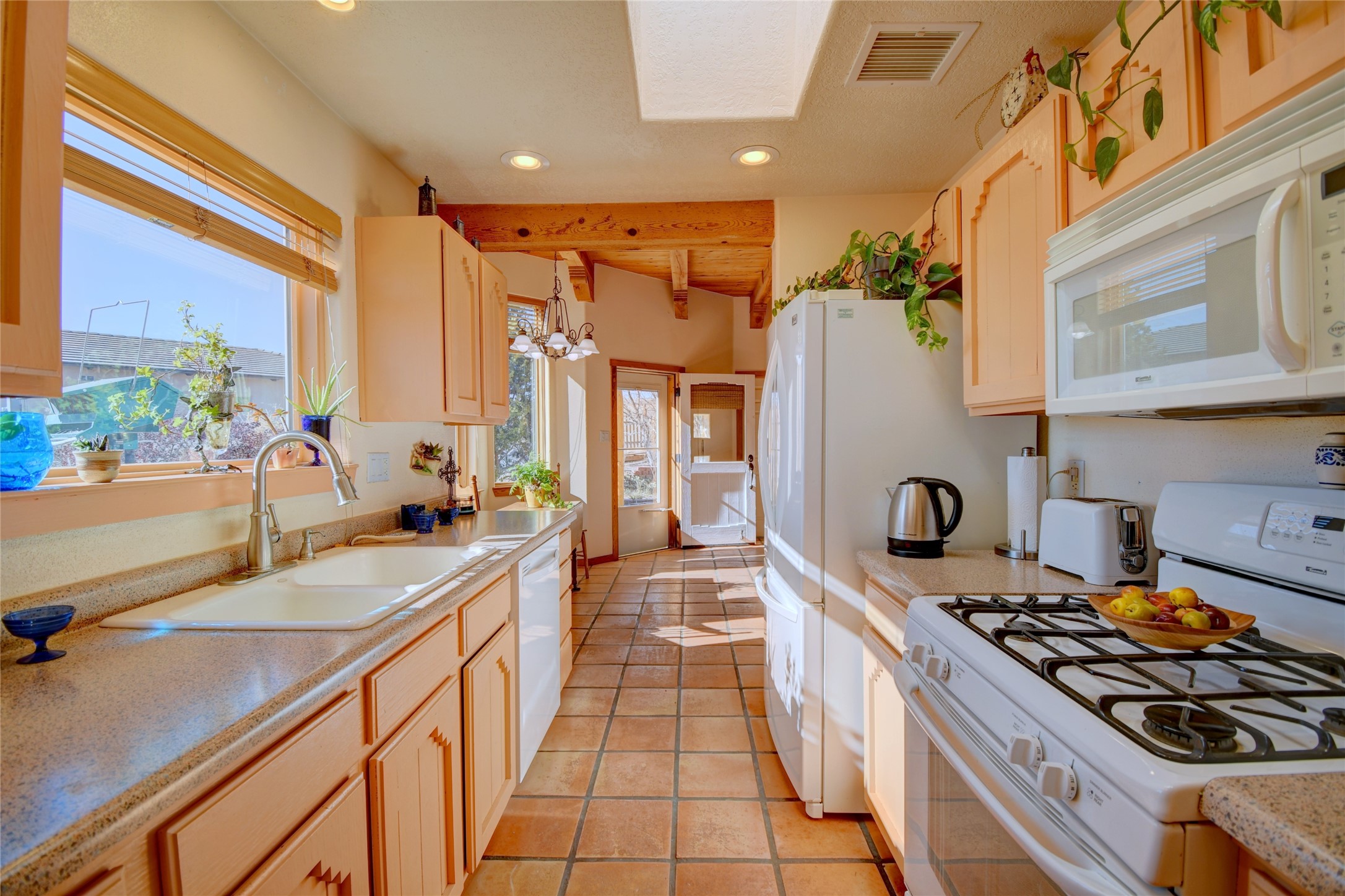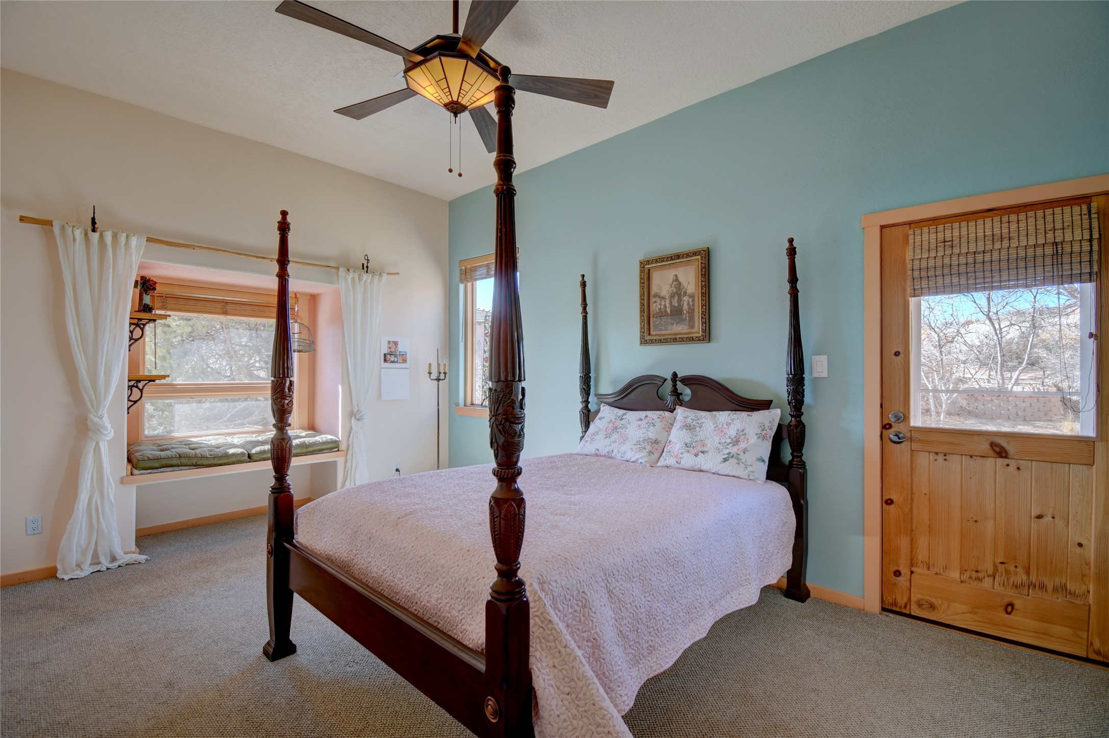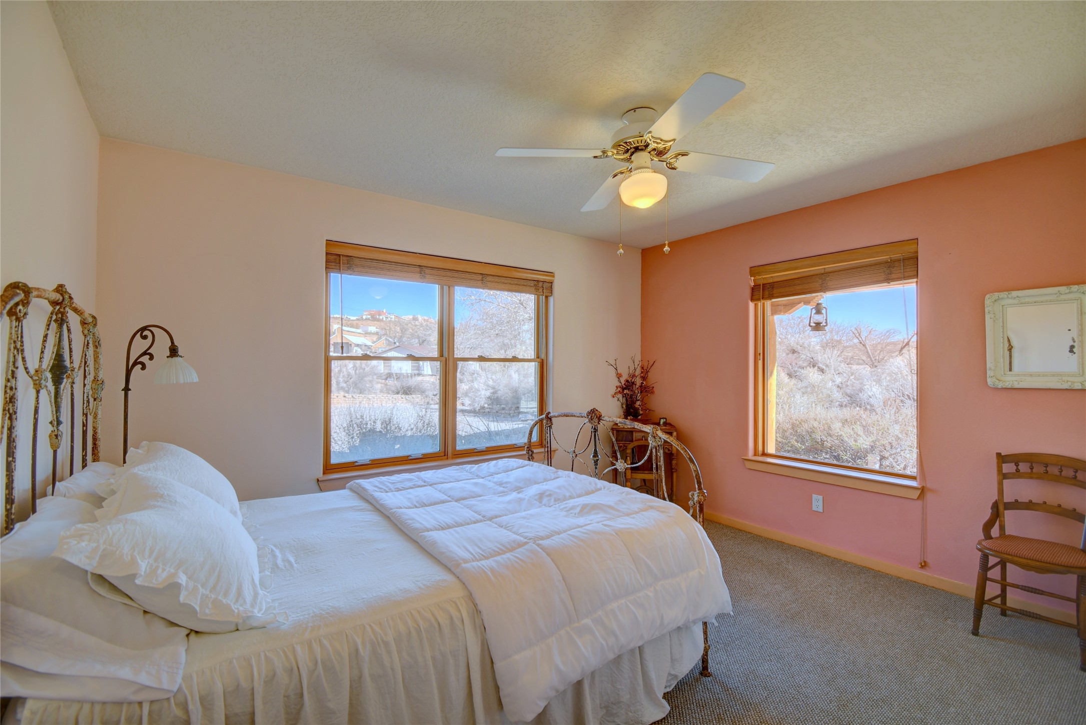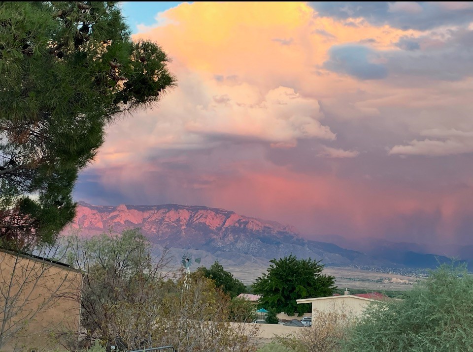 Experience the charm of Pueblo-style architecture in this welcoming home located in the Village of Corrales. This property includes three bedrooms and two bathrooms, a living room featuring high ceilings with corbelled beams for a bright and airy feel. Natural light floods the living spaces, enhanced by captivating daytime mountain and evening city lights views that provide a serene backdrop. Enjoy the benefits of nature and outdoor living with a covered porch and plenty of space for relaxation, entertaining and watching the quail. The home is equipped with owned solar panels, promoting energy efficiency and sustainability. An extra-large great room offers versatile usage for a home office, craft room, or play area, while a large, detached storage room adds convenience.