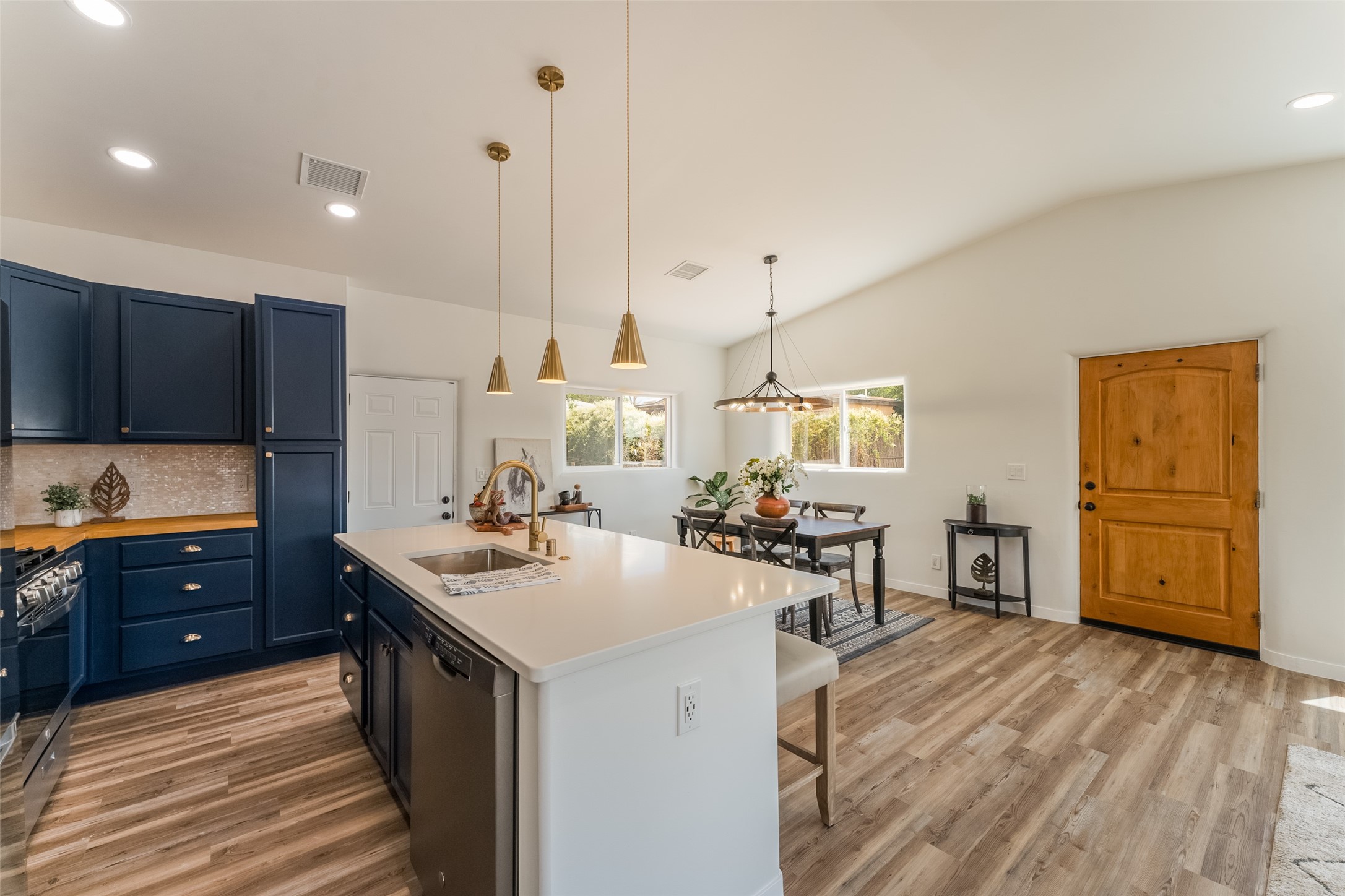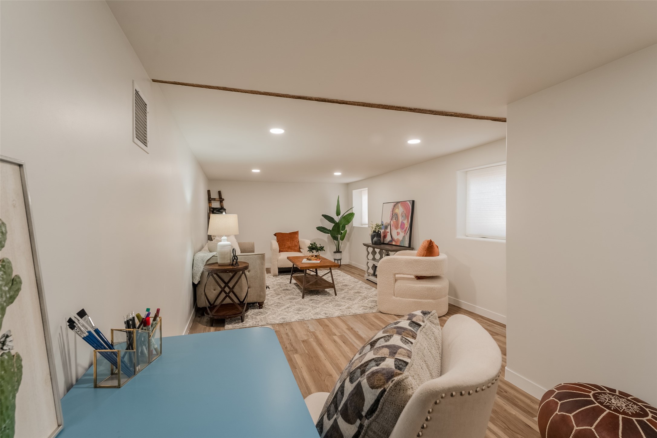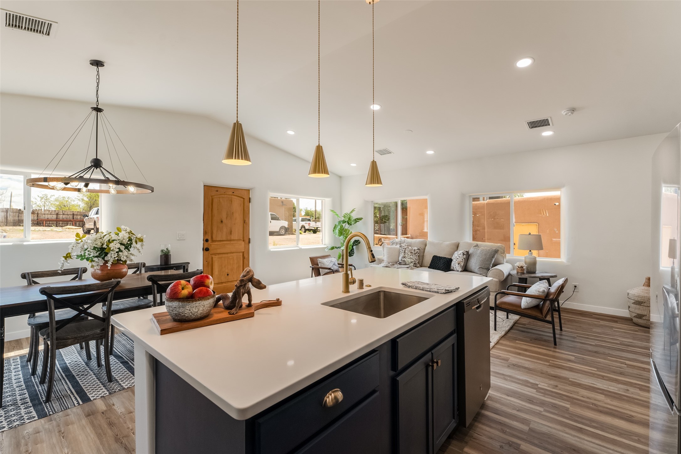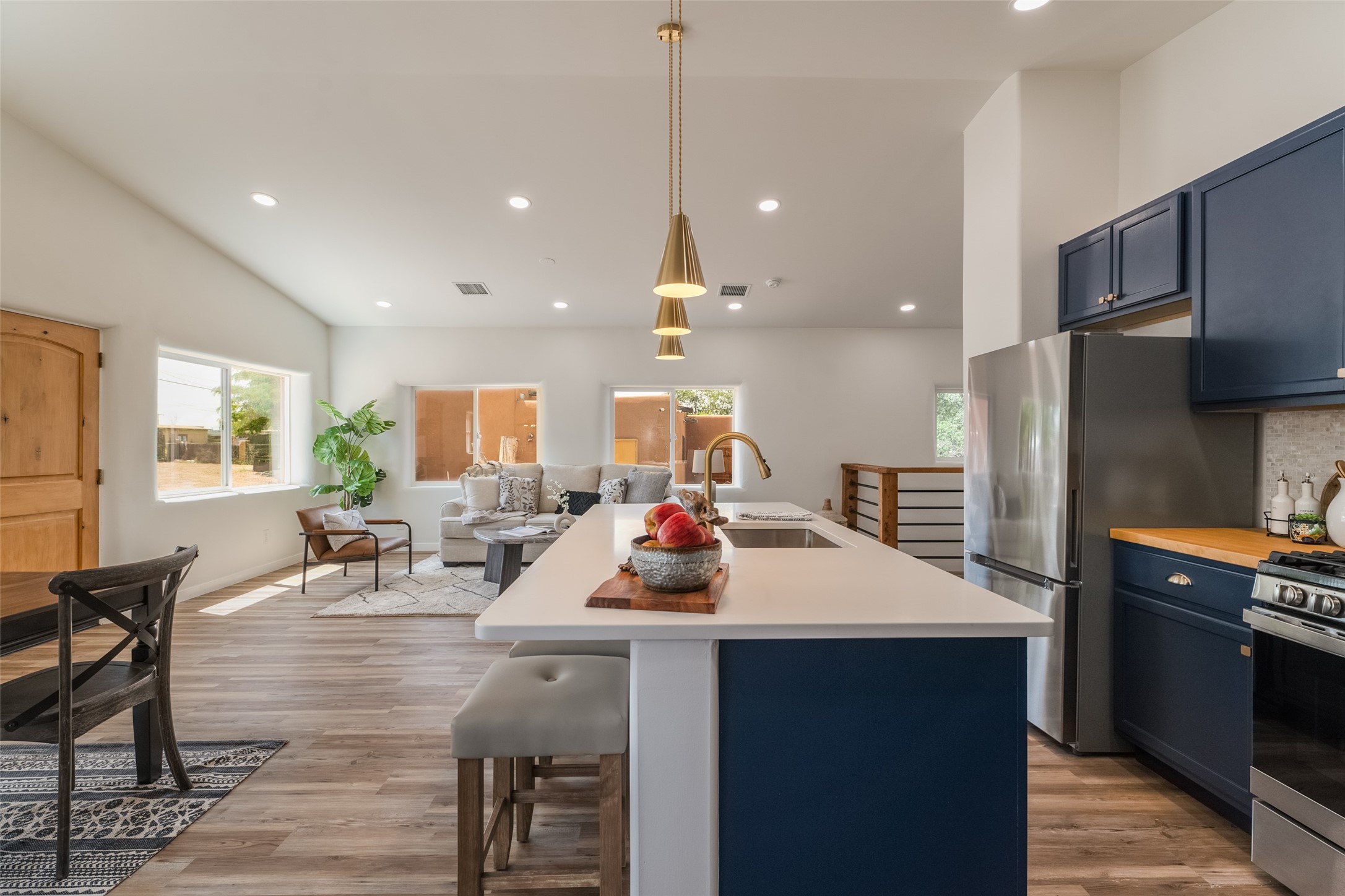 Welcome to a stunning adobe home in the Historic Agua Fra District, where timeless charm meets modern convenience. This beautifully updated residence blends Santa Fe's rich history with contemporary features. The open-concept living area flows into a dream kitchen with stainless steel appliances, quartz and butcher block countertops, and a large island for entertaining. With three bedrooms, two bathrooms, plus a bonus room and office in the basement, there's plenty of space. Recent upgrades include a brand new sewer line connected to city sewer and an upgraded electrical panel. Additional highlights include a one-car garage and a charming latilla fence.Schedule your tour today--don't miss this unique opportunity!