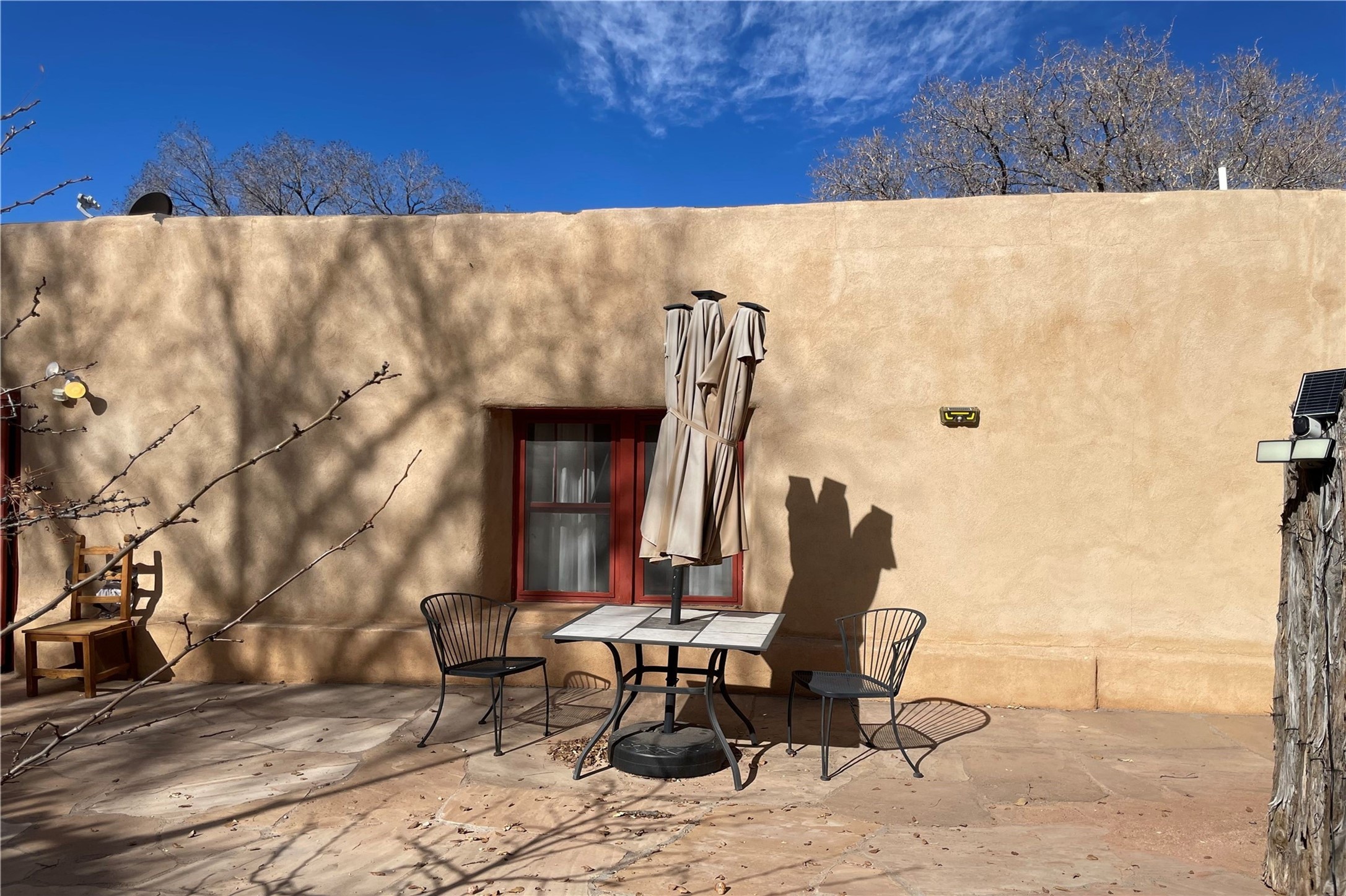 Truly, this authentic Santa Fe Historic Double Adobe Home and Casita near the Plaza exude Santa Fe Style. Down a lane from Paseo De Peralta, leads one to this very private family compound situated on .71 acres of land. The main home was built by the Spanish military in the late 1700s to house an officer at Fort Marcy. The Sisneros Family came to own it due to a daughter marrying the Spanish Colonel in 1840. The property then became a family Compound. This storied Santa Fe property has been owned and loved by the Sisneros family ever since. The compound comprises a two-bedroom, two-bath main home and a one-bedroom, one-bath casita, both with full kitchens and living room areas. The Main Home and the Casita were fully restored and remodeled in 2008. The restoration was accomplished with respect for the historic quality of the home. The high viga ceilings, diamond finish, hand-troweled plaster walls, multiple nichos, and wood floors speak to that respectfully. Adjacent land, purchased from the Cathedral in the 1950s, adds westerly city and mountain views. Enjoy the private outdoor patio area nestled below the Cross of the Martyrs, and walk, yes walk, to all that the heart of the Historic Santa Fe Plaza has to offer. This is a once in a lifetime opportunity!