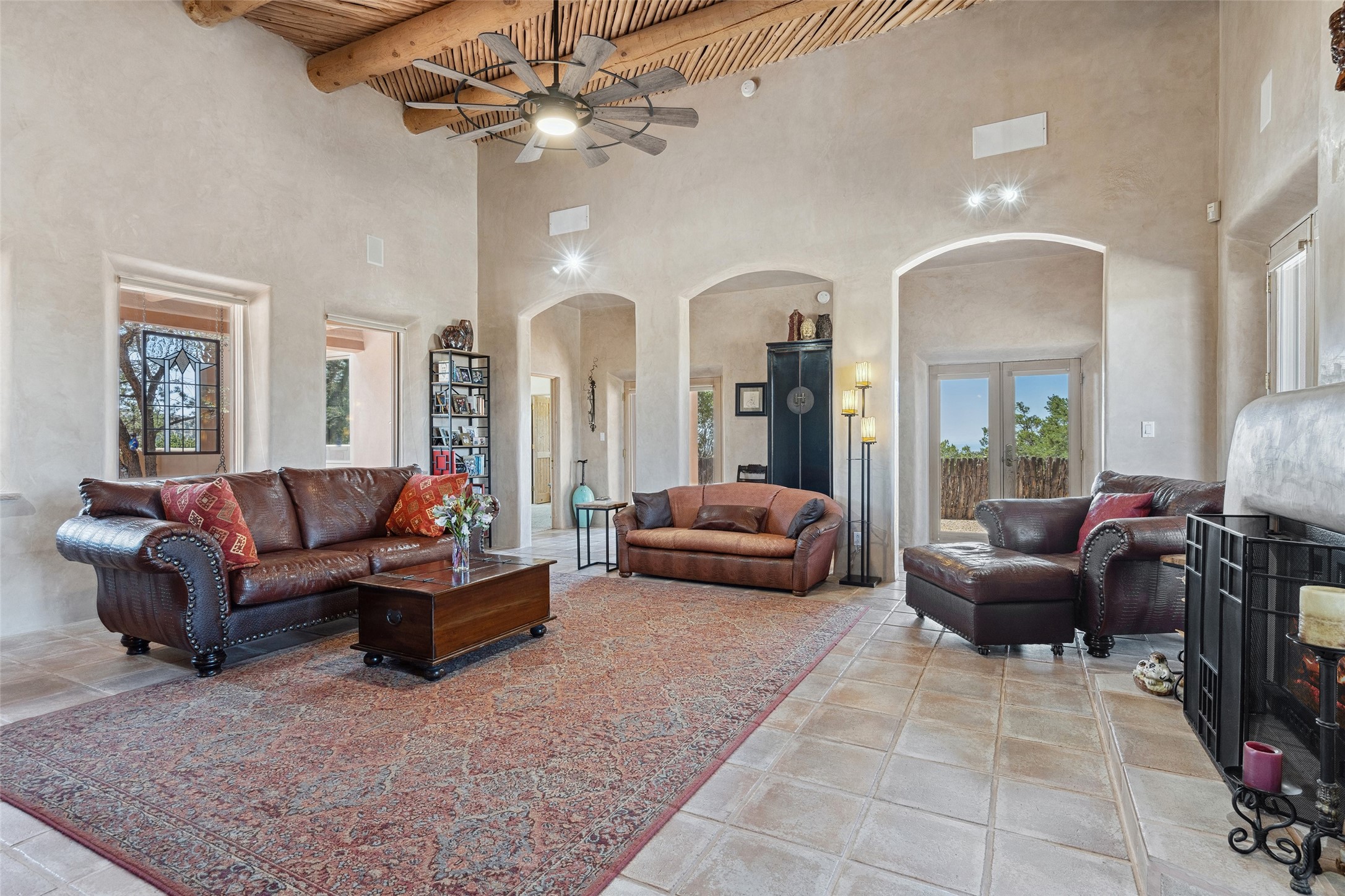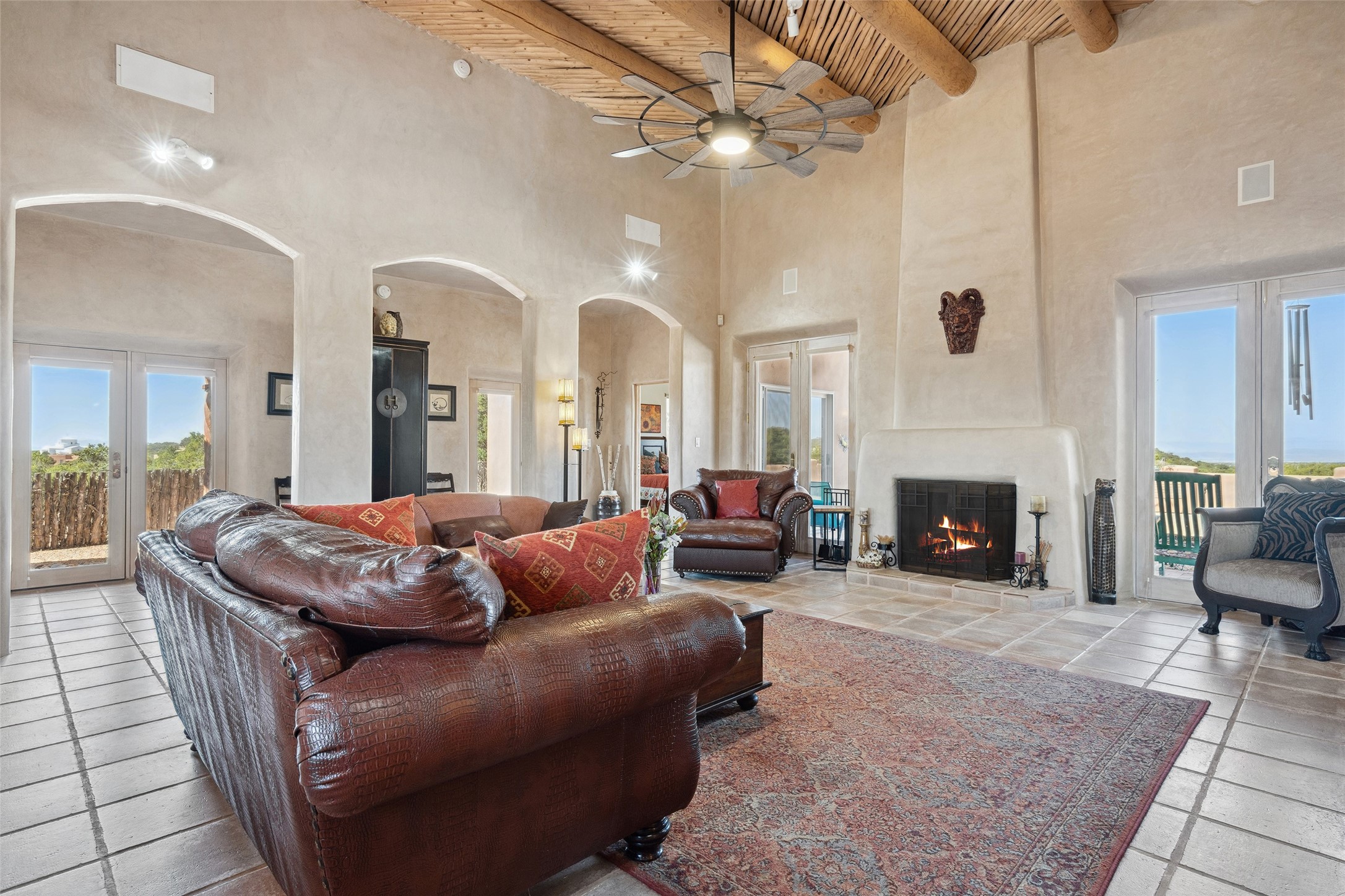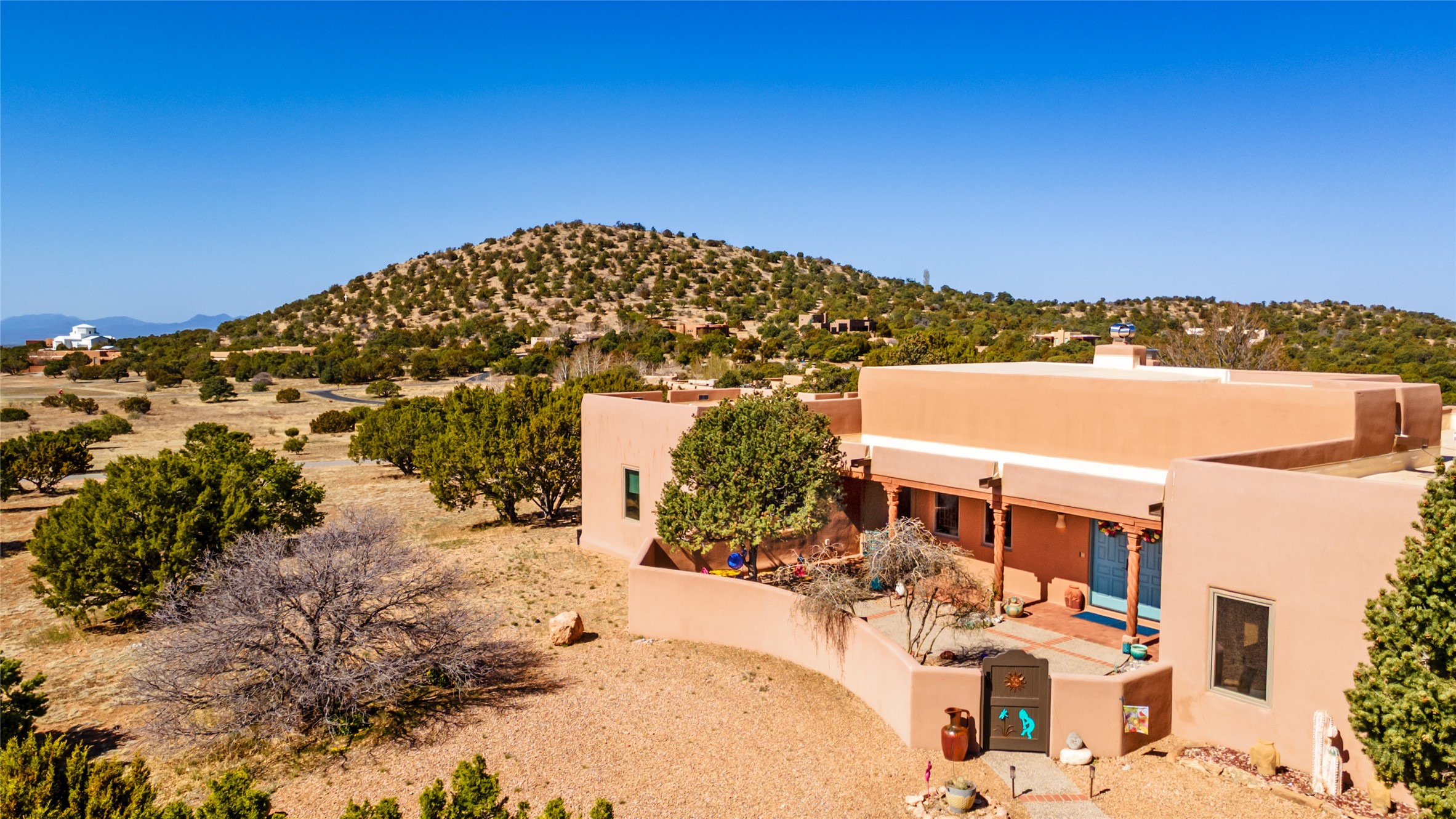 Exquisite Santa Fe Retreat with Sweeping Mountain Views3 Camino Costadino | Dos Griegos | Santa Fe, NMNestled in the highly sought-after Dos Griegos neighborhood, this stunning 3-bedroom, 3-bathroom residence captures the essence of Santa Fe living with breathtaking views of the Jemez Mountains and the foothills of the Sangre de Cristo range.Step into a grand great room where 15-foot ceilings, classic vigas, and smooth diamond plaster walls create a warm and timeless elegance. Expansive windows frame the dramatic natural landscape while flooding the home with ambient light--seamlessly blending the beauty of the outdoors with the comfort of the interior.This thoughtfully designed home also features a dedicated craft room and a spacious office just off the garage, offering flexibility for creatives, remote professionals, or those in need of extra space.Recent upgrades include a brand-new roof and Lifetime Fiberspan canales, ensuring long-term durability and peace of mind. A versatile 13' x 13' shed provides ample room for storage, hobbies, or workshop use.Whether you're savoring a quiet evening under the stars or hosting guests against a backdrop of spectacular mountain views, 3 Camino Costadino offers a rare blend of Southwestern charm, functionality, and enduring quality.