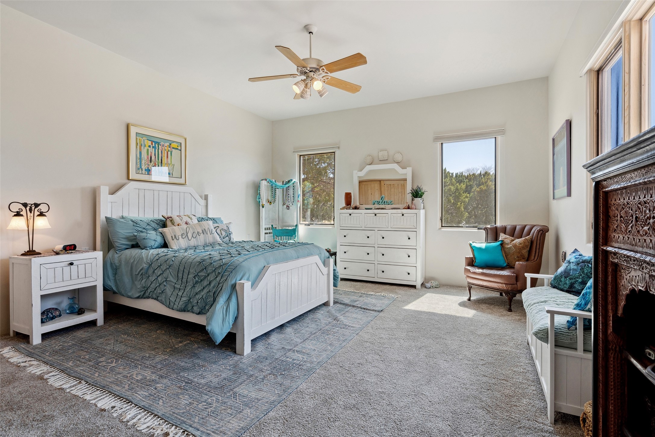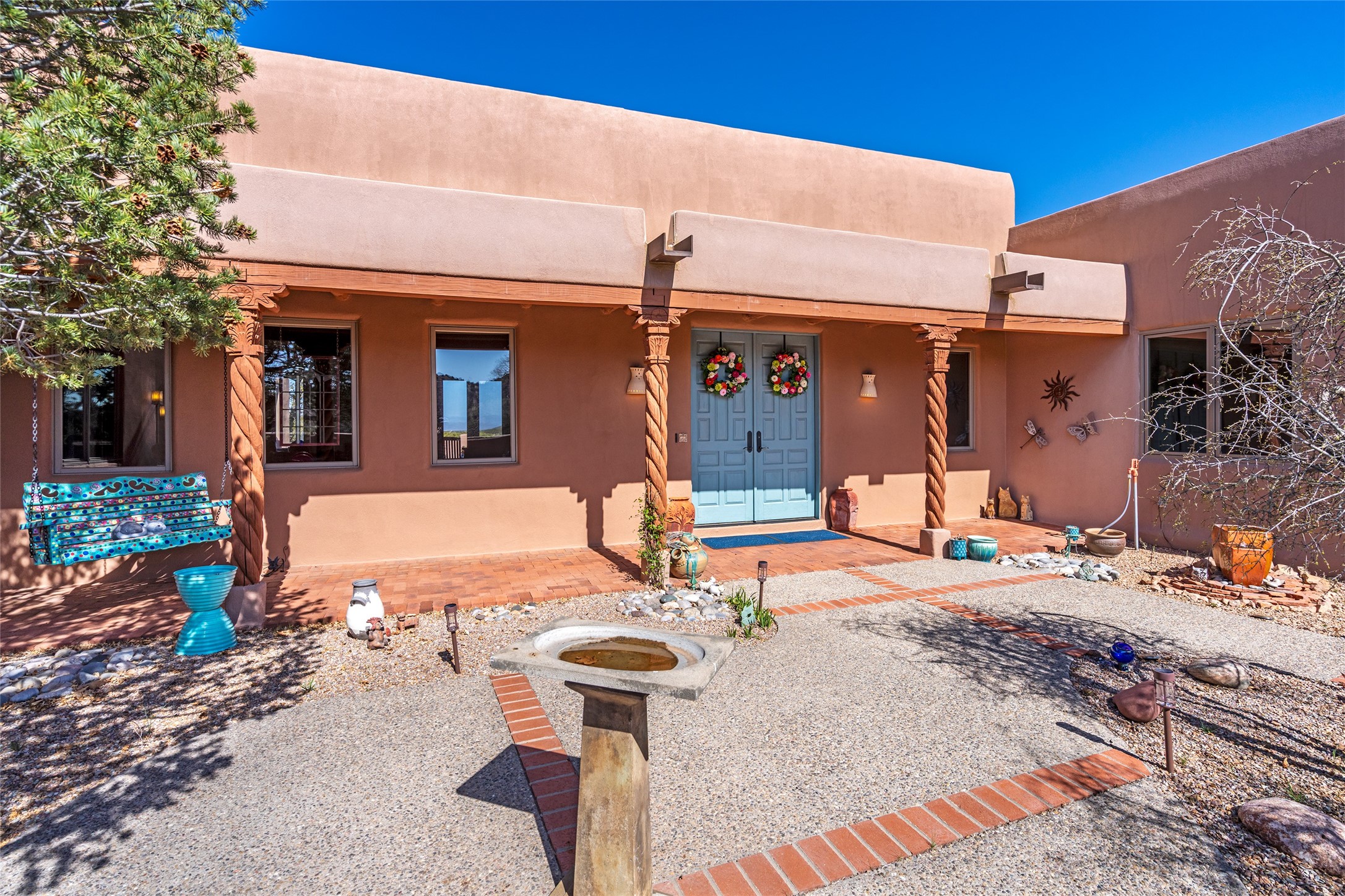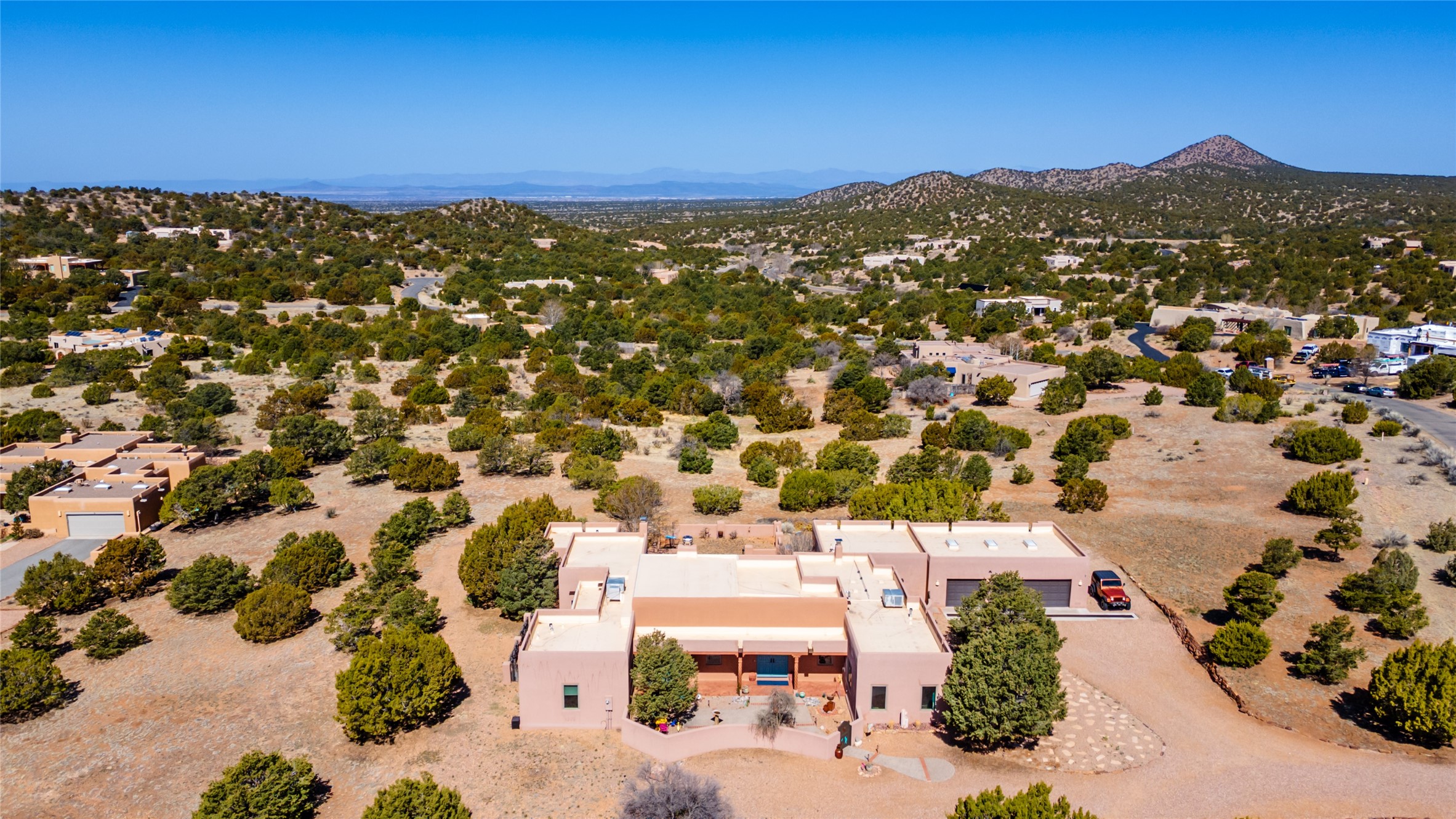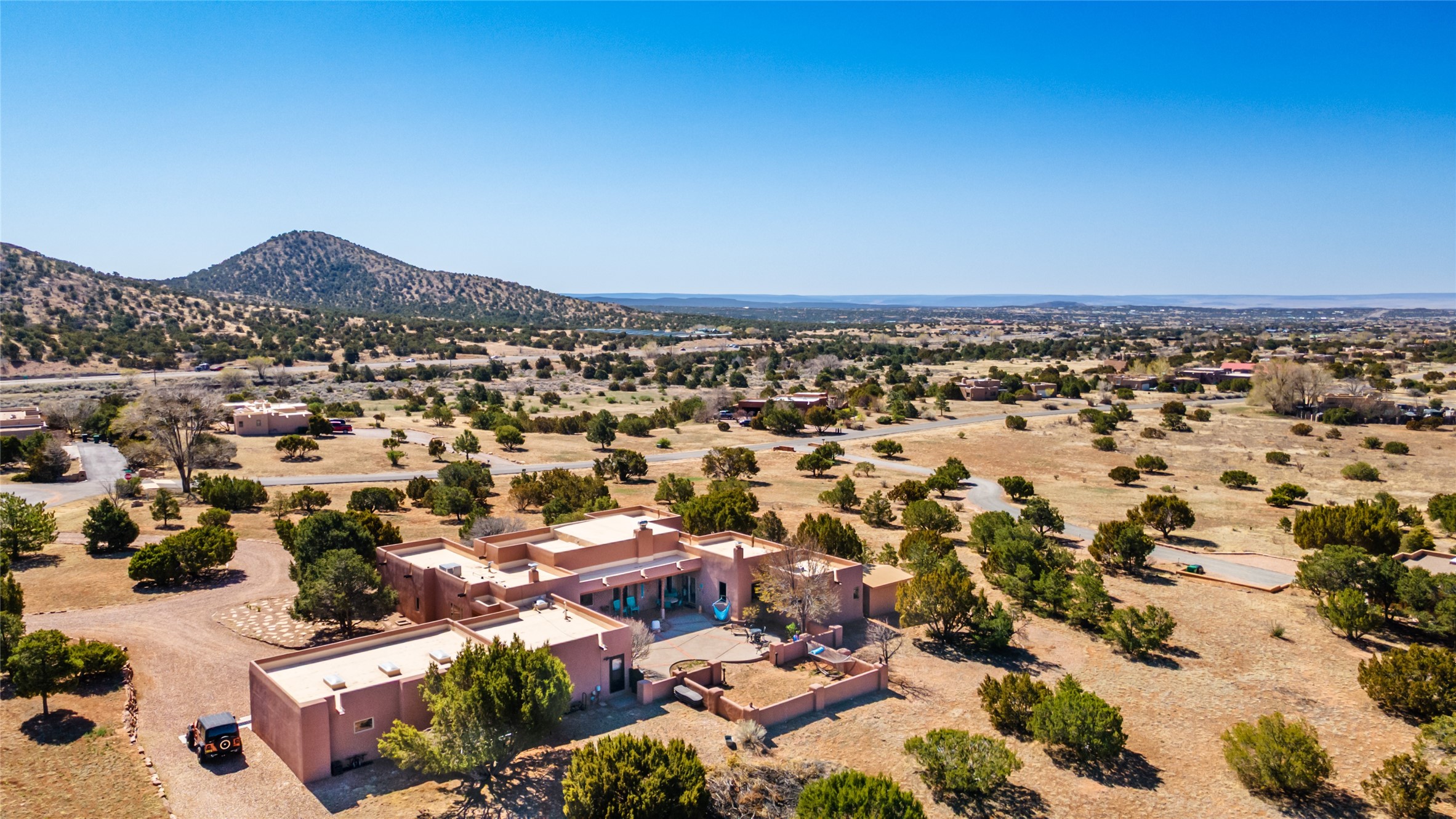 Exquisite Santa Fe Retreat with Sweeping Mountain Views3 Camino Costadino | Dos Griegos | Santa Fe, NMNestled in the highly sought-after Dos Griegos neighborhood, this stunning 3-bedroom, 3-bathroom residence captures the essence of Santa Fe living with breathtaking views of the Jemez Mountains and the foothills of the Sangre de Cristo range.Step into a grand great room where 15-foot ceilings, classic vigas, and smooth diamond plaster walls create a warm and timeless elegance. Expansive windows frame the dramatic natural landscape while flooding the home with ambient light--seamlessly blending the beauty of the outdoors with the comfort of the interior.This thoughtfully designed home also features a dedicated craft room and a spacious office just off the garage, offering flexibility for creatives, remote professionals, or those in need of extra space.Recent upgrades include a brand-new roof and Lifetime Fiberspan canales, ensuring long-term durability and peace of mind. A versatile 13' x 13' shed provides ample room for storage, hobbies, or workshop use.Whether you're savoring a quiet evening under the stars or hosting guests against a backdrop of spectacular mountain views, 3 Camino Costadino offers a rare blend of Southwestern charm, functionality, and enduring quality.