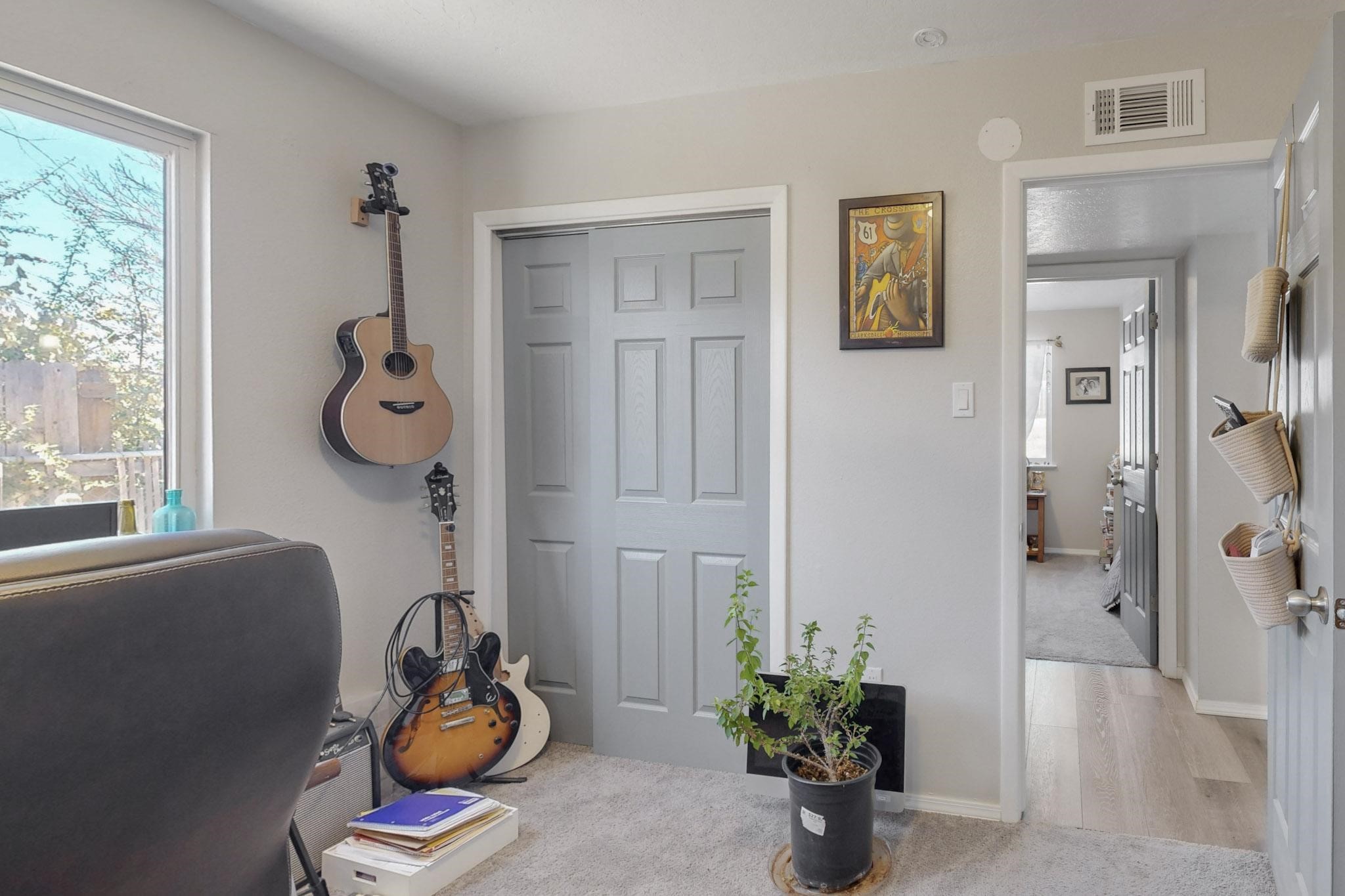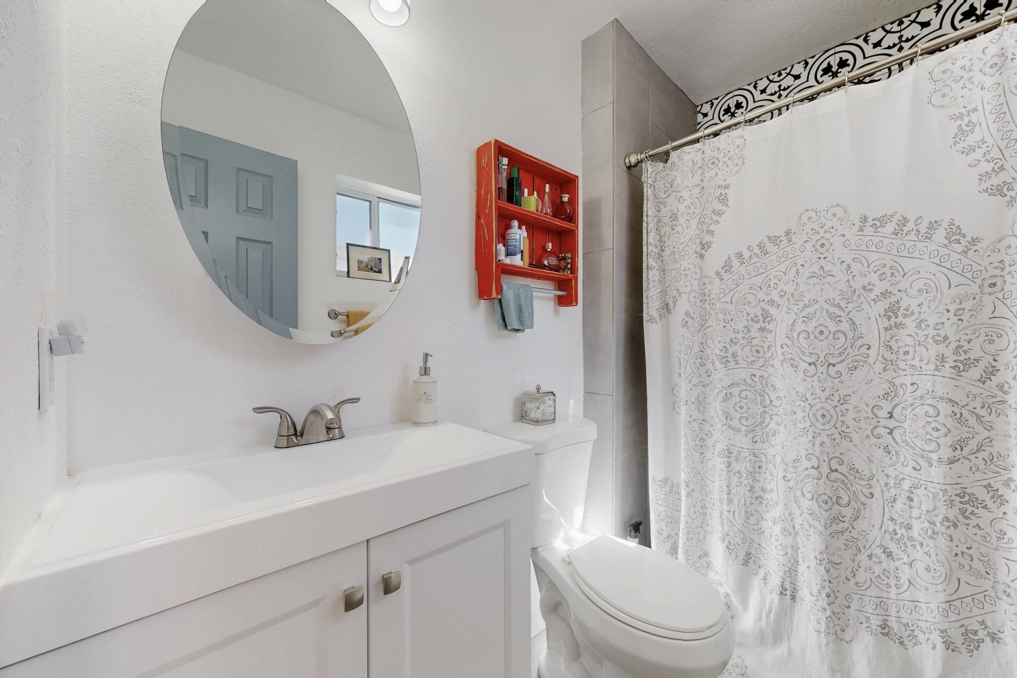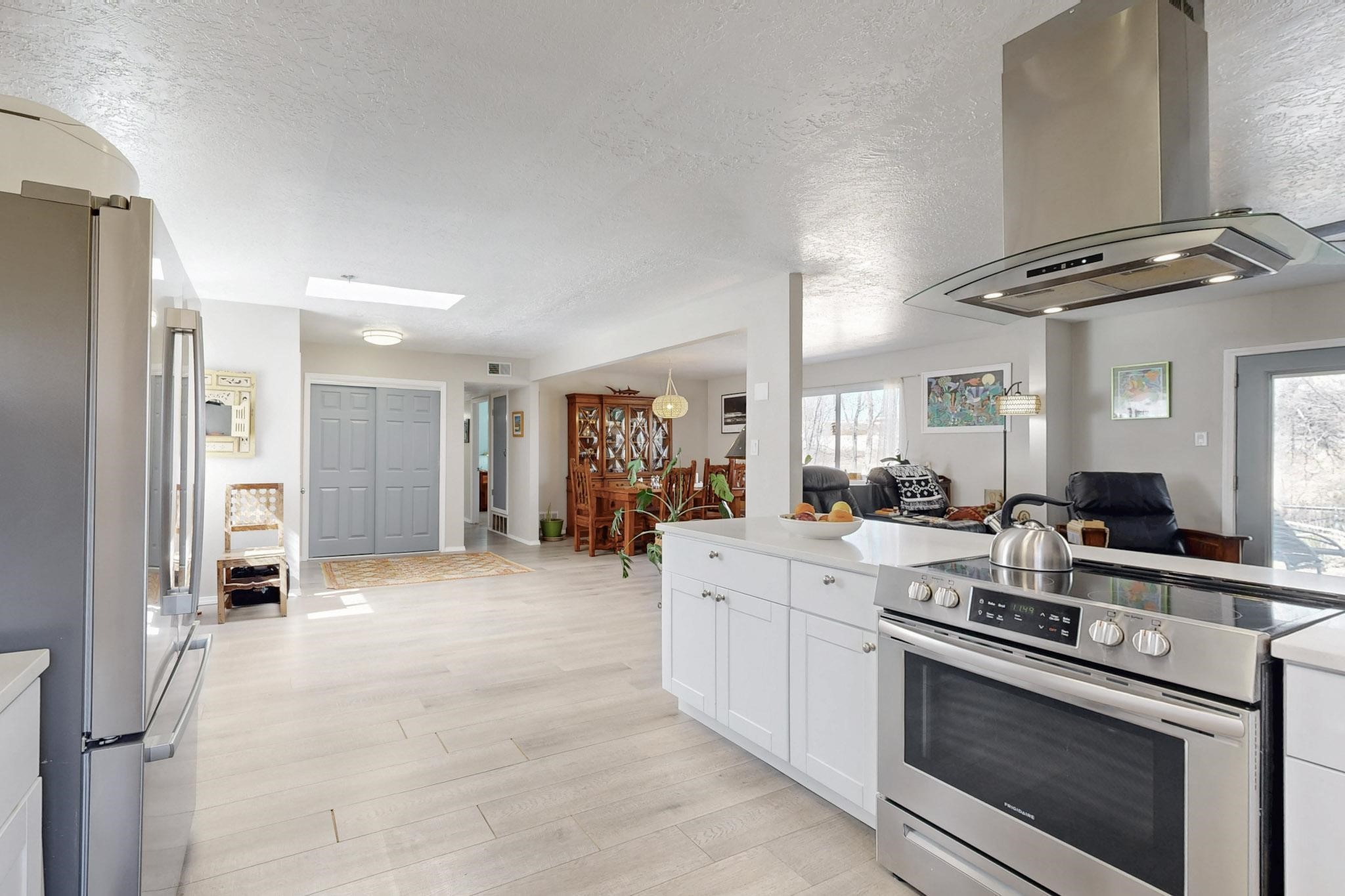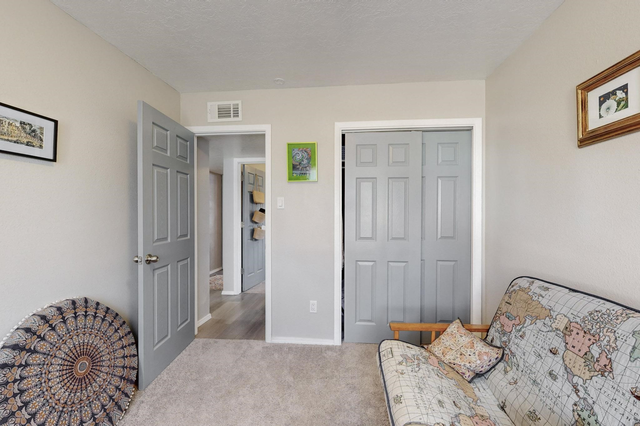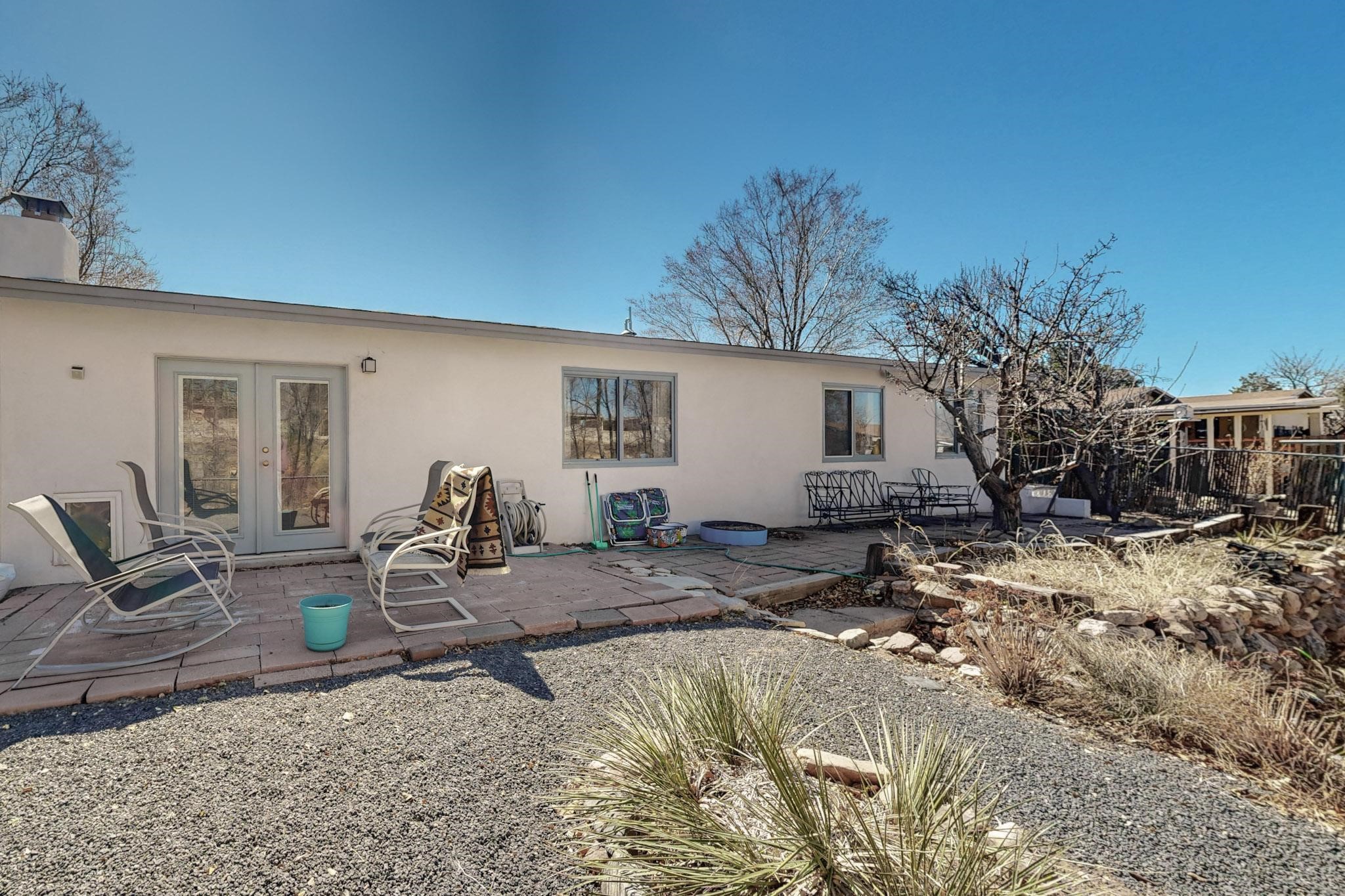 Down a quiet street in the Vista del Sol neighborhood and situated on a large lot, this charming 4 bedroom renovated home offers modern updates while providing a cozy and inviting atmosphere.The kitchen has been thoughtfully updated with sleek quartz countertops, contemporary cabinetry, and efficient stainless steel appliances. The living area offers a modern tiled, wood burning fireplace and leads outside to a brick patio and backyard filled with mature fruit trees. There are no adjoining neighbors in the backyard which allows for privacy. The primary bedroom was converted from an apartment and offers ample space, an ensuite bathroom, walk-in closet and its own entrance. The remaining three bedrooms are filled with natural light and are comfortable living spaces. No HOA and conveniently located near schools, parks, and local amenities.