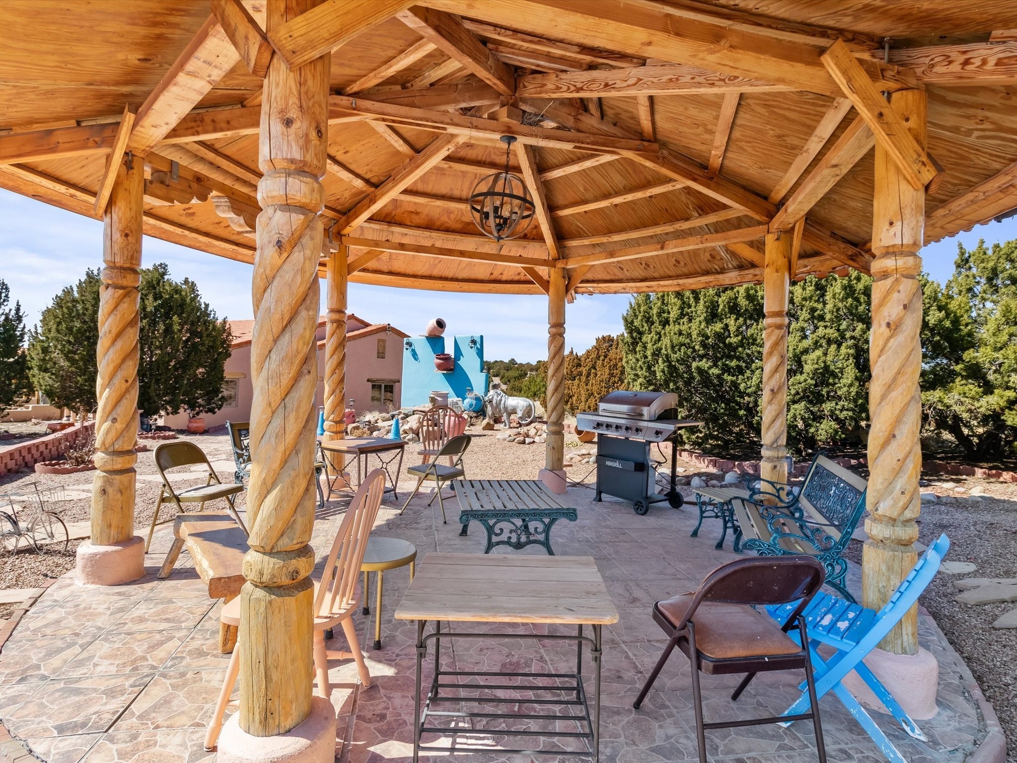 Spacious Santa Fe Retreat on 2.4 Acres with Stunning Mountain ViewsEscape to the serenity of this beautiful Santa Fe home, nestled on 2.4 acres of land with no close neighbors, offering privacy and breathtaking mountain views. This expansive 3,034 sq. ft. residence features six generously sized bedrooms and 3.5 bathrooms, perfect for comfortable living or entertaining guests.Step inside to discover the charm of traditional kiva fireplaces, tile floors, and a tile roof, blending Southwestern character with modern convenience. The well-designed floor plan provides ample space for relaxation and gatherings, while the outdoor gazebo invites you to soak in the peaceful surroundings.Located just a 10-minute drive from the historic Santa Fe Plaza, this home offers the perfect balance of seclusion and accessibility. Enjoy an easy commute to Los Alamos and Albuquerque, with quick access to Highway 566.Don't miss this rare opportunity to own a piece of Santa Fe's stunning landscape. Schedule your private tour today!