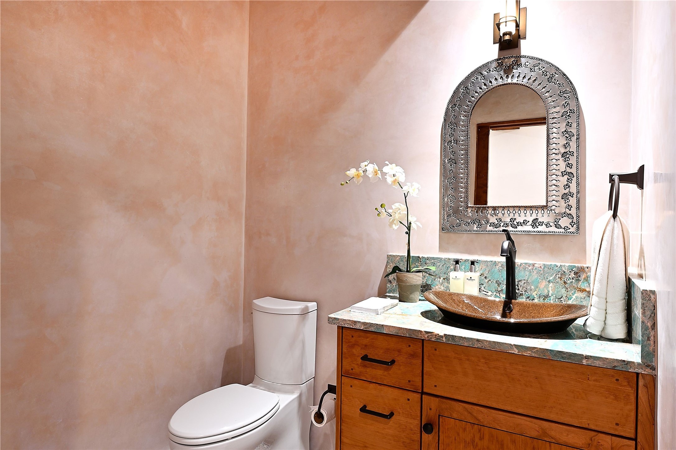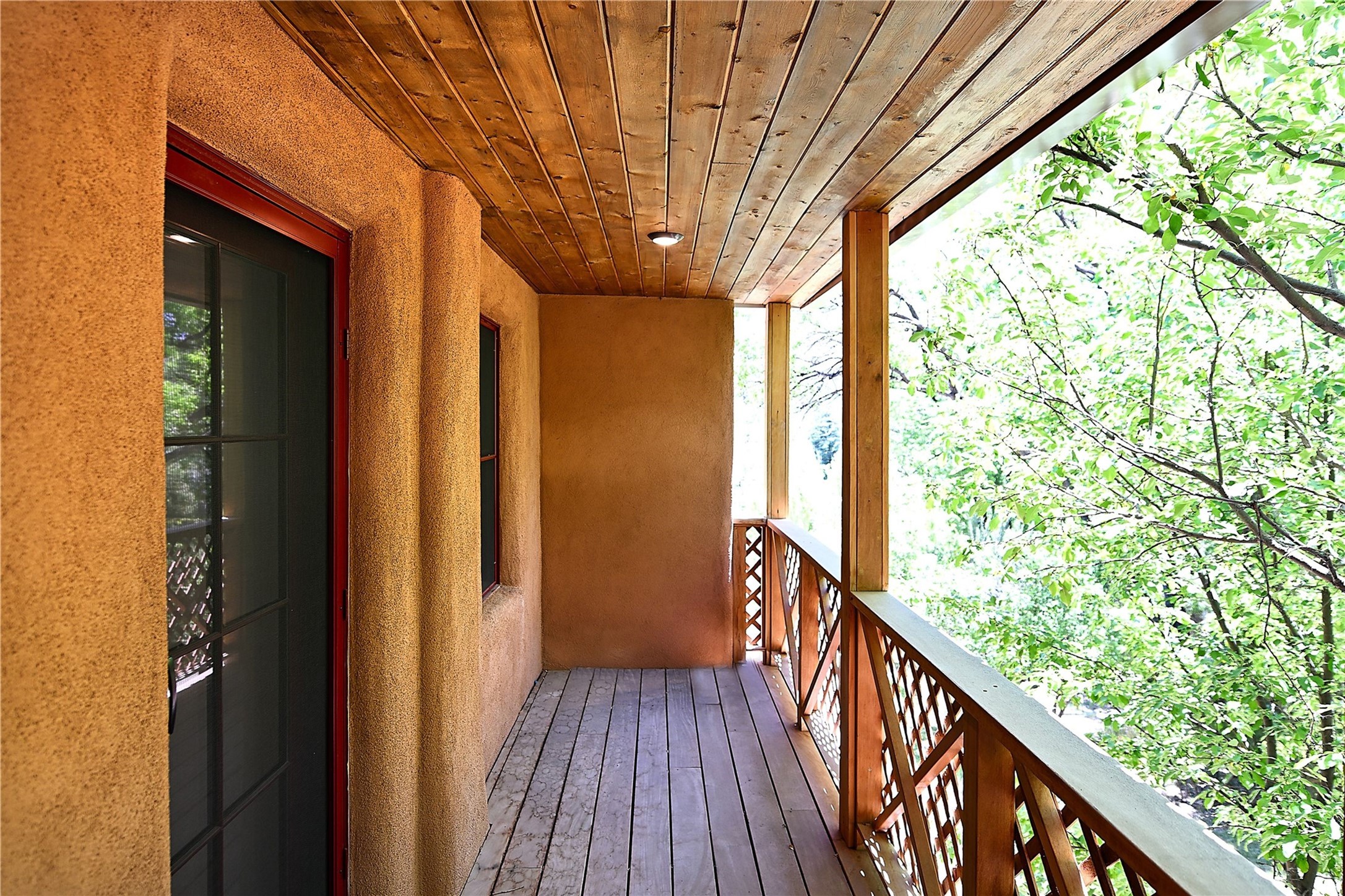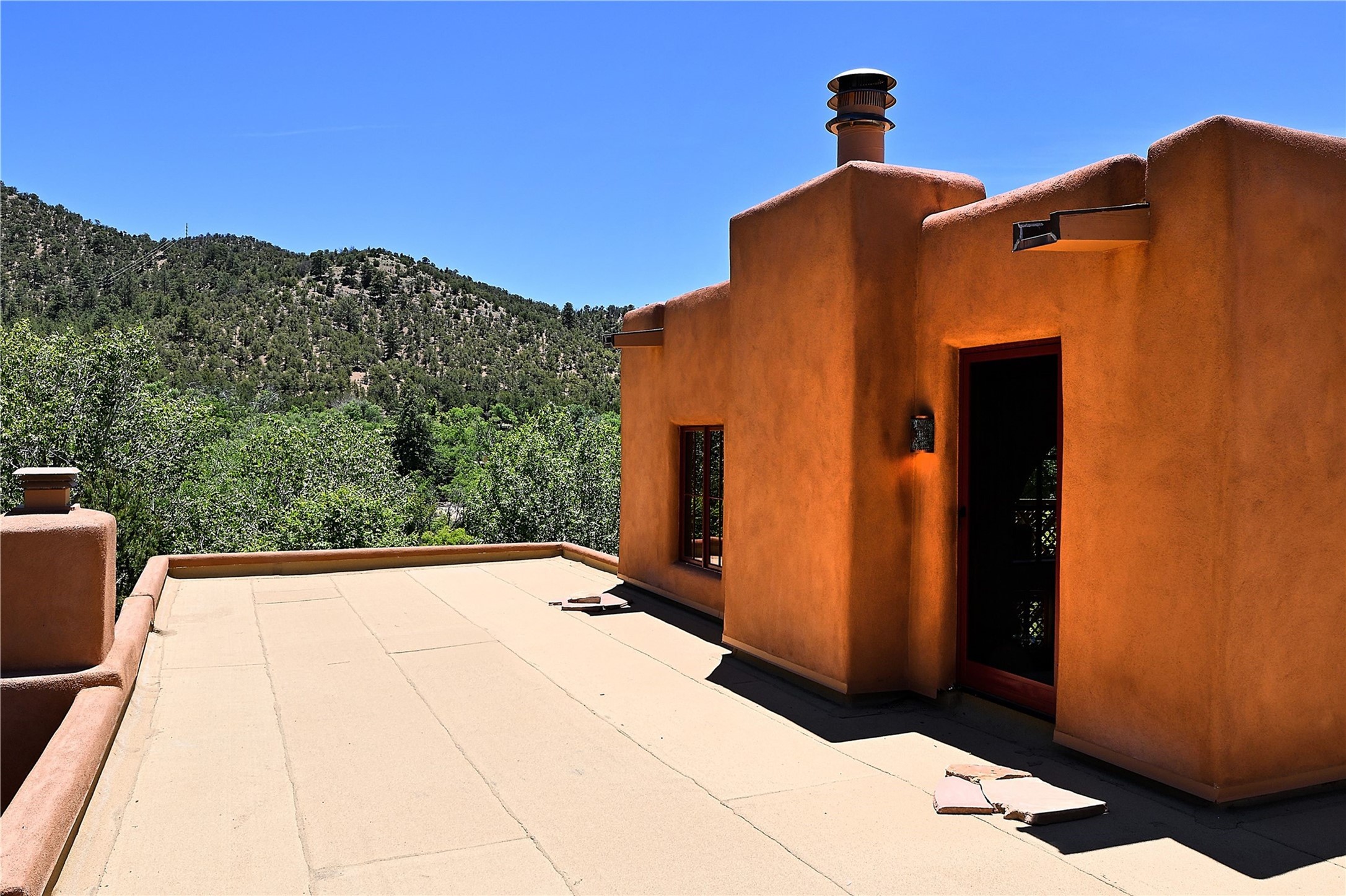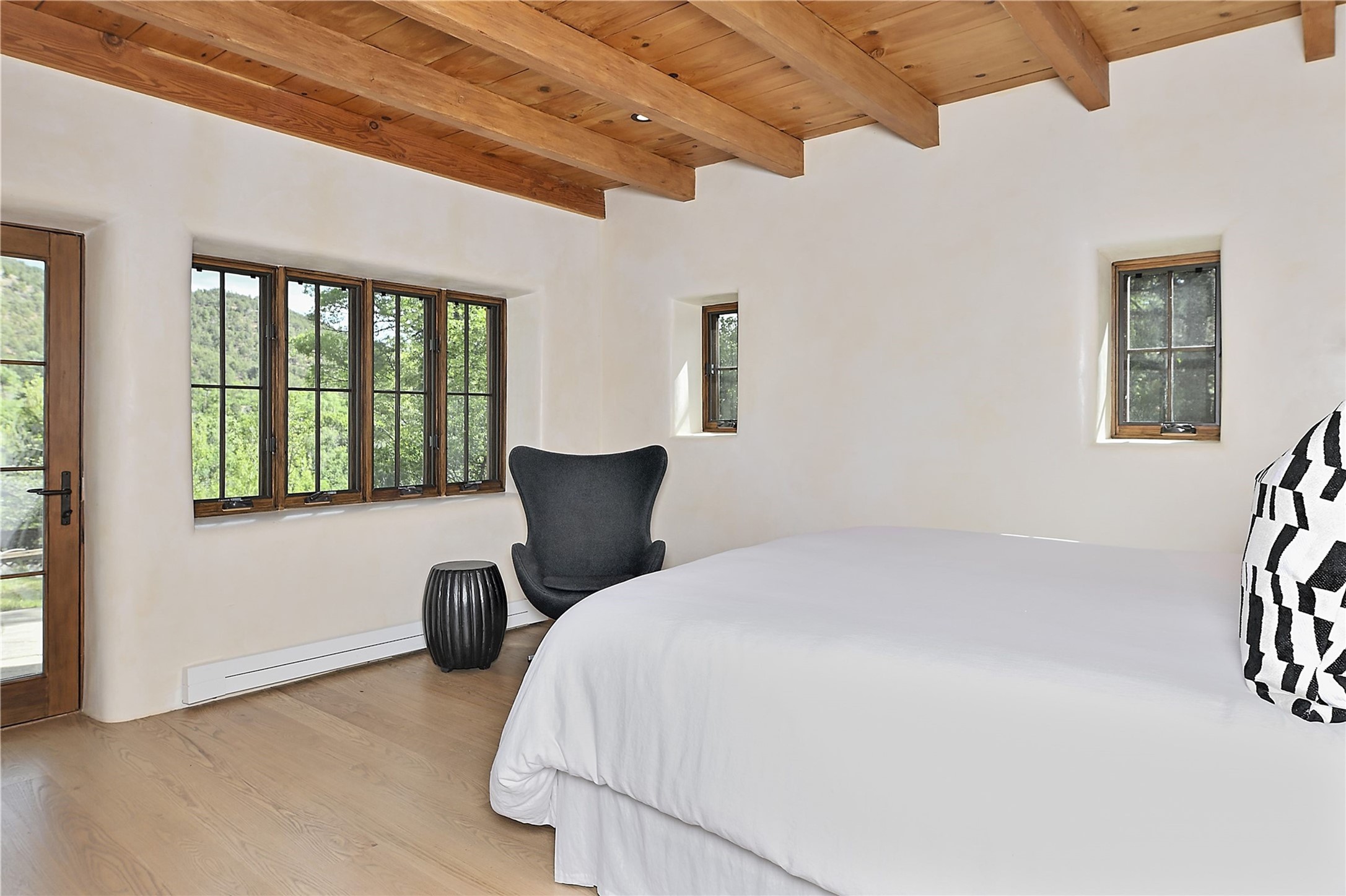 1678cerrogordo.com Welcome to a rare and enchanting retreat tucked away in the heart of Santa Fe's Historic Eastside--where riverfront serenity, natural beauty, and timeless adobe architecture come together perfectly. Set on 2.738 acres across two separately deeded parcels, this one-of-a-kind offering includes a spacious 4,000 sq. ft. home and an adjacent .738-acre wooded lot, offering endless possibilities for expansion, privacy, or simply room to breathe. The residence is surrounded by open meadows, mature shade and fruit trees, and lush cottonwoods, with the Santa Fe River gracefully lining the southern edge and the acequia flowing beside the home, adding a soothing soundtrack to this natural sanctuary. Inside, the home features three bedrooms, each with en-suite baths, including a primary suite with a steam sauna, a gourmet kitchen, and wood-burning fireplaces on both levels. The open-concept floor plan is filled with natural light and offers ample wall space--perfect for showcasing art. The upper level can serve as a luxurious primary suite or private guest quarters, complete with its own living and dining spaces, a grand arched picture window, and balcony with views of Picacho Peak in the Sangre de Cristo foothills. Outside, you'll discover a landscape alive with native flora, wildflowers, and birdsong. The adjacent .738-acre lot is a canvas for your imagination--build a future guesthouse, artist studio, or keep it as a peaceful spot to garden, paint, or simply unwind. Direct access to National Forest trails lies just outside the garden gate, yet you're only minutes from Canyon Road and the historic Santa Fe Plaza--a rare blend of seclusion and accessibility. Opportunities to own a riverfront property in Santa Fe are incredibly rare. This is more than a home--it's a retreat, a sanctuary, and an extraordinary chance to own a truly special piece of Santa Fe.