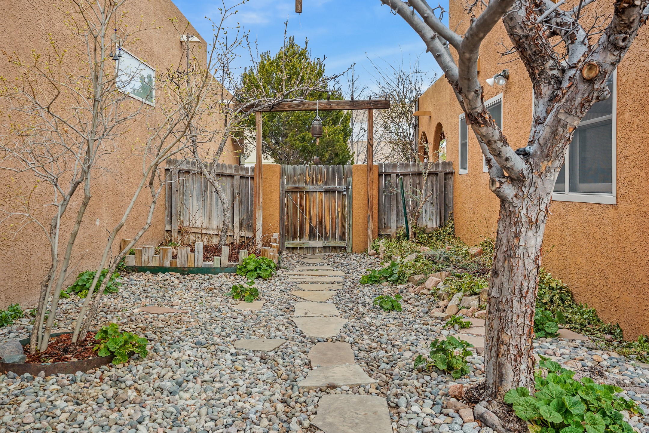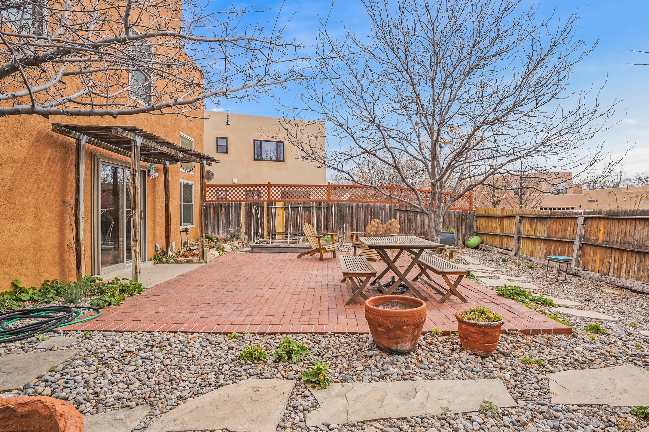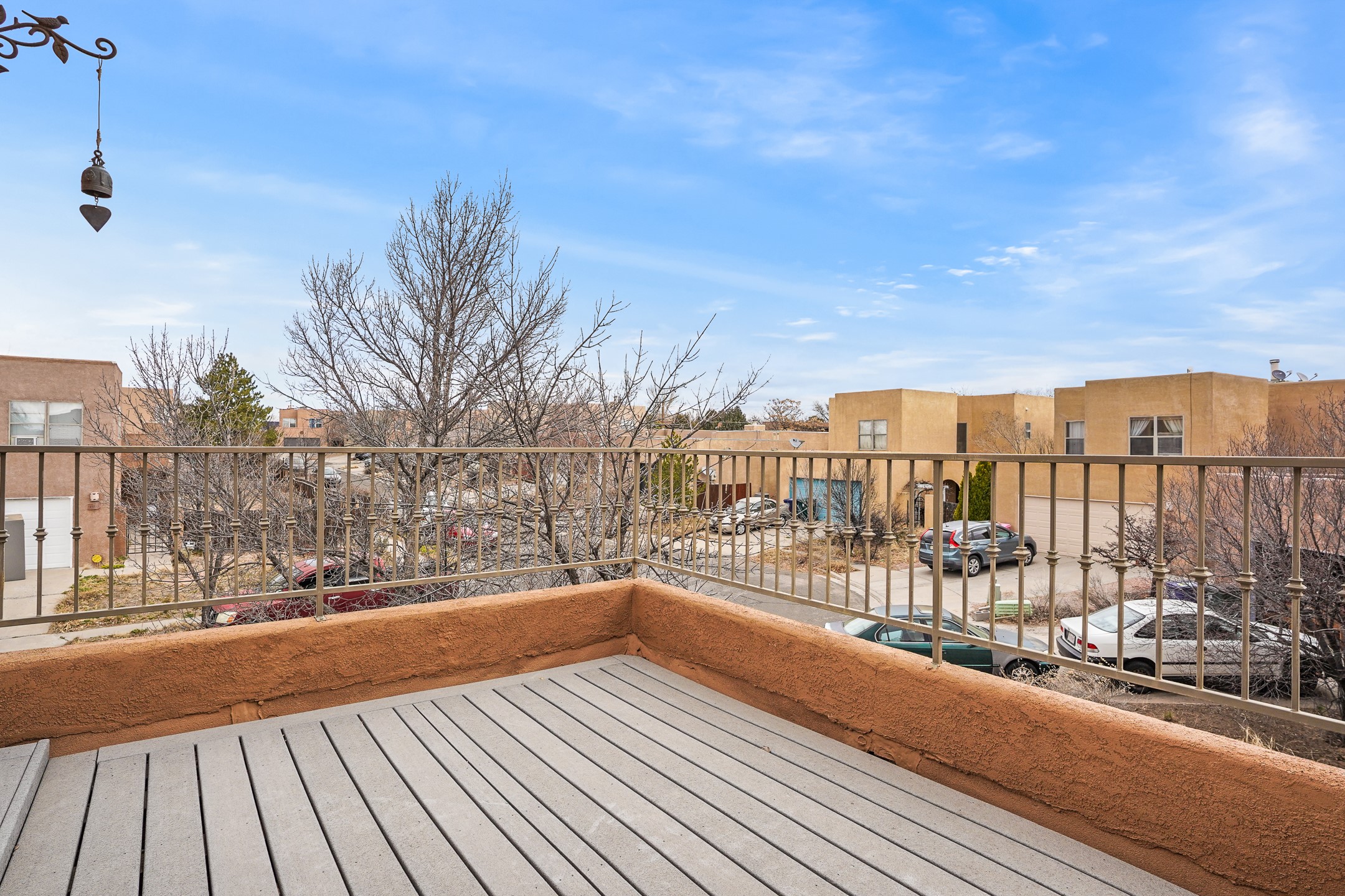 Natural light fills this wonderfully maintained three bed, two bath home in Midtown. The downstairs features a bright living room under a soaring, double-height wood ceiling with skylights, and an open dining/kitchen area. A beautiful wood-burning fireplace serves both the living and dining areas. The stairs and 2nd floor are clad with bamboo floors and both guest rooms open onto a second story deck. The generous primary suite has a full bath and walk in closet. Each bedroom has a separate mini-split for maximum comfort. The home also boasts double paned windows and a fully fenced in backyard great for gardening and entertaining.
