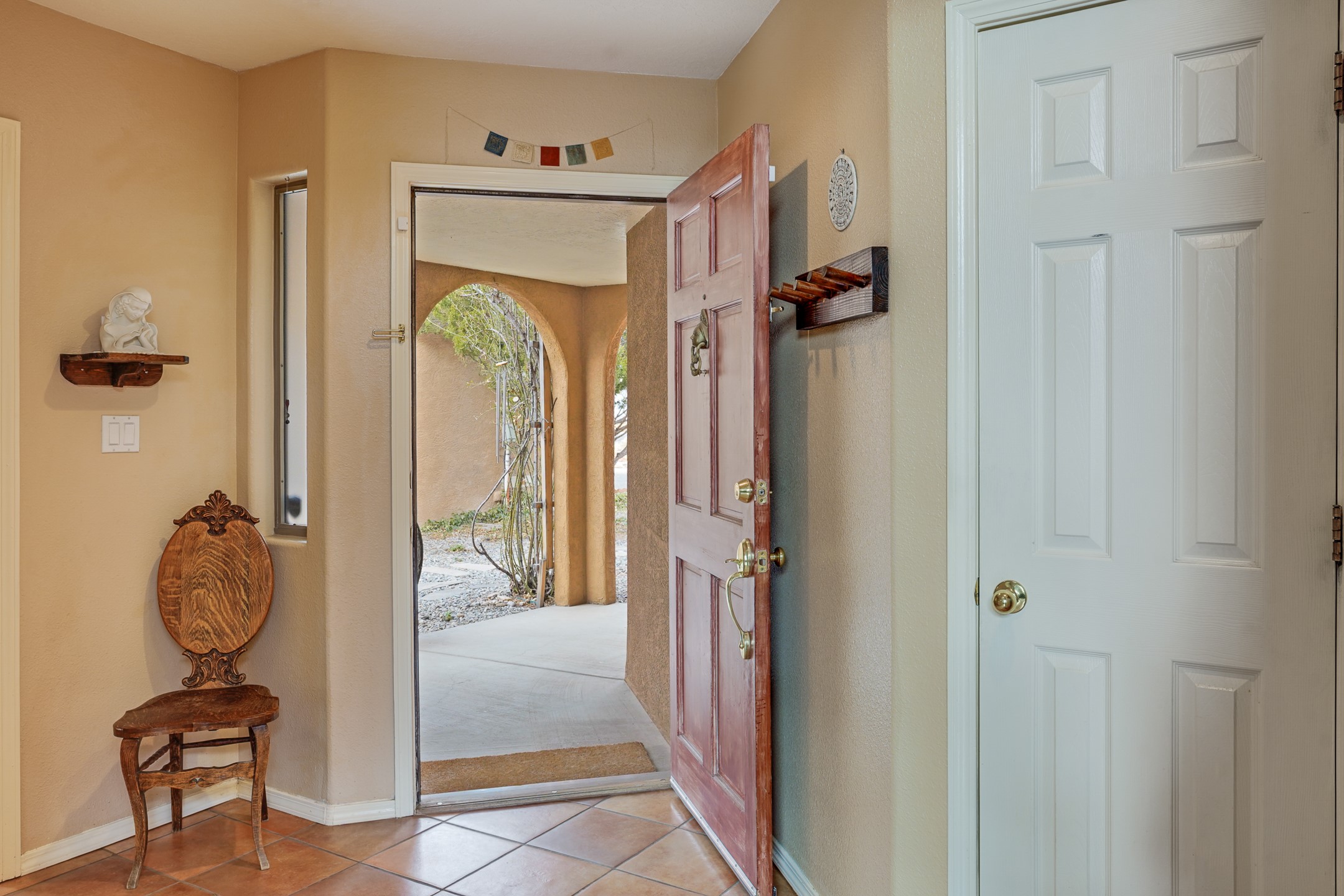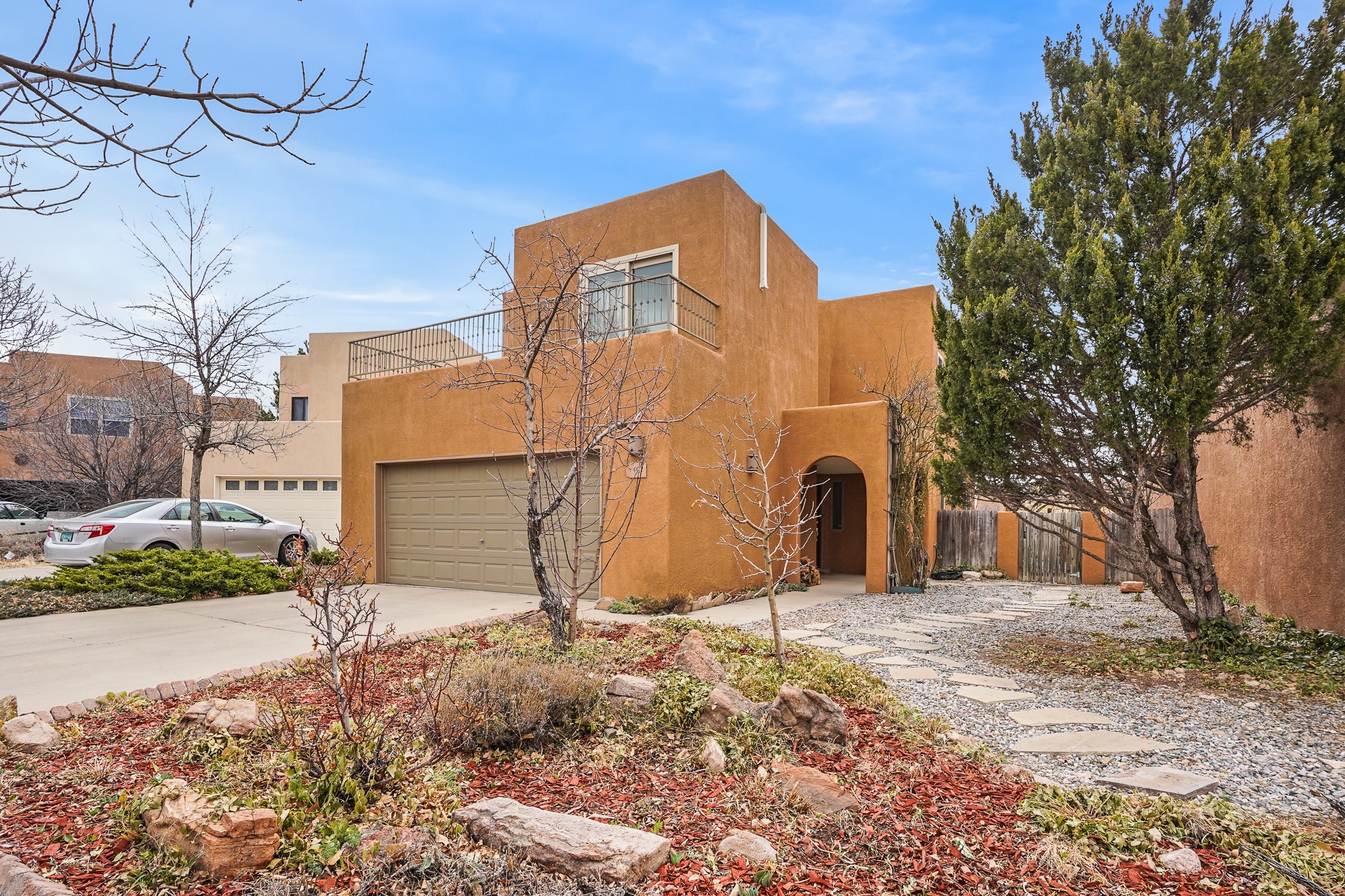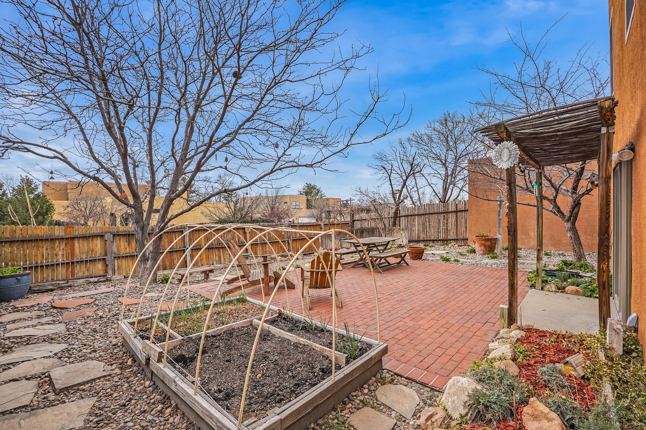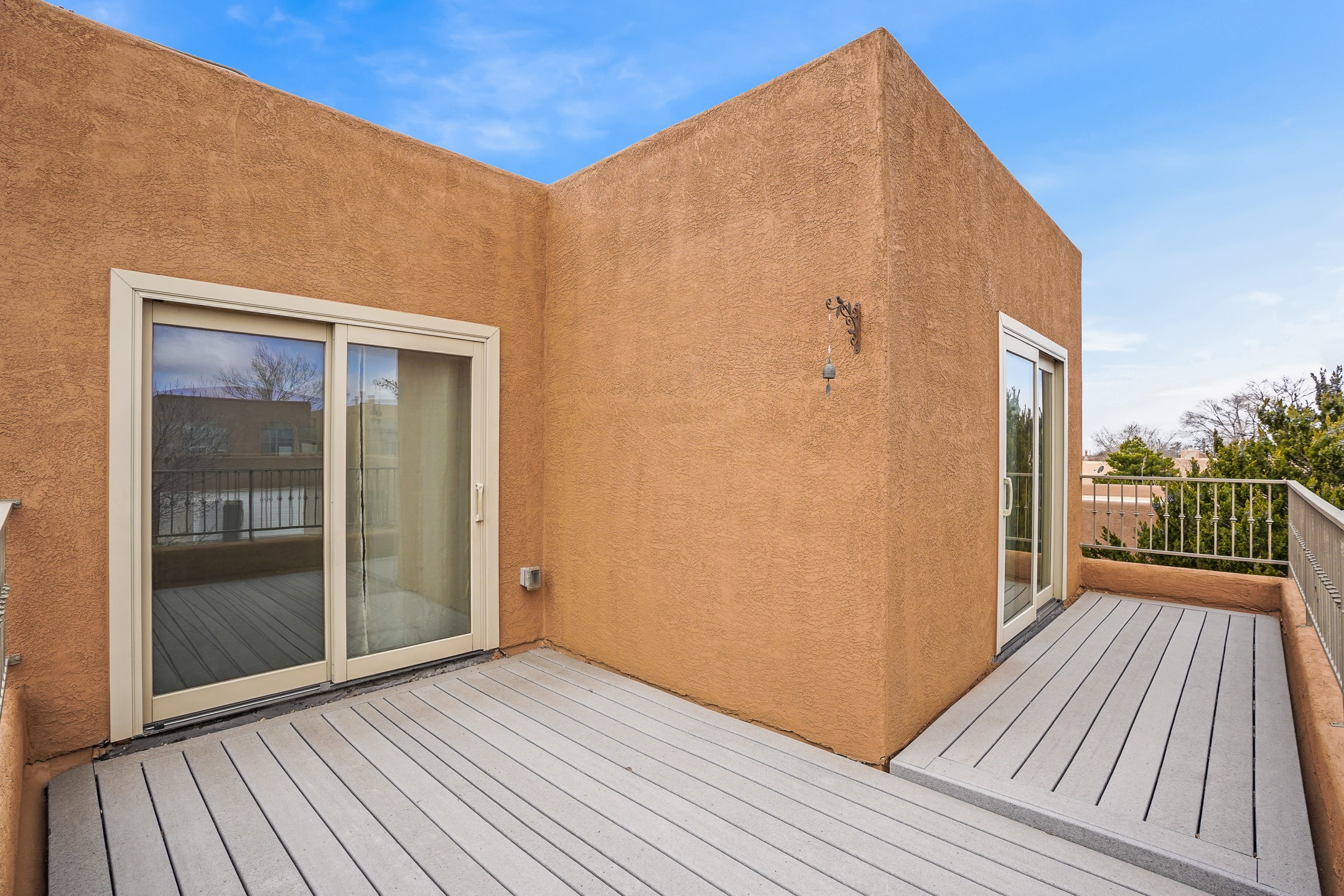 Natural light fills this wonderfully maintained three bed, two bath home in Midtown. The downstairs features a bright living room under a soaring, double-height wood ceiling with skylights, and an open dining/kitchen area. A beautiful wood-burning fireplace serves both the living and dining areas. The stairs and 2nd floor are clad with bamboo floors and both guest rooms open onto a second story deck. The generous primary suite has a full bath and walk in closet. Each bedroom has a separate mini-split for maximum comfort. The home also boasts double paned windows and a fully fenced in backyard great for gardening and entertaining.