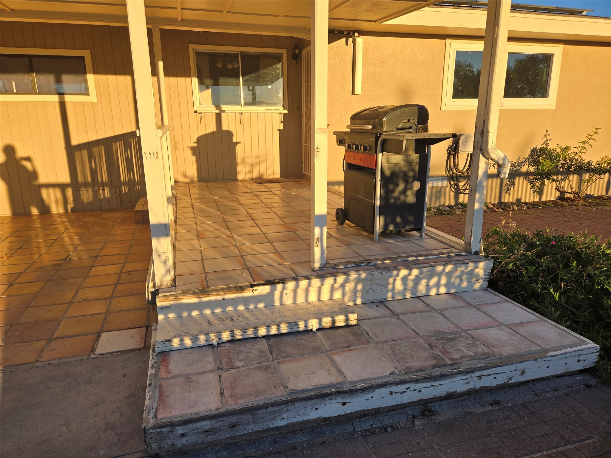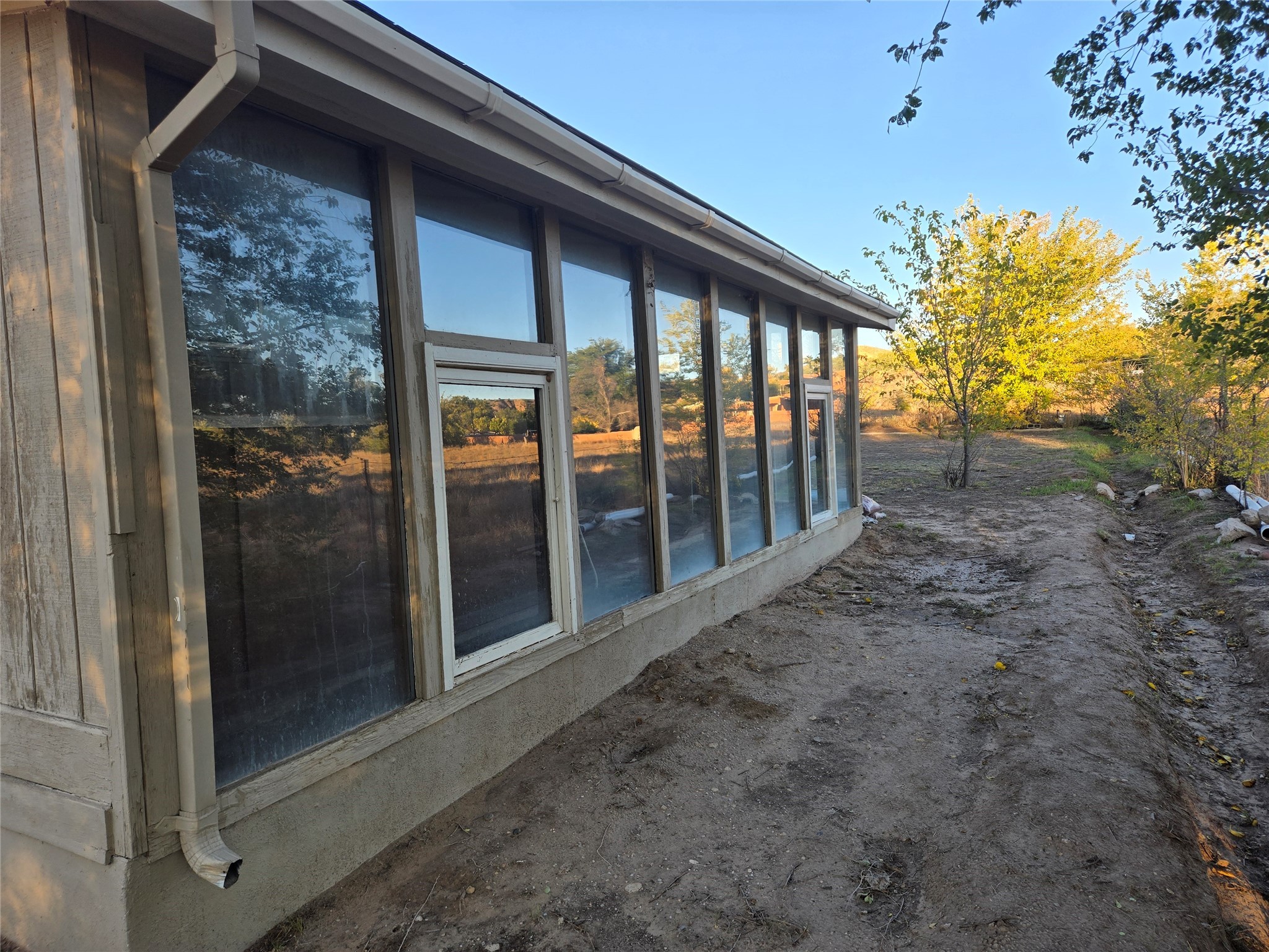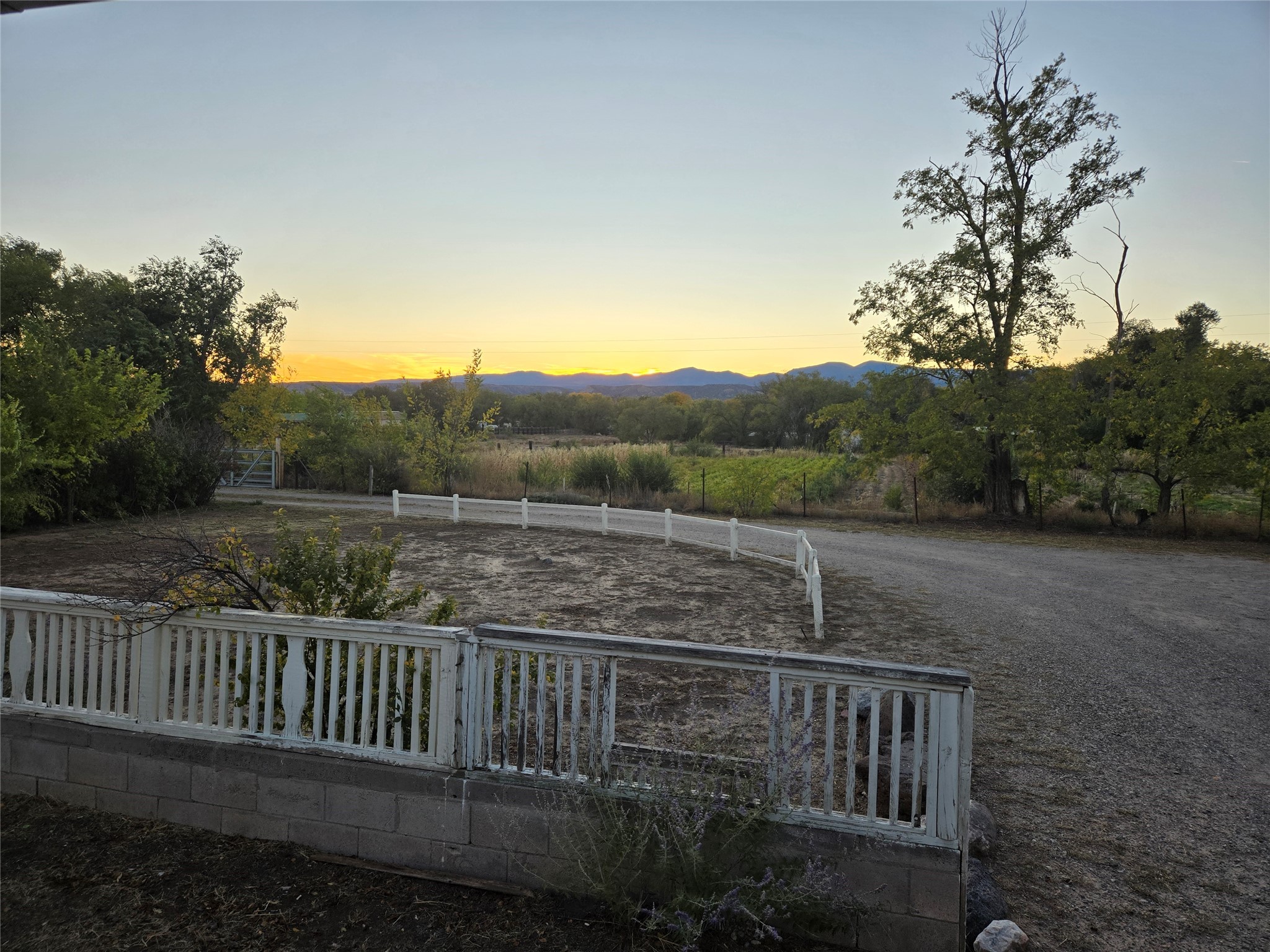 This home has it all, located in town with all the amenities of country living. Three bed, two baths home with open concept living, dining and family room; large laundry room, bonus room, sunroom and attached greenhouse. Spacious Ranch style home on just under 2 fully fenced acres with two separately deeded lots. Updates include full house grid-tied solar system with car charging station, a recently installed 6 head mini split refrigerated air/heating system and new interior paint. Home also has natural gas wall heat units and gas fireplace in living room. Large double car detached garage, RV carport, multiple storage sheds, detached root cellar, separate second greenhouse, and chicken coop. Property also has surface water rights for gardening, mature apple and peach trees and grape vines. Secluded location down long private driveway, with sweeping mountain vistas. Centrally located, easy commute to Los Alamos, Santa Fe or Taos.