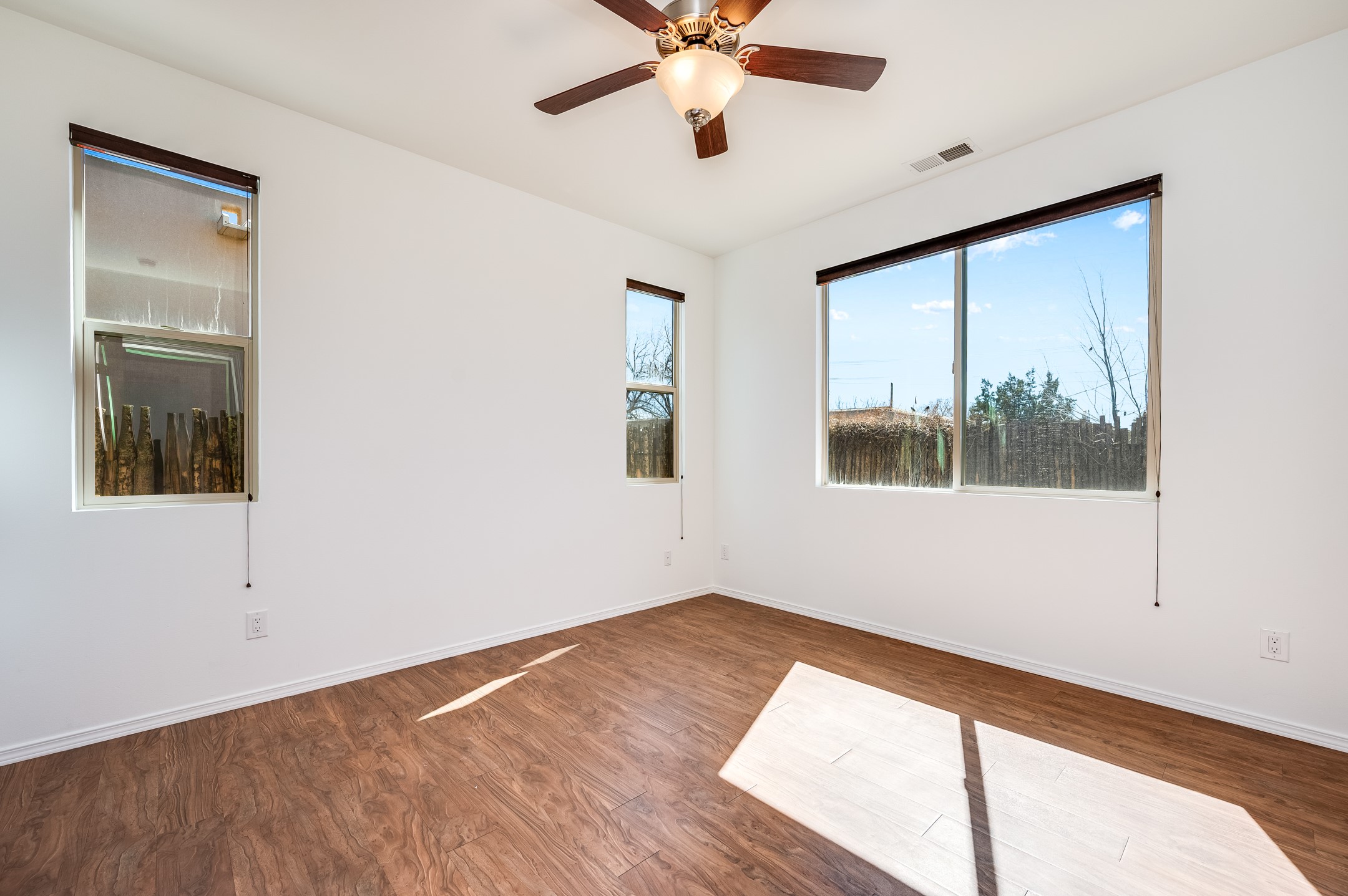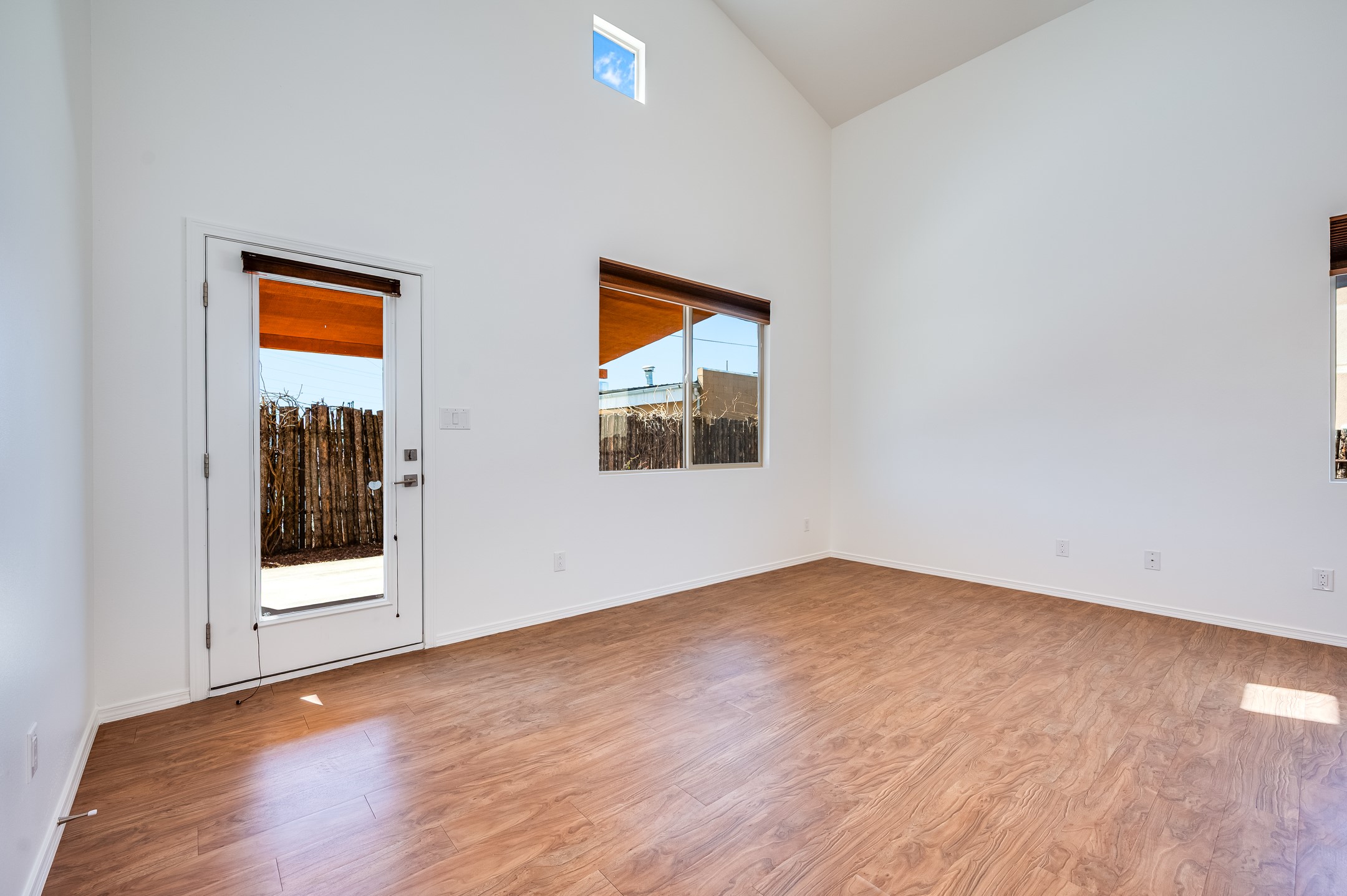 **OWNER FINANCING AVAILABLE** Discover comfort and contemporary living in this beautifully maintained single-story home offering 1,308 square feet of well-designed space. Featuring three bedrooms and two full bathrooms, this residence blends style and function with soaring ceilings and expansive windows that fill the home with natural light. The open-concept layout showcases a modern kitchen complete with stainless steel appliances and a generous island--perfect for cooking, gathering, and entertaining. The spacious primary suite includes a private bathroom and a walk-in closet, while two additional bedrooms and a full hallway bath provide flexibility for guests, a home office, or creative space. Eco-conscious upgrades include a solar photovoltaic system, an on-demand water heater, and an electric vehicle charger in the attached garage. Recent improvements such as fresh interior paint, a new sewer line pump, and a thoroughly inspected roof ensure peace of mind. Step outside into a large, private backyard enclosed by striking coyote fencing, offering a peaceful space for relaxation or family gatherings. Ideally located just minutes from shopping, the vibrant heart of downtown Santa Fe, and cultural hotspots like Meow Wolf, this home offers the best of both convenience and serenity. Whether you're commuting, traveling, or exploring the area, everything is close at hand. With its mix of thoughtful amenities, sustainable features, and prime location, this charming home is a rare find that offers both modern comforts and a sense of retreat.