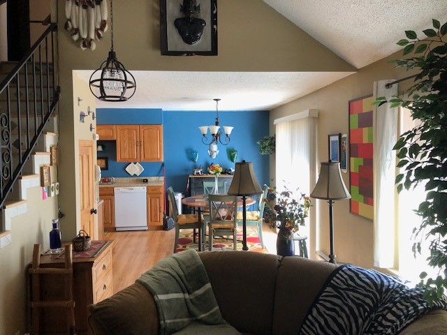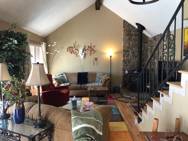 Charming condo in beautiful Pendaries Subdivision, in the mountains of northern New Mexico. Two bedroom, two and a half baths, with a two-car garage and all furnishings. Living room, kitchen, dining area, laundry room, and half bath are downstairs, with a wood stove in the living room. The front of the condo opens onto a large patio and a spacious view of a meadow in front of the mountains. An open staircase leads from the living room to three bedrooms upstairs. There are two more full baths upstairs, and the primary bedroom opens onto a large covered balcony. Big enough for full-time living, or great for a second get-away home. HOA and covenants for the subdivision.