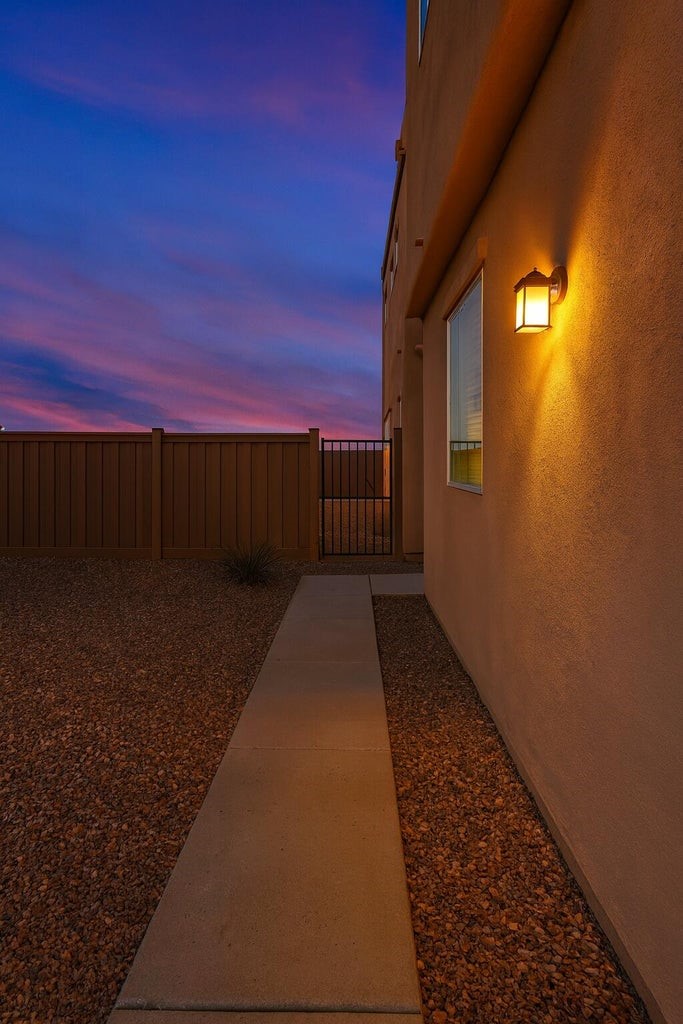 Discover this charming home in Turquoise Trail, Santa Fe! Featuring 3 bedrooms, 2 with en suite baths, plus a convenient downstairs half-bath. Dishwasher and range replaced May 2024. Microwave replaced March 2025. New carpet was installed 4/25/2025. The garage has been temporarily converted into a second living area but can easily be restored. Enjoy a prime location near I-25 and a community with private parks, playgrounds, and ample guest parking. Opportunity knocks. Will you answer?