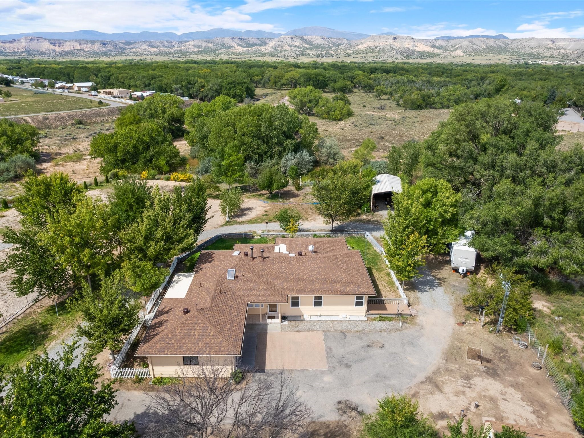 Discover this charming 4-bedroom, 3-bath home nestled in the peaceful community of La Mesilla. Situated on a spacious .75-acre lot, this property offers privacy, natural beauty, and incredible versatility. Move-in ready! Freshly updated with new interior and exterior paint and a new roof in 2024, this home is ready for its next owner. A bright, enclosed sunroom provides year-round enjoyment, while the backyard boasts stunning views of Black Mesa. Mature landscaping, fruit trees, and an adjacent arroyo enhance the sense of seclusion and connection to nature. This property is designed for convenience and flexibility, featuring an RV carport, two additional carports, RV hookups, and a spacious storage shed. Water rights allow for lush landscaping, while a dedicated workshop, extra storage, and a media room offer plenty of space for hobbies or creative projects. A separate lower-level entry adds versatility--perfect for a guest suite, studio, private office, or rental opportunity. Discover the ideal mix of comfort, space, and scenery in La Mesilla--conveniently located near Los Alamos, Espaola, and Santa Fe!