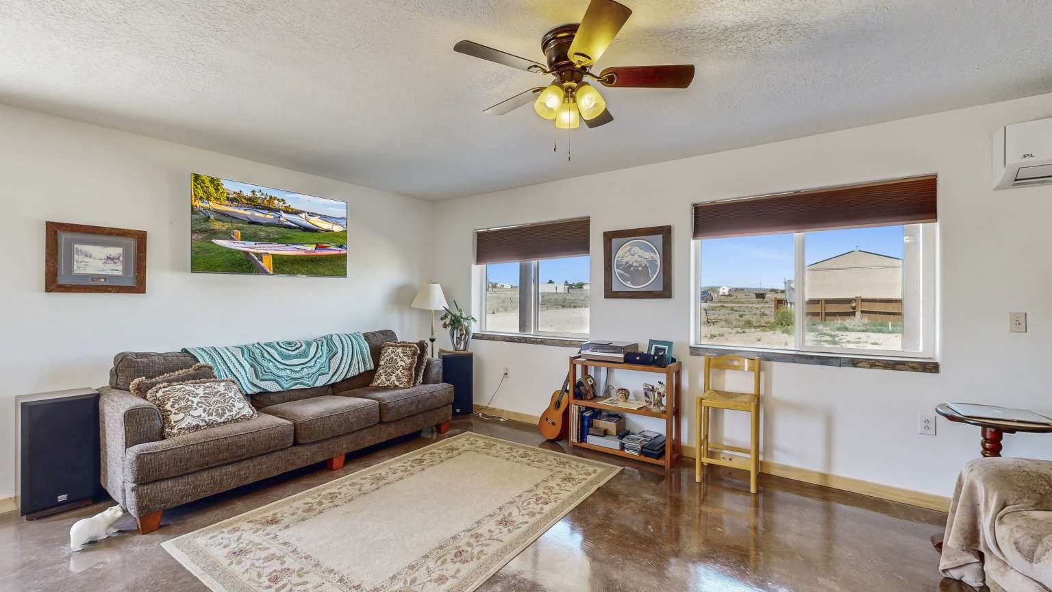 Live on a Residential Airpark with your plane! Aviation activities daily. Enjoy the benefits of Aviators as neighbors!4700 Sq Ft of Heated space including Hangar with radiant in-floor heat. Hangar is completely finished like a large living area! Great for entertaining, home projects of any kind. Second floor is one large room with a full bath and a outside deck for those summer evenings! There is a kitchen plumbed in one corner for future Guest or Air B and B rental. Situated on 2.5 acres, Adjoining acreage available if desired. 26 acres adjoining! Great for Horses or raise some beef! Close to most all needs, Walmart, Raks Lumber, Harbor freight, Walgreens, auto supply and more all within 5 miles radius. Close to Sandia Mountains for Hiking, skiing, biking, 25 Miles to Albuquerque, 45 miles to Santa Fe.