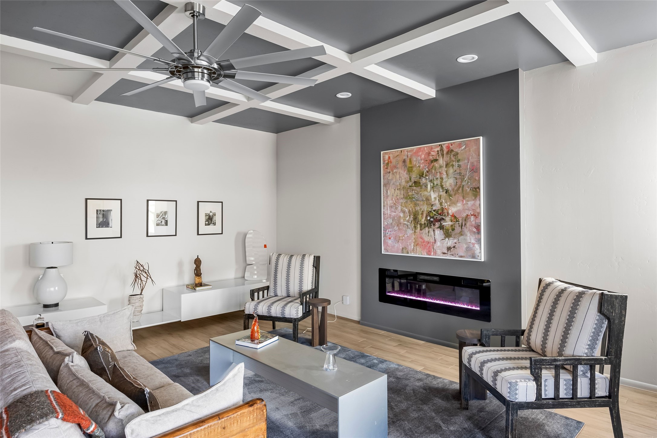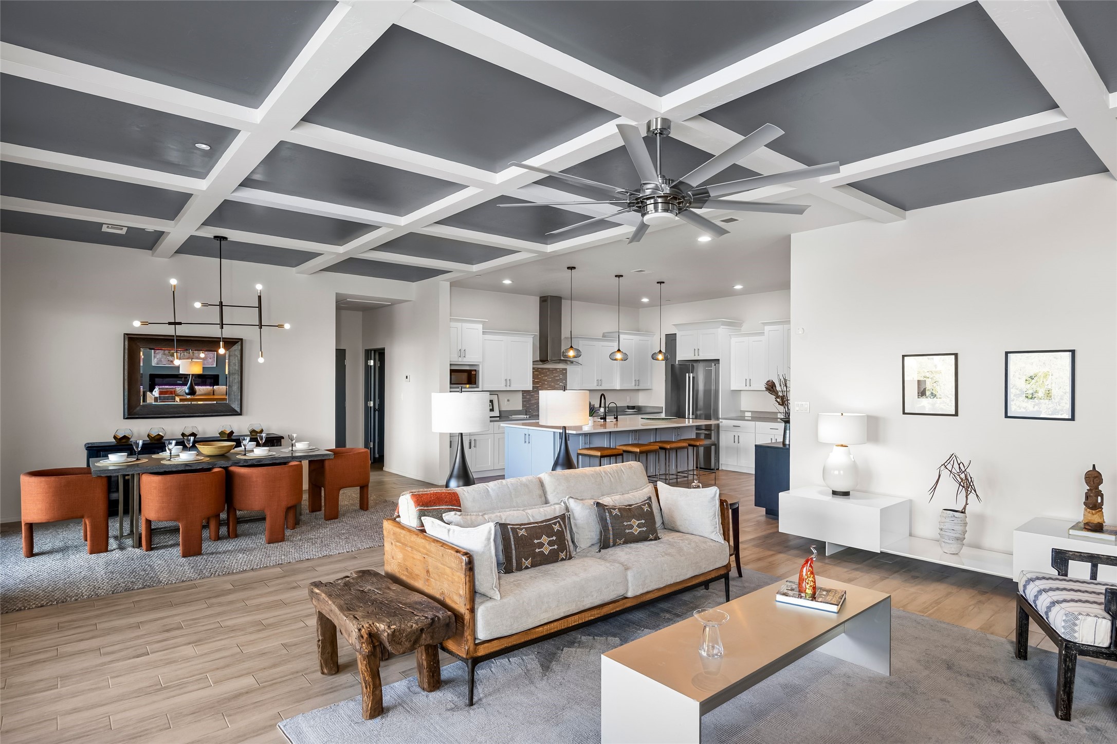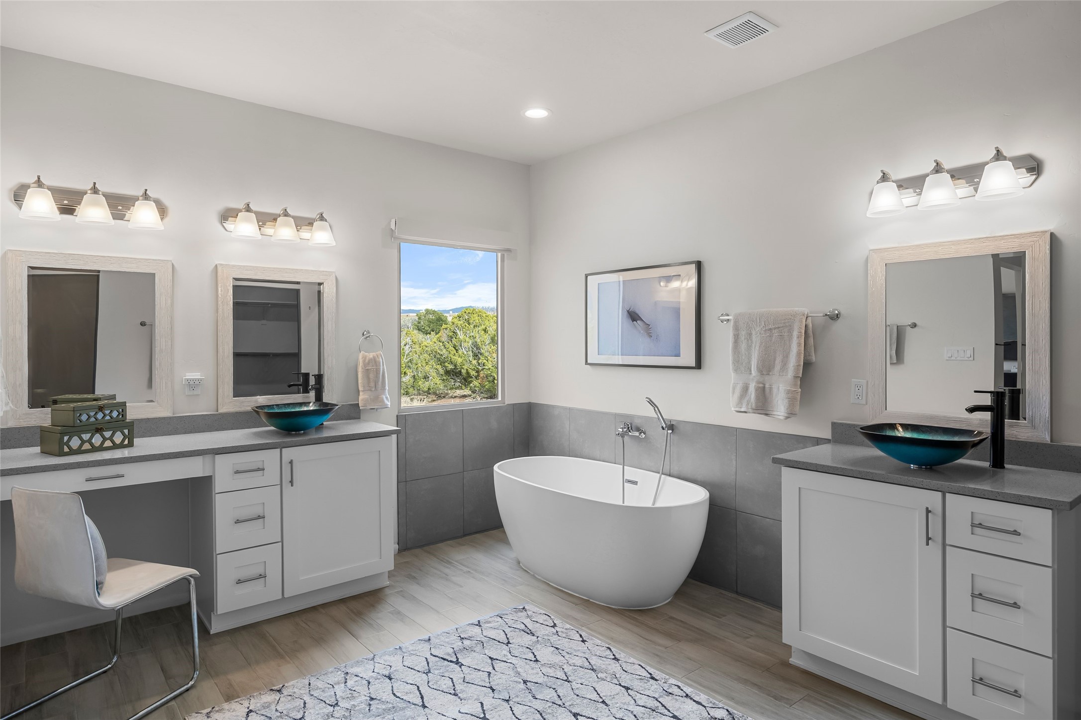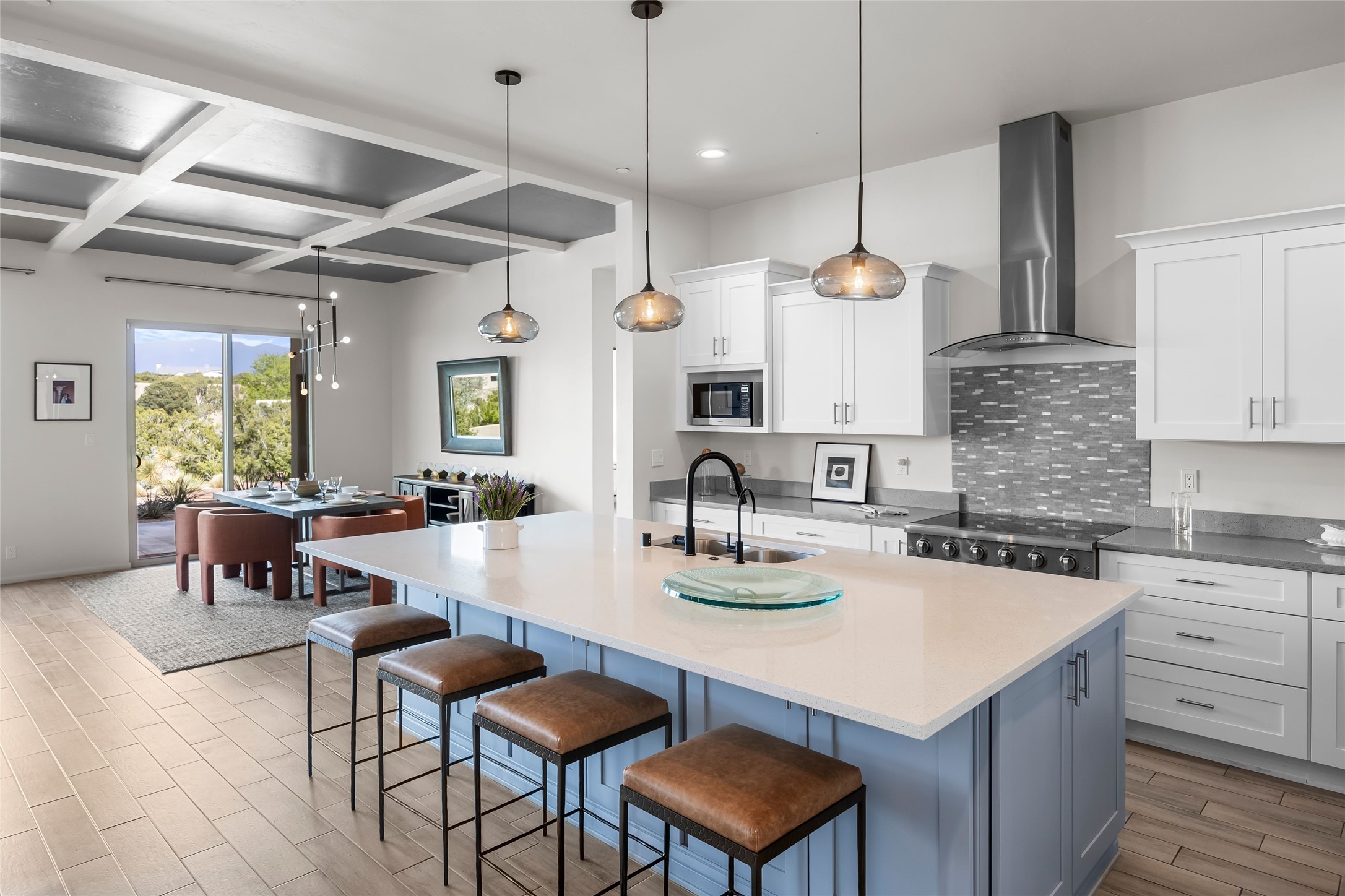 Welcome to 14 Plano Arbolito--where sleek contemporary design meets the serene beauty of Santa Fe's natural landscape. Perched on a half acre in the desirable Tano West neighborhood, this recently built, single-level home offers the perfect balance of luxury, comfort, and breathtaking views. This three-bedroom, three-bathroom residence boasts an open-concept floorplan designed for effortless living and entertaining. The expansive great room features soaring ceilings, a modern electric ambiance fireplace, and floor-to-ceiling windows that frame spectacular views of the Sangre de Cristo Mountains. The adjacent chef's kitchen is equipped with premium stainless-steel appliances, a generous island with counter seating, a walk-in pantry, and elegant finishes that blend form and function. Retreat to a tranquil owner's suite complete with outdoor access, a spa-like bathroom with a soaking tub, dual vanities, a spacious shower, and two oversized walk-in closets--one currently used as an office or yoga space. A separate guest wing includes two private bedrooms, one with its own entrance and en suite bath, perfect for visitors or extended stays. Step outside to a deep-covered portal with gas fireplace hookups and a custom fountain, ideal for enjoying Santa Fe's vivid sunsets and star-filled nights. The fully landscaped, xeriscape backyard opens to panoramic vistas and unmatched privacy. Additional highlights include an oversized three-car garage, a flexible bonus room off the entry, and many thoughtful upgrades--from whole-house air purification to premium lighting and smart home features. Only 20 minutes from the Plaza and nestled within a community known for its protected open space, 14 Plano Arbolito offers peace, luxury, and a front-row seat to Santa Fe's majestic beauty.