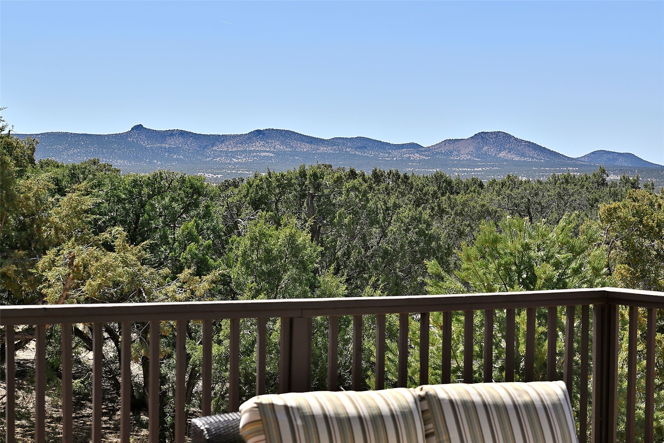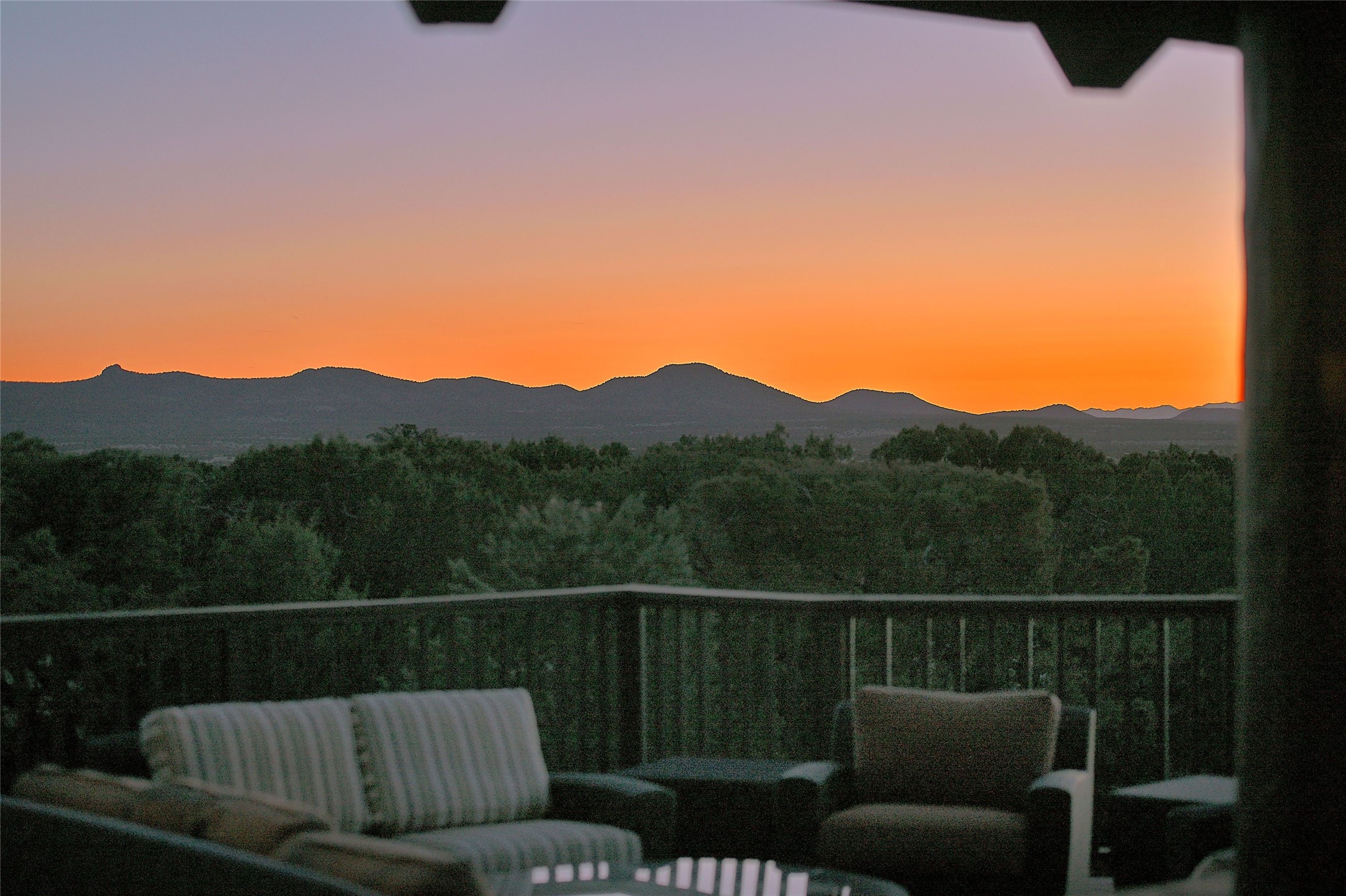Imagine yourself in this extraordinary 4,080 sq. ft. Northern New Mexico style home by award winning Roger Hunter Builders, nestled in the prestigious gated Estancia enclave of Las Campanas. Perfectly positioned on a premier homesite, this residence captures sweeping views of the Jemez Mountains and overlooks 69,000 acres of undisturbed BLM land for ultimate serenity and privacy. Inside, grand interior trusses and expansive wood floors frame a spacious great room, seamlessly connected to a gourmet kitchen and adjacent butler's pantry--ideal for entertaining. The vast, covered Portal offers generous dining and lounging spaces with panoramic views. The private primary suite features a cozy sitting area with a rock-faced fireplace, his and hers vanities and walk-in closets, and dual offices--each spacious enough for a desk, lounge chair, and ottoman. A separate guest wing offers two guest bedrooms with en-suite baths and walk-in closets. One suite is used as a state-of-the-art media room. A convenient workstation with custom-built cabinetry offers additional office space that could be used by guests or an additional office. thoughtfully designed home blends traditional Santa Fe style with modern luxury--wood, stucco, and rock exteriors, mature landscaping, and an oversized 3-car garage with ample storage. A rare opportunity to own a one-of-a-kind property in Santa Fe's most sought-after community.