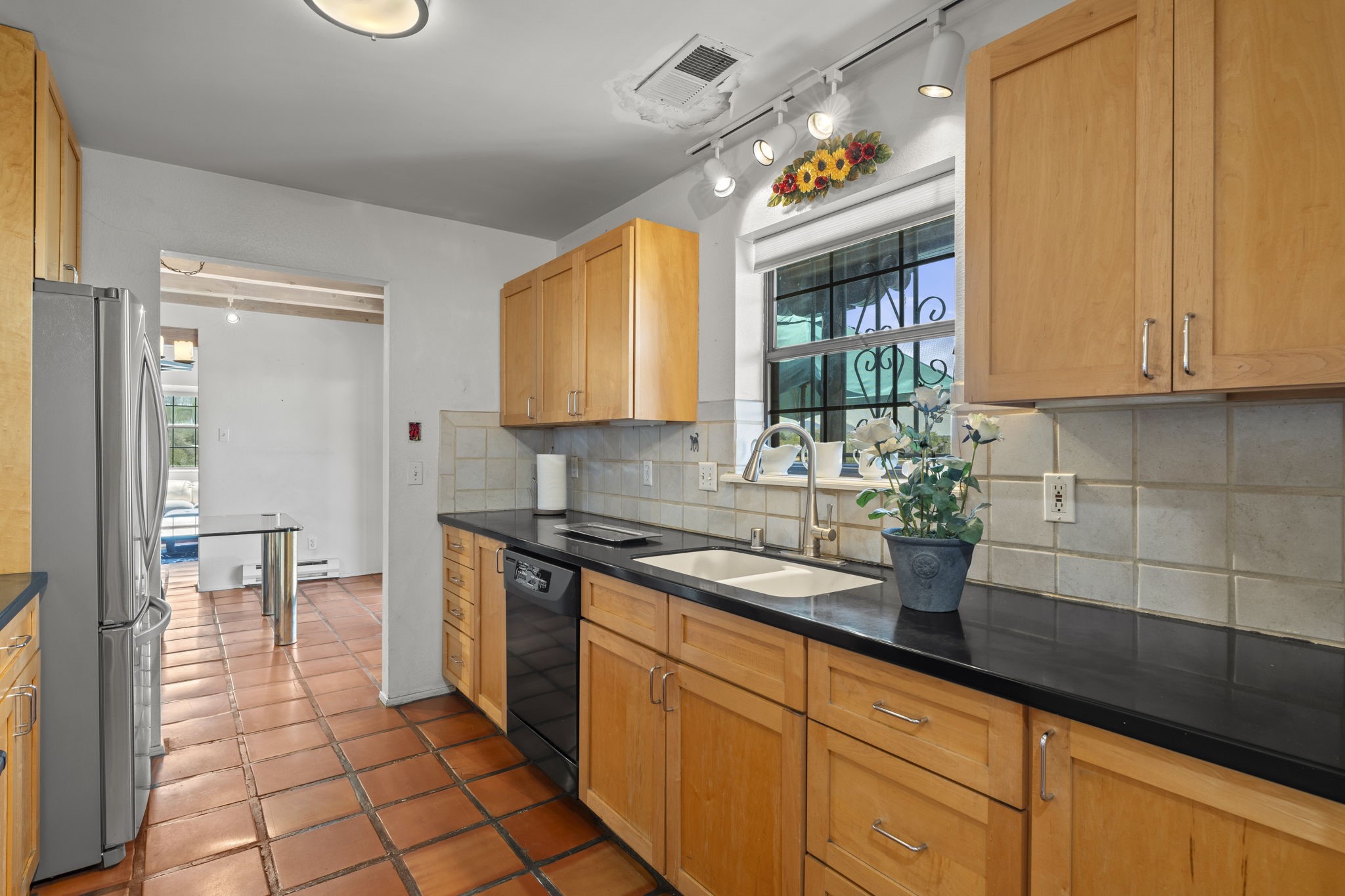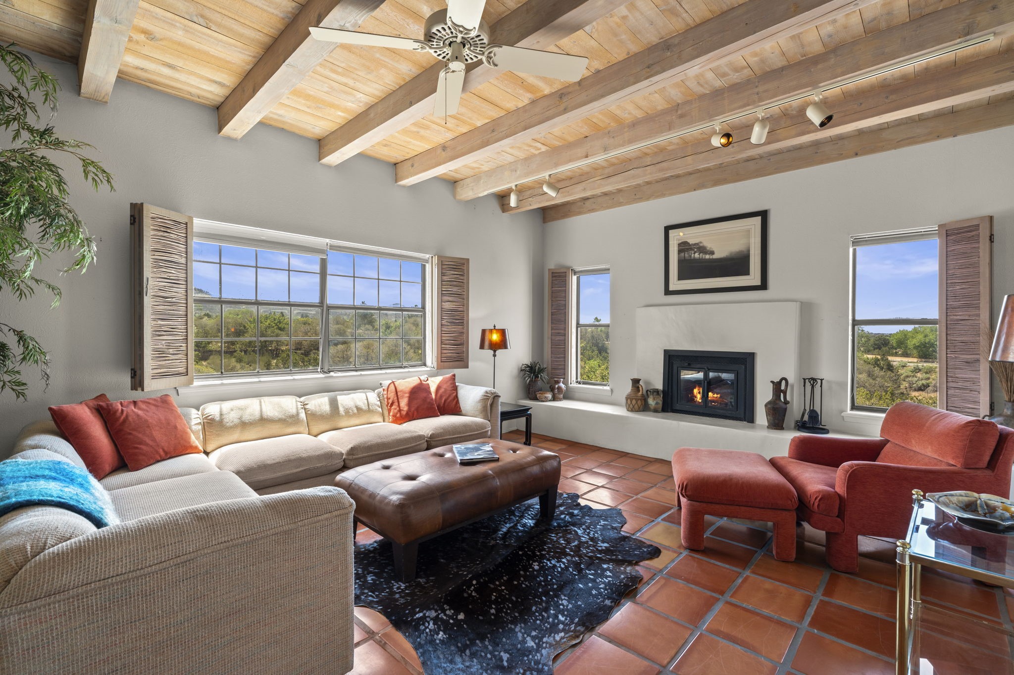Spacious end-unit townhome with mountain views & exceptional layout. Tucked away at the end of a quiet cul-de-sac, this expansive end-unit townhome offers rare privacy, mountain views to the east and south, and one of the most spacious floorplans in the community. With four bedrooms, multiple living areas, and flexible spaces, this home is ideal for those seeking space, comfort and versatility.Enter through a charming walled courtyard into a warm, light-filled interior. The main floor features a generous living room and a formal dining area that opens to an airy balcony. The galley-style kitchen has countertops, a breakfast nook, and ample cabinetry. Also on the main level is a private en-suite bedroom, along with an open den area with built-in bookshelves and adjacent bath.The lower level offers even more possibilities, with additional bedrooms, a full bath, and a second den/office space featuring a traditional kiva fireplace and direct access to a private deck.Centrally located near downtown, medical care, museums, and shopping, this home seamlessly blends tranquility with accessibility.