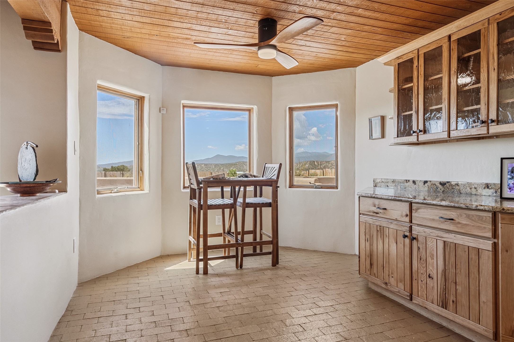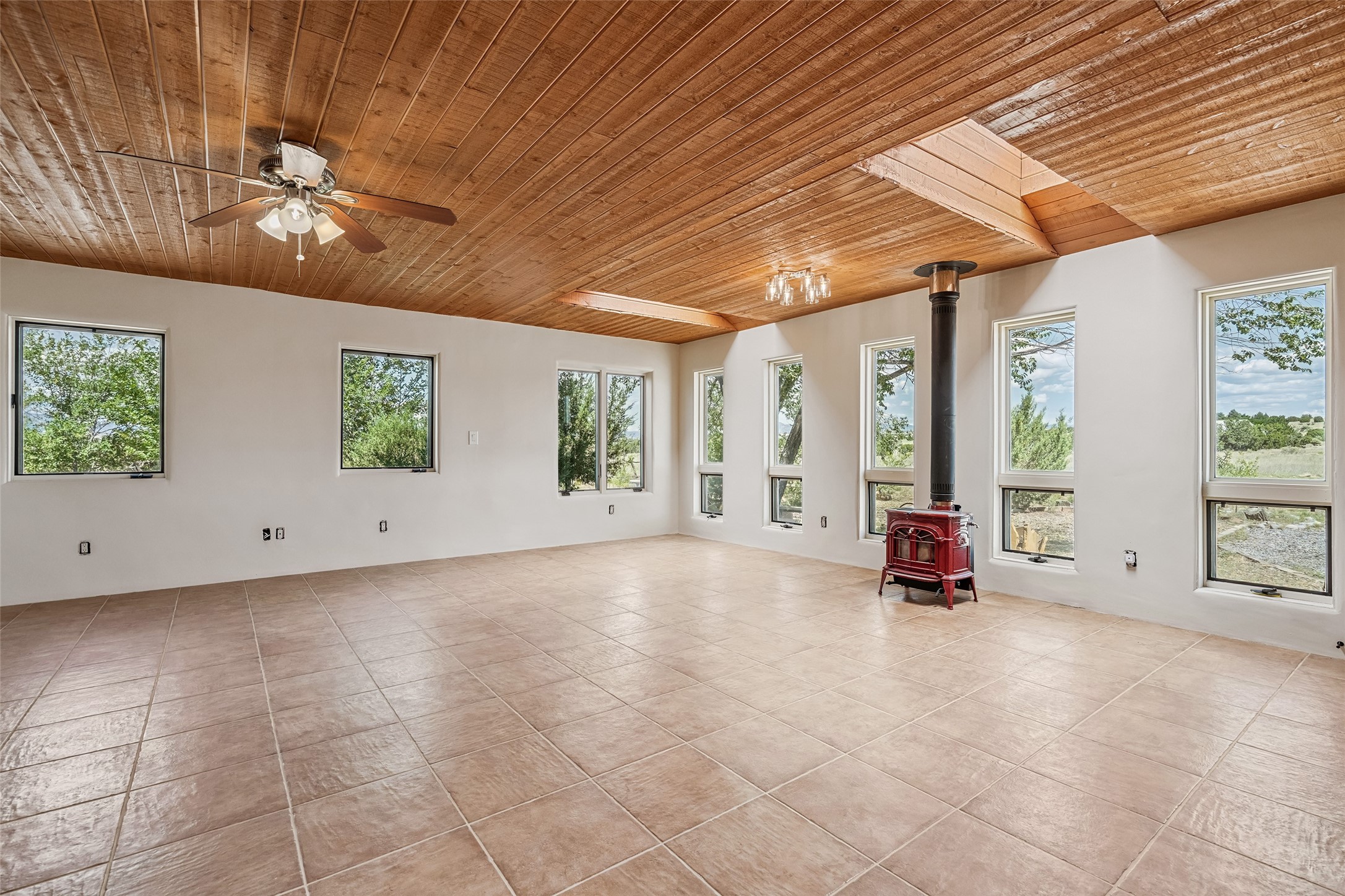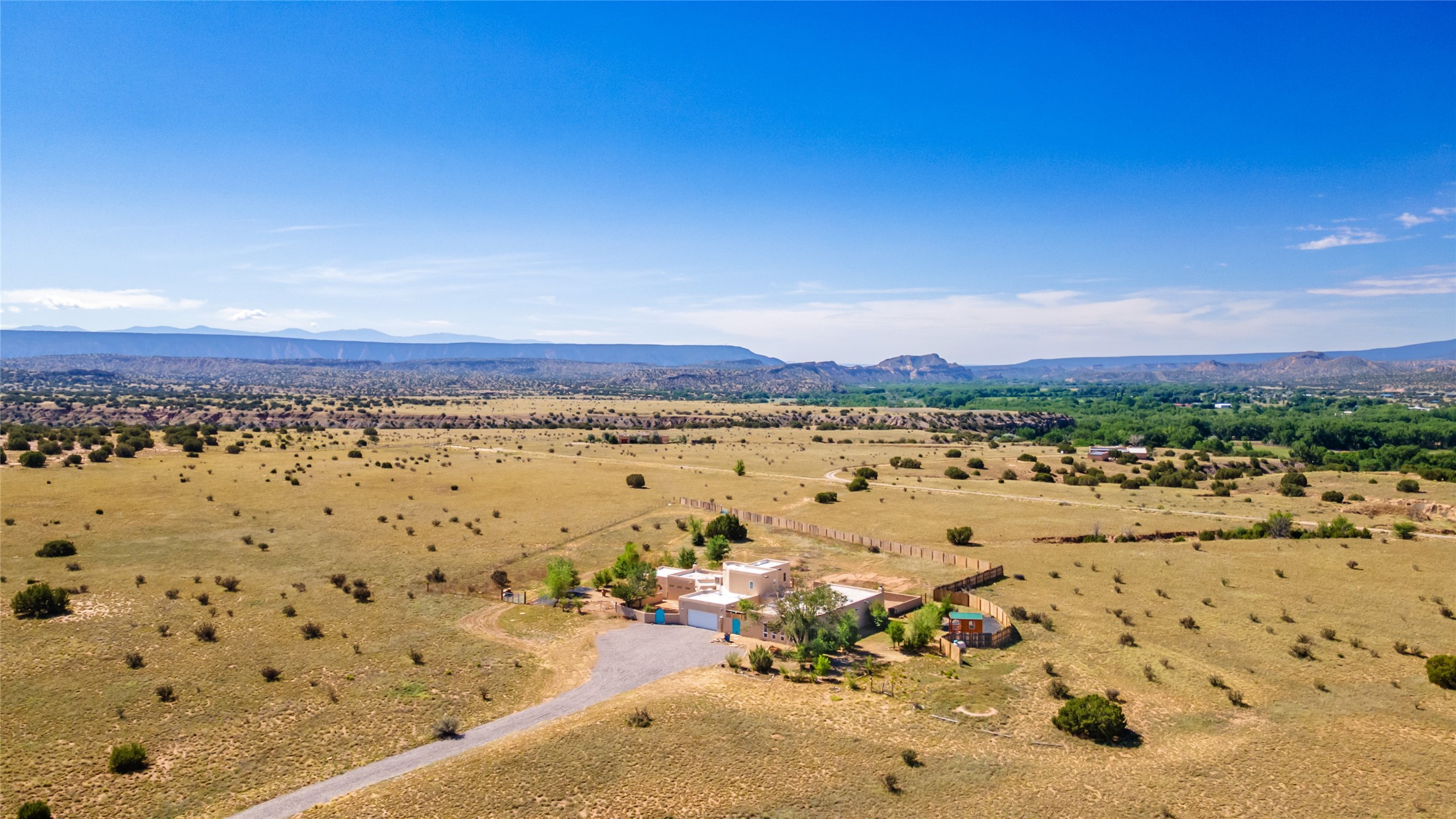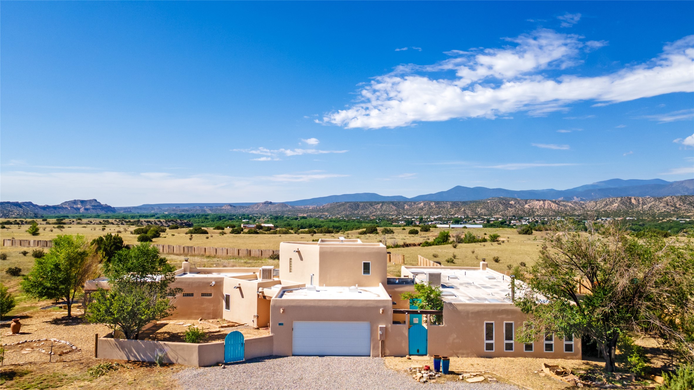 Centrally located between Los Alamos, Santa Fe, and Taos, this spacious 4-bed, 4-bath home on 5 acres offers peaceful family living in the heart of Medanales. With horses welcome and Abiquiu Lake and national forest lands just minutes away, it's an ideal setting for those who love space, nature, and quiet. Inside, classic Southwestern style shines through with brick floors, beamed ceilings, multiple wood stoves, two kiva fireplaces, and cozy radiant heat. With newly remodeled custom baths featuring walk-in showers, a generous kitchen, separate dining room, and a dedicated office, this home perfectly suited for both family life and remote work. Multiple courtyards provide serene outdoor living spaces, while a large covered portal with a Kiva fireplace invites year-round enjoyment. Sweeping mountain views complete this exceptional property--offering a private, charming retreat with room to roam.