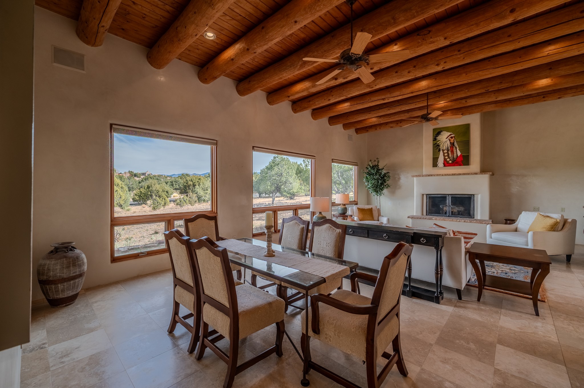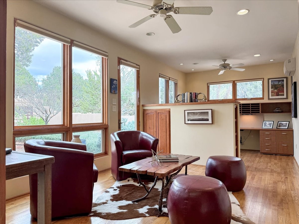 Spacious Luxury, Breathtaking Views & Multigenerational Comfort. Experience Santa Fe living at its finest in this elegant single-level home with an attached two-bedroom guest casita--ideal for extended family, guests, or a private retreat. Set on 1.5 acres in the gated community of Salva Tierra, this property offers stunning views, ultimate privacy, and convenient access to downtown, The Club at Las Campanas, and nearby hiking and biking trails. The main house features three ensuite bedrooms, a den, and an office, while the casita mirrors the main home's high-end finishes, including travertine floors, viga ceilings, and custom cabinetry. Both chef's kitchens are outfitted with Wolf, Sub-Zero, and Dacor appliances, large islands, and easy access to outdoor dining patios--perfect for entertaining under Santa Fe's starry skies. Enjoy peaceful courtyards, multiple portals, and a rooftop hot tub for sunset or stargazing. The primary suite includes a fireplace, spa-like bath, walk-in shower, soaking tub, and mountain views. Quality details throughout: radiant floor heat, mini splits, whole-house generator, new stucco, new TPO roof with warranty, electric shades, and a three-car garage with ample parking. Community amenities include tennis and pickleball courts, private roads, and a welcoming neighborhood atmosphere. Move-in ready and meticulously maintained--this home combines timeless Santa Fe style with modern comfort and flexibility for today's lifestyles. Watch the video and take the virtual tour to see why 118 E. Sunrise Drive is the perfect Santa Fe getaway or multigenerational retreat.