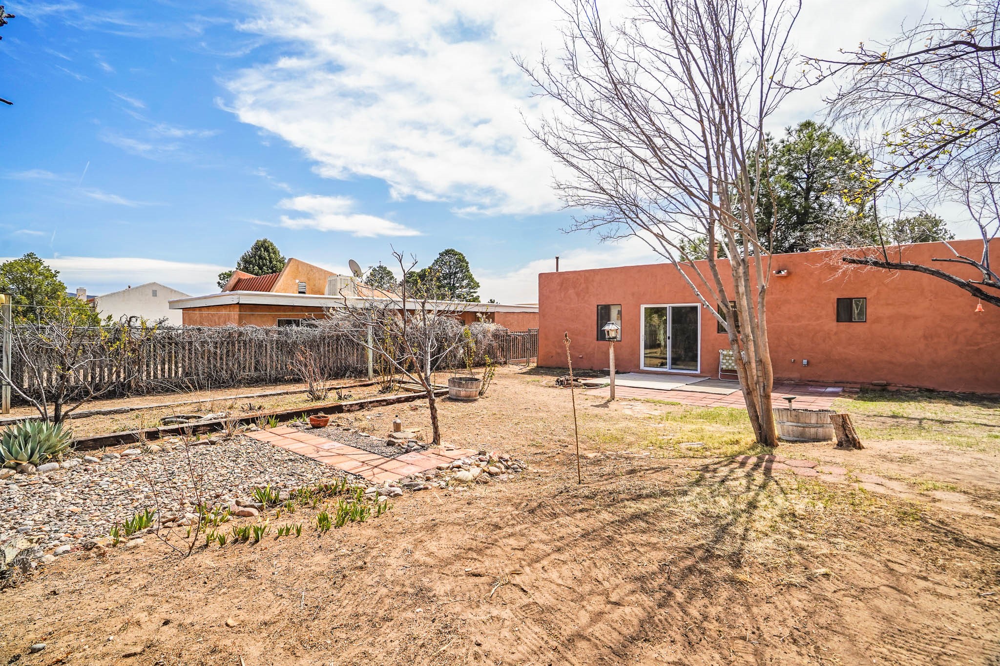 Nestled in Cochiti Lake, this charming 2 bed, 1 bath home offers a blend of comfort and convenience. Enjoy the open living space with a cozy fireplace and an updated kitchen featuring Corian counters. The bathroom boasts a refreshed vanity and counter. Outside, mature landscaping with a Ponderosa Pine and Pinon graces the front, while a fully fenced backyard ensures privacy. A 1-car garage adds practicality. Situated near the town hall yet bordering green space, this home offers both accessibility and tranquility. Don't miss out on this opportunity!
