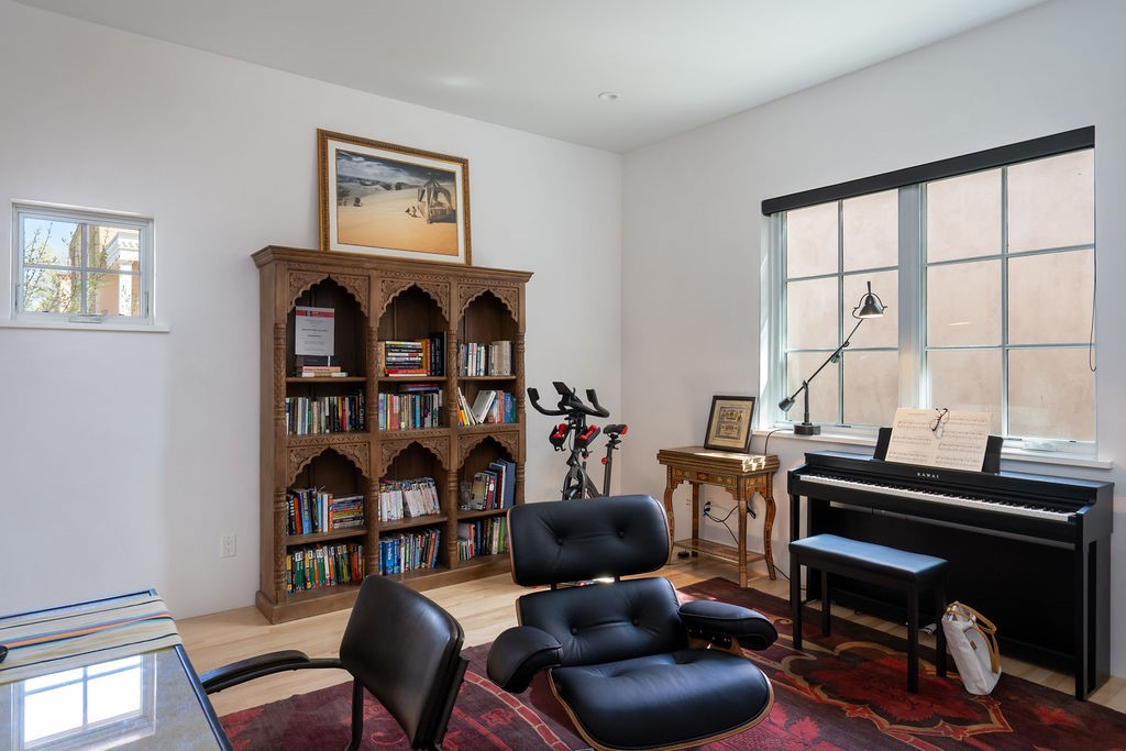 Tucked away in the Manderfield enclave at the top of Canyon Road, this rare, detached condominium offers the privacy of a single-family home located in one of Santa Fe's most coveted neighborhoods.Built by Prull Custom Homes, this home is designed with a timeless blend of comfort and style. The expansive living and dining area features soaring ceilings, wood floors, smooth Venetian plaster walls, and abundant natural light. A fireplace and French doors add warmth and elegance, while seamlessly connecting indoor and outdoor living. The kitchen will satisfy any chef, with beautiful cabinetry, upgraded appliances and an island.The primary suite is a private retreat with its own portal access, a generous walk-in closet, and a luxurious en-suite bath. The second bedroom also has an ensuite bath. There is an oversized powder room for guests. Both the living room and primary suite open to a peaceful, private outdoor space--perfect for a quiet morning coffee or evening unwind. The front portal, partially covered, offers enough space for an outdoor dining table, ideal for entertaining with a view.Additional highlights include an oversized one-car garage with direct entry, in floor radiant heat and forced air with a heat recovery ventilator. There is a mini split system in the living areas and primary bedroom for cooling when needed. This is Santa Fe living at its most refined--serene, stylish, and steeped in Eastside charm.