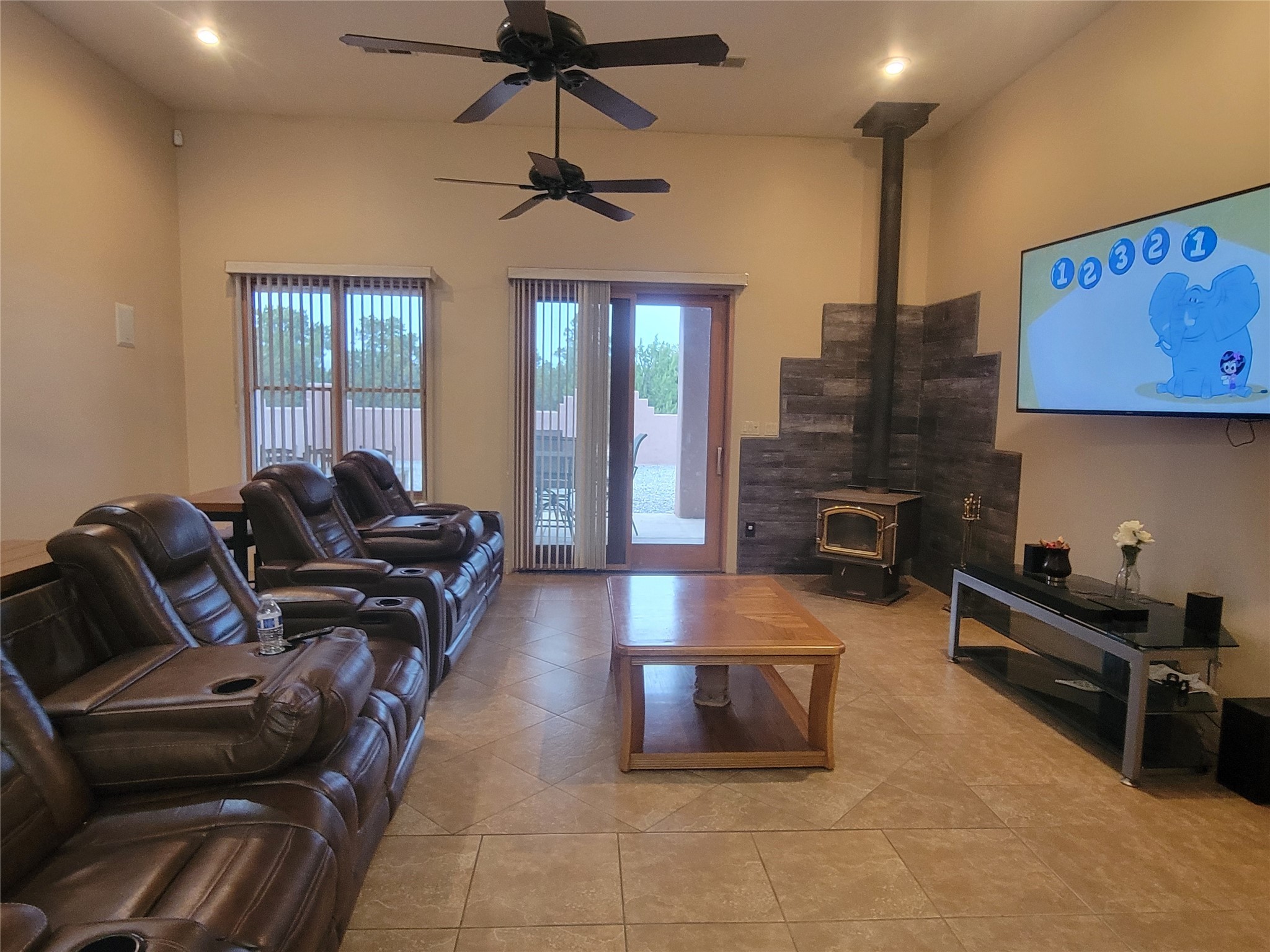 Highly motivated sellers! Country. Convenient. Comfort. This Pueblo Style home has had the price Cut to only $559,000. Which is belowthe appraisal of $585k in 2021!! It is secluded in a rural setting with easy access to I-25. Many large windows showcase the beauty of the area with striking views of Rowe Mesa. Only 40 minutes to Santa Fe and 30 minutes to Las Vegas with scenic drives both ways. It sits on 3 acres of unspoiled nature.The circular entrance opens to the welcoming warmth of this immaculately cared for home. A family area craves Cozy Cuddle-ups by the wood stove or patio opens to Courtyard Cookouts . Kitchen has beautiful granite cabinet tops and great, solid wood cabinets with unbelievable storage space. Extra large laundry room with W/D hookups, sink area and large cabinet space. Granite countertops in all bath areas. Master bedroom includes a massive walk-in closet. 3 car, insulated garage. High speed internet provided by Plateau is available.Main living area boasts a 14' ceiling and 12' ceiling in the rest of the home. Architectural design of Transoms above windows and doors increases natural light. Recessed lighting and Built-in sound system throughout. Walls are beautiful smooth, drywall . Solid wood doors and trim throughout. House includes radiant heat in the flooring. Upgrades in 2021 include 2 rooftop heating and refrigerated A/C units and new TPO roof on the entire structure (almost 5000 sf). Pella doors and windows. Bosch appliances.This home has special features to accommodate your large gatherings of friends and/or family, inside or outside. The hassle of the city is outdone by the secluded beauty and warmth of this home. Highly motivated sellers. Come take a look today!