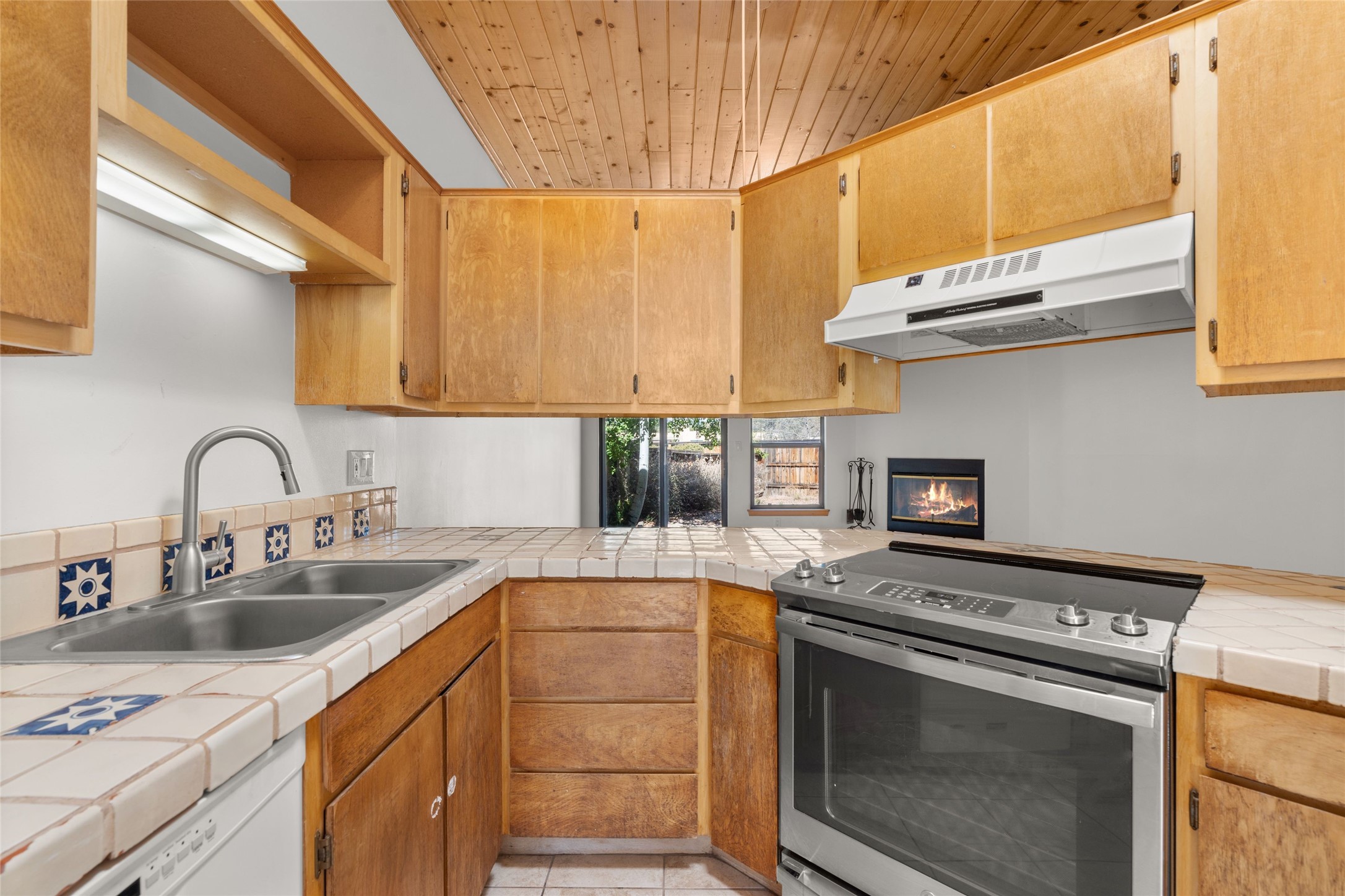 Located in the desirable Park Plazas this lovely two bedroom, two bath has an open kitchen/dining/living room with high ceilings that creates an airy, open feeling. From the living room there are sliding glass doors opening to the back yard for entertaining and relaxing. The two bedrooms are well separated, and the primary bedroom has an en-suite bathroom. Included are a fireplace, tile floors, forced air heat as well as a garage located just steps from the front door. A supper bonus is that there was a new roof installed in 2023. Park Plazas has miles of walking trails, tennis and pickle ball courts, community gardens, off leash dog park, a gated RV storage area as well as other amenities.