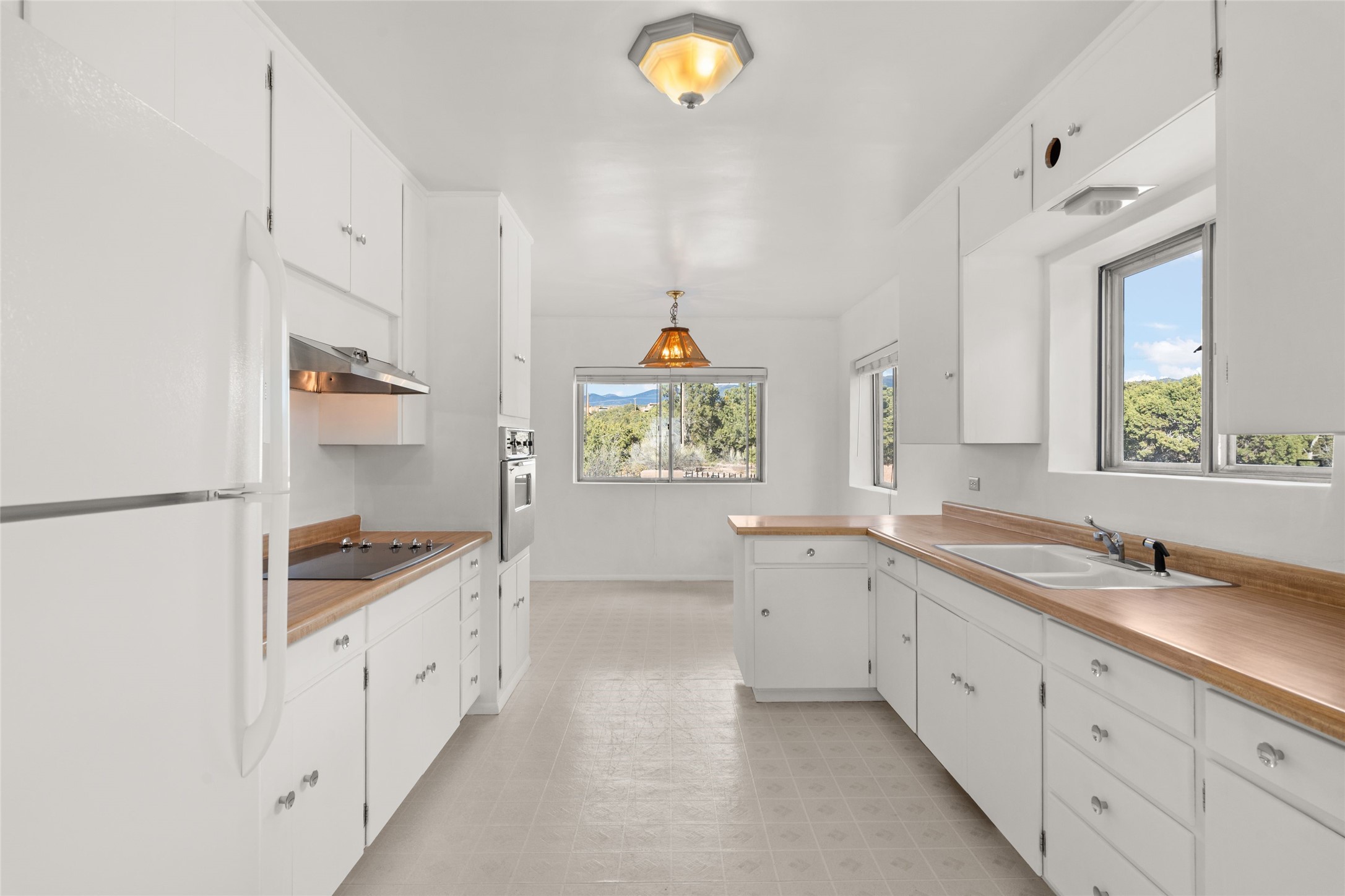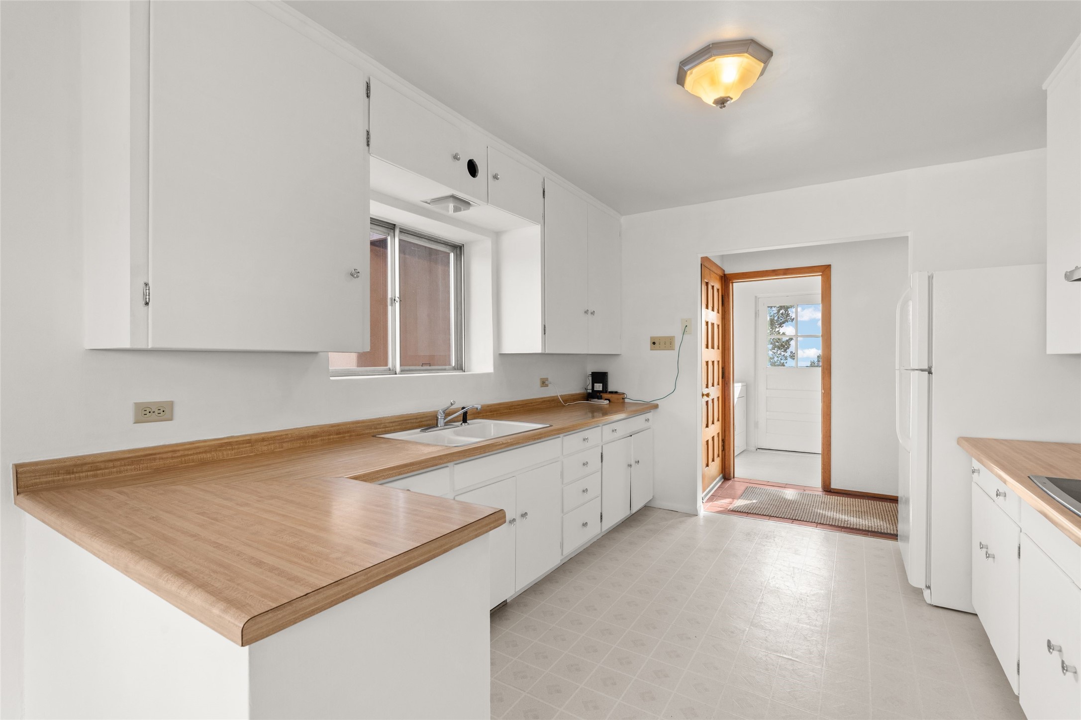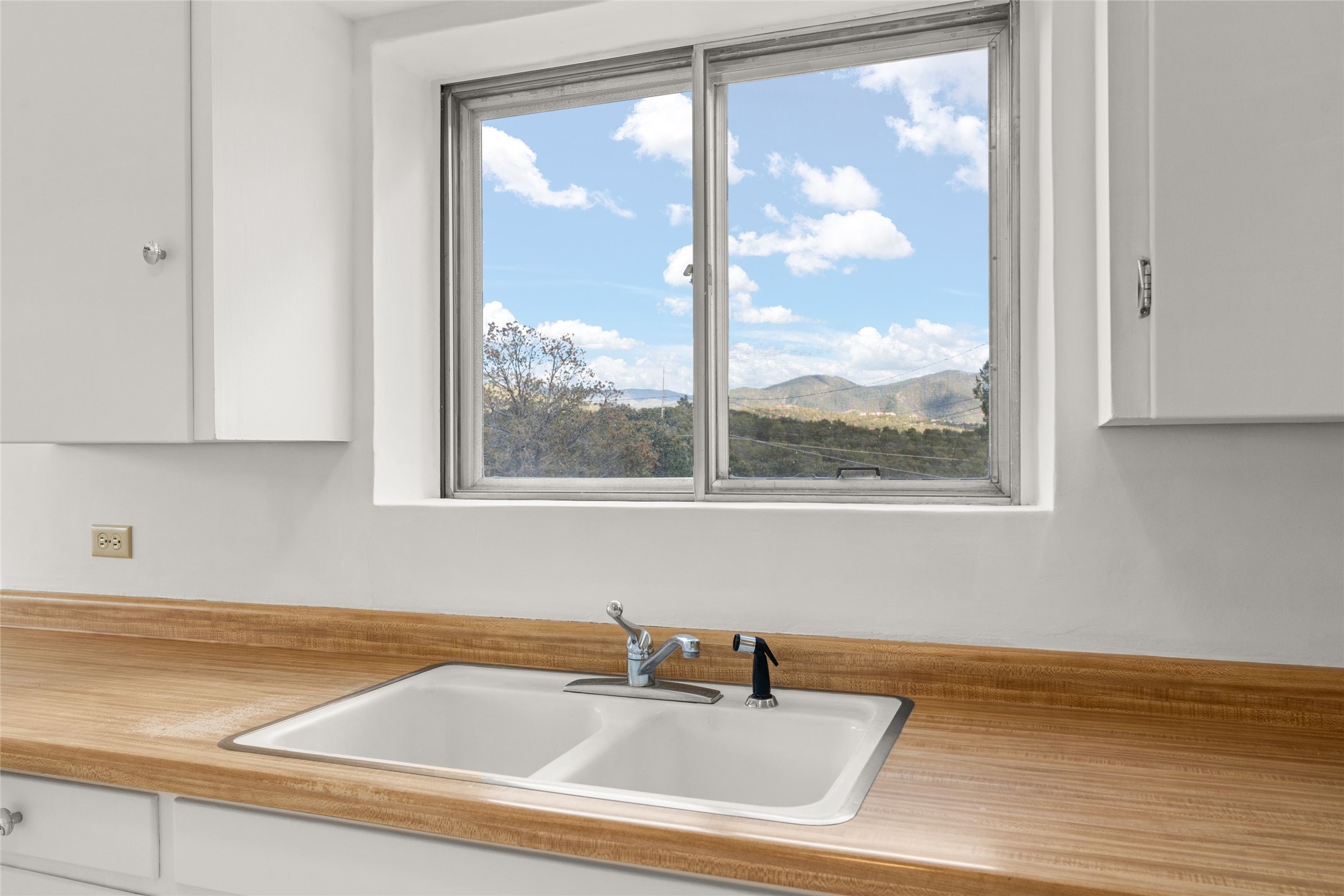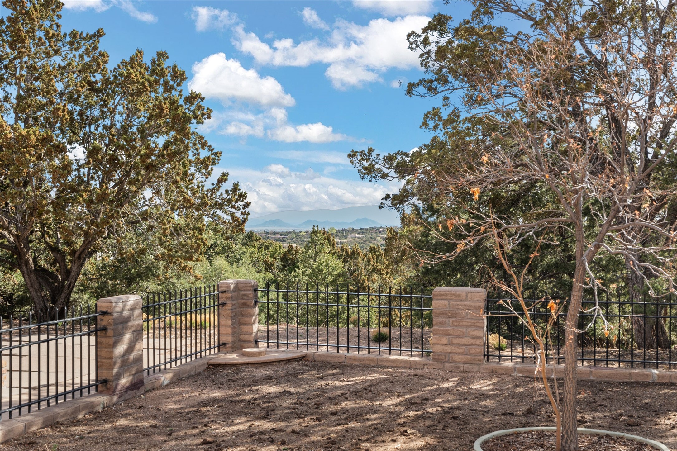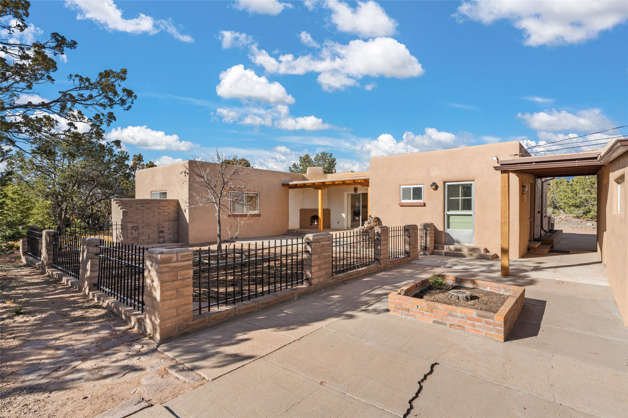 Location and Views! Close to downtown Santa Fe, within the city limits in the NE Hills and sited on 1.5 acres at the high point of Mansion Ridge Road, this 2,322 sq. ft. partly adobe, single-level treasure has commanding views of the Sangre de Cristo Mountains to the East and South to the Ortiz and Sandia Mountains. Built in 1958 and sited to capture the mountain views, this home has been beautifully maintained by the one-owner family. There are 3 bedrooms (one with a private office/sitting room); 1 bathrooms; a large living/dining room and spacious, light-filled kitchen with breakfast nook. The living room has a handsome fireplace and two large glass patio doors. A few steps from the house, under a covered walkway, there's a large, two-car garage with-ample workshop space. The two courtyards are fenced, and the rear courtyard has a fireplace. There is wonderful sense of tranquility and permanence to this special property