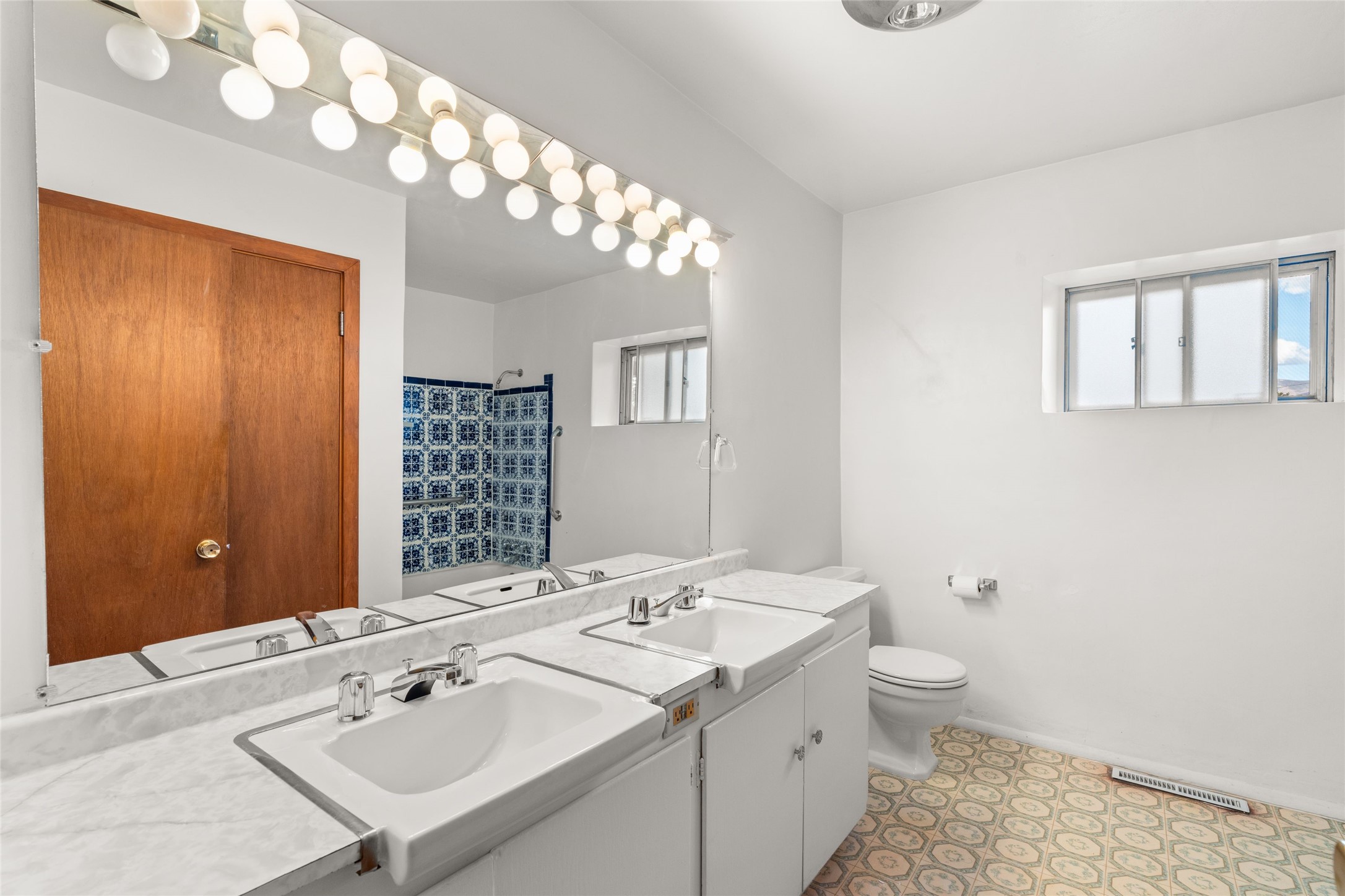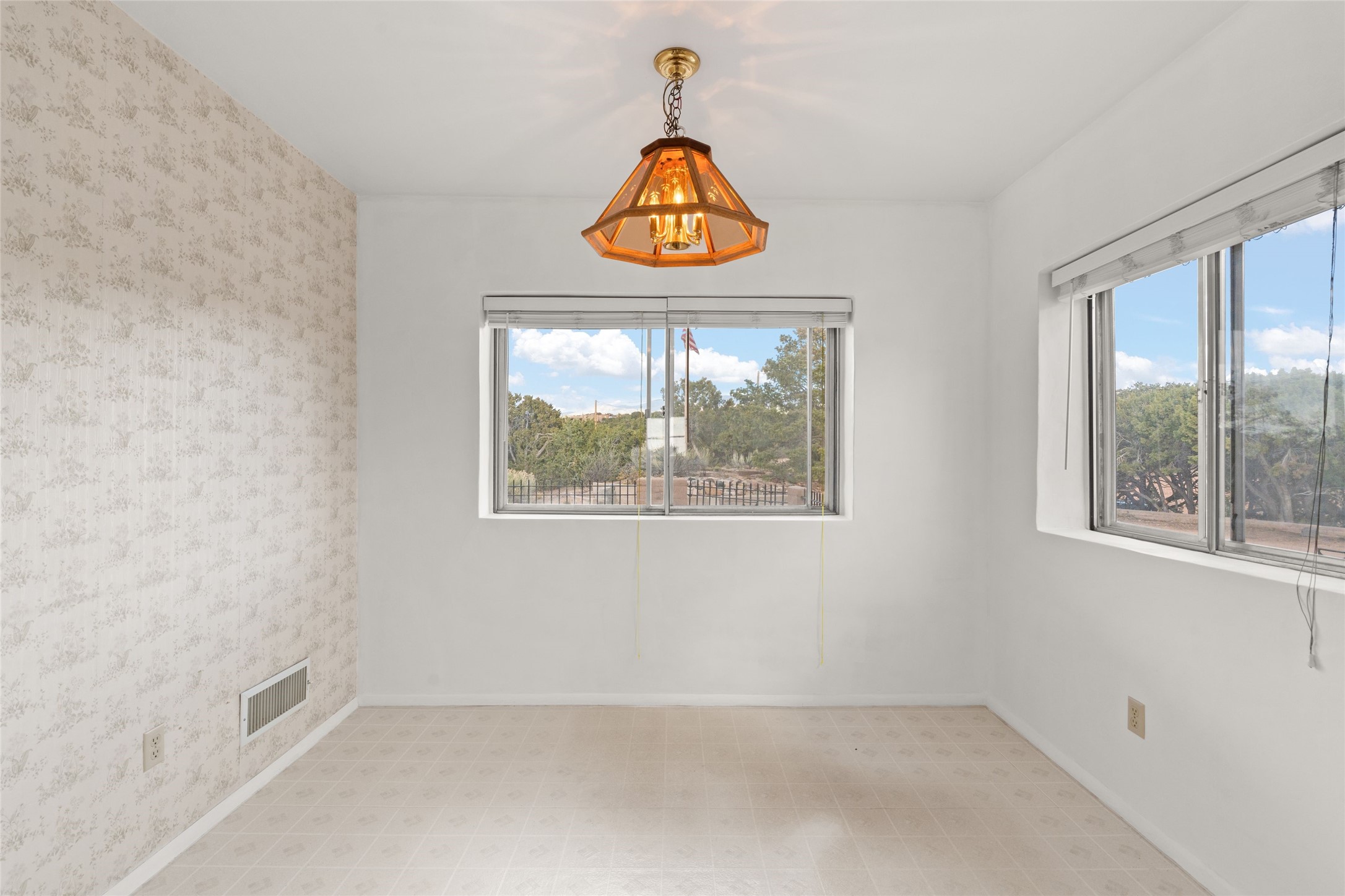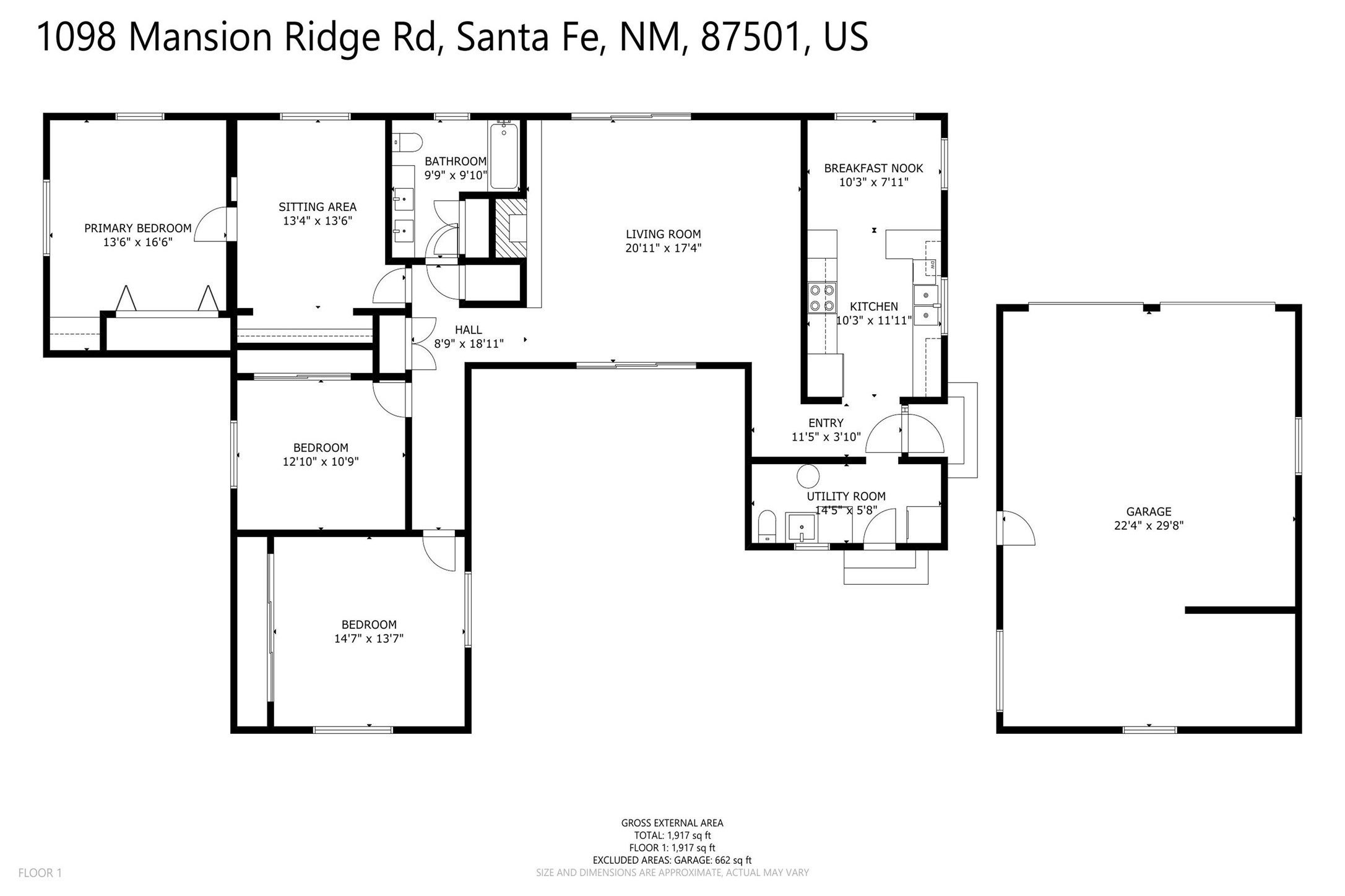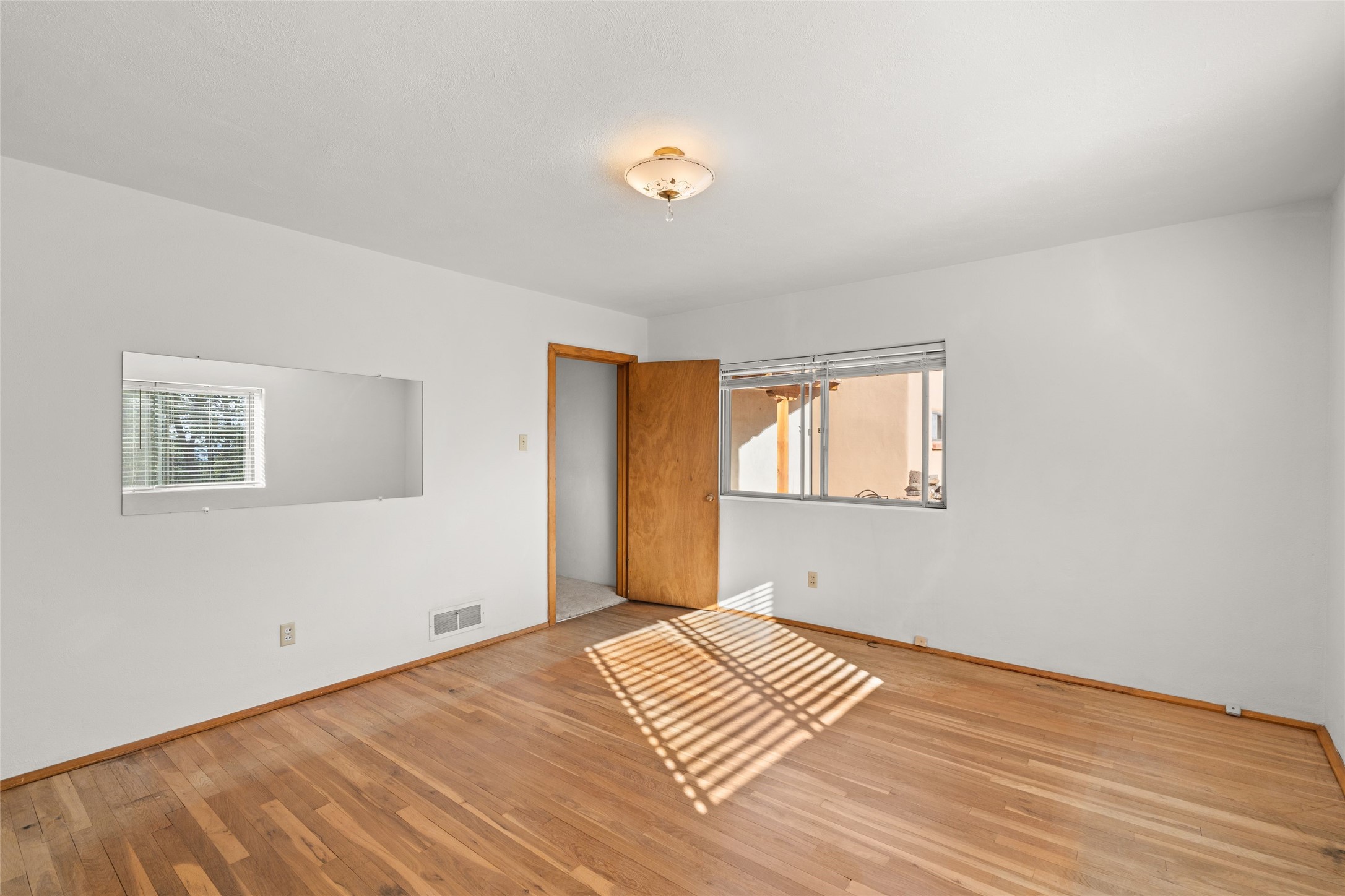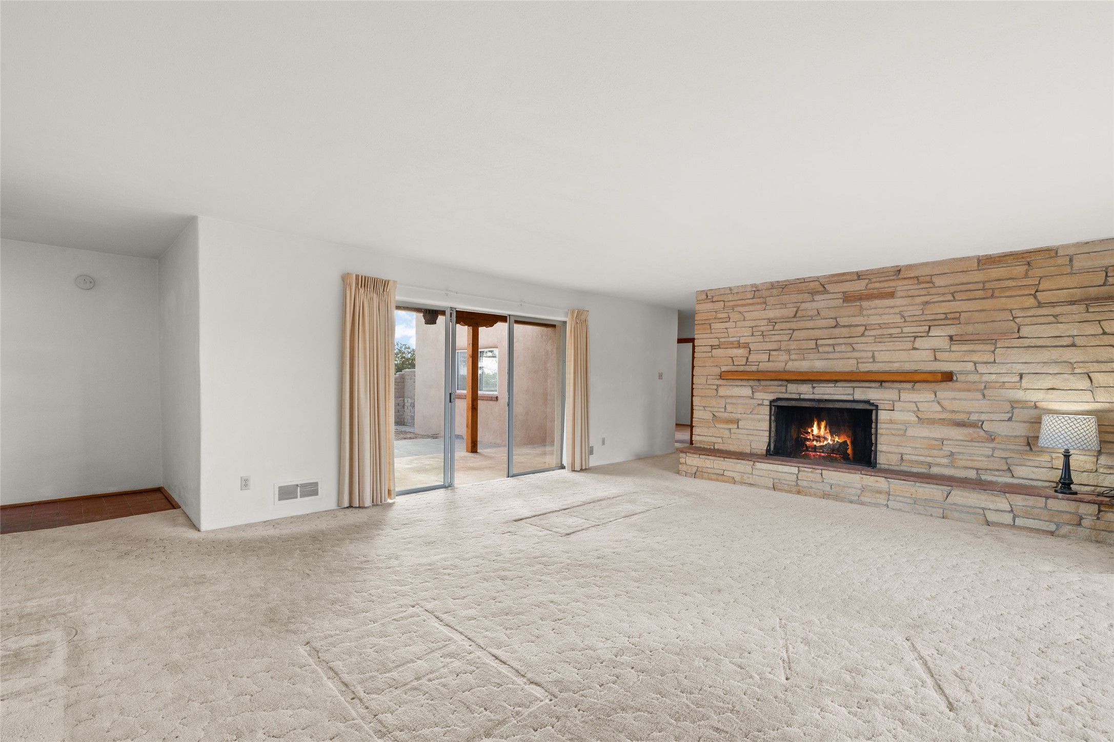 Location and Views! Close to downtown Santa Fe, within the city limits in the NE Hills and sited on 1.5 acres at the high point of Mansion Ridge Road, this 2,322 sq. ft. partly adobe, single-level treasure has commanding views of the Sangre de Cristo Mountains to the East and South to the Ortiz and Sandia Mountains. Built in 1958 and sited to capture the mountain views, this home has been beautifully maintained by the one-owner family. There are 3 bedrooms (one with a private office/sitting room); 1 bathrooms; a large living/dining room and spacious, light-filled kitchen with breakfast nook. The living room has a handsome fireplace and two large glass patio doors. A few steps from the house, under a covered walkway, there's a large, two-car garage with-ample workshop space. The two courtyards are fenced, and the rear courtyard has a fireplace. There is wonderful sense of tranquility and permanence to this special property