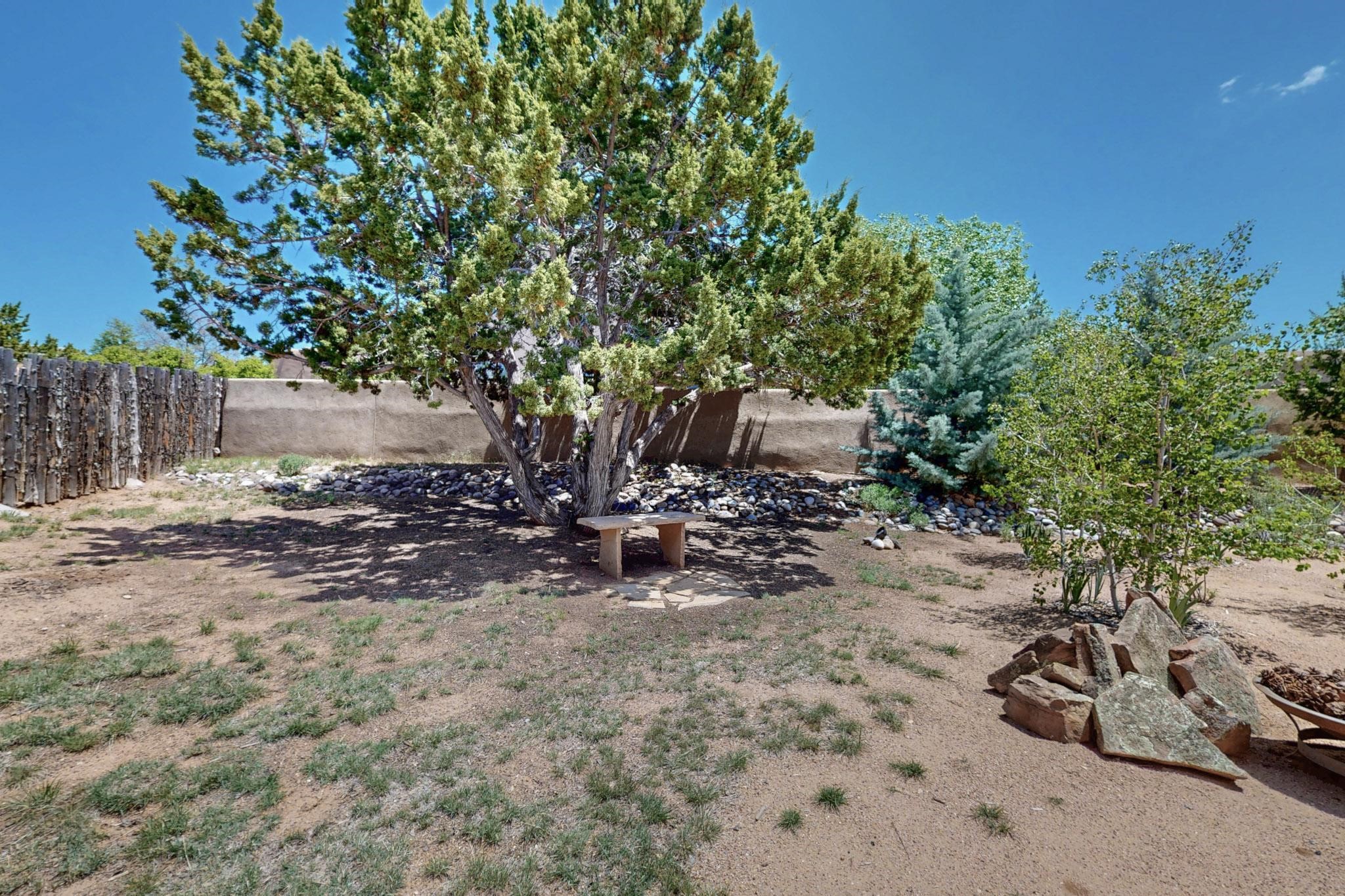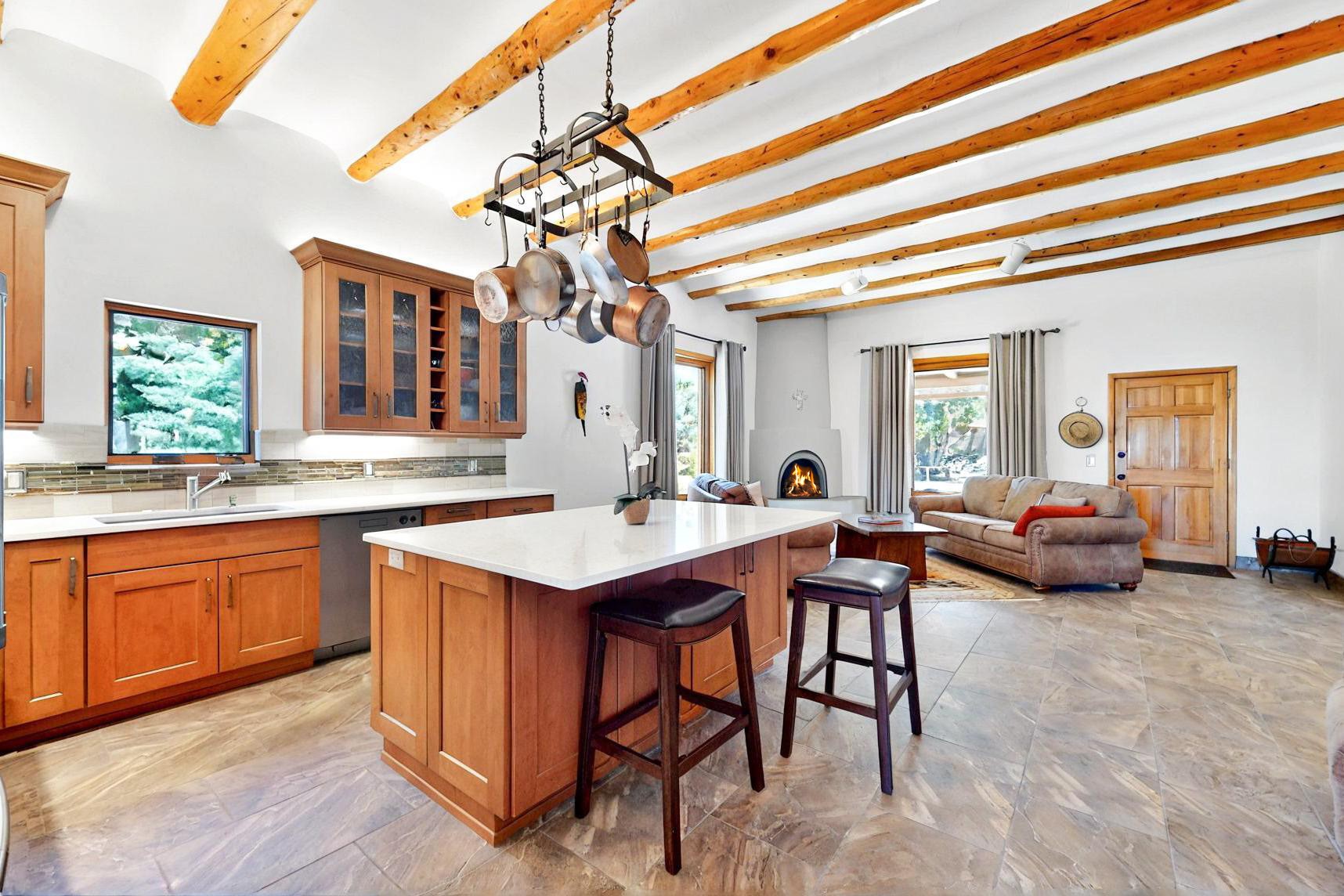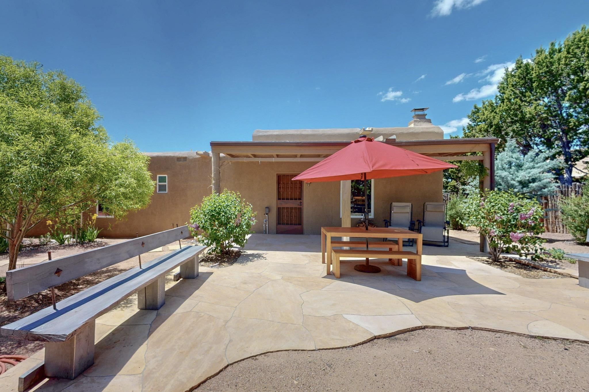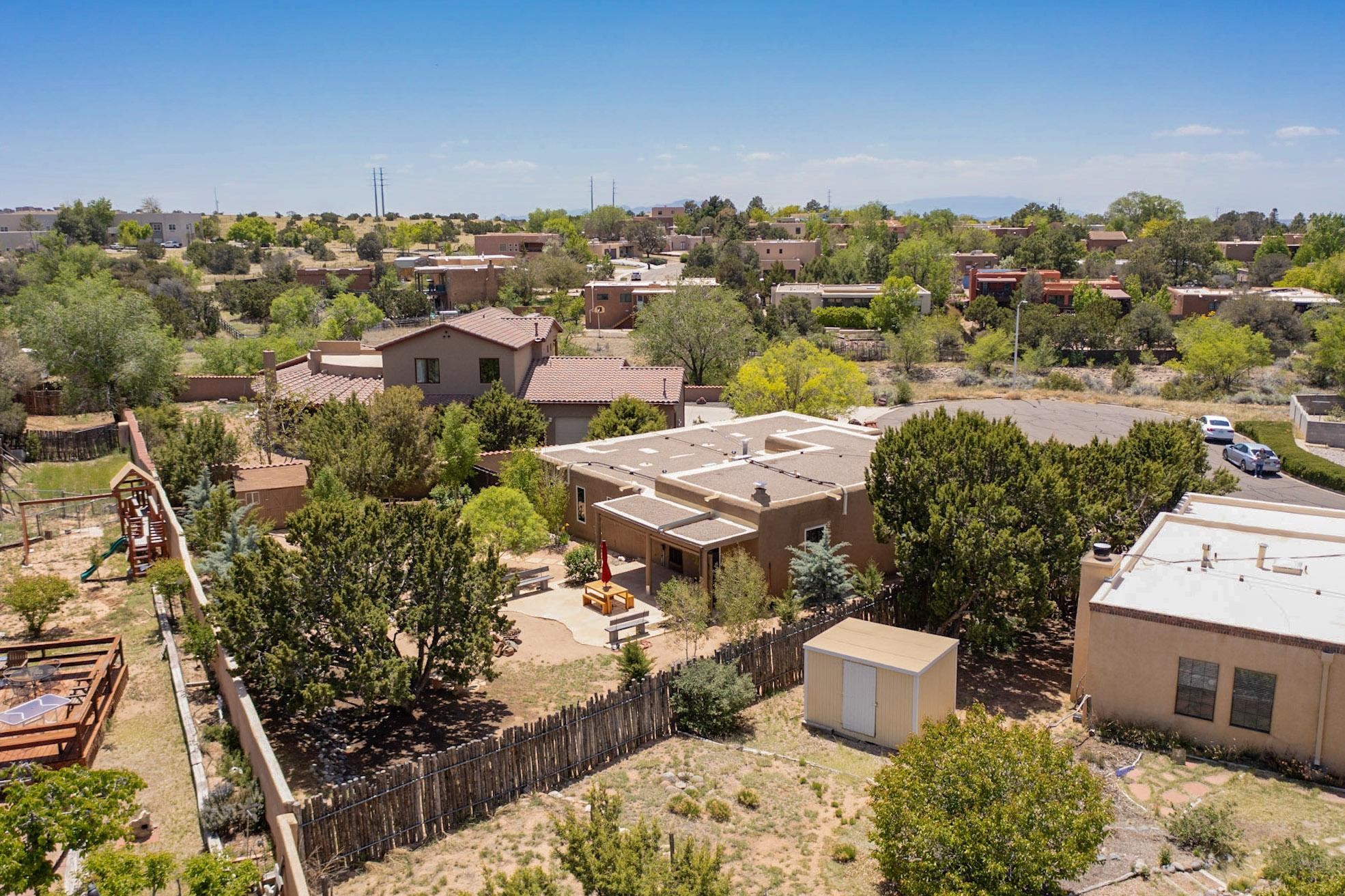 Discover this beautifully updated, move-in-ready single-level custom pueblo-style home in the desirable Villa Caballero subdivision. Ideally located less than 15 minutes from the Historic Santa Fe Plaza and close to parks, trails, and local amenities, this 3-bedroom, 2-bathroom residence offers 2,072 sq ft of comfortable living space on a spacious and gorgeous 0.28-acre lot. Tucked away in a quiet cul- de-sac, the home blends comfort, convenience, and tranquility. Step inside to soaring 11-foot ceilings that enhance the airy, open feel of the main living areas. The great room features a chef's kitchen with custom Alderwood cabinetry, under-cabinet lighting, soft-close drawers and doors, quartz countertops, a glass tile backsplash, and a custom island. Luxurious stainless steel appliances include a Wolf range with Zephyr hood and a counter-depth Jenn Air refrigerator. Oversized dual-pane windows with window treatments in the great room and primary bedroom allow for abundant natural light and improved energy efficiency. Arizona Porcelain tile flooring extends through the living areas, with plush new carpeting in the bedrooms. Both bathrooms are tastefully updated with modern finishes. The spacious primary suite includes a walk-in closet and a renovated en-suite bath. The private, fully enclosed backyard is perfect for entertaining with a rear patio, flagstone pathways, mature juniper and aspen trees, and a wooden garden shed for extra storage. Additional highlights include new Jeld-Wen dual pane windows in the great room and primary bedroom, baseboard heating, ductless mini-splits A/C, a cozy kiva fireplace, a finished two-car garage with built-in cabinetry, RV/boat parking, and recent roof maintenance with a three-year warranty, extendable to five years. This thoughtfully updated home offers the perfect combination of style, comfort, and location--schedule your private showing today!