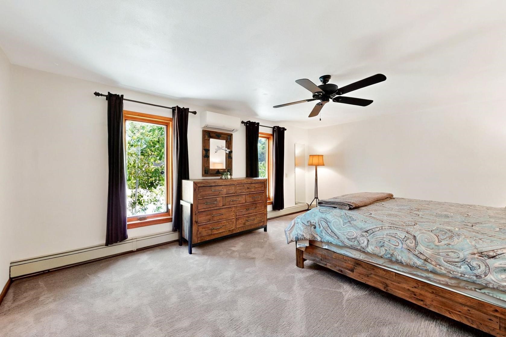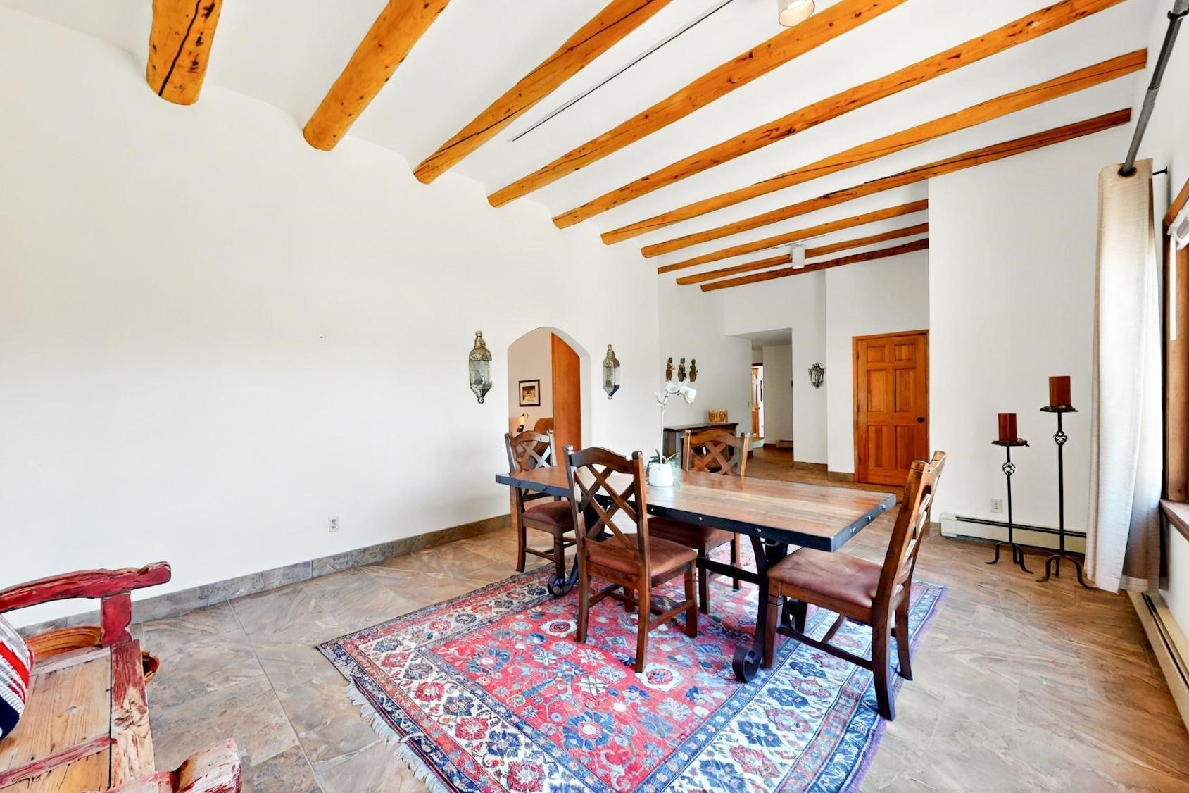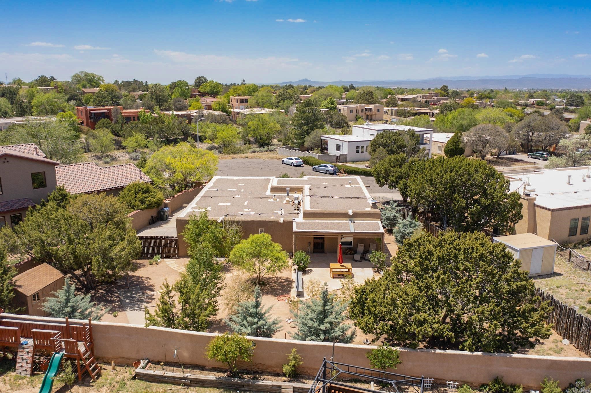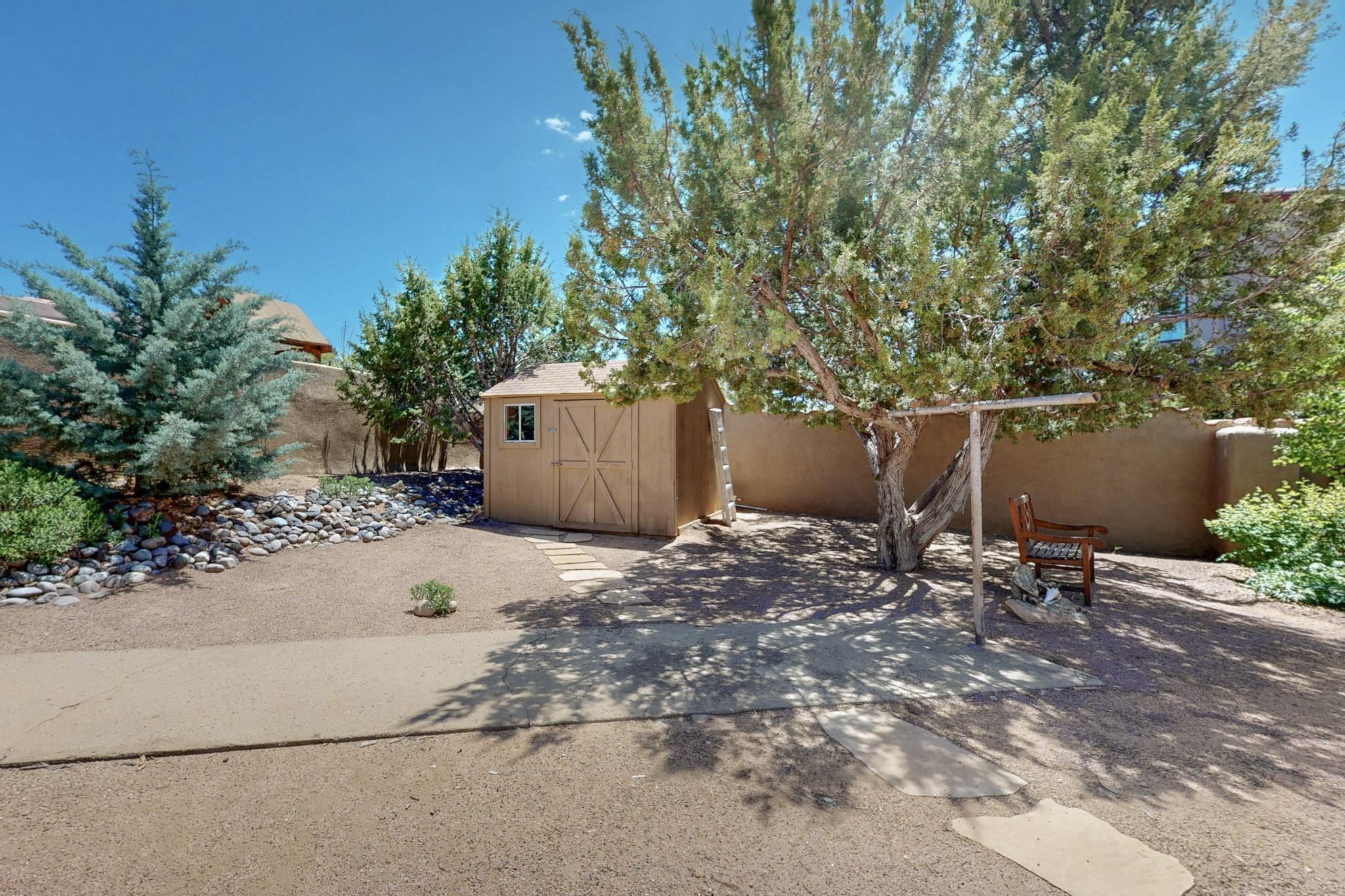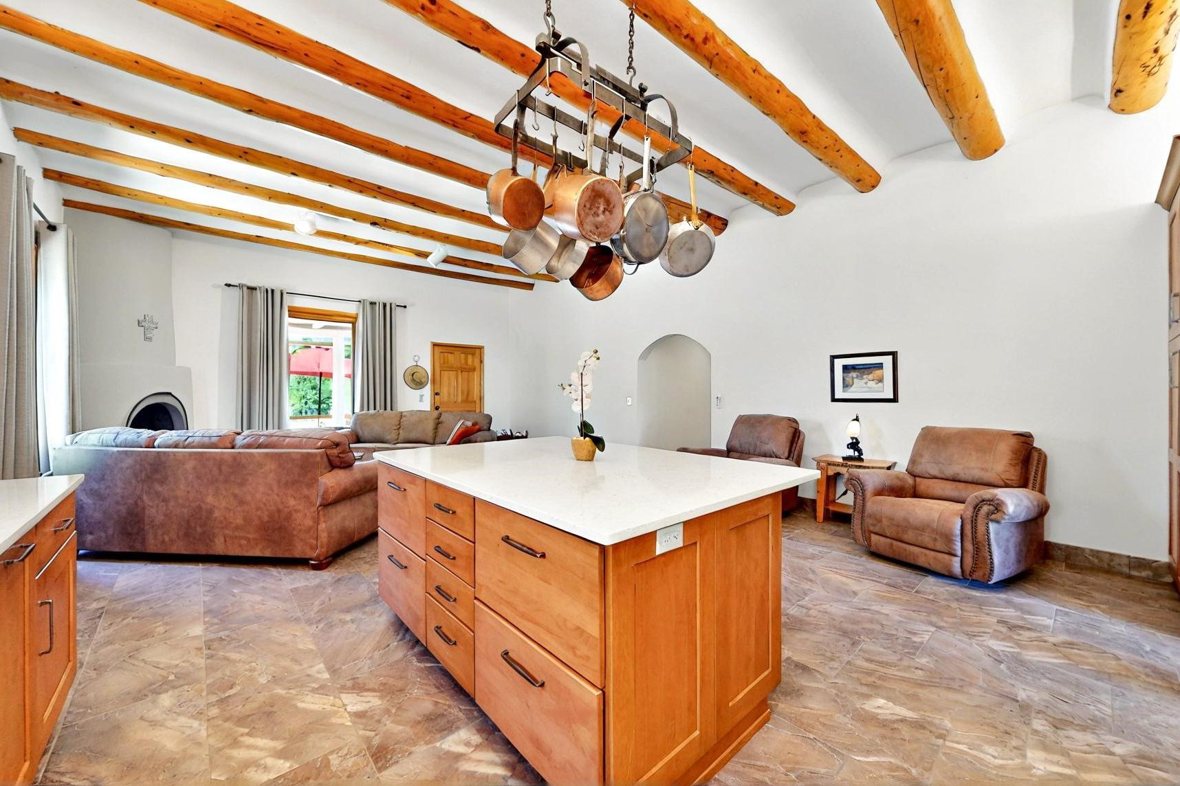Discover this beautifully updated, move-in-ready single-level custom pueblo-style home in the desirable Villa Caballero subdivision. Ideally located less than 15 minutes from the Historic Santa Fe Plaza and close to parks, trails, and local amenities, this 3-bedroom, 2-bathroom residence offers 2,072 sq ft of comfortable living space on a spacious and gorgeous 0.28-acre lot. Tucked away in a quiet cul- de-sac, the home blends comfort, convenience, and tranquility. Step inside to soaring 11-foot ceilings that enhance the airy, open feel of the main living areas. The great room features a chef's kitchen with custom Alderwood cabinetry, under-cabinet lighting, soft-close drawers and doors, quartz countertops, a glass tile backsplash, and a custom island. Luxurious stainless steel appliances include a Wolf range with Zephyr hood and a counter-depth Jenn Air refrigerator. Oversized dual-pane windows with window treatments in the great room and primary bedroom allow for abundant natural light and improved energy efficiency. Arizona Porcelain tile flooring extends through the living areas, with plush new carpeting in the bedrooms. Both bathrooms are tastefully updated with modern finishes. The spacious primary suite includes a walk-in closet and a renovated en-suite bath. The private, fully enclosed backyard is perfect for entertaining with a rear patio, flagstone pathways, mature juniper and aspen trees, and a wooden garden shed for extra storage. Additional highlights include new Jeld-Wen dual pane windows in the great room and primary bedroom, baseboard heating, ductless mini-splits A/C, a cozy kiva fireplace, a finished two-car garage with built-in cabinetry, RV/boat parking, and recent roof maintenance with a three-year warranty, extendable to five years. This thoughtfully updated home offers the perfect combination of style, comfort, and location--schedule your private showing today!