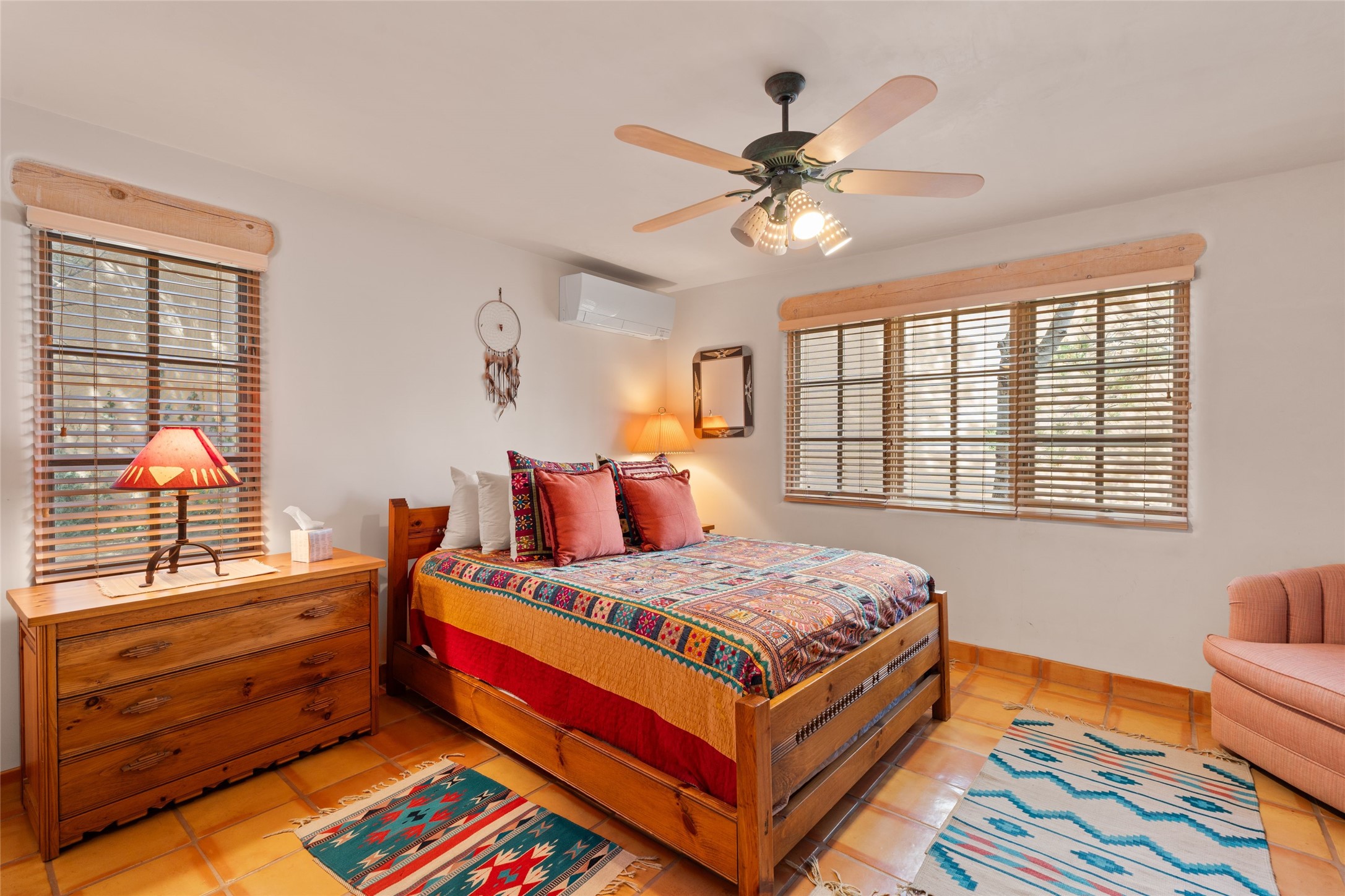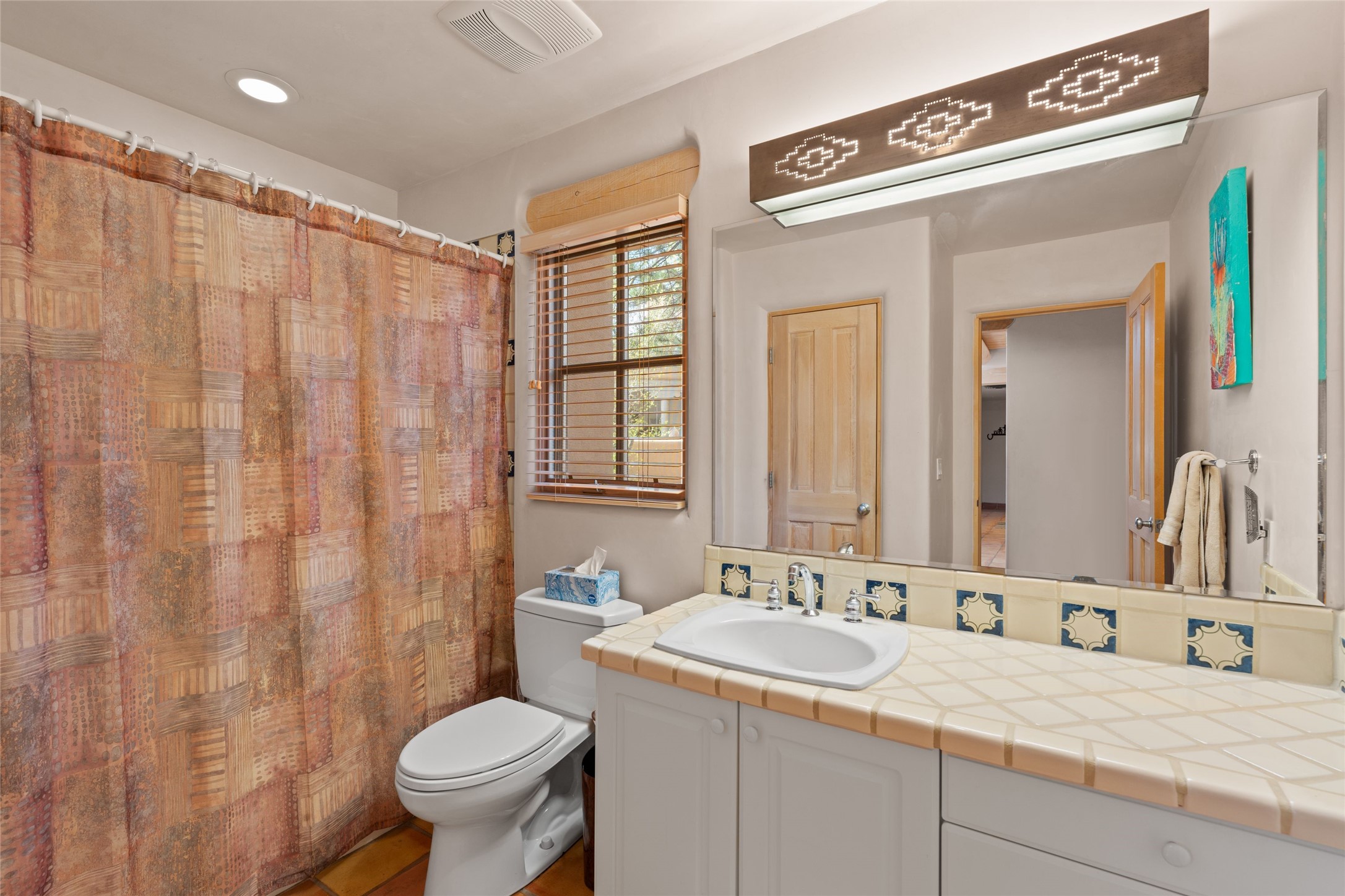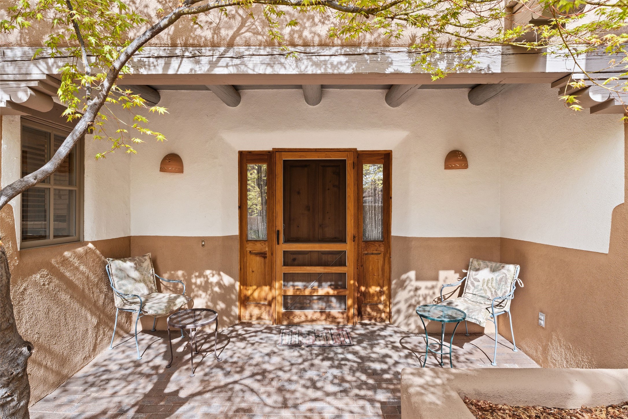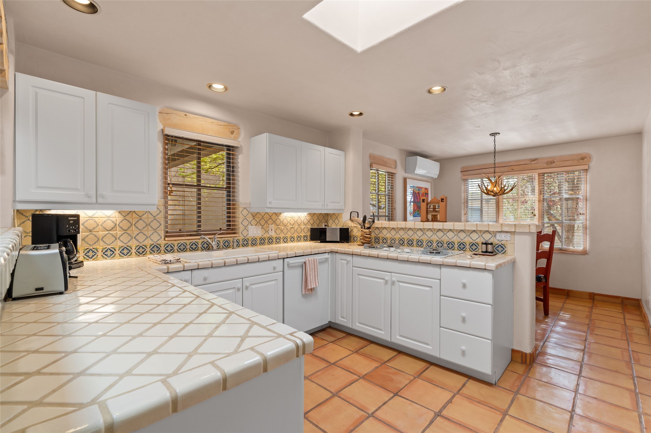 Classic Quail Run Pinon B with delightful outdoor spaces, charming Santa Fe style and an ideal floorplan. Enter through the spacious front courtyard which showcases views of the first green and those fabulous sunsets. The home will greet you with Saltillo floors, open living and optimal separation of bedrooms. Light filled kitchen nook compliments a spacious kitchen which extends to an alluring dining and living area. Sizable primary bedroom features a wood burning Kiva and opens to an ample back portal with lovely high desert landscape. Located on a quiet cul de sac in the midst of Santa Fe's premier condominium resort. Ownership at Quail Run includes 24 hour hosted security, beautiful grounds, state of the art gym and pool, multiple fitness classes, engaging 9 hole golf course, pickleball, tennis and much more. Come and experience!